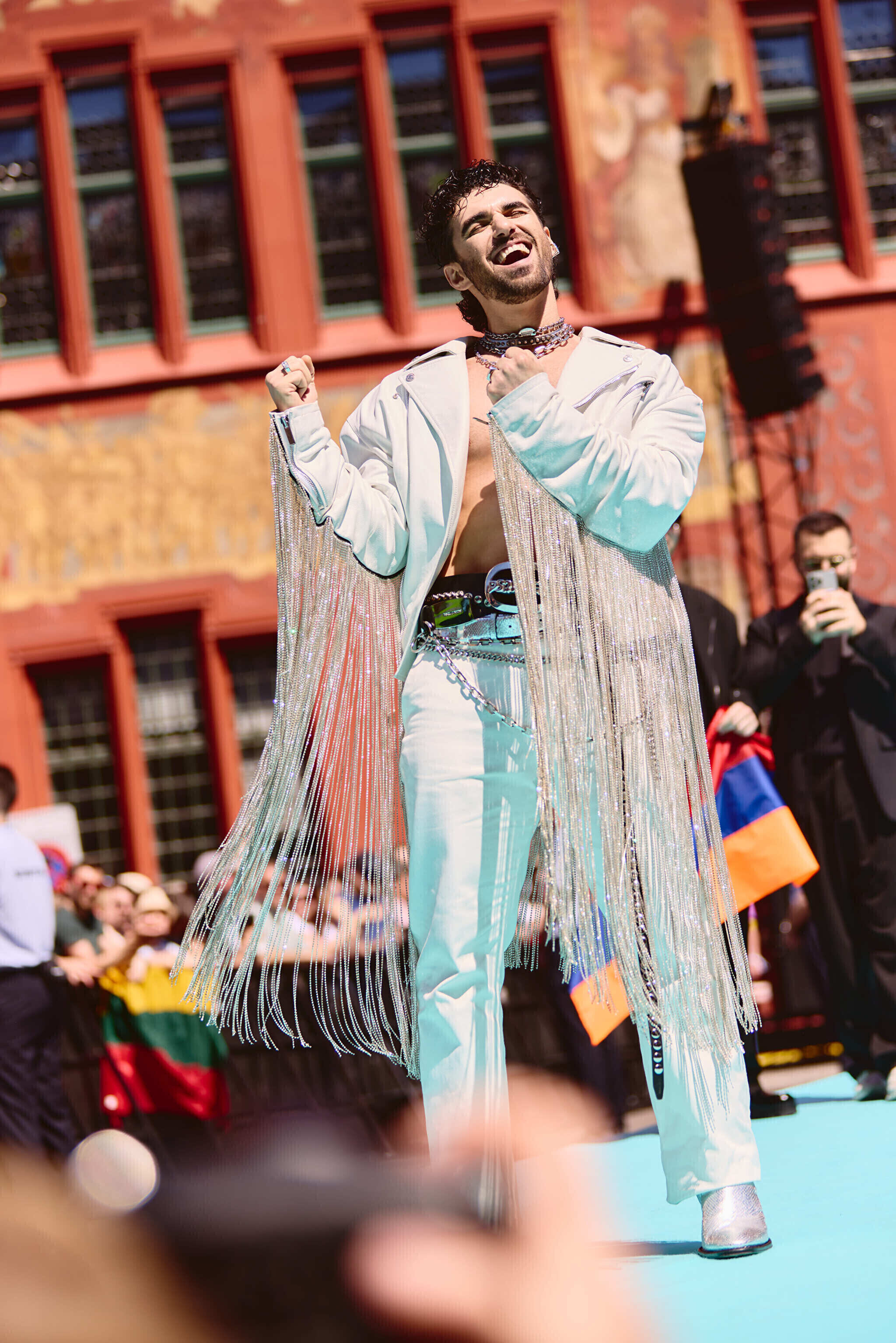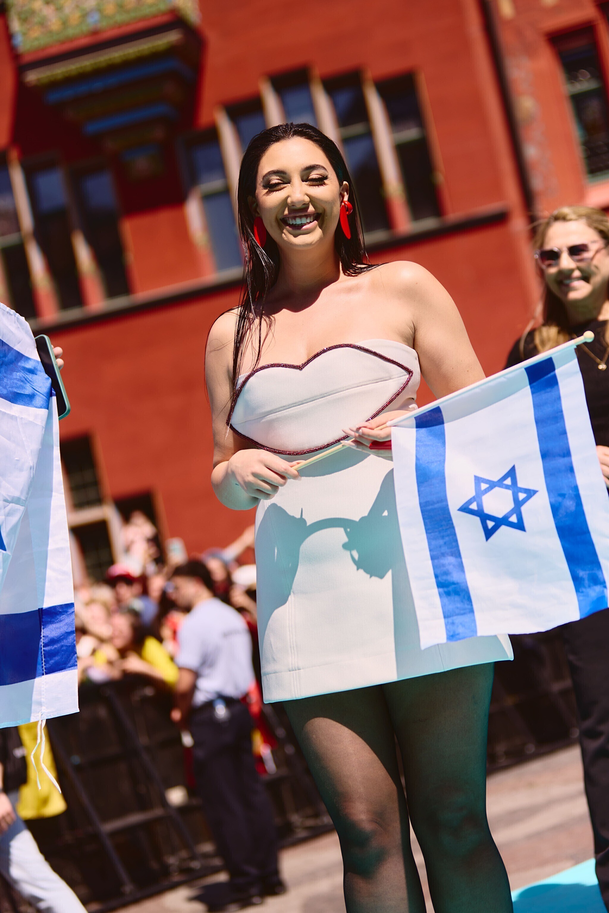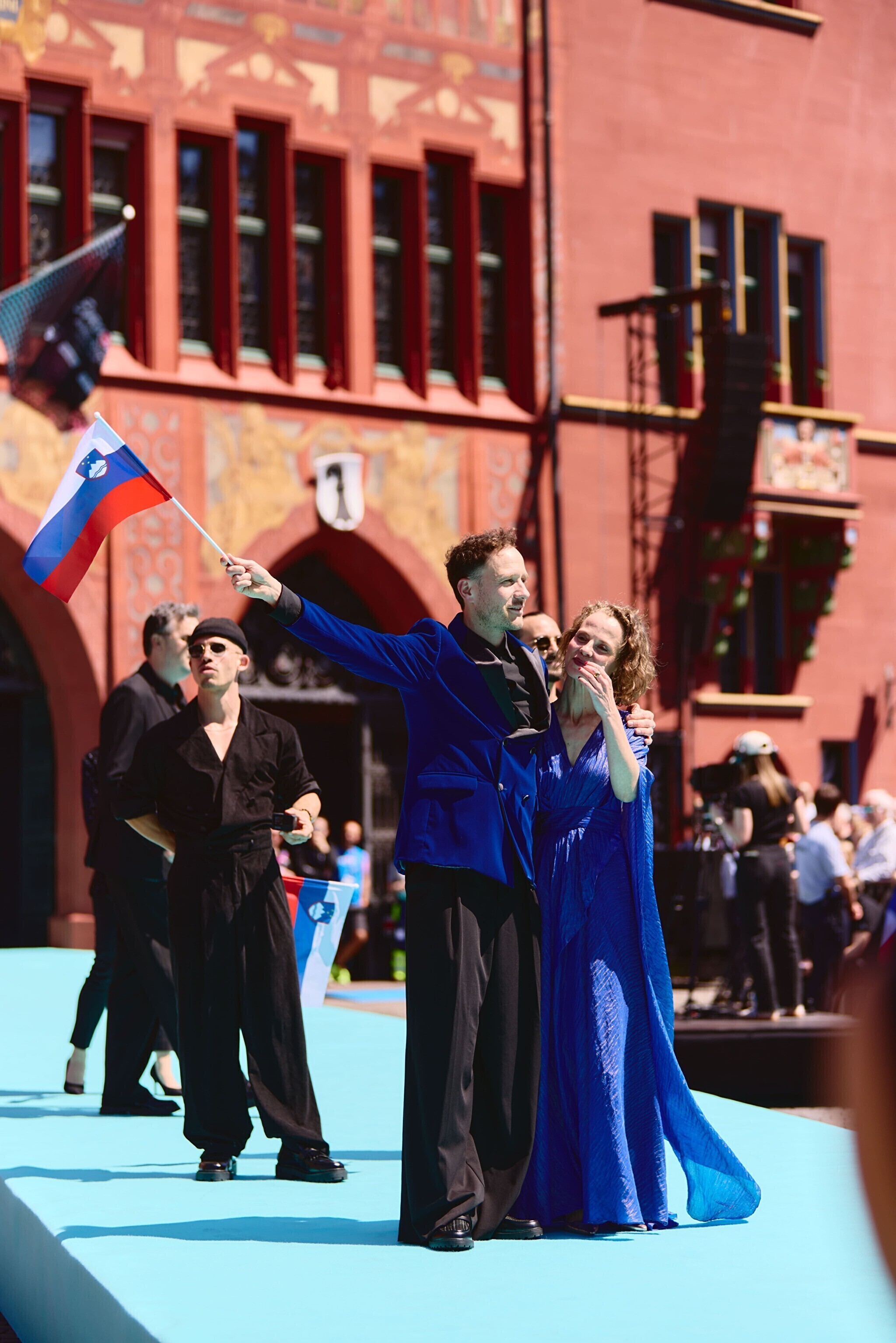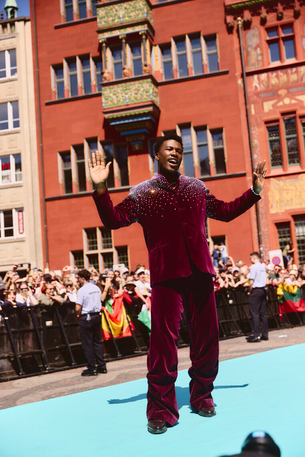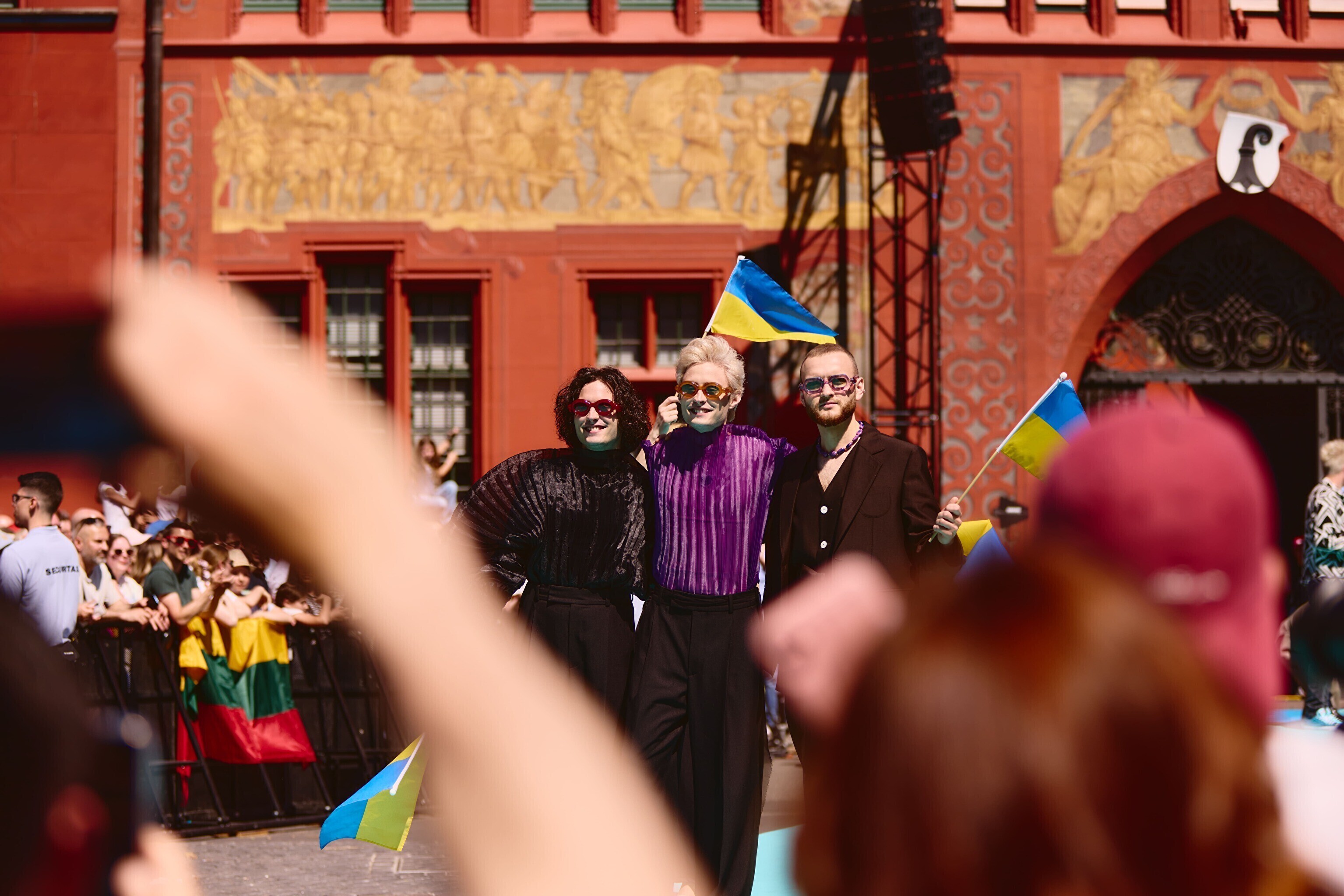 Однако уже на центральной площади среди привычных для "Евровидения" флагов стран-участниц и ЛГБТК+-сообщества можно было увидеть много палестинских стягов и плакатов, обвиняющих "Евровидение" в потворстве геноциду. Еще больше таких флагов и растяжек были видны по пути следования процессии. По сообщениям очевидцев, группе пропалестинских активистов на короткое время удалось преградить путь трамваю, в котором сидела делегация из Израиля вместе с исполнительницей из этой страны Юваль Рафаэль. Известно также о жестах агрессии в адрес израильтян.