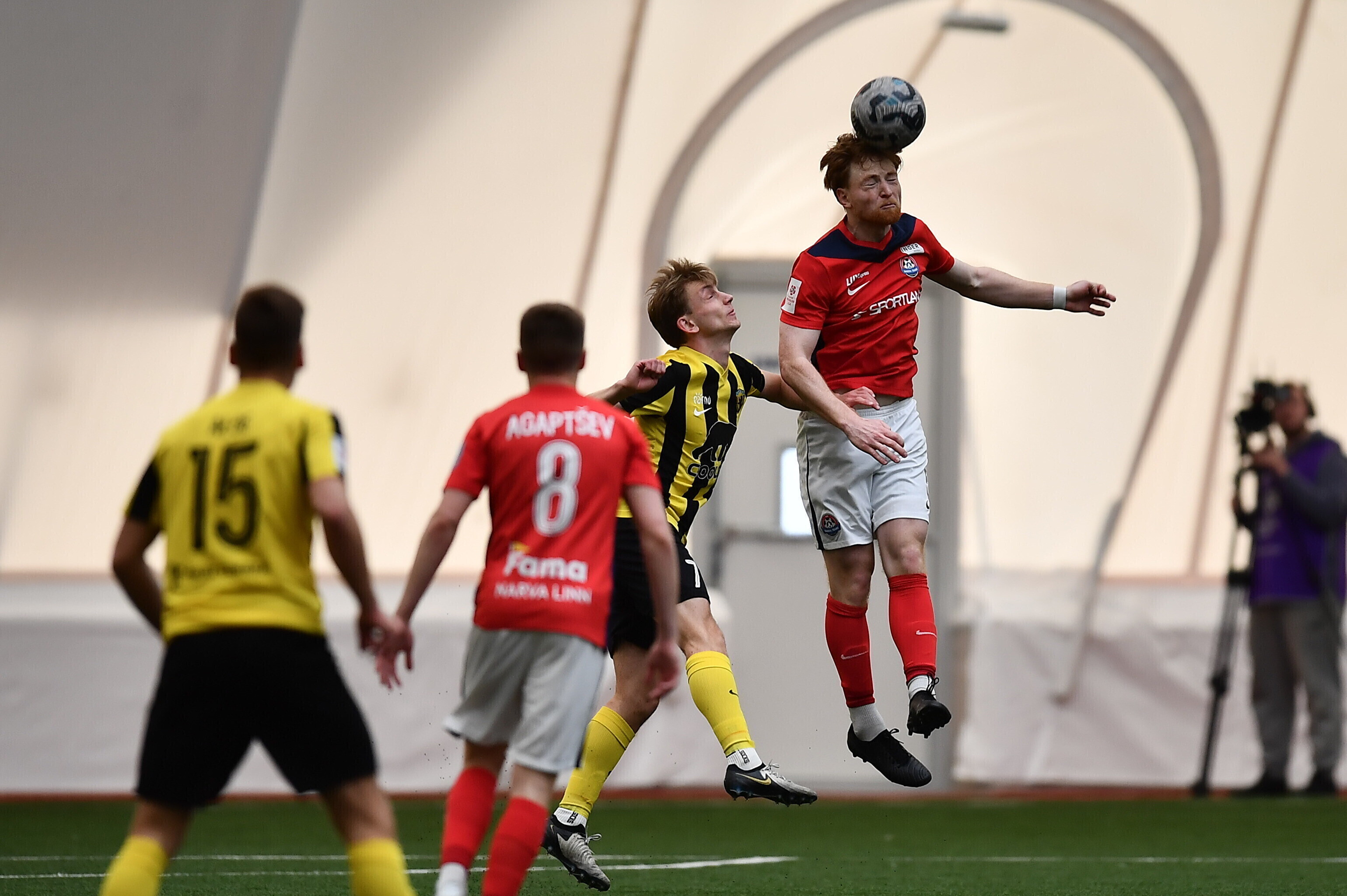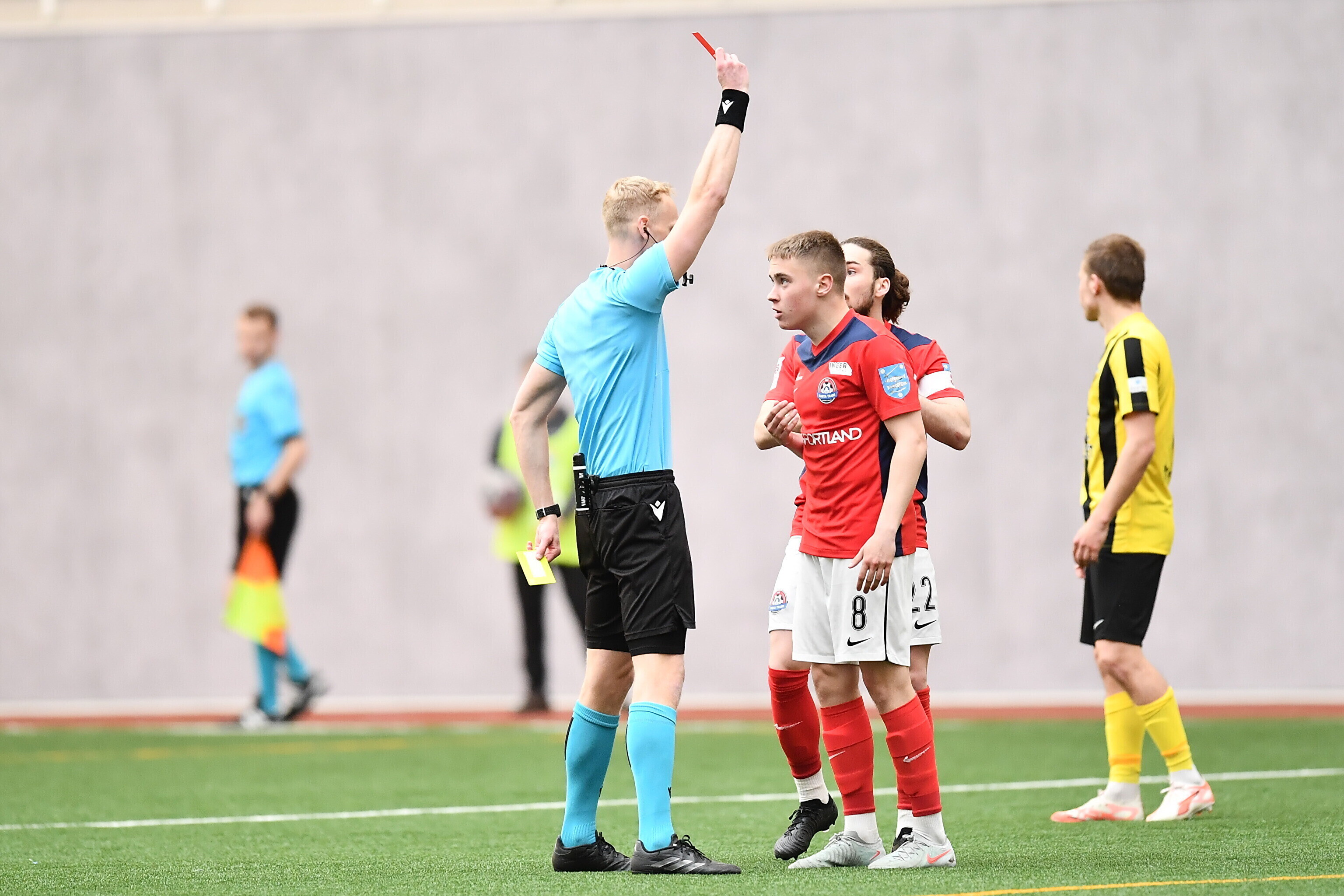Нарвский клуб завершал поединок вдесятером - на 81-й минуте за две желтые карточки был удален Станислав Агапчев.