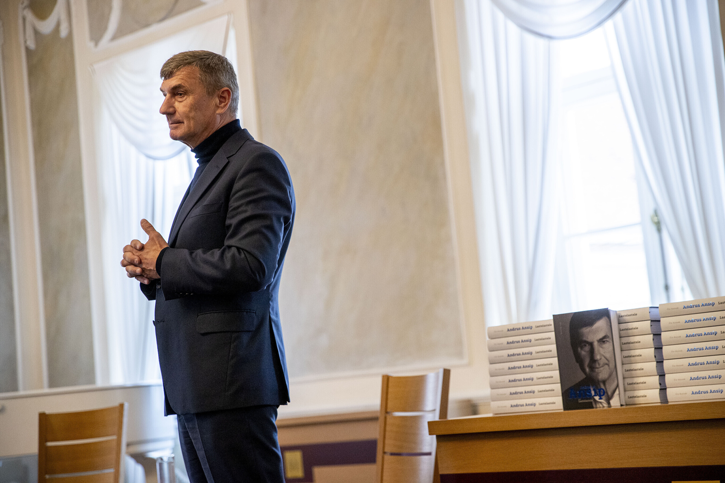 Бывший премьер-министр Андрус Ансип в пятницу, 16 мая, представил в Тарту свою автобиографическую книгу под названием "Lastelastele" ("Внукам").