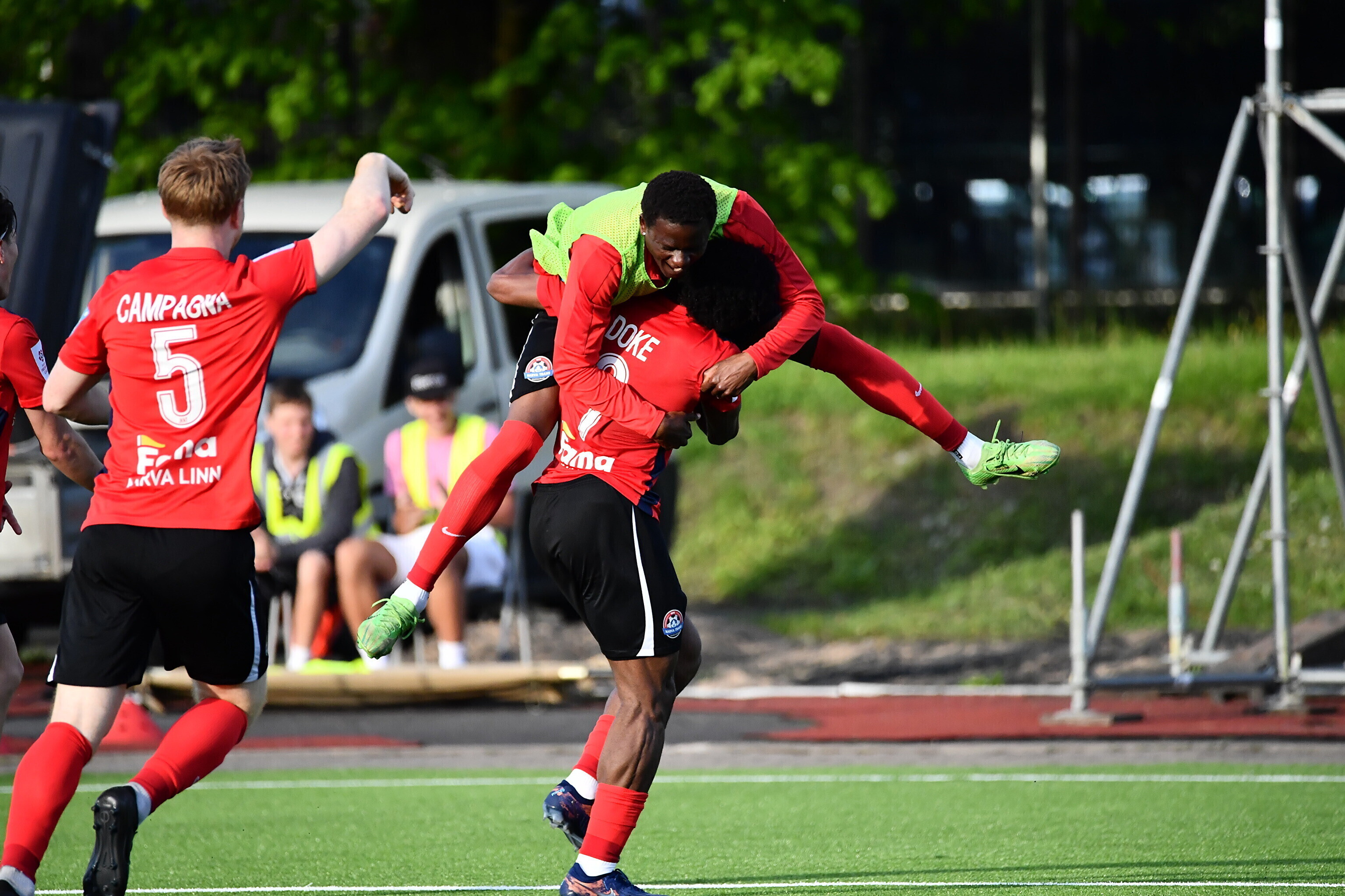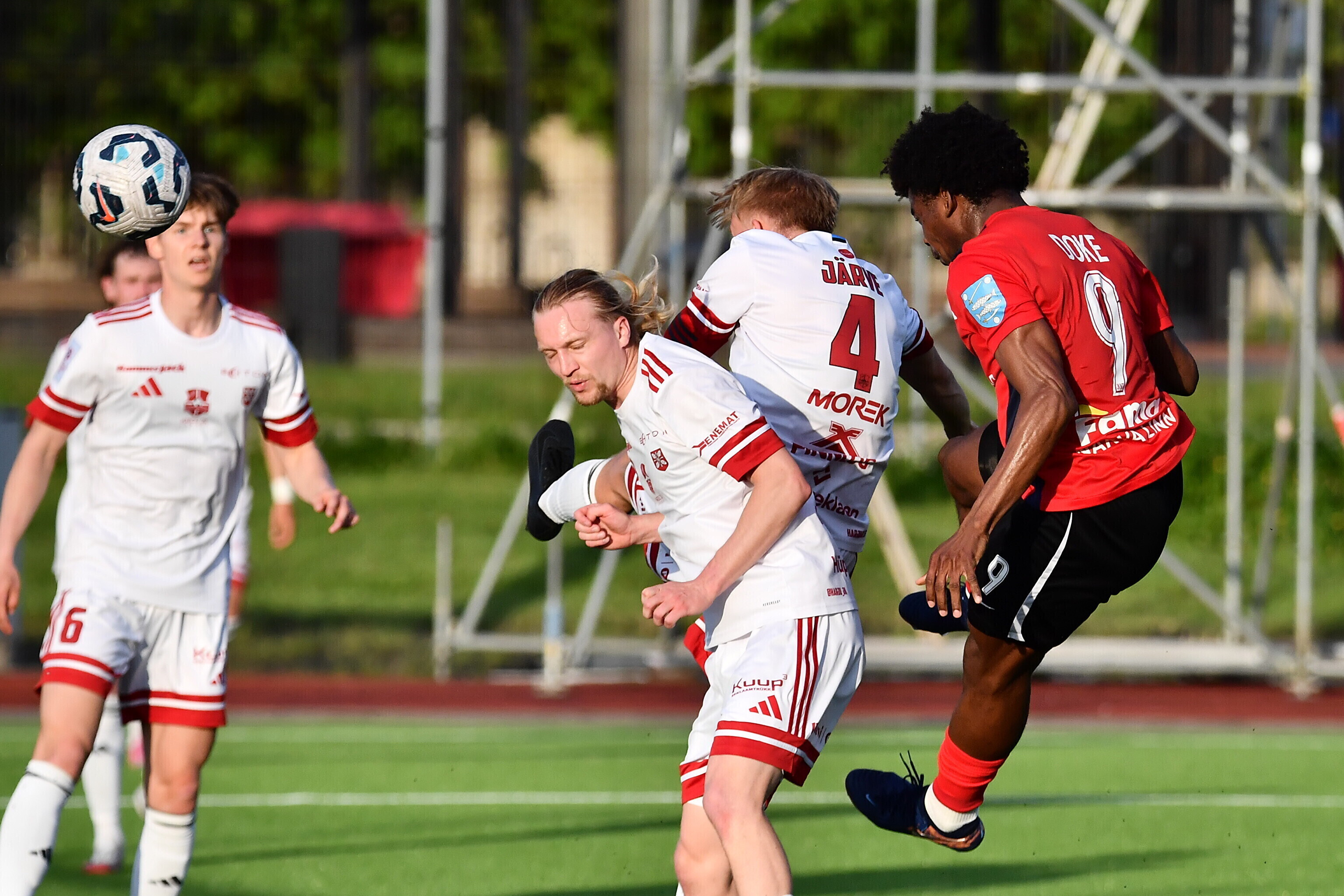 Однако точку в игре поставил все тот же Доке, забив четвертый мяч хозяев в концовке встречи и оформив хет-трик — 4:2. "Нарва Транс" укрепился на четвертом месте в турнирной таблице, набрав 28 очков - столько же у делящих вторую-третью строчку "Левадии" и "Нымме Калью", но у них есть по игре в запасе.
