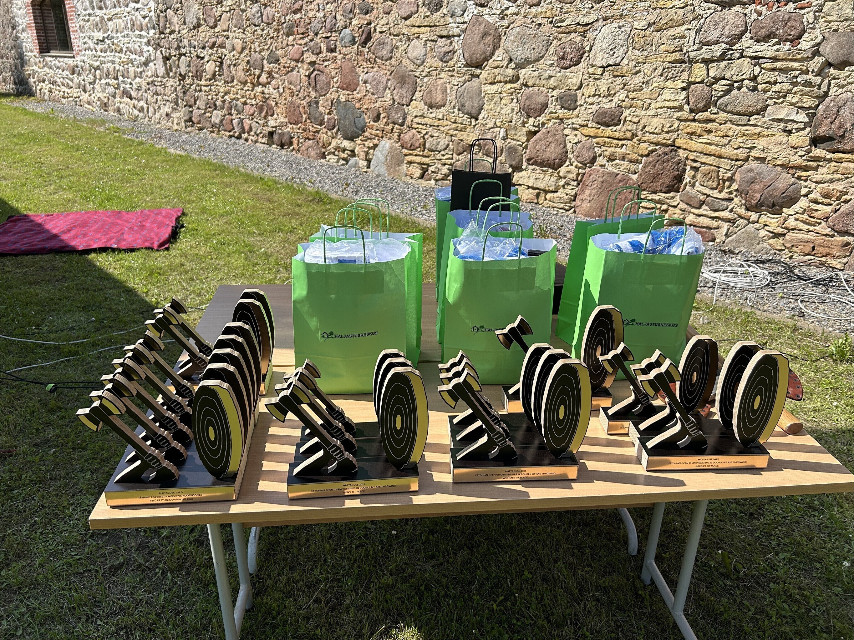 Первые соревнования по метанию топоров прошли в Мяэтагузе в крытом зале пять с половиной лет назад. Сначала в зале было восемь дорожек для метания. При поддержке фонда справедливого перехода зал был утеплен, а количество дорожек для метания увеличено до 12, а также новая открытая арена с двенадцатью местами для метания.