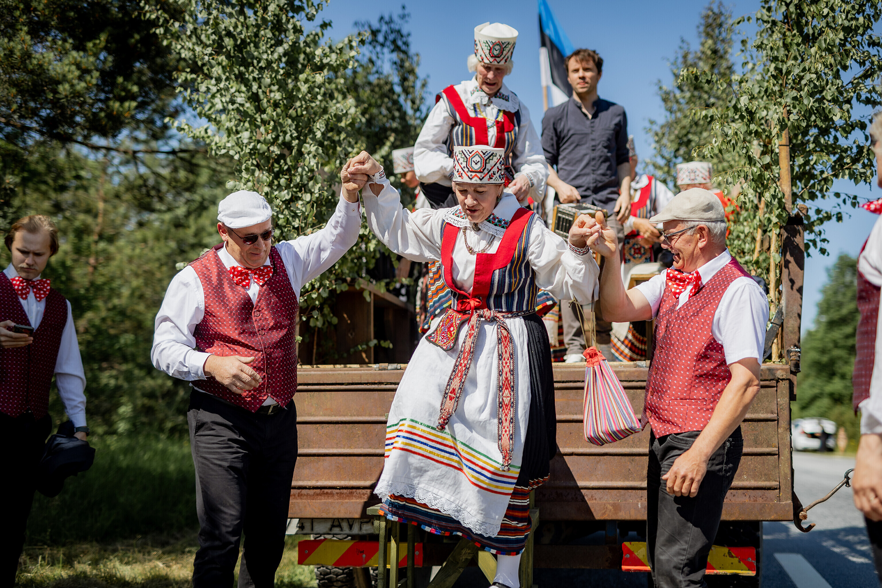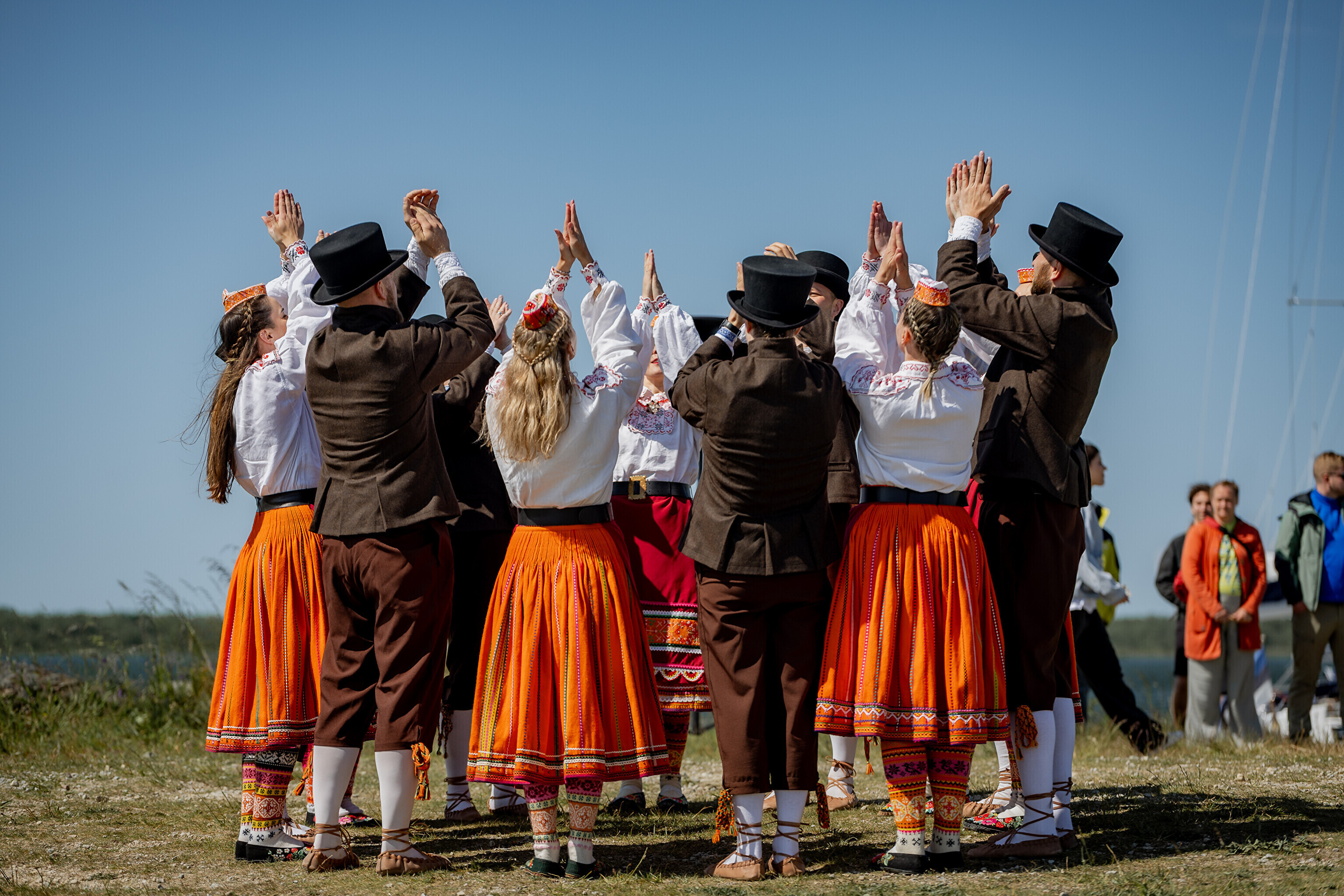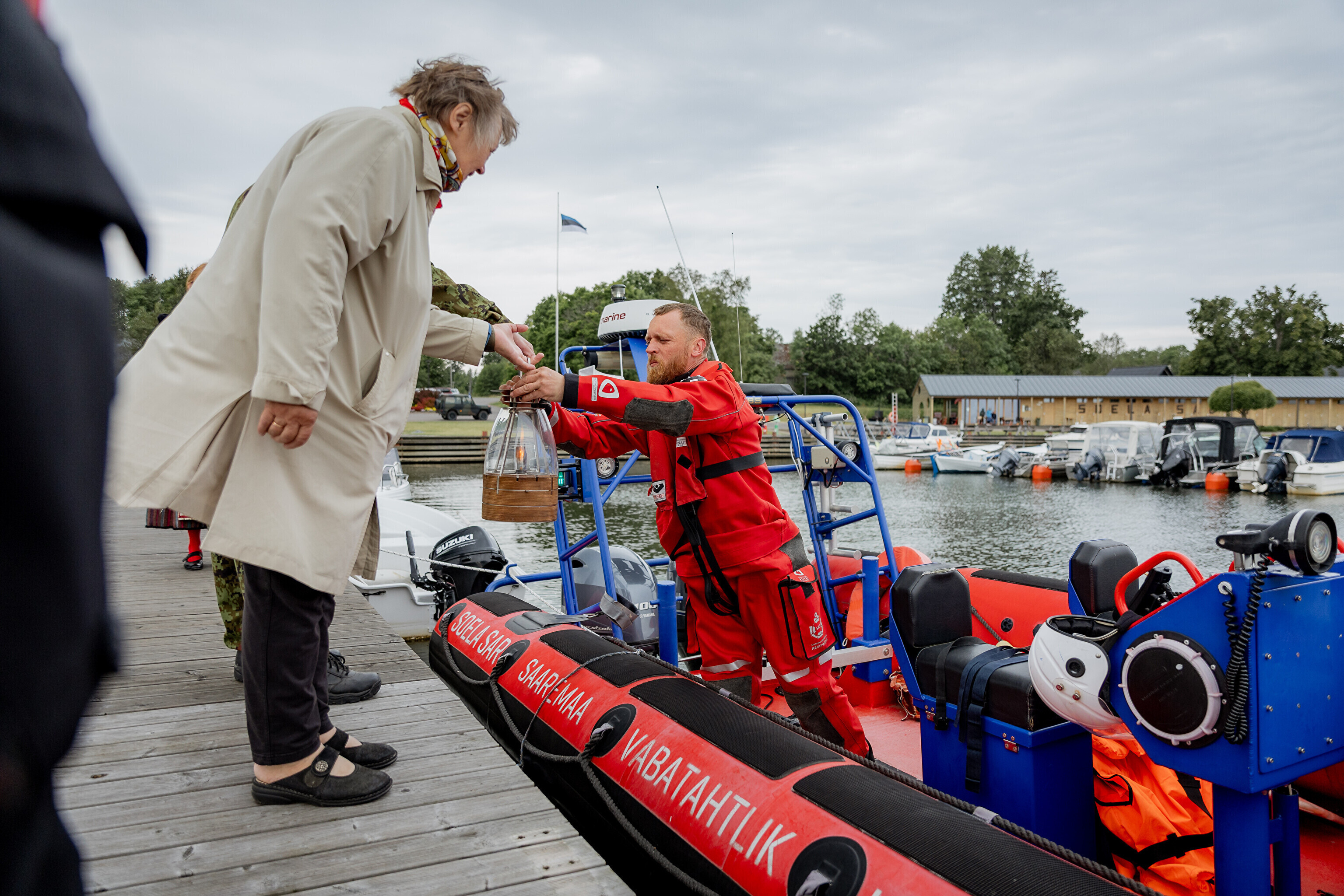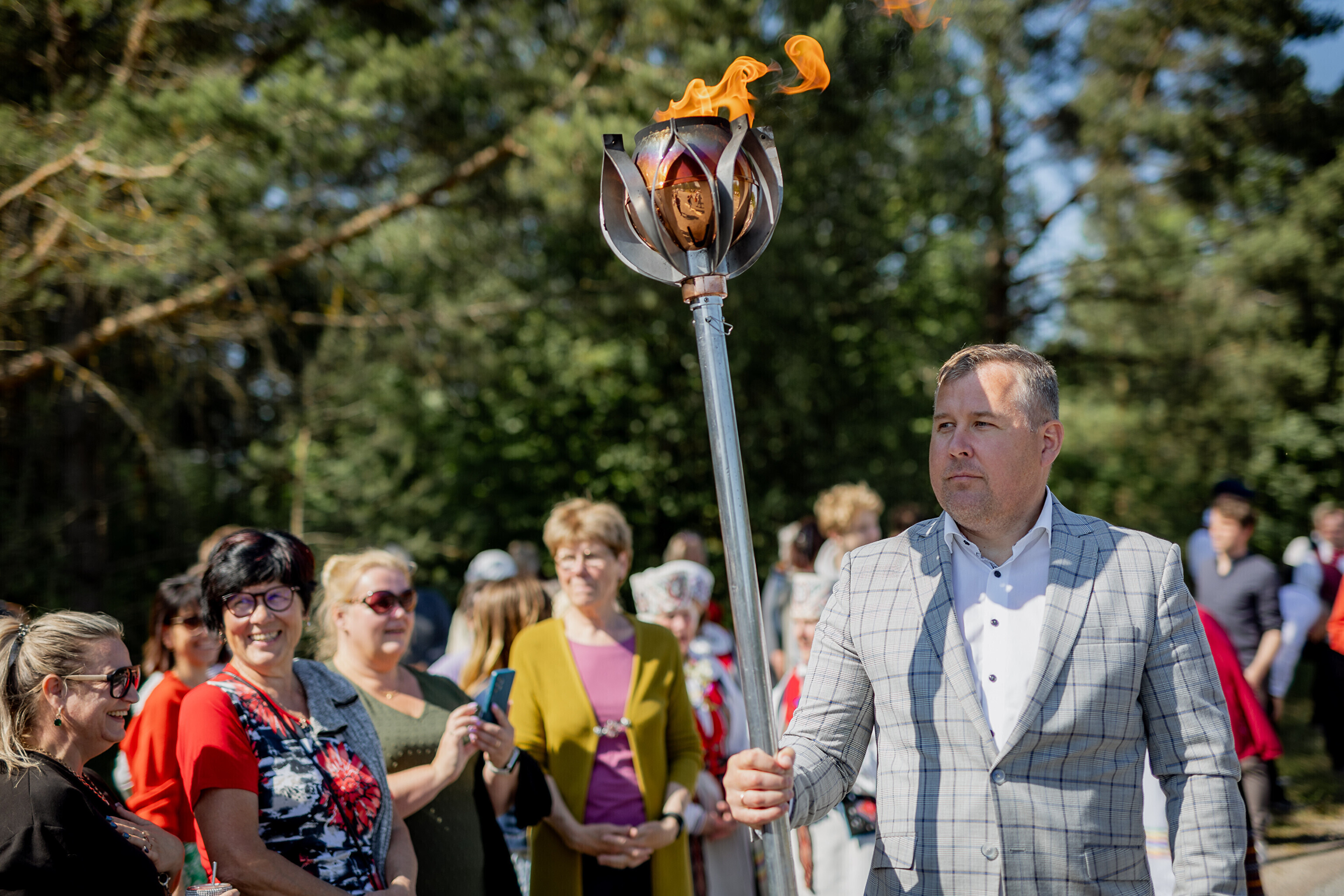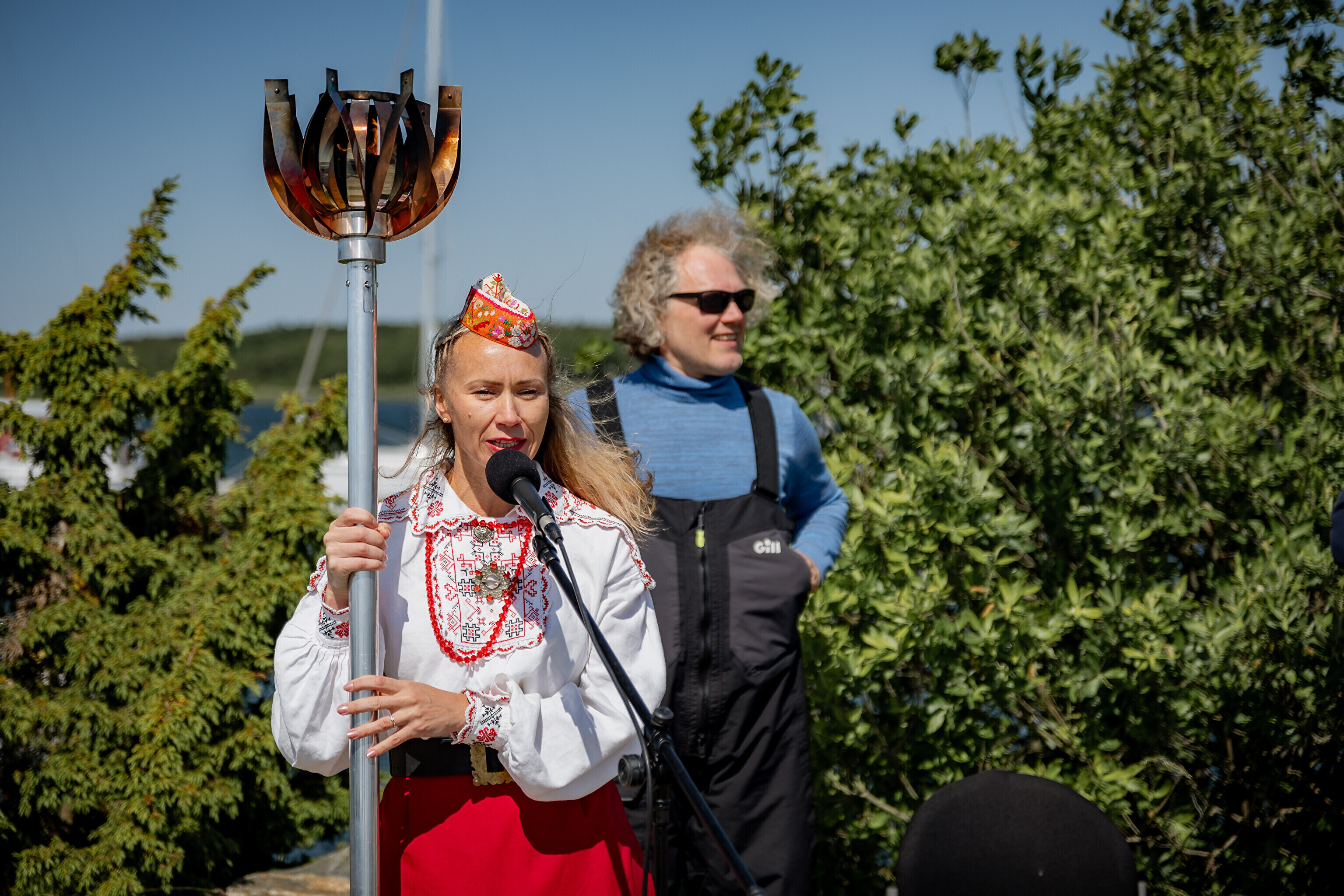 Праздничный огонь торжественно встретили на Сааремаа в порту Кыйгусте, где огонь приветствовала смешанная танцевальная группа Sõlesepad в народных костюмах Муху, а настроение создавал аккордеонист Матис Простанг.