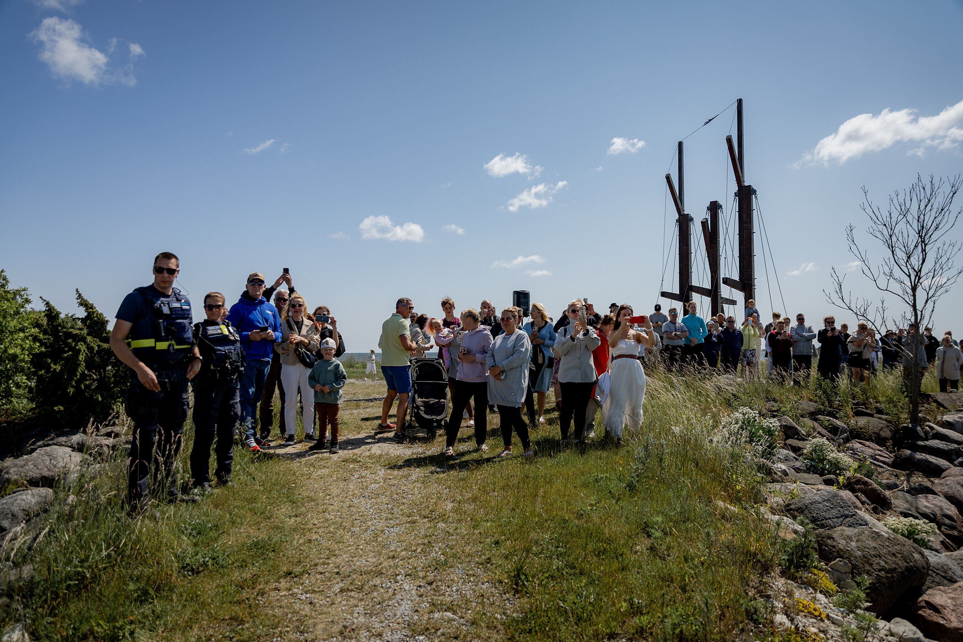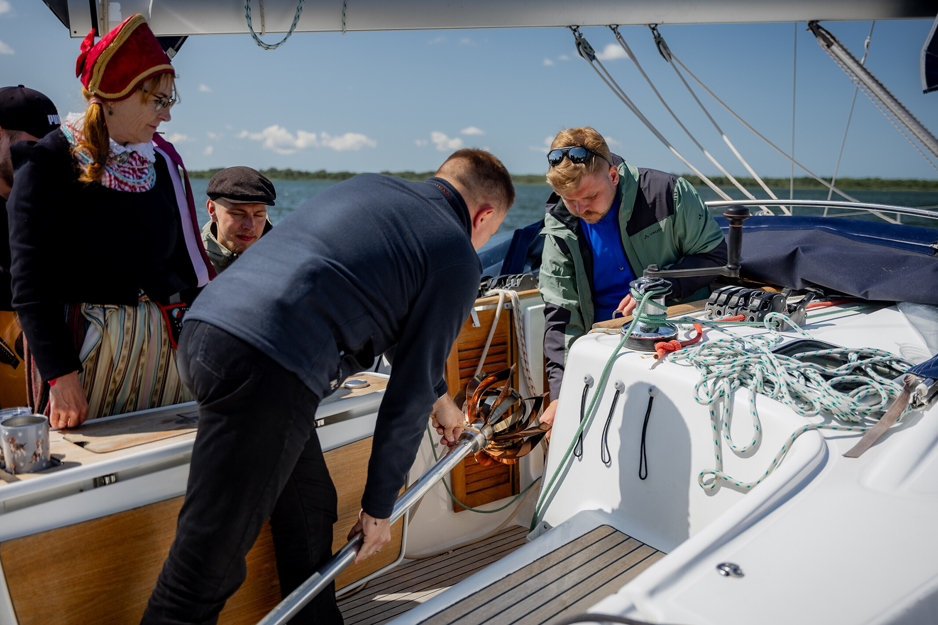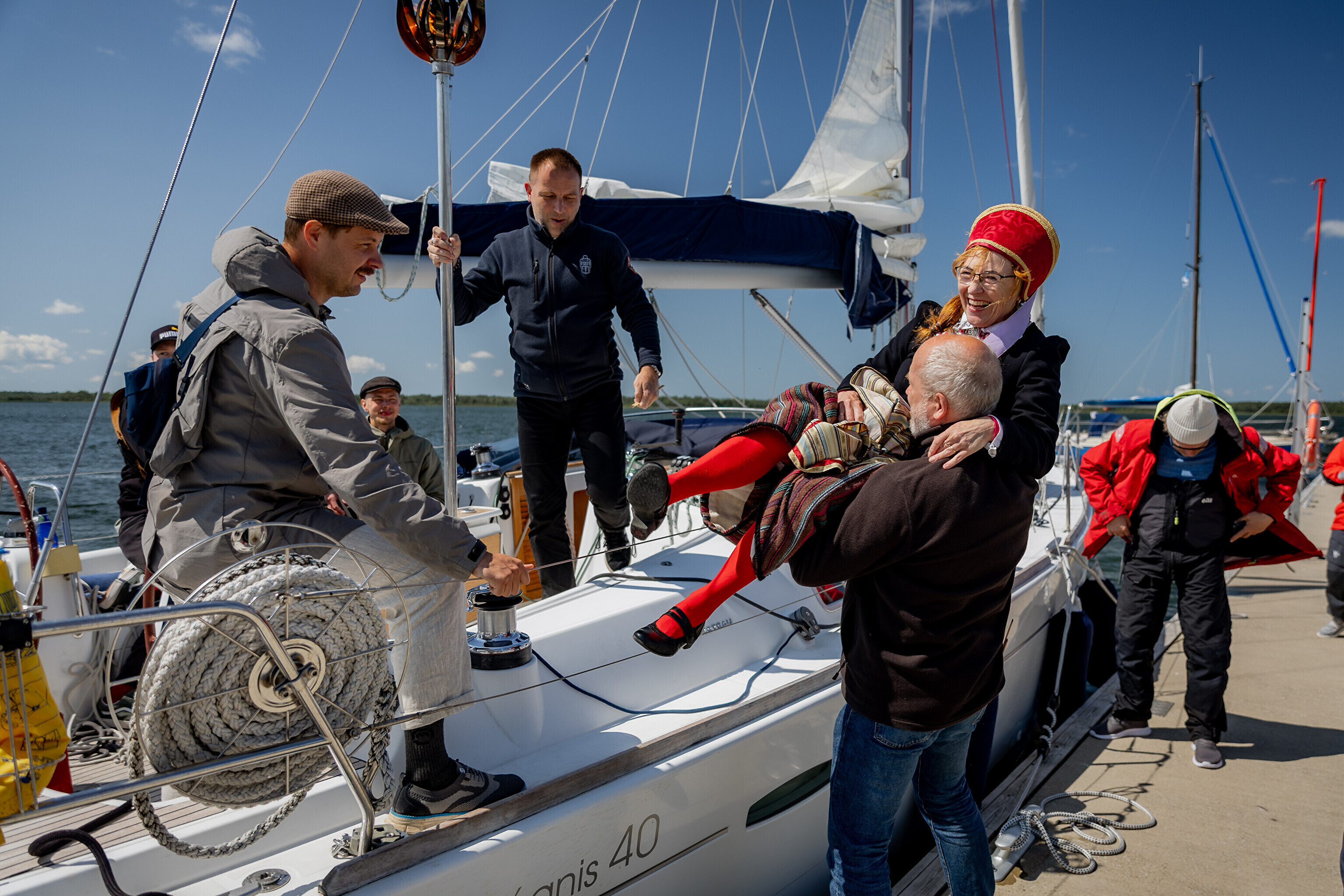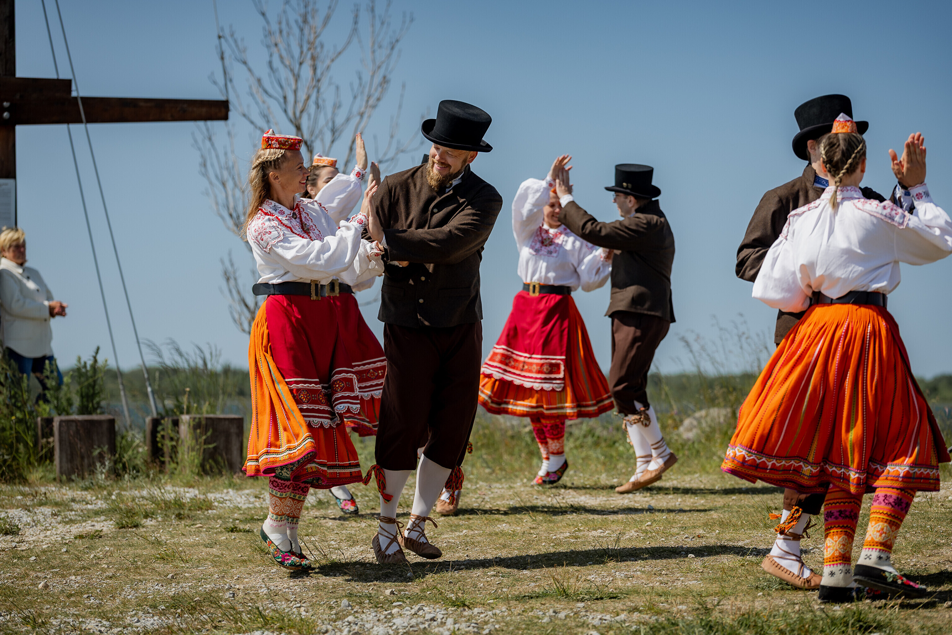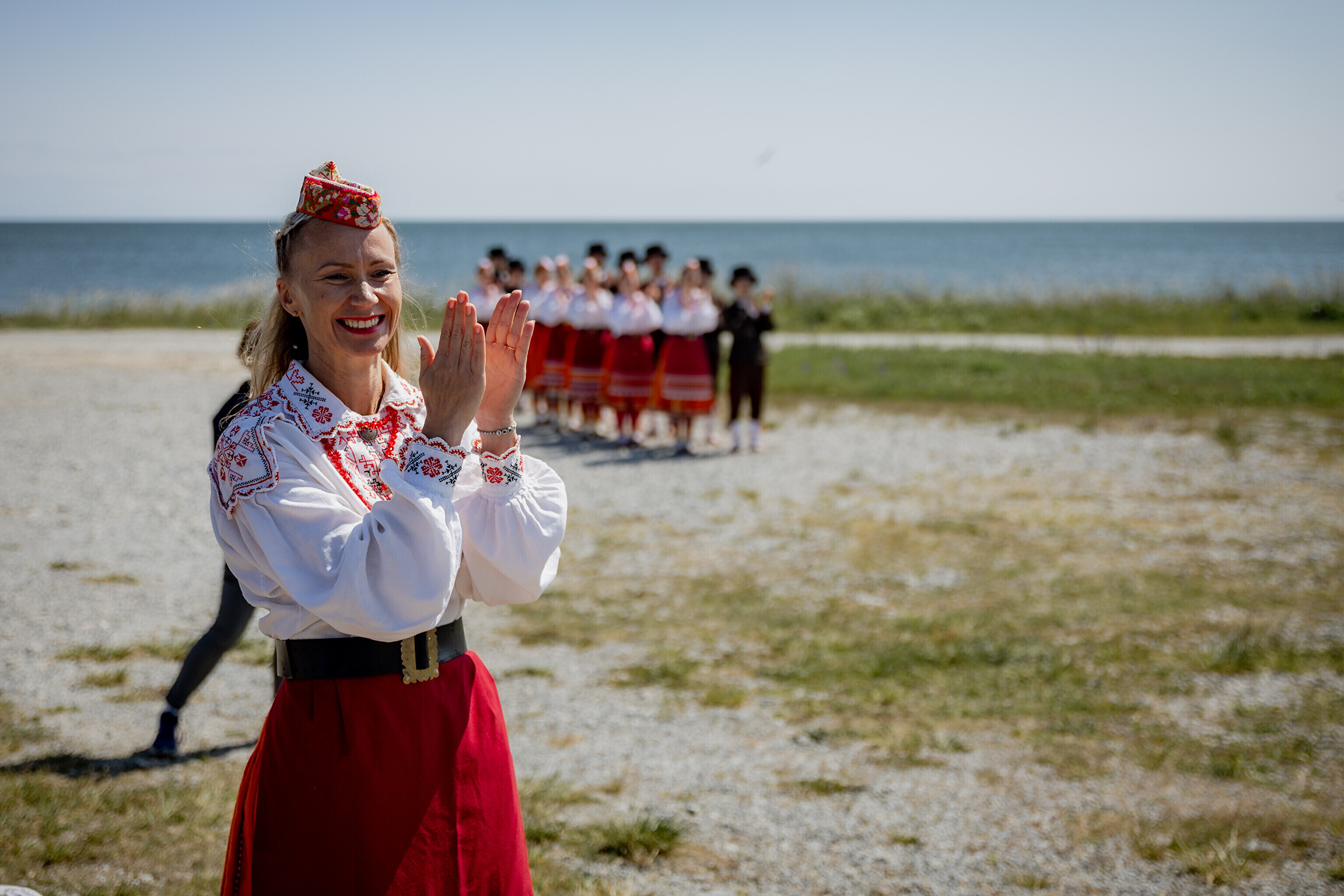 Праздничный огонь торжественно встретили на Сааремаа в порту Кыйгусте, где огонь приветствовала смешанная танцевальная группа Sõlesepad в народных костюмах Муху, а настроение создавал аккордеонист Матис Простанг.
