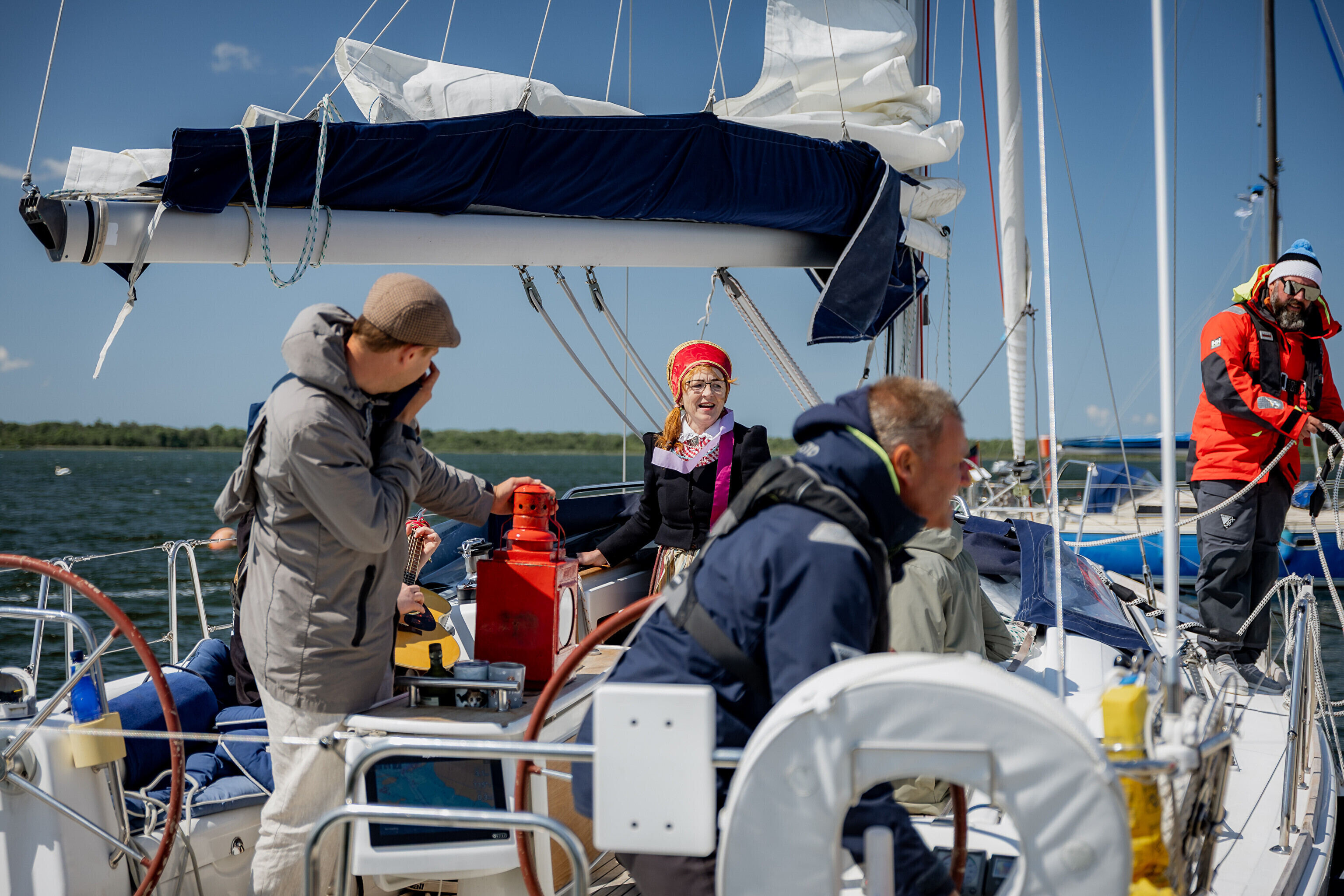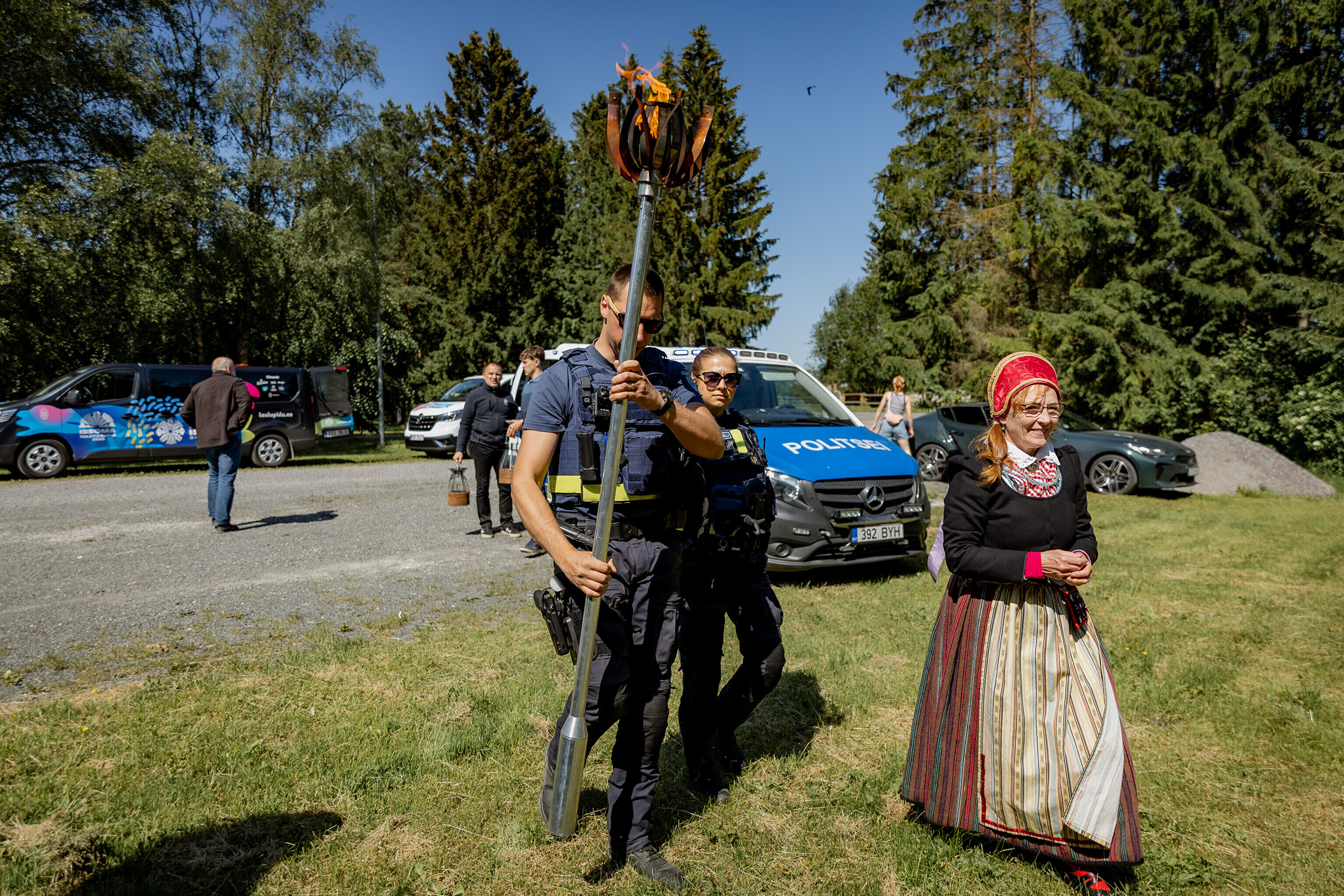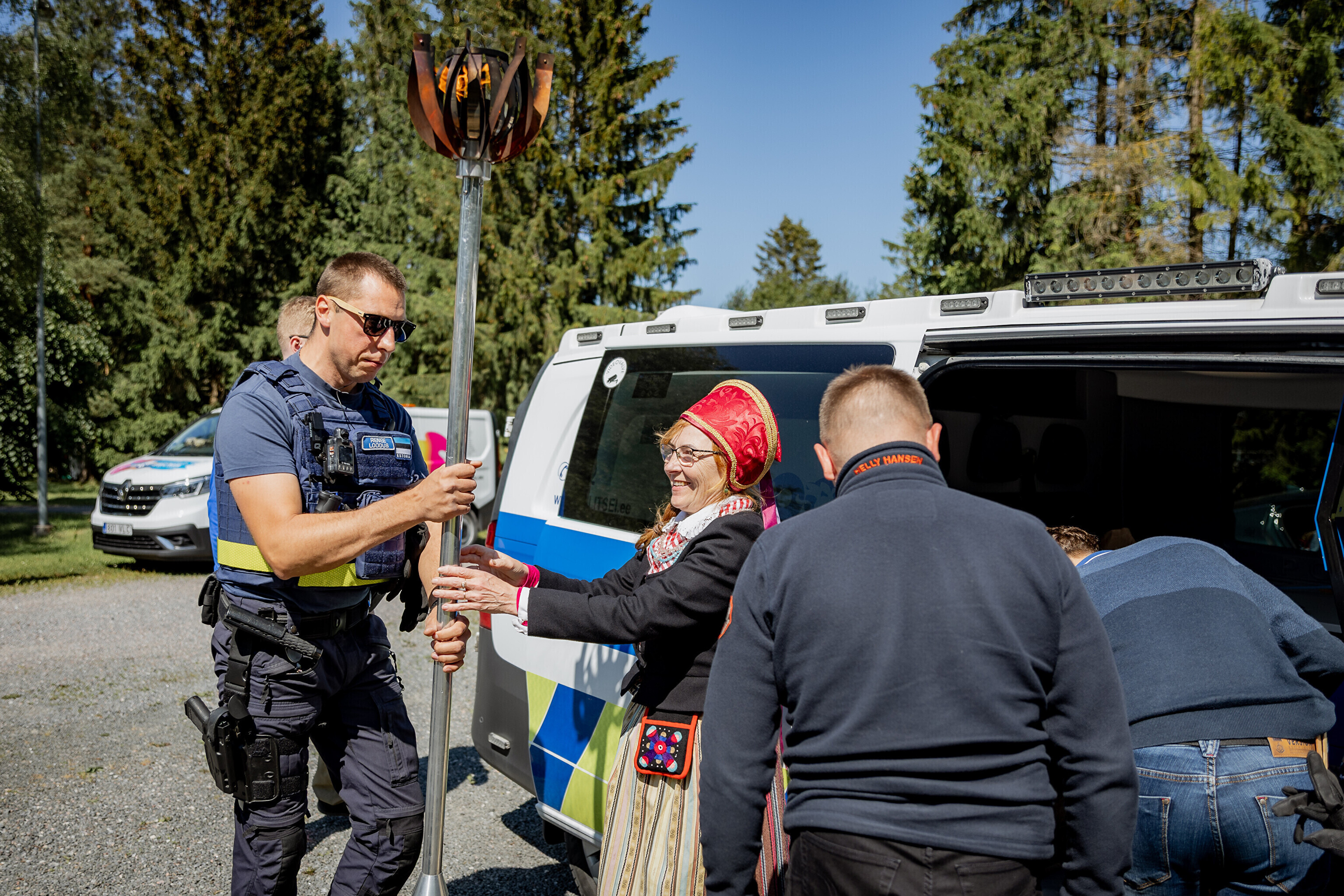 Праздничный огонь перевозили самые разные транспортные средства: парусник, полицейская машина, грузовик, автомобиль Кайтселийта и пожарная машина, а также морской спасательный катер.