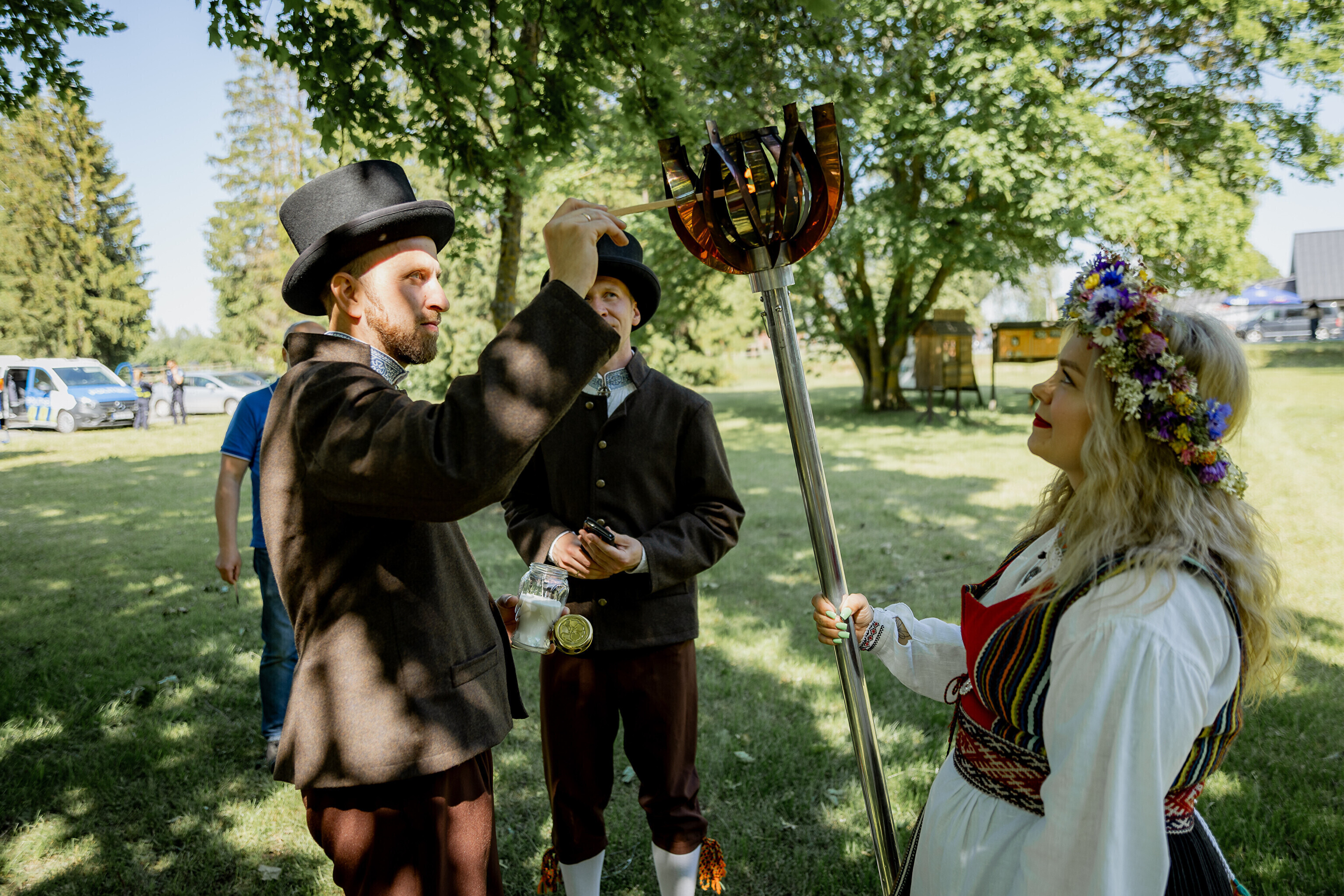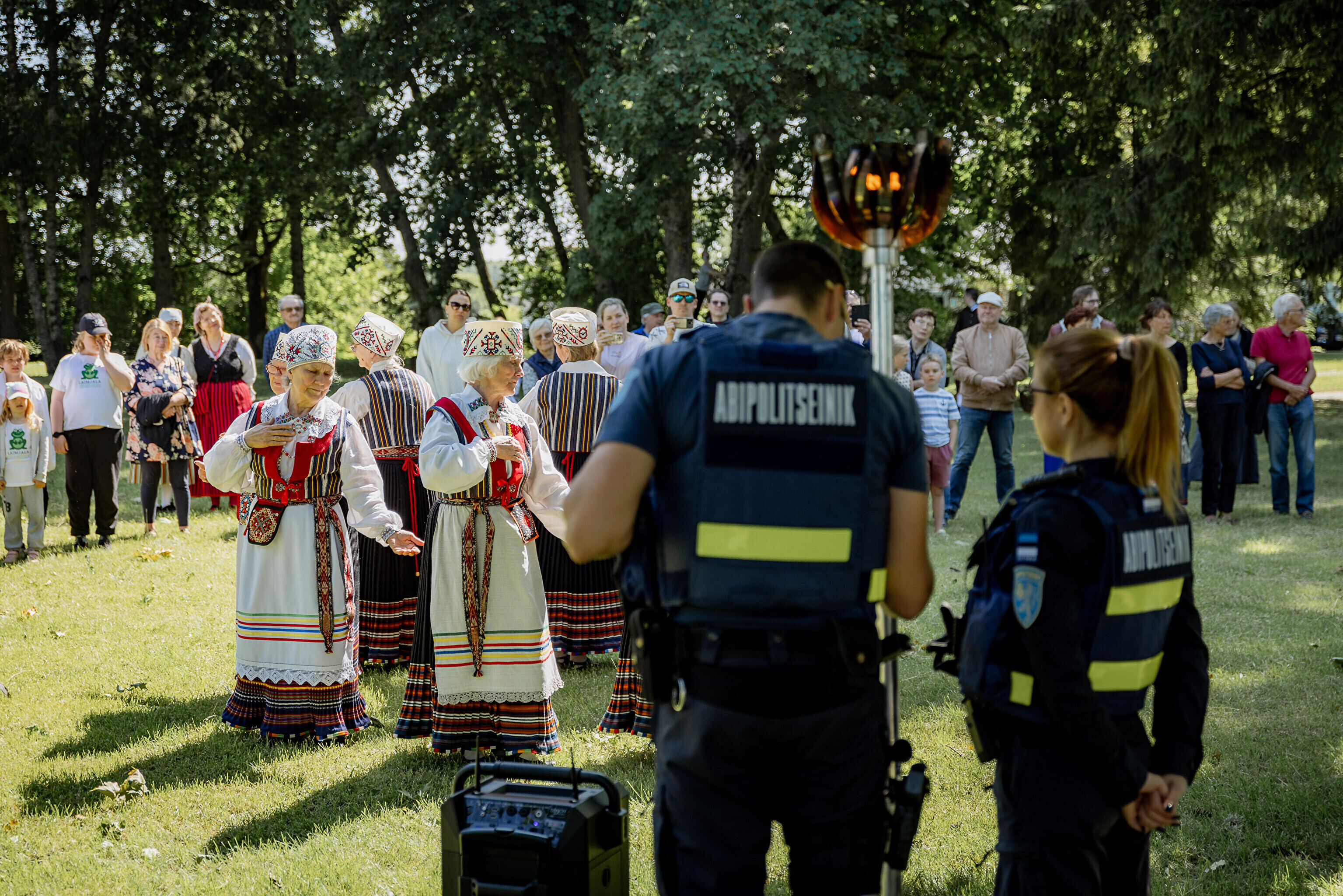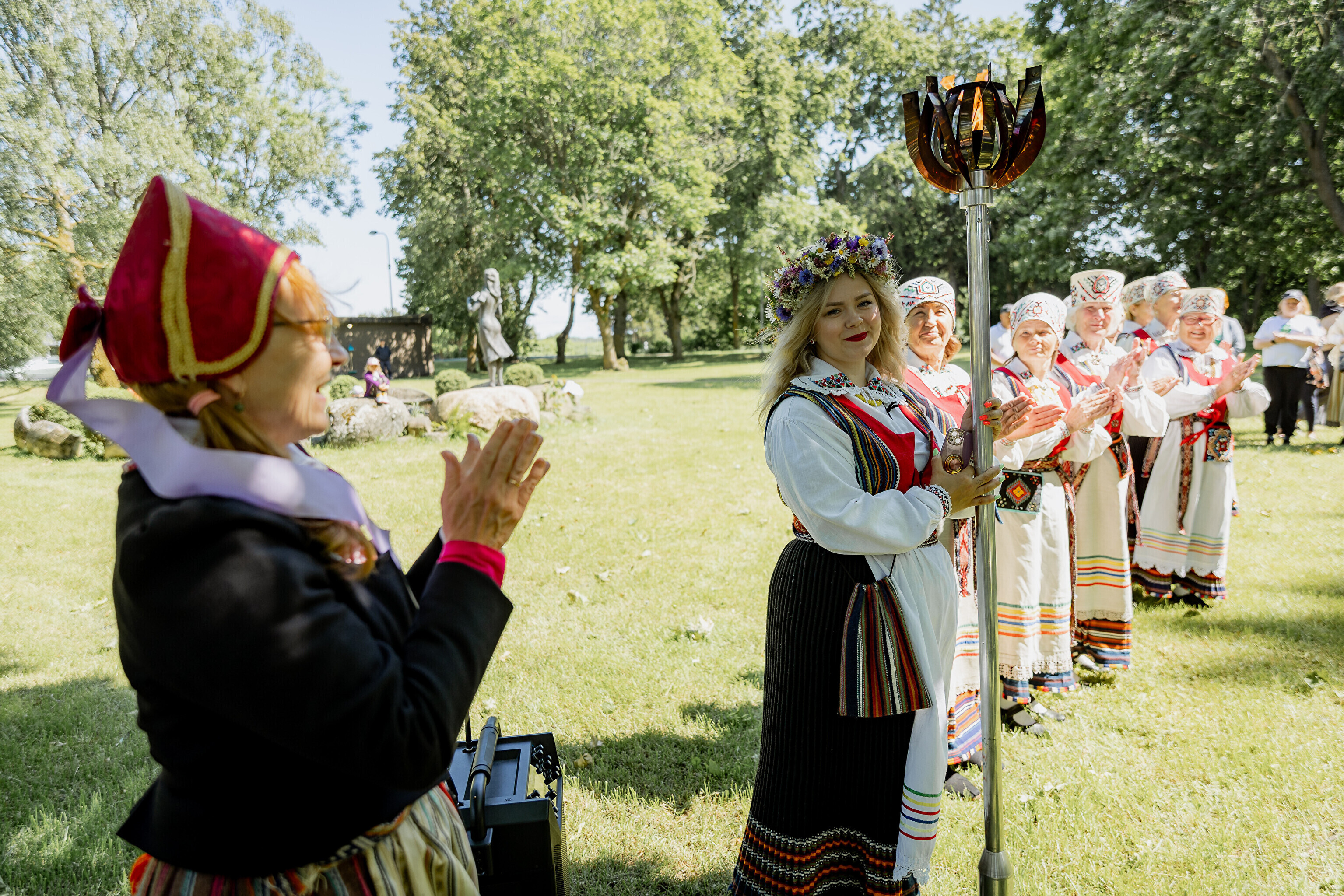Оттуда огонь в сопровождении полиции направился в парк мызы Лаймъяла, где его встретил заместитель волостного старейшины Койт Воояр, а танцевальное представление показала танцевальная группа Kedrus.