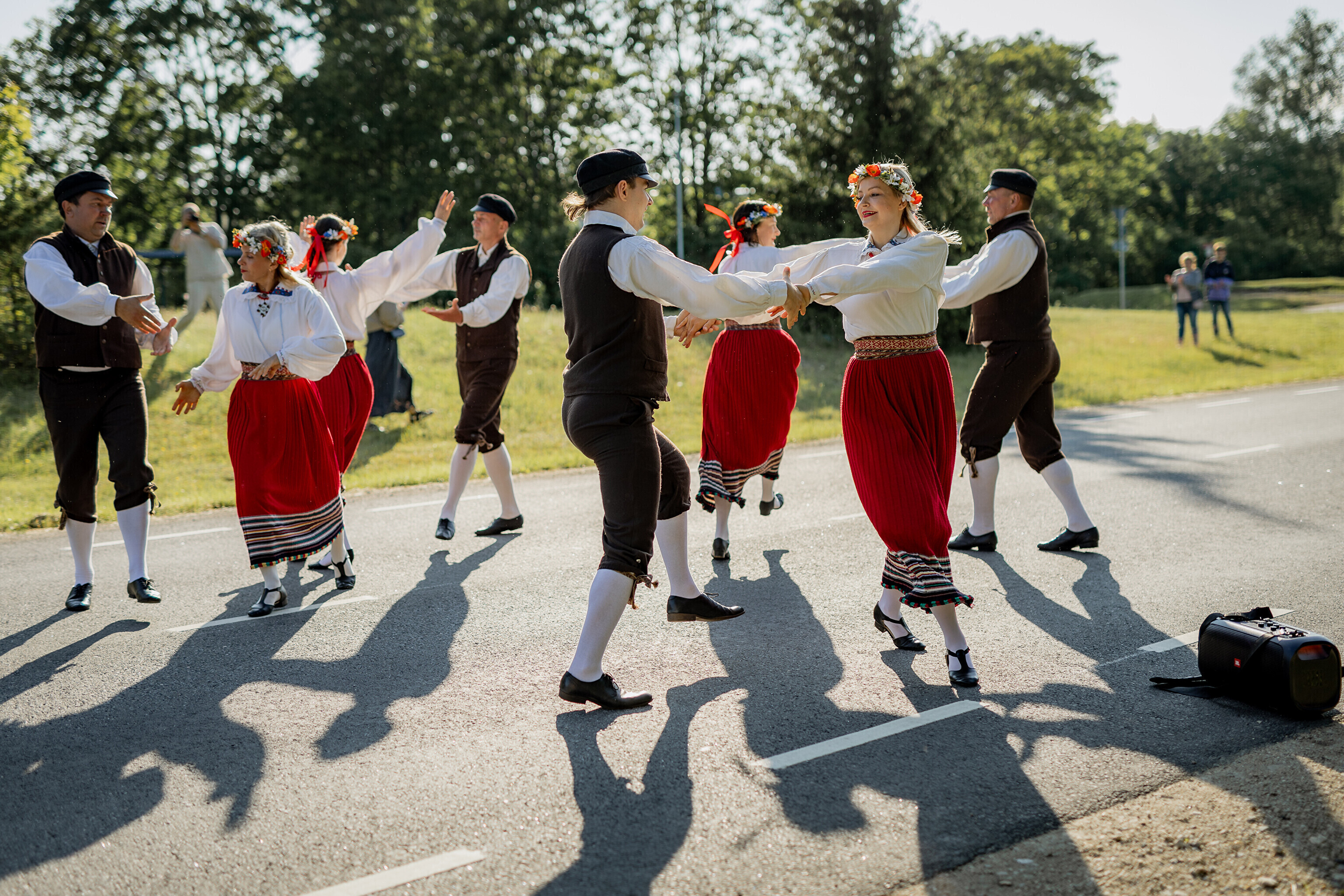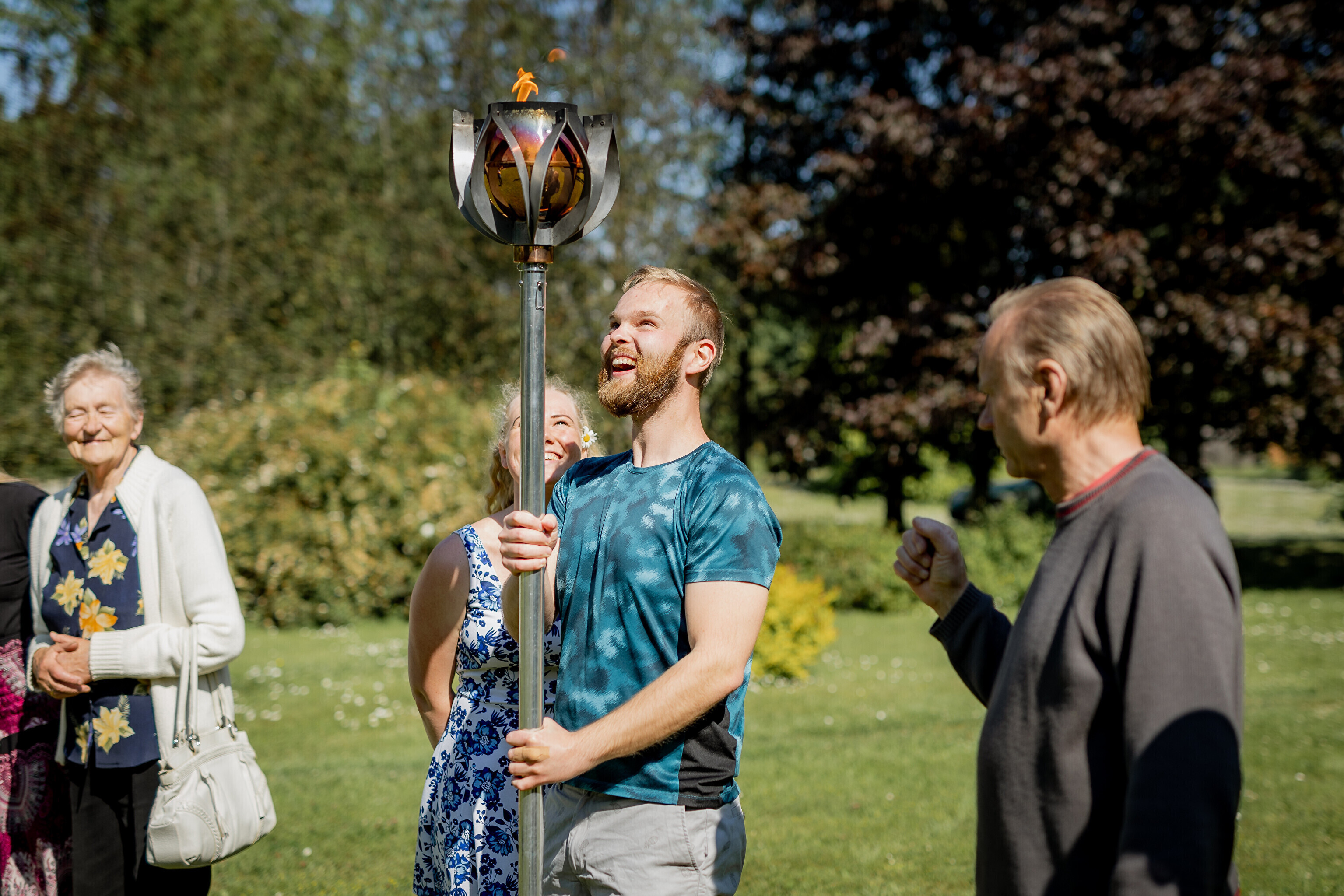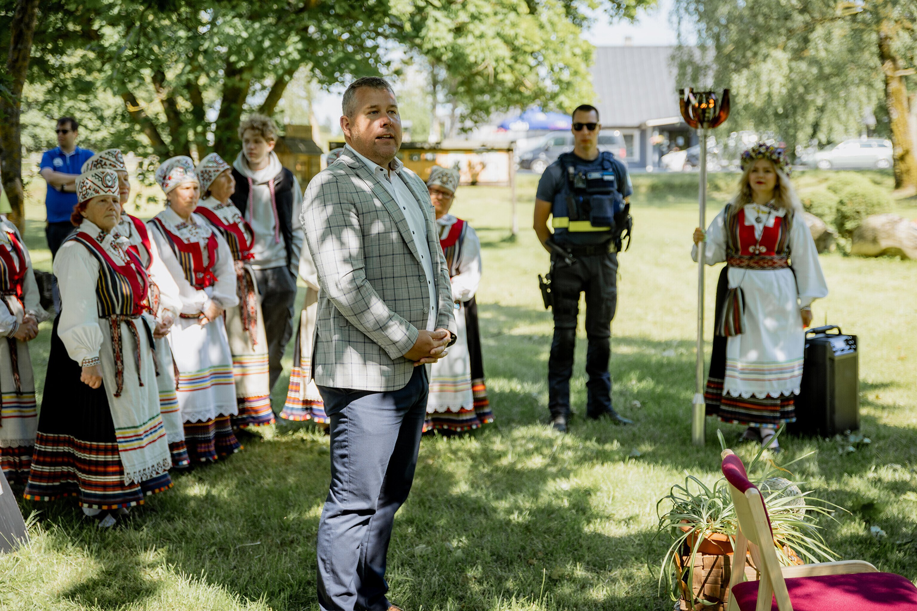 Оттуда огонь в сопровождении полиции направился в парк мызы Лаймъяла, где его встретил заместитель волостного старейшины Койт Воояр, а танцевальное представление показала танцевальная группа Kedrus.