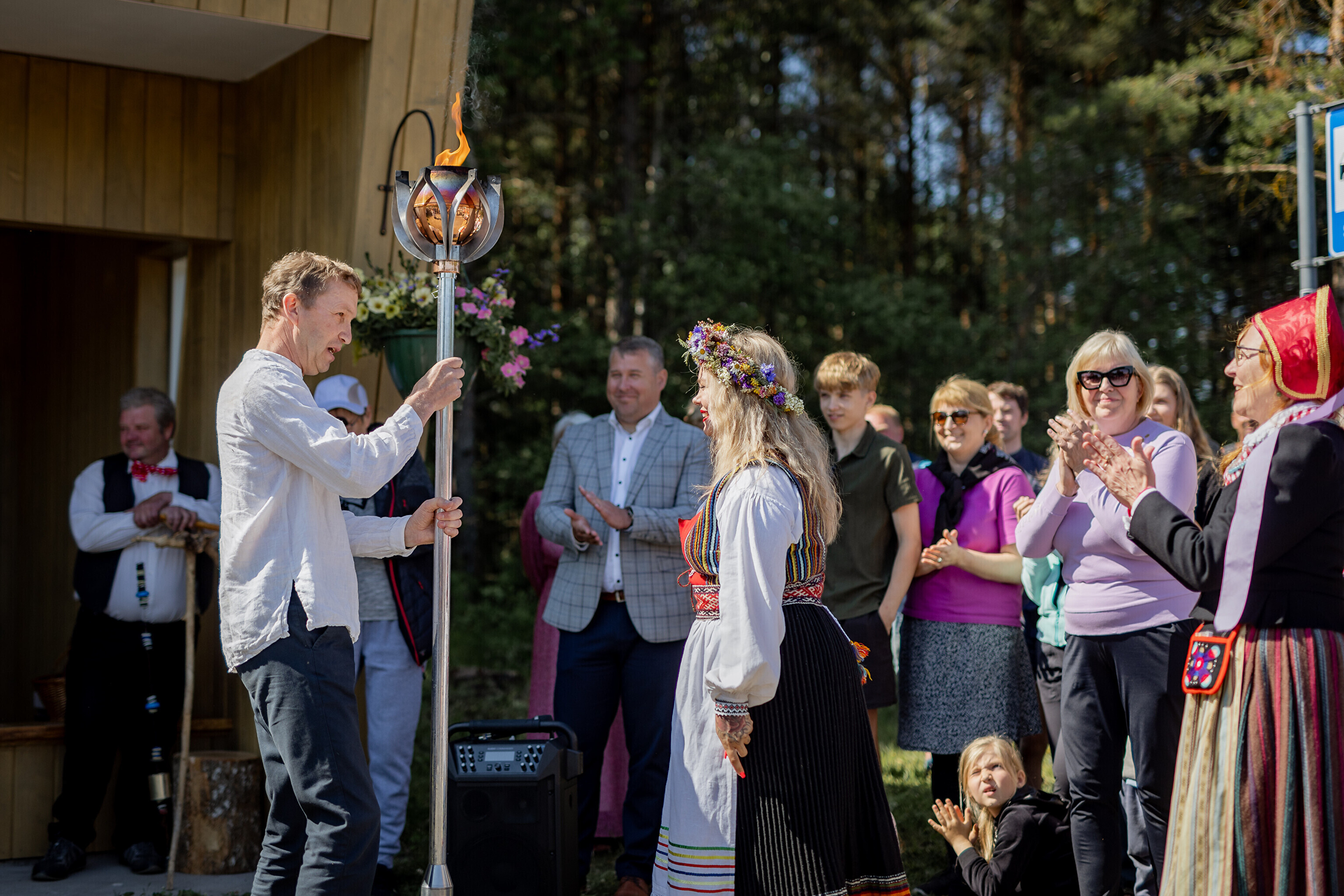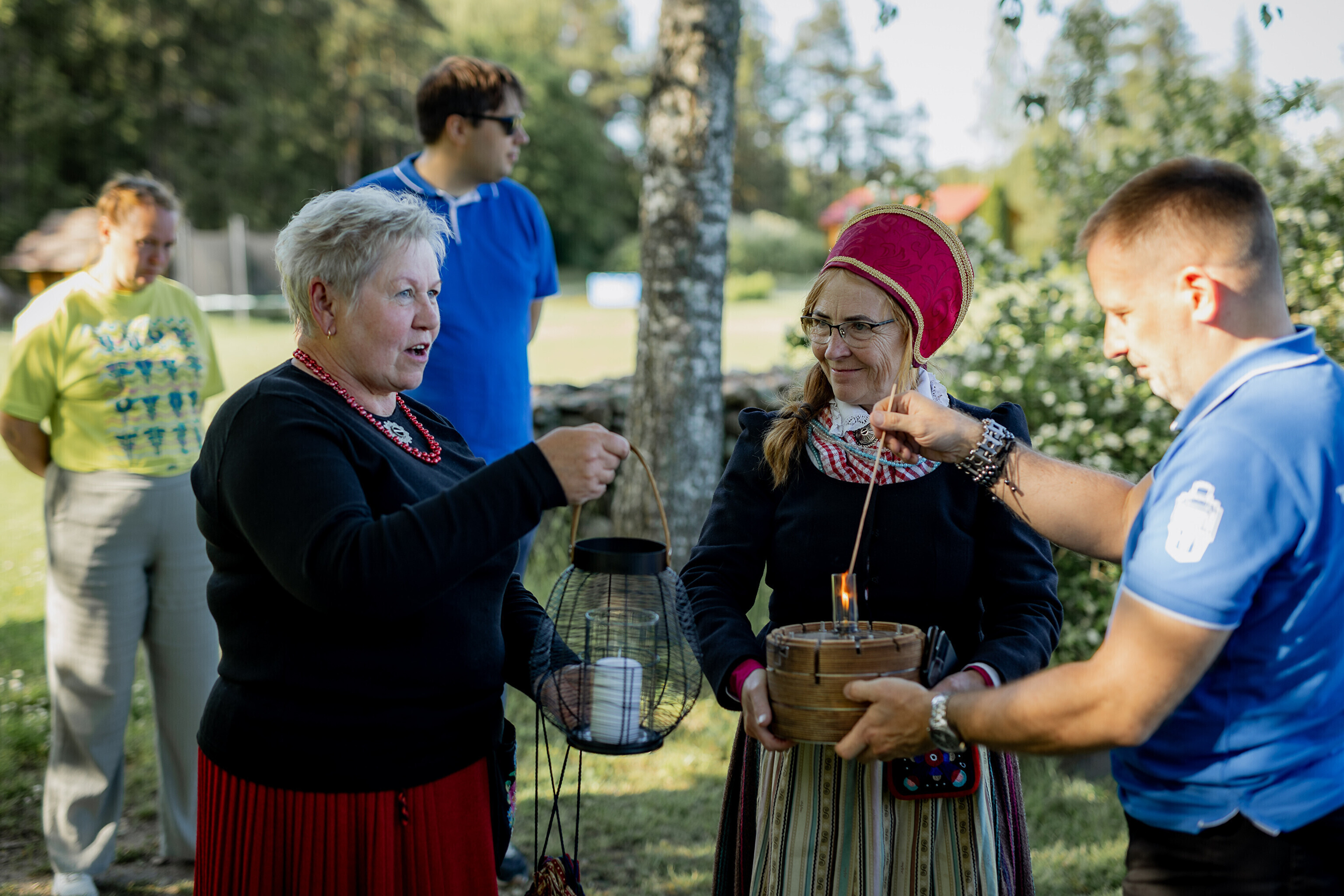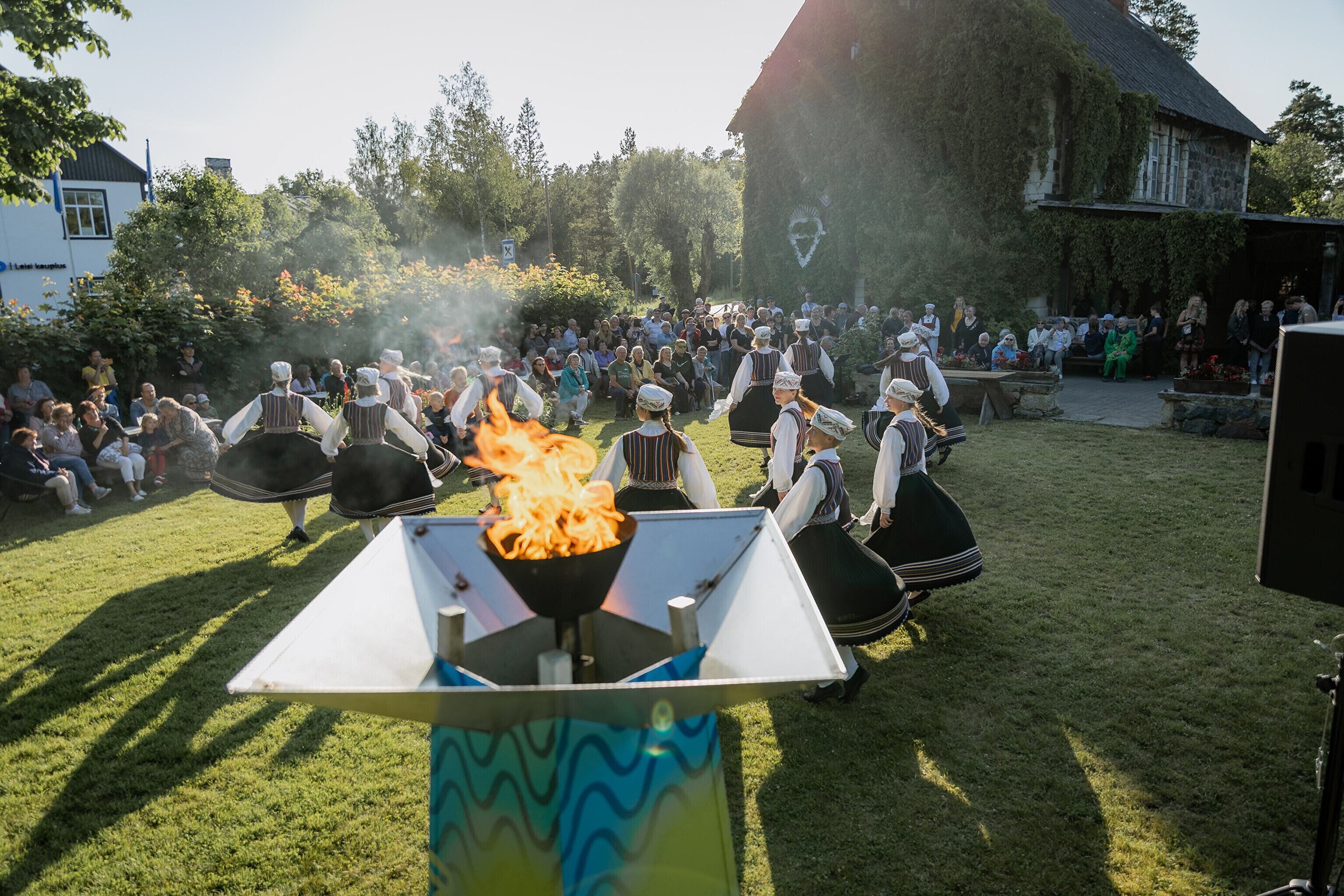 Последней остановкой праздничного огня на Сааремаа стал дом Sassimaja, куда местные жители заранее собрались для встречи праздничного огня.