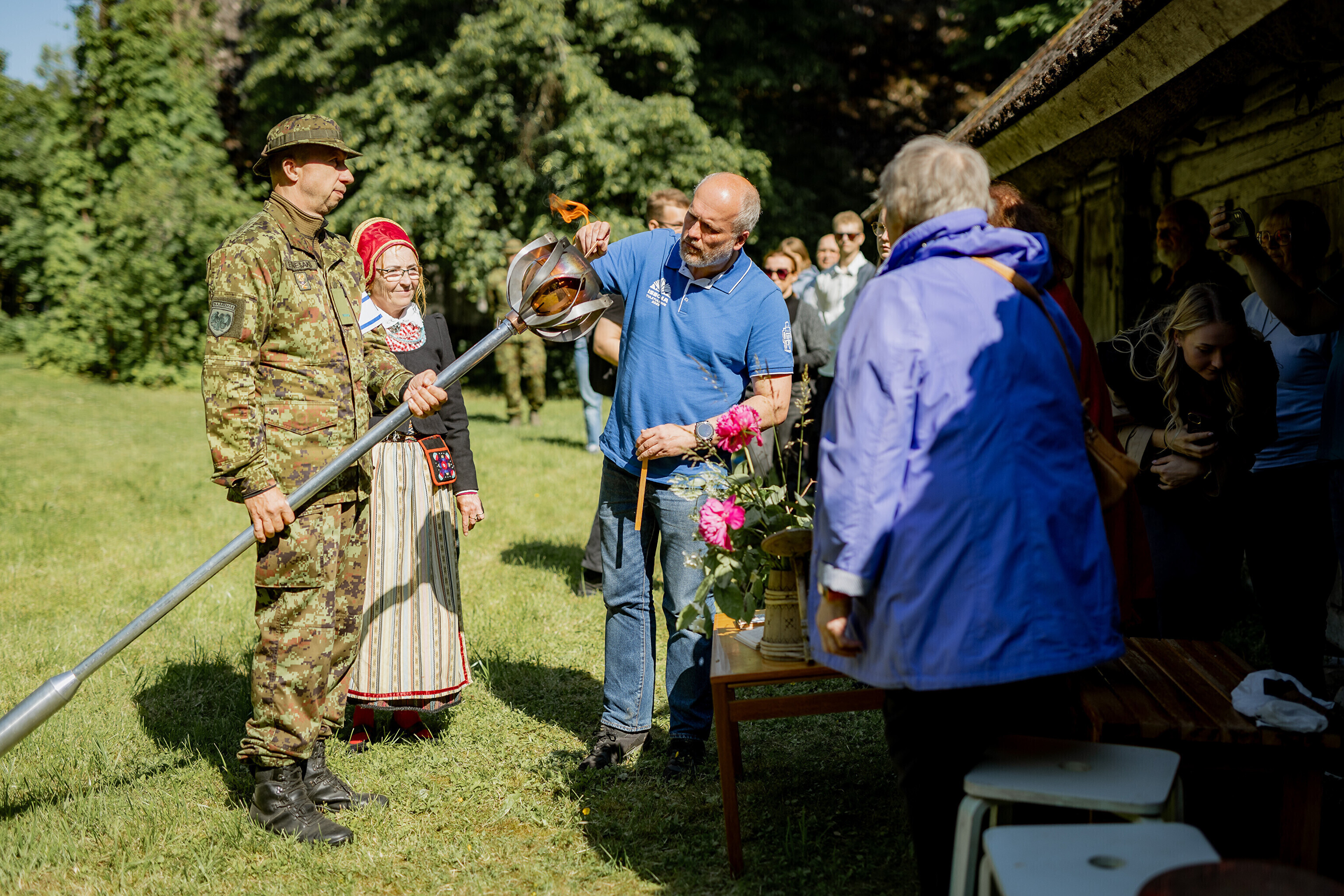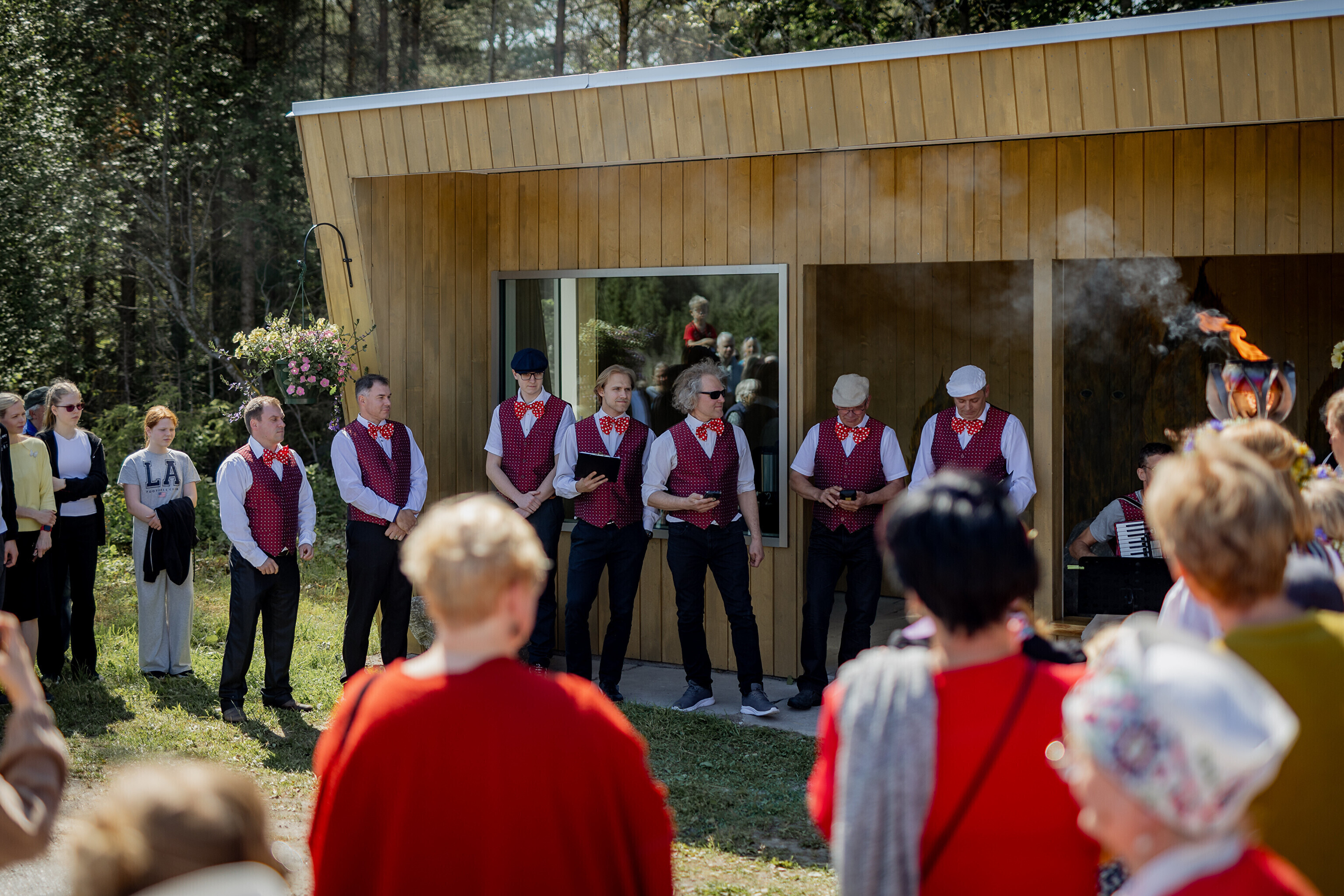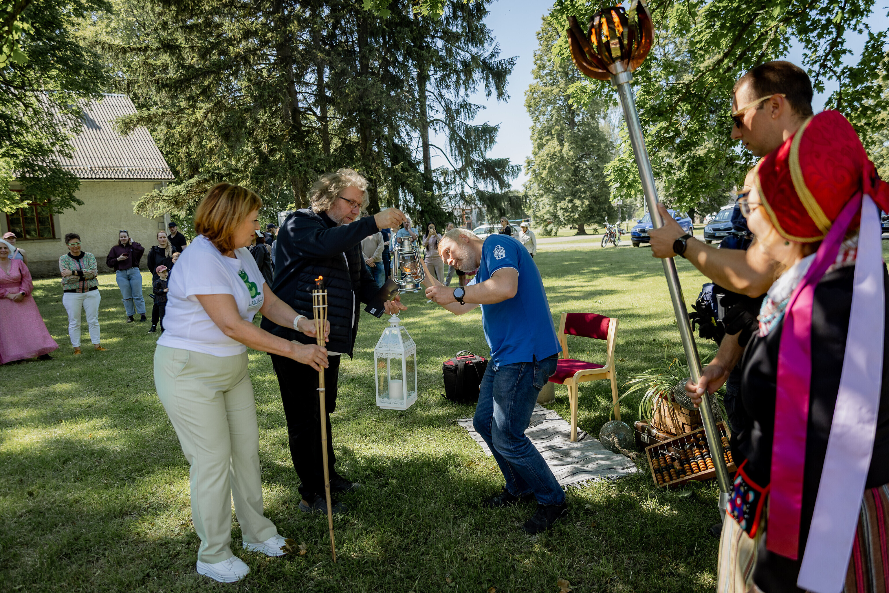 Последней остановкой праздничного огня на Сааремаа стал дом Sassimaja, куда местные жители заранее собрались для встречи праздничного огня.