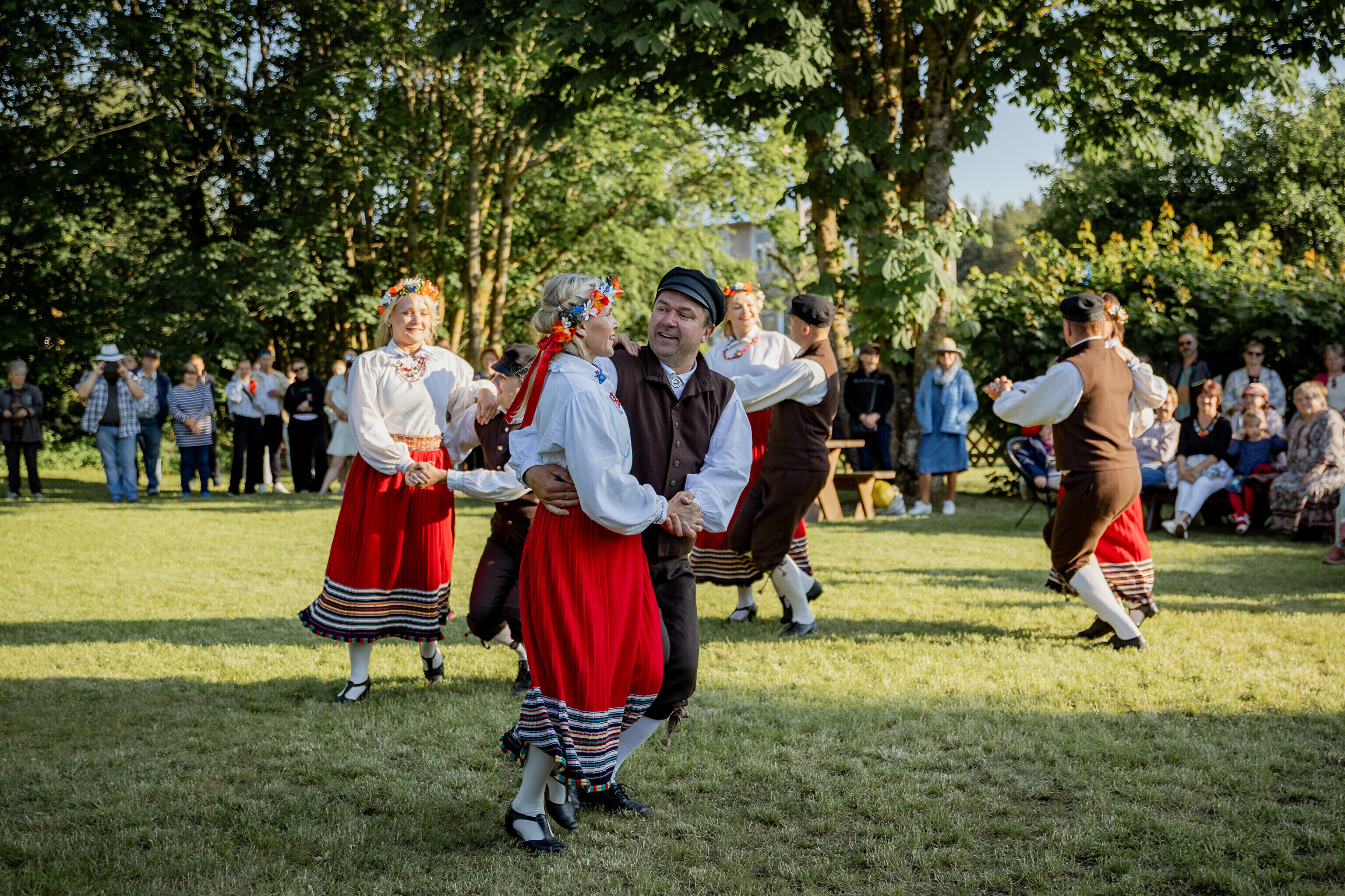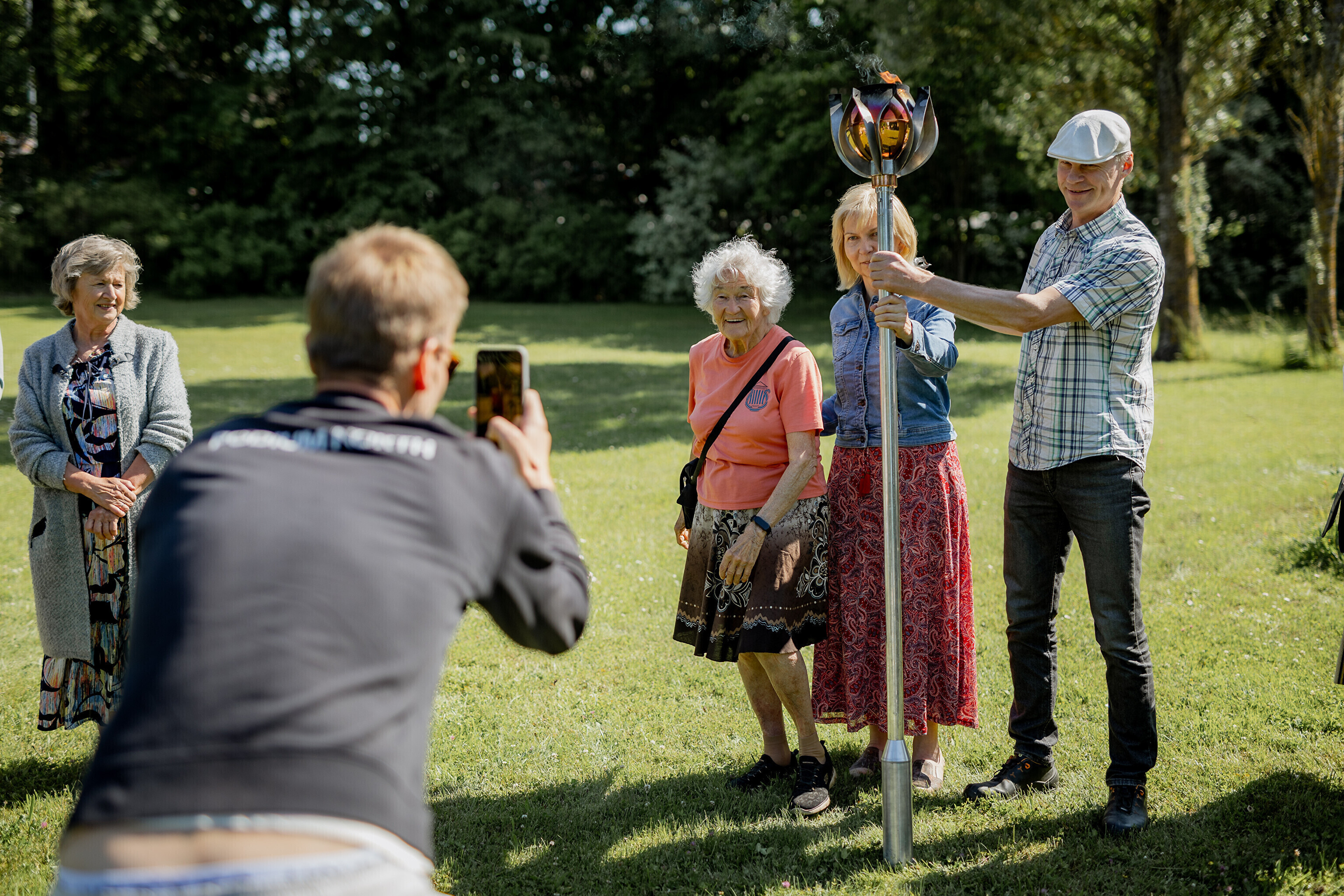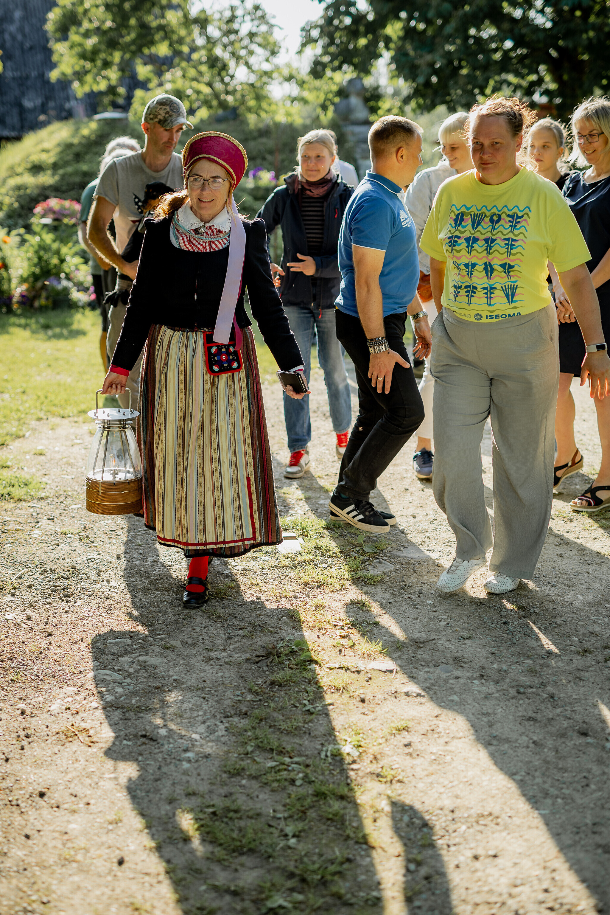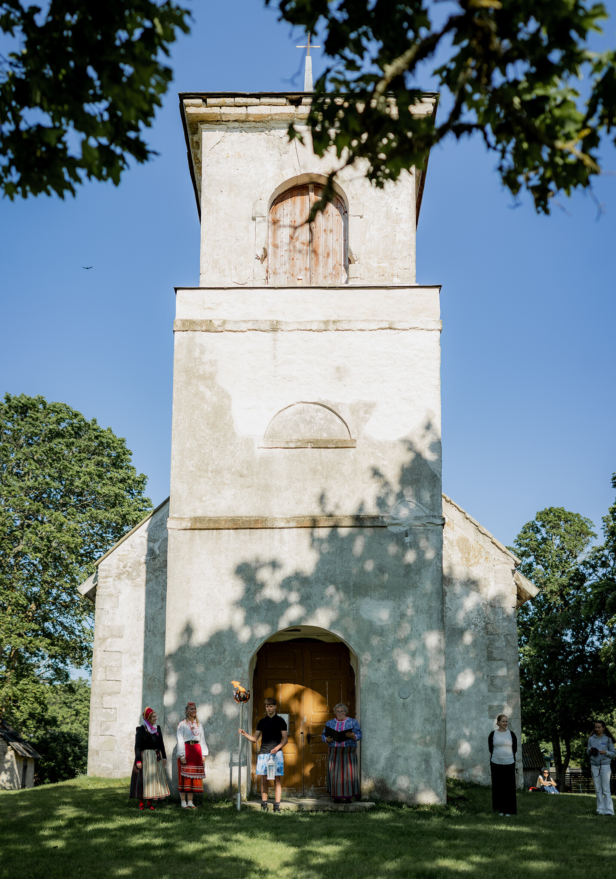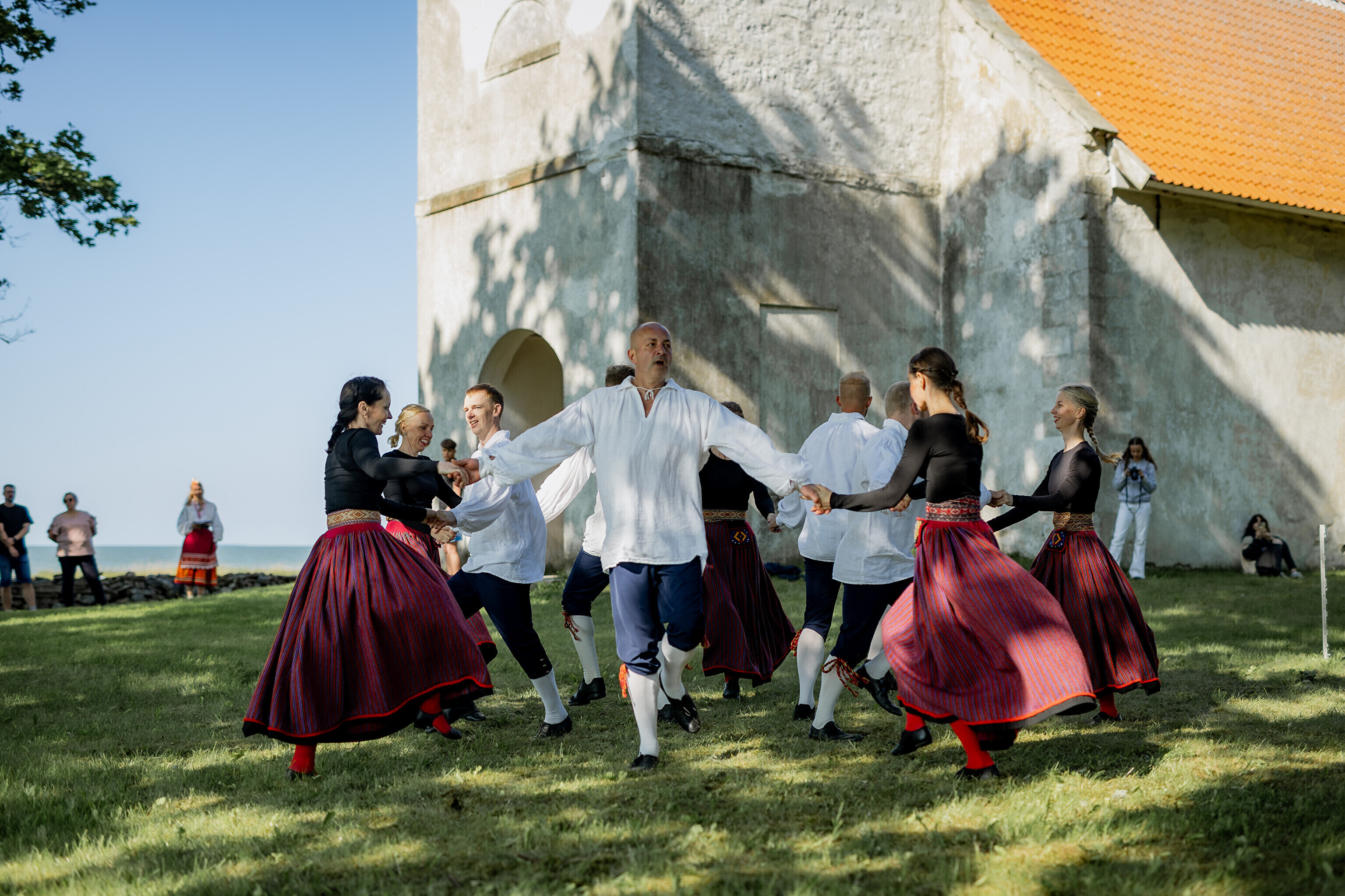 Путешествие огня по острову завершилось душевными встречами: в церкви Яани почтили память солиста ансамбля OORT, собирателя фольклора и автора песен Александера Сюнтера, под музыку которого народные танцоры из группы NOH увлекли публику. На Хиевалья, на родине писателя Хейно Вяли, его поэзию читала Айна Томсон. Затем огонь прибыл в деревню Ыэсте.