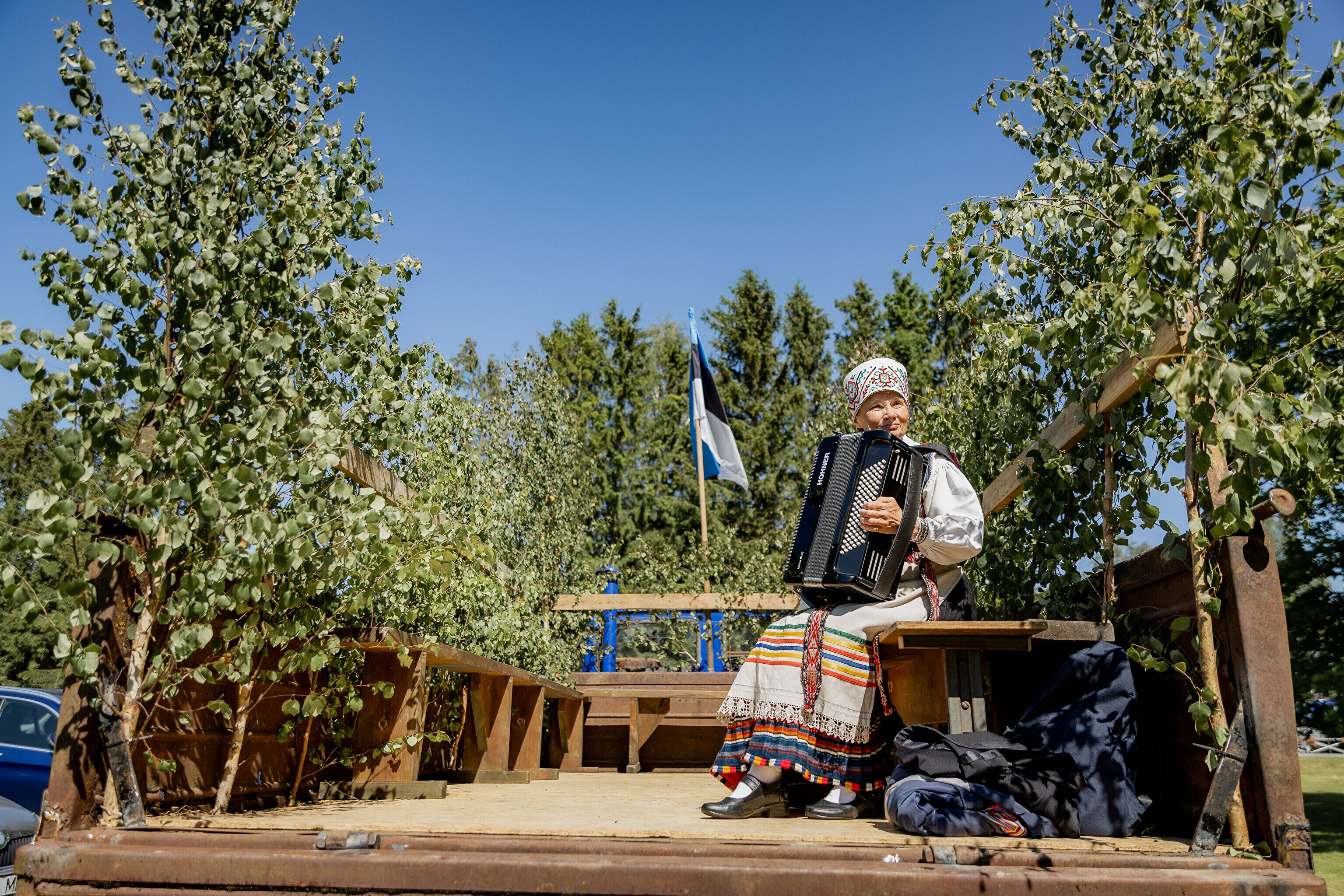 На автобусной остановке Сааре, оформленной в честь детского писателя и поэта Хенно Кяо, публику радовала группа Laimjala Lipsud, исполняющая произведения Кяо.