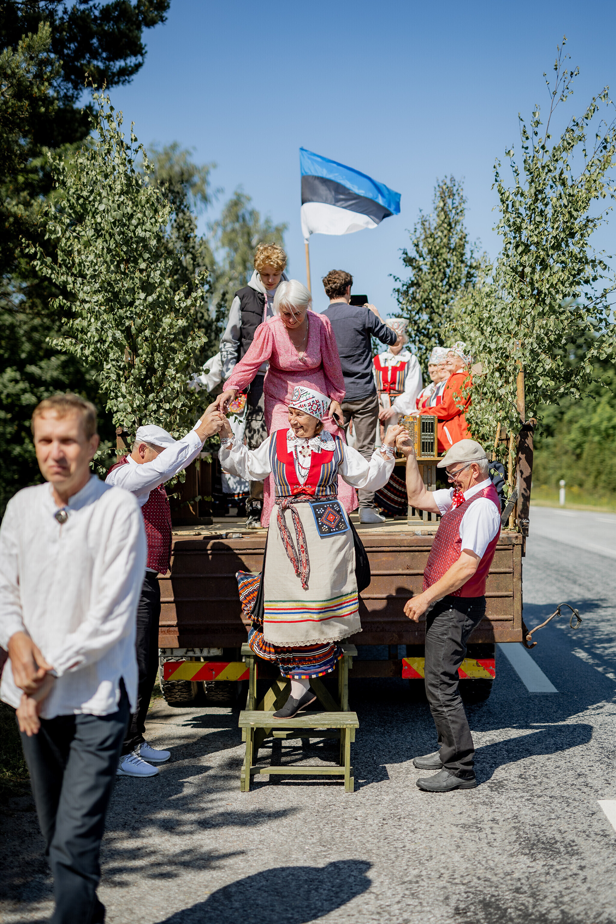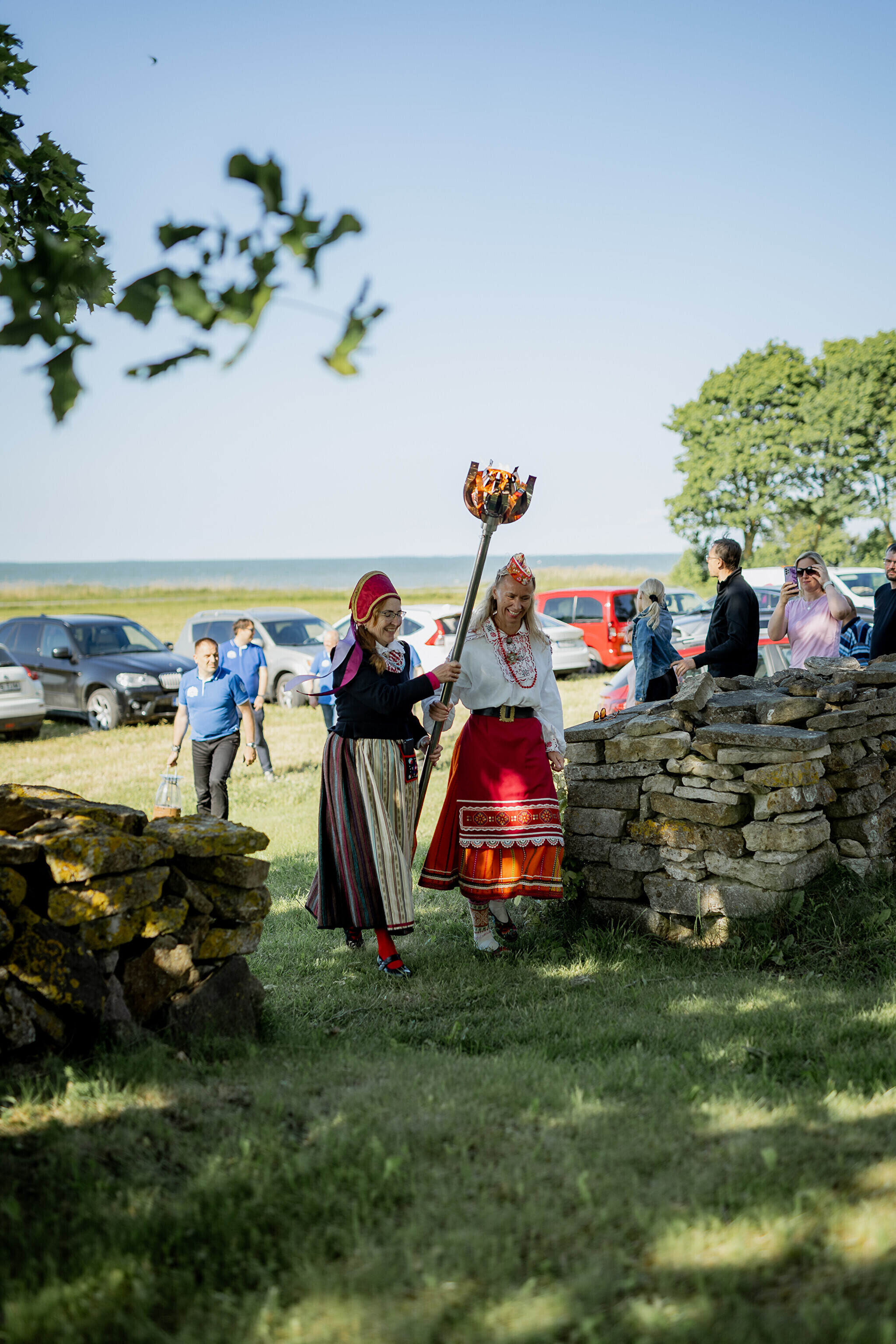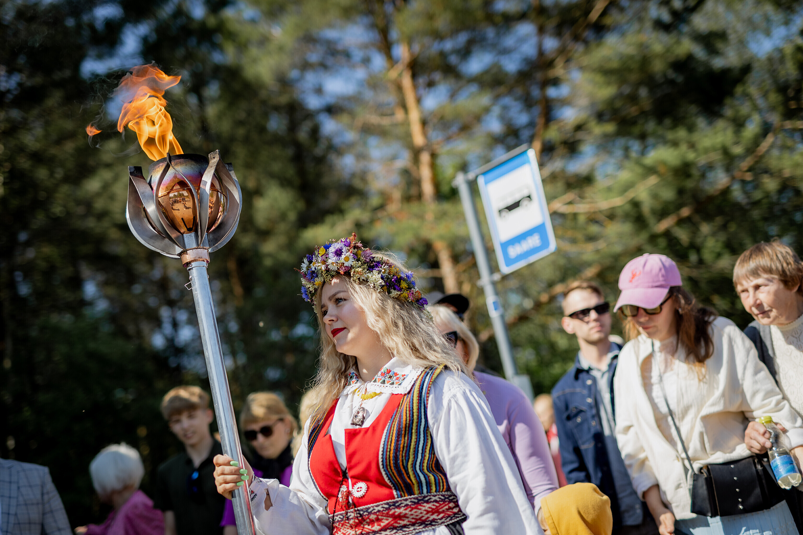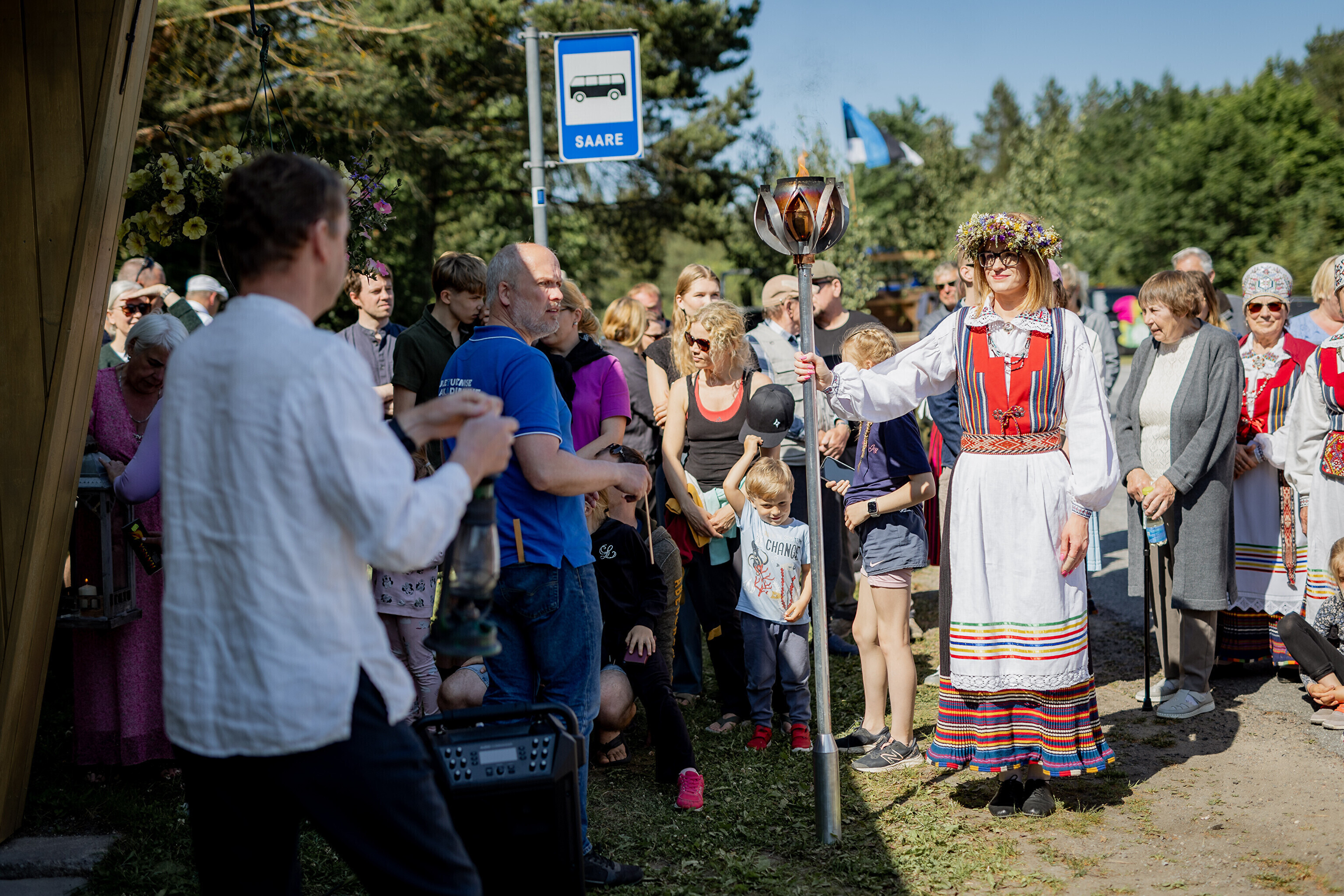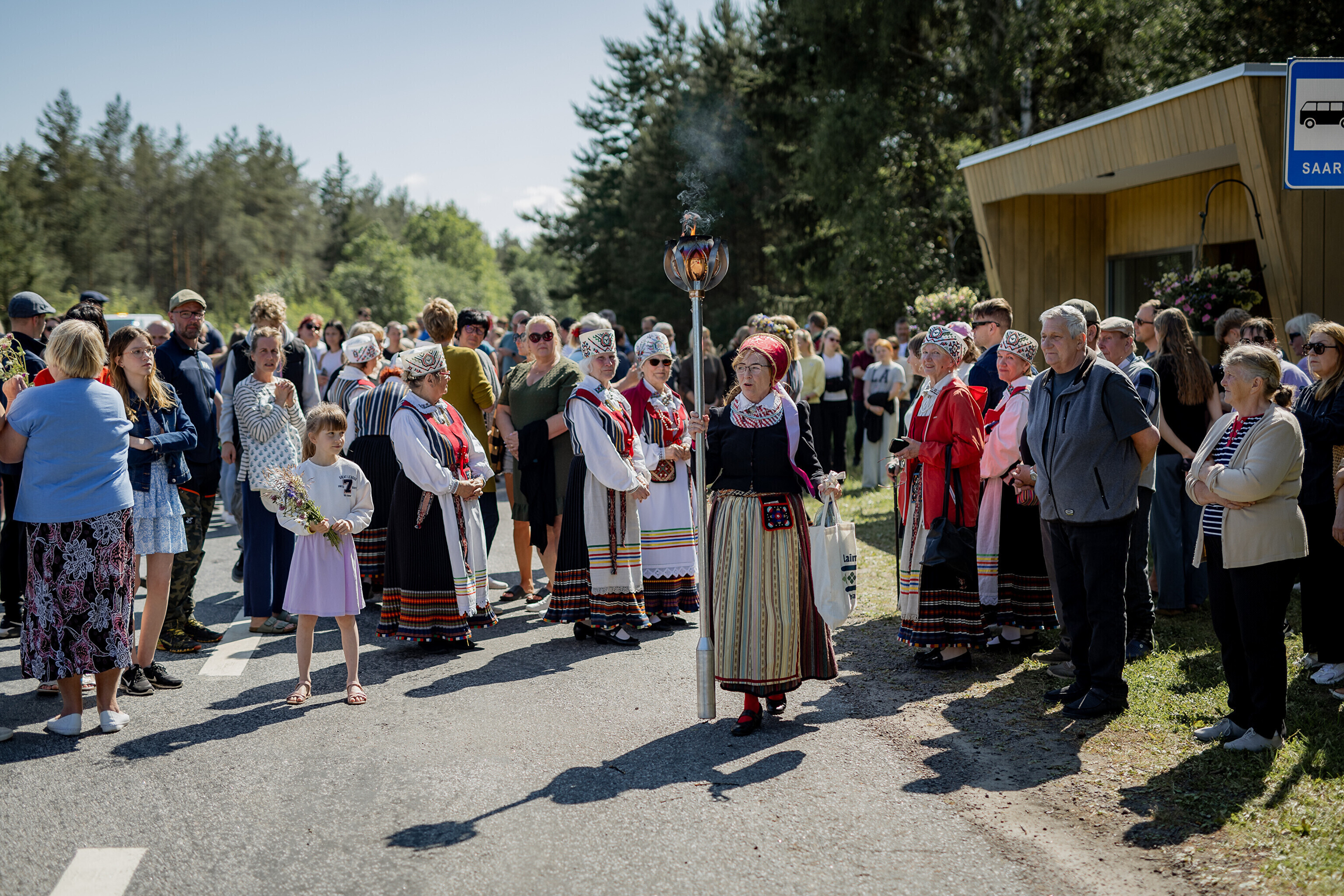 Из парка мызы Лаймъяла огонь погрузили на большой грузовик, в кузове которого веселились местные танцоры и музыканты. На грузовике огонь доставили к автобусной остановке Сааре.