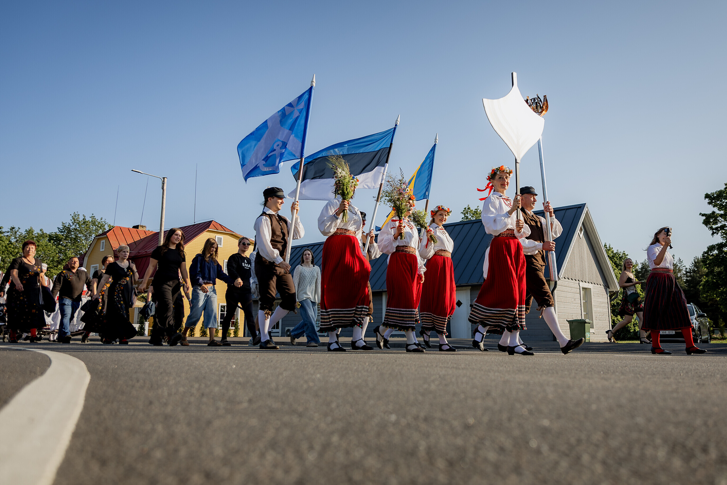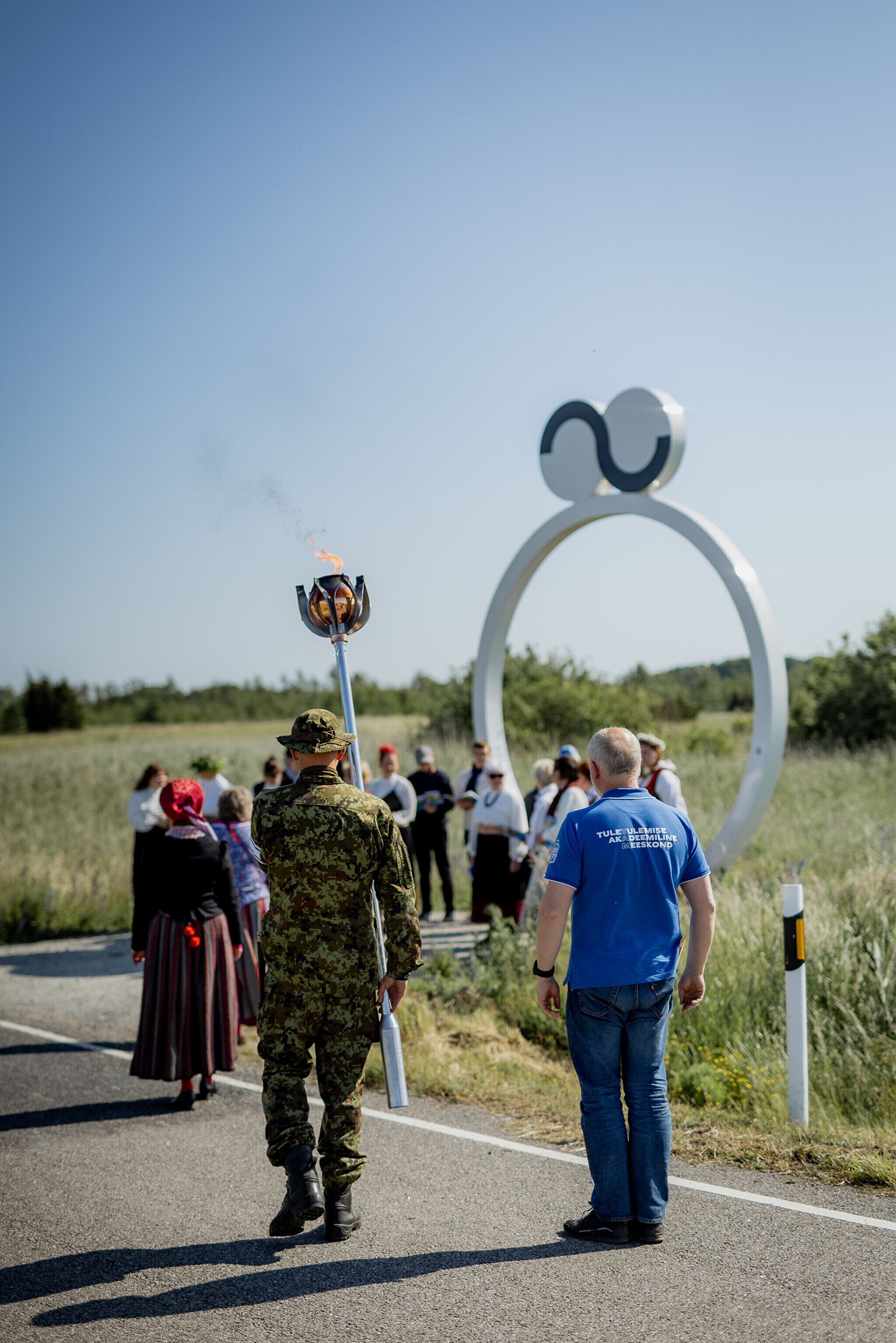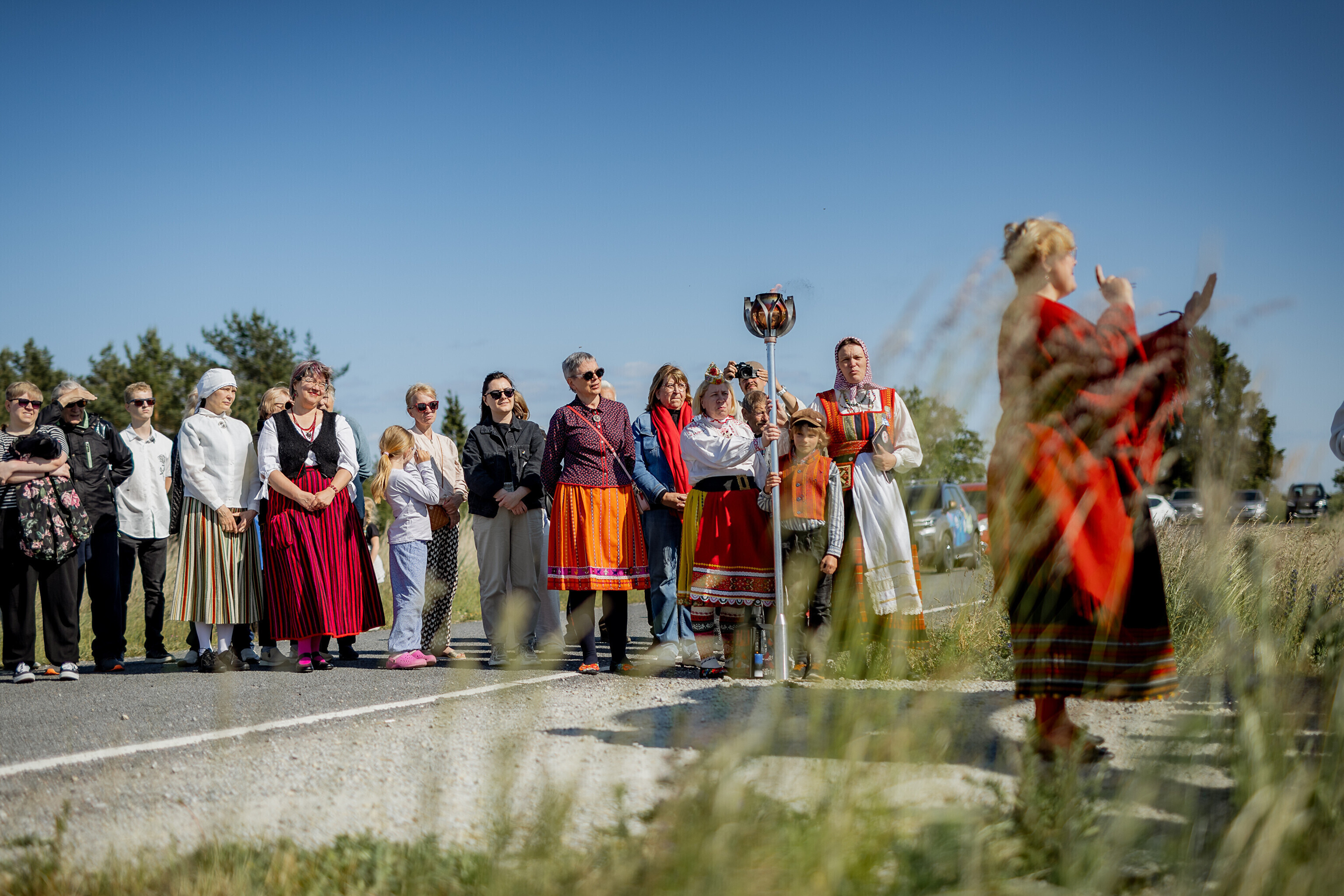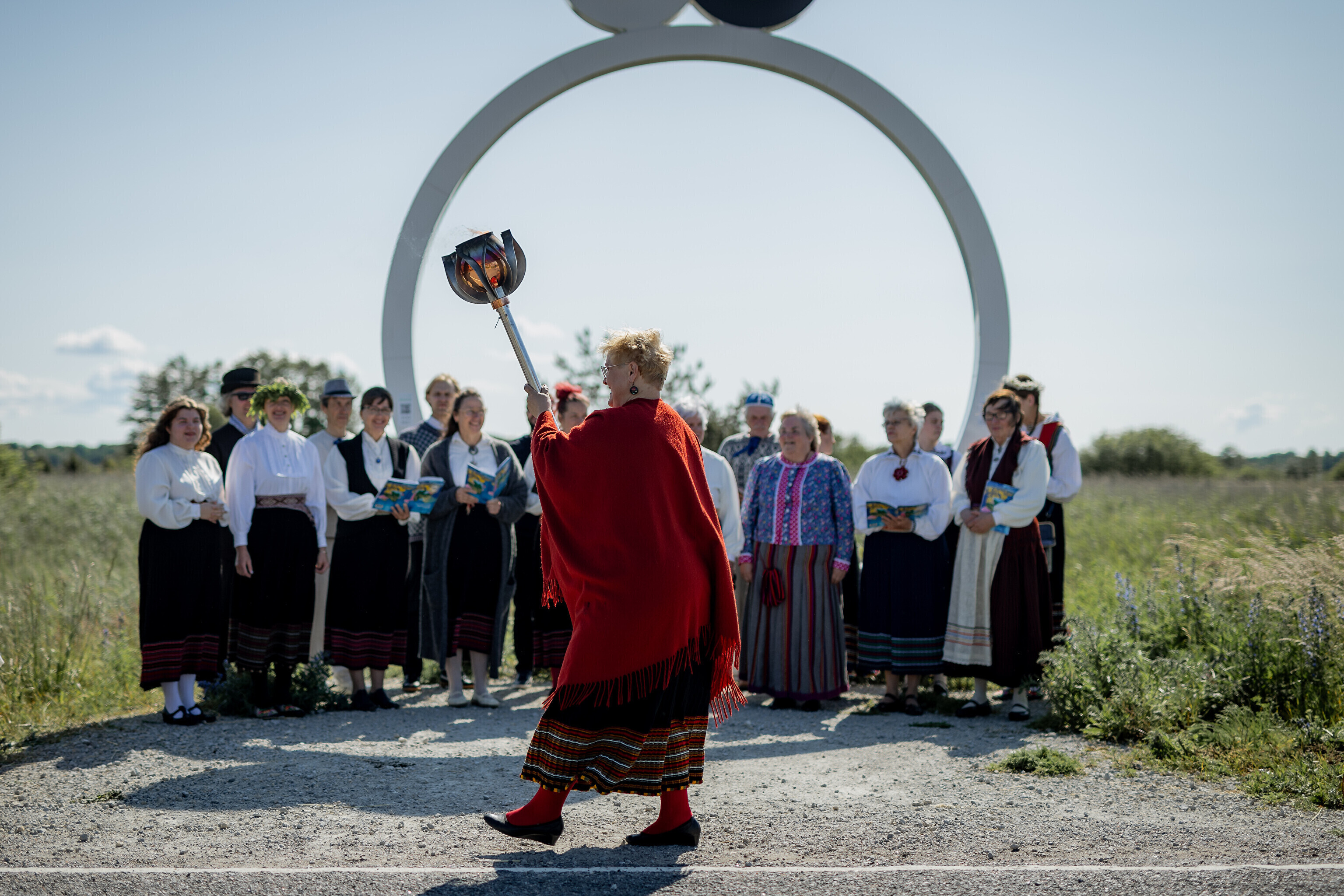 Из деревни Муй огонь праздника песни и танца в сопровождении представителей Кайтселийта направился к границе Ö и Õ - к месту, где в честь сааремааского диалекта установлена буква Ö.