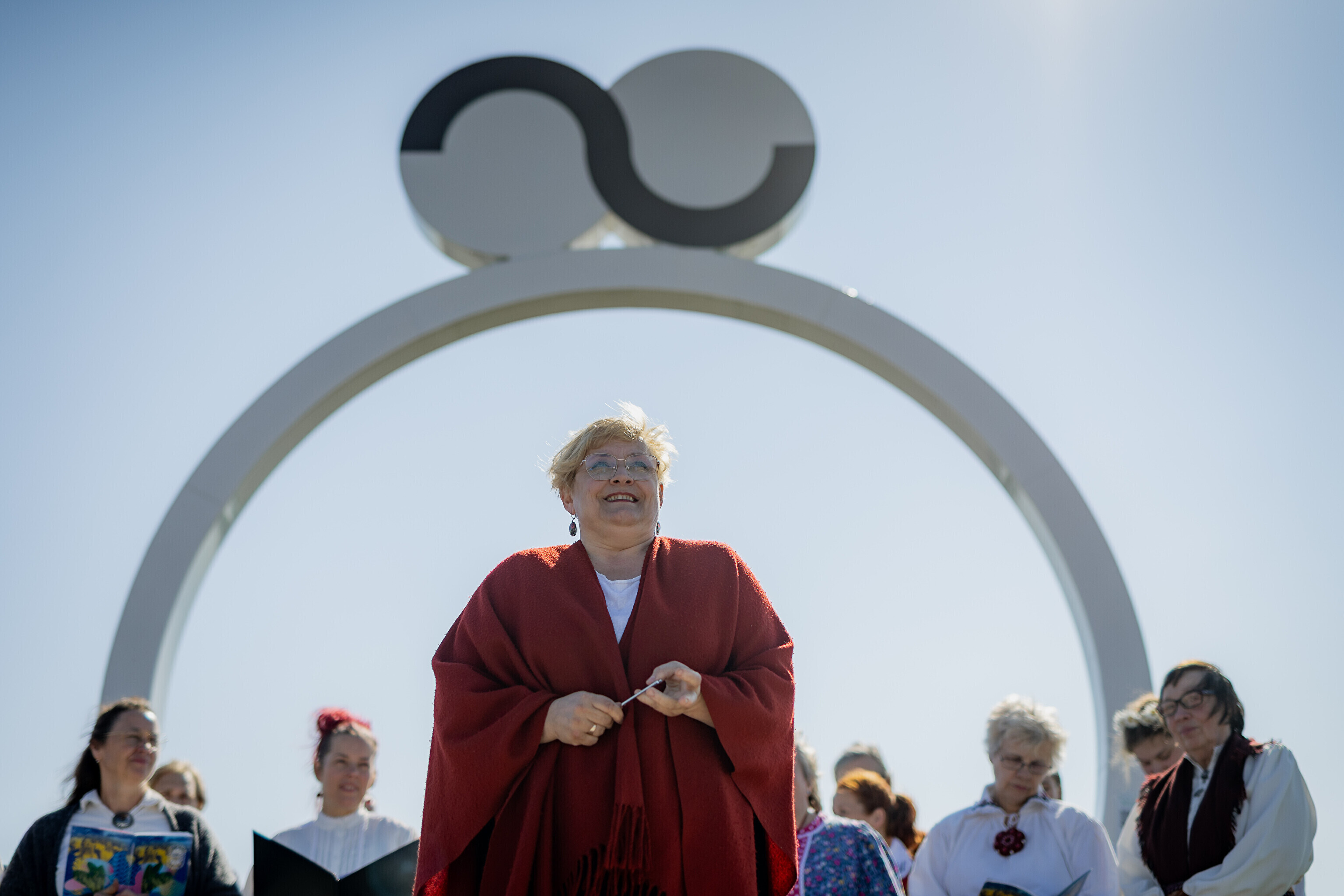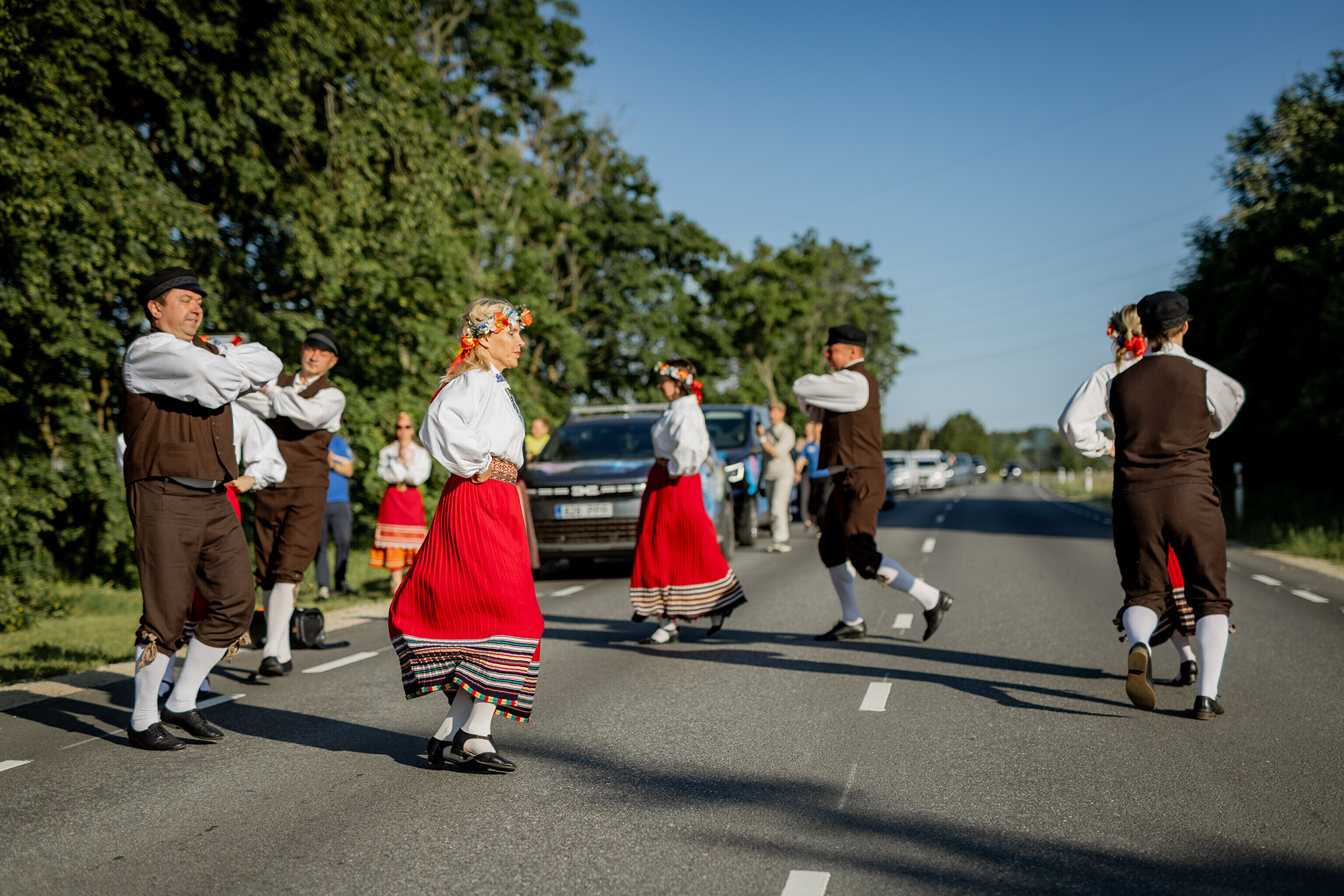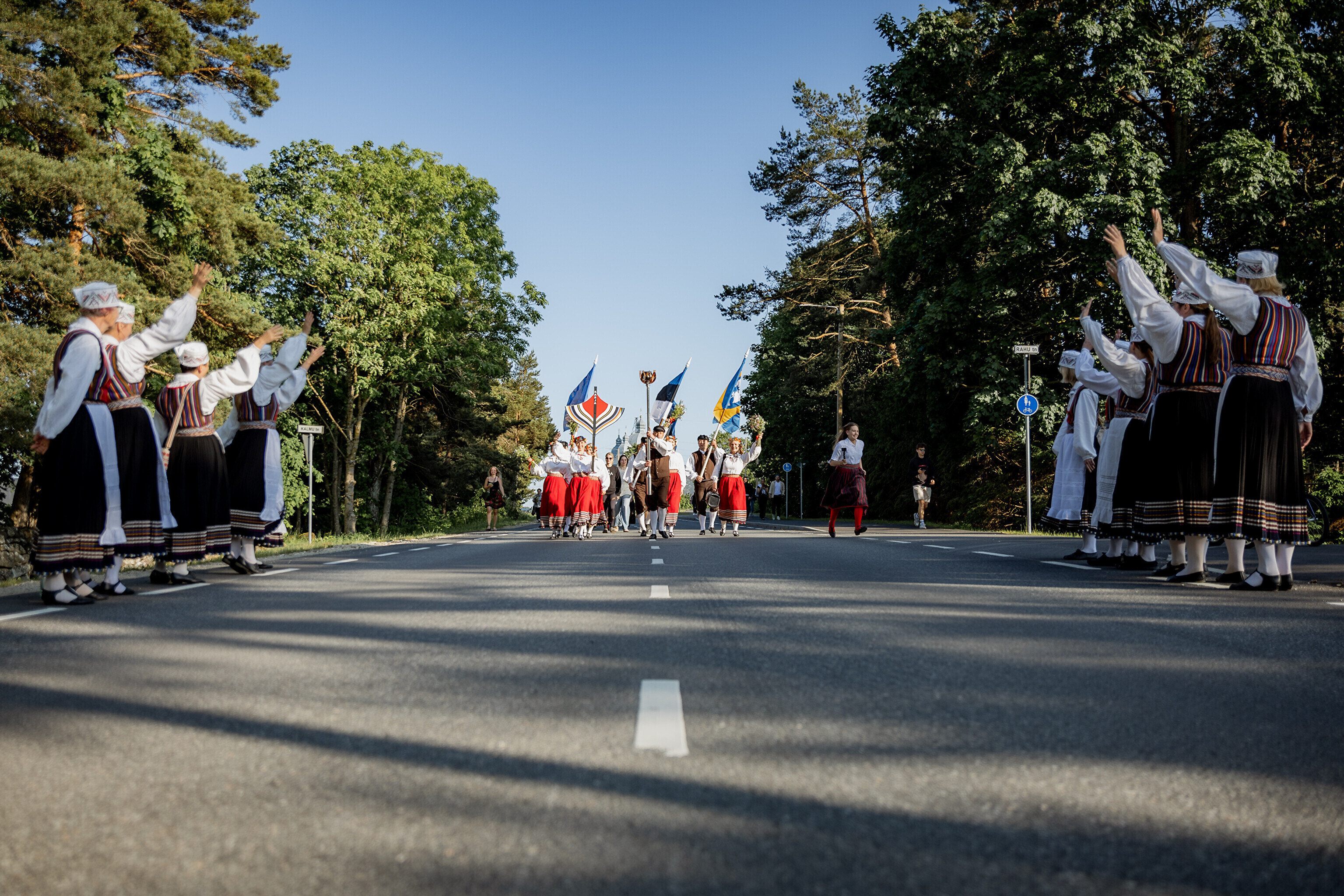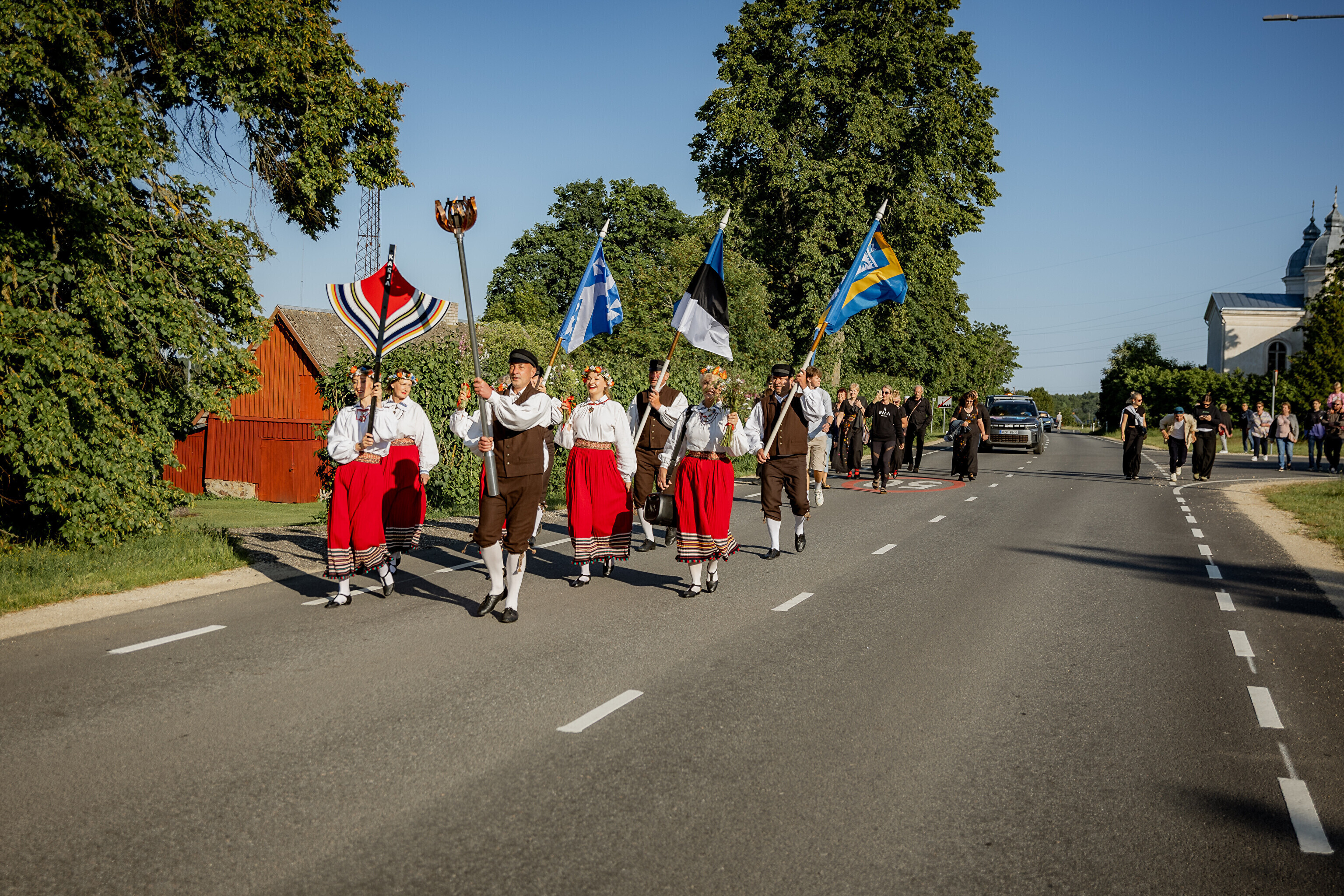Из деревни Муй огонь праздника песни и танца в сопровождении представителей Кайтселийта направился к границе Ö и Õ - к месту, где в честь сааремааского диалекта установлена буква Ö.