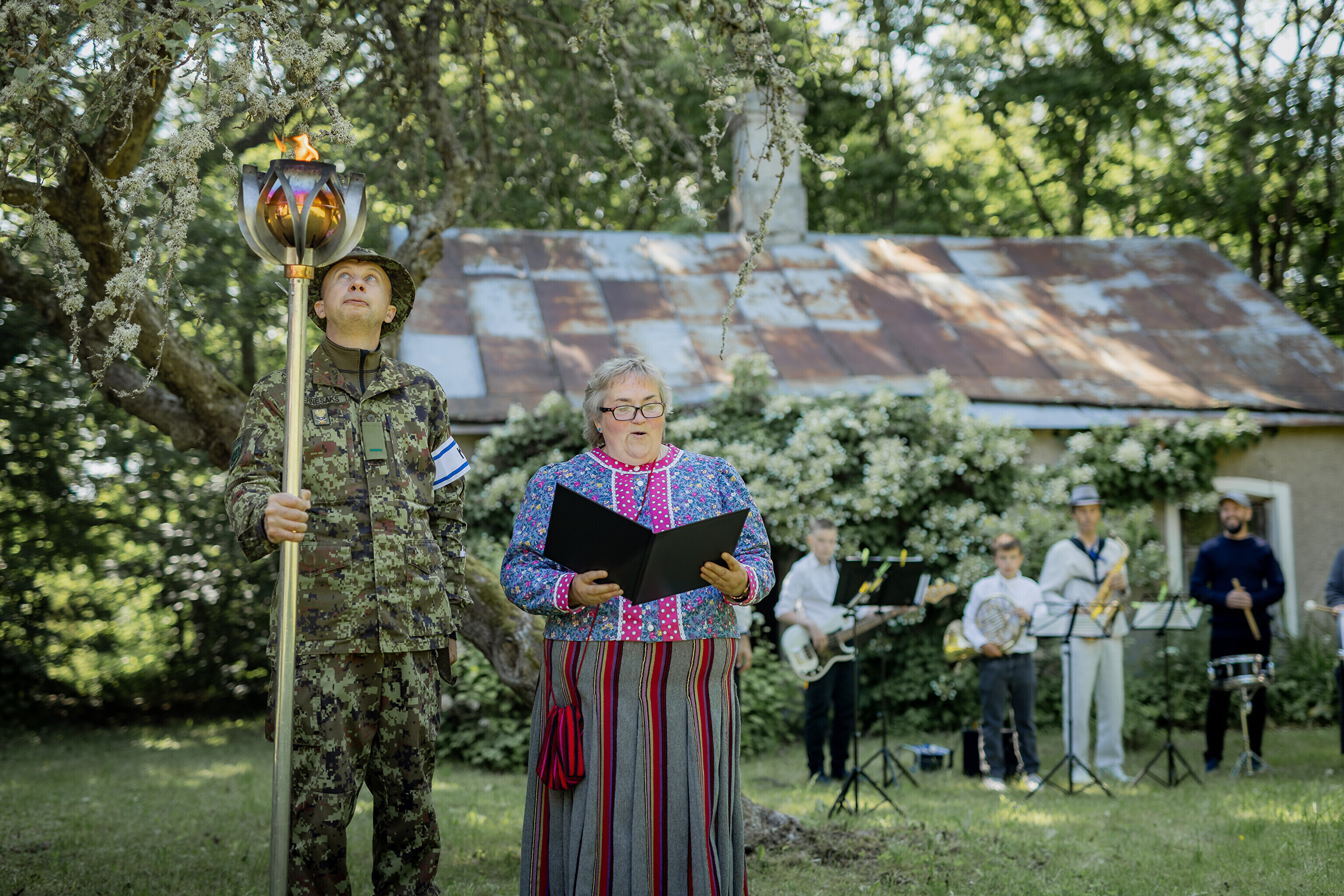 Следующая остановка ждала в деревне Муй, где родилась писательница и поэтесса Айра Каалу. Творчество дорогой для земляков поэтессы представила Ану Вильясте. При встрече праздничного огня настроение создавал духовой оркестр Orissaare Brass.