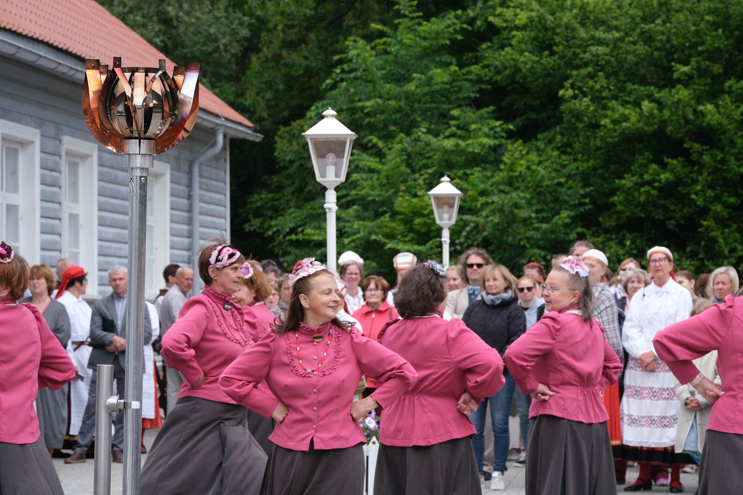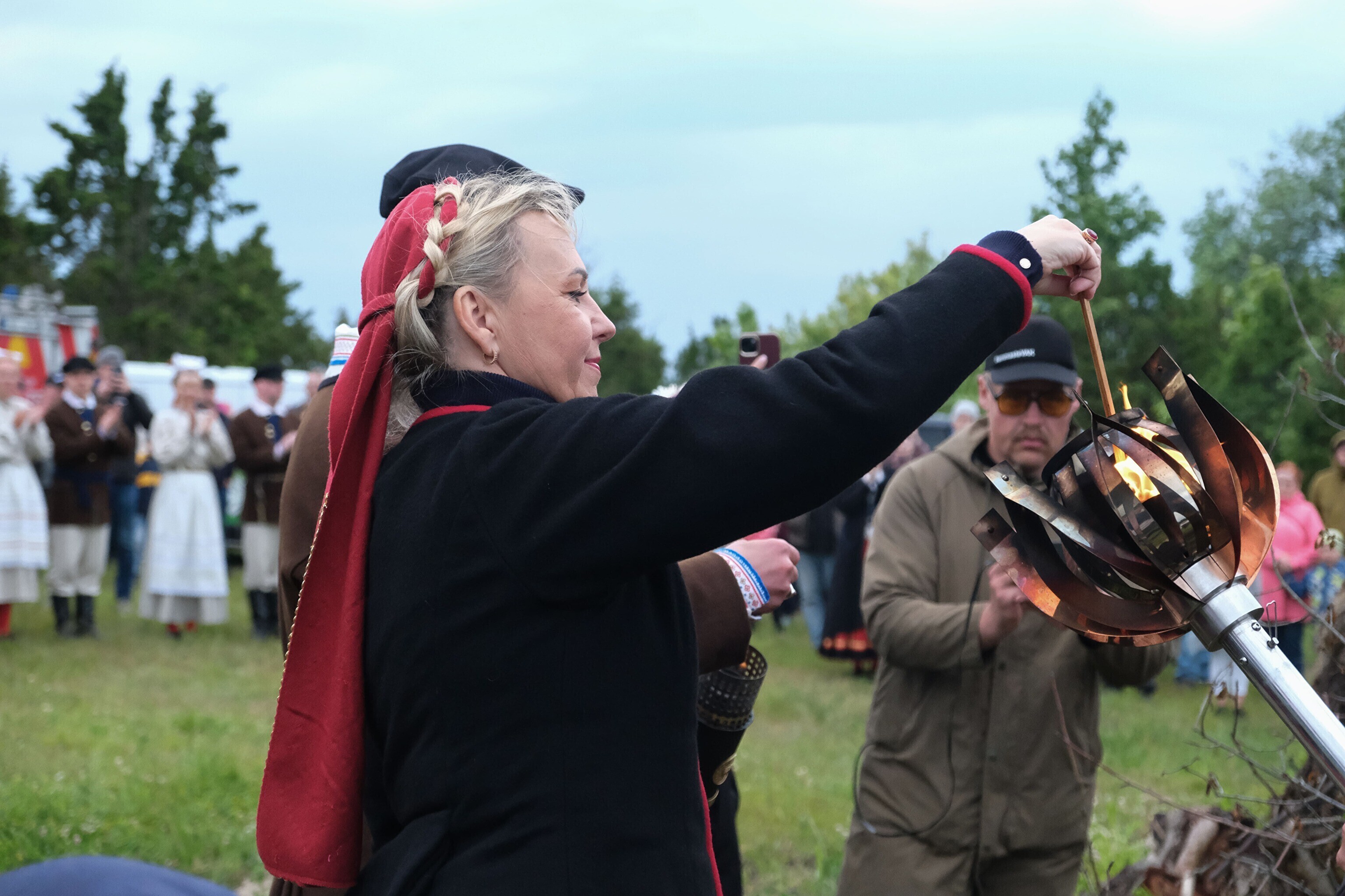 Вечер набрал обороты у праздничного костра, который был зажжен от объединенного пламени Праздника песни и танца и победного огня. Праздничный огонь зажгла главная постановщица нынешнего танцевального праздника "Iseoma" - Хелена-Мариана Рейманн.