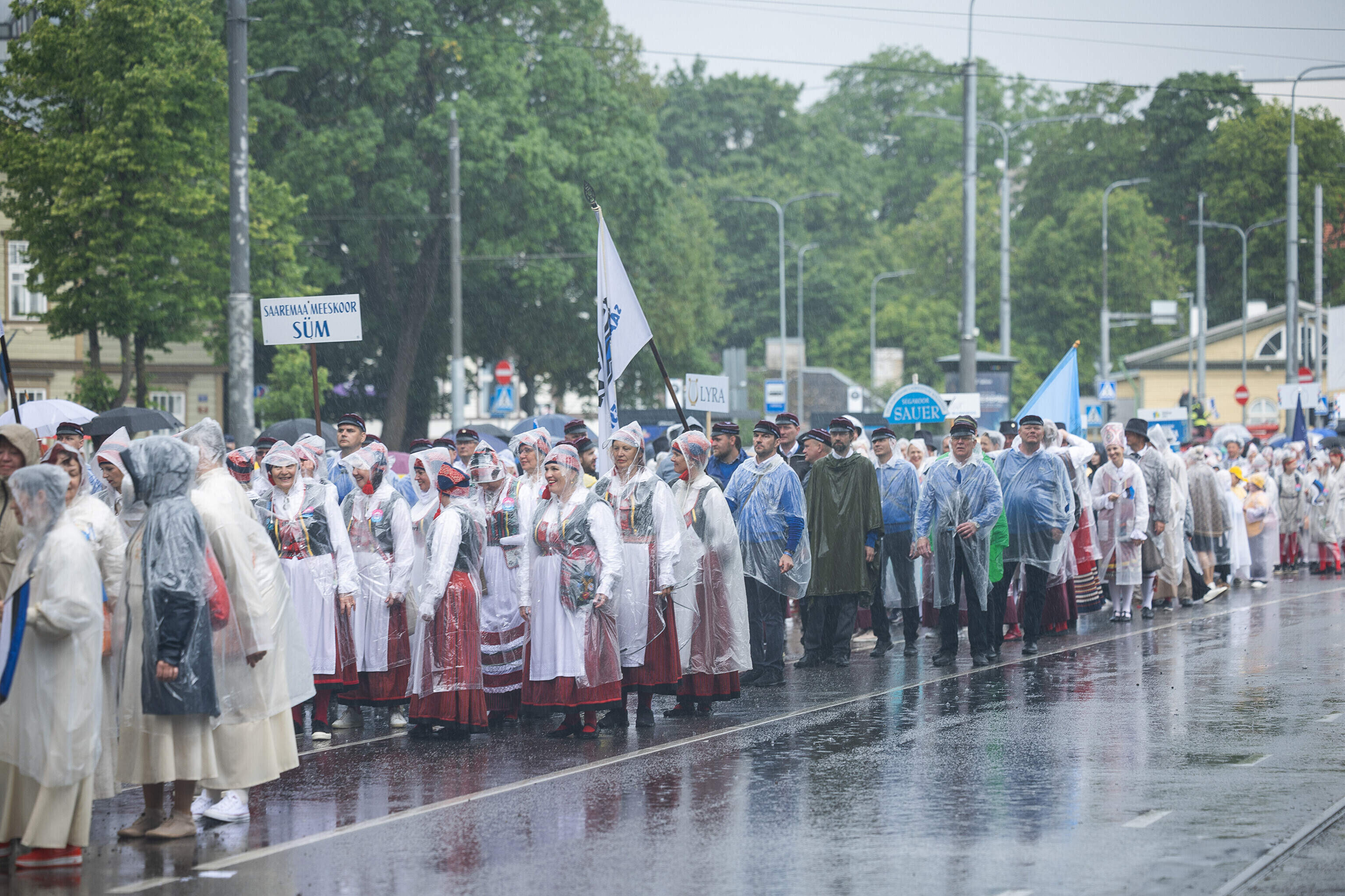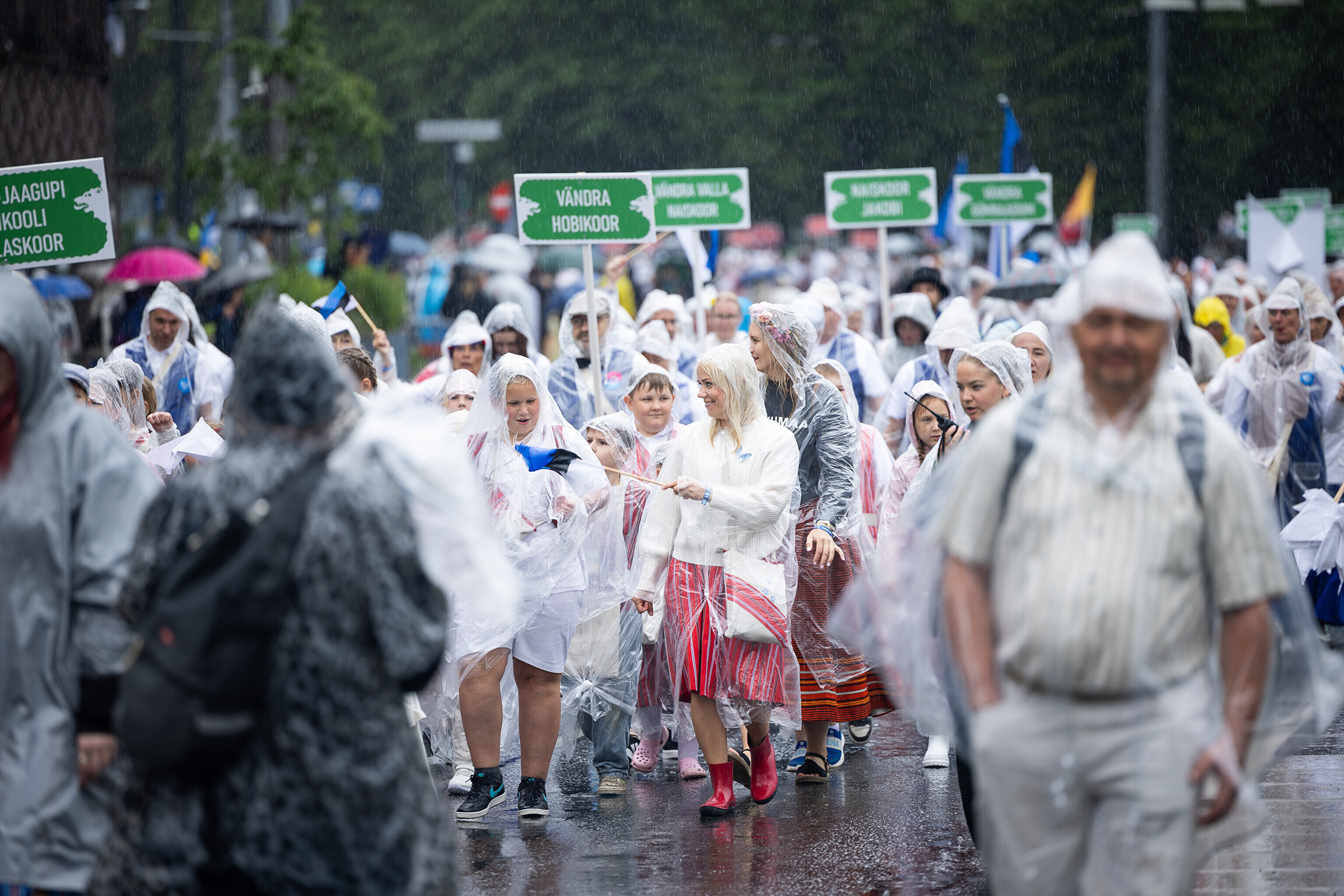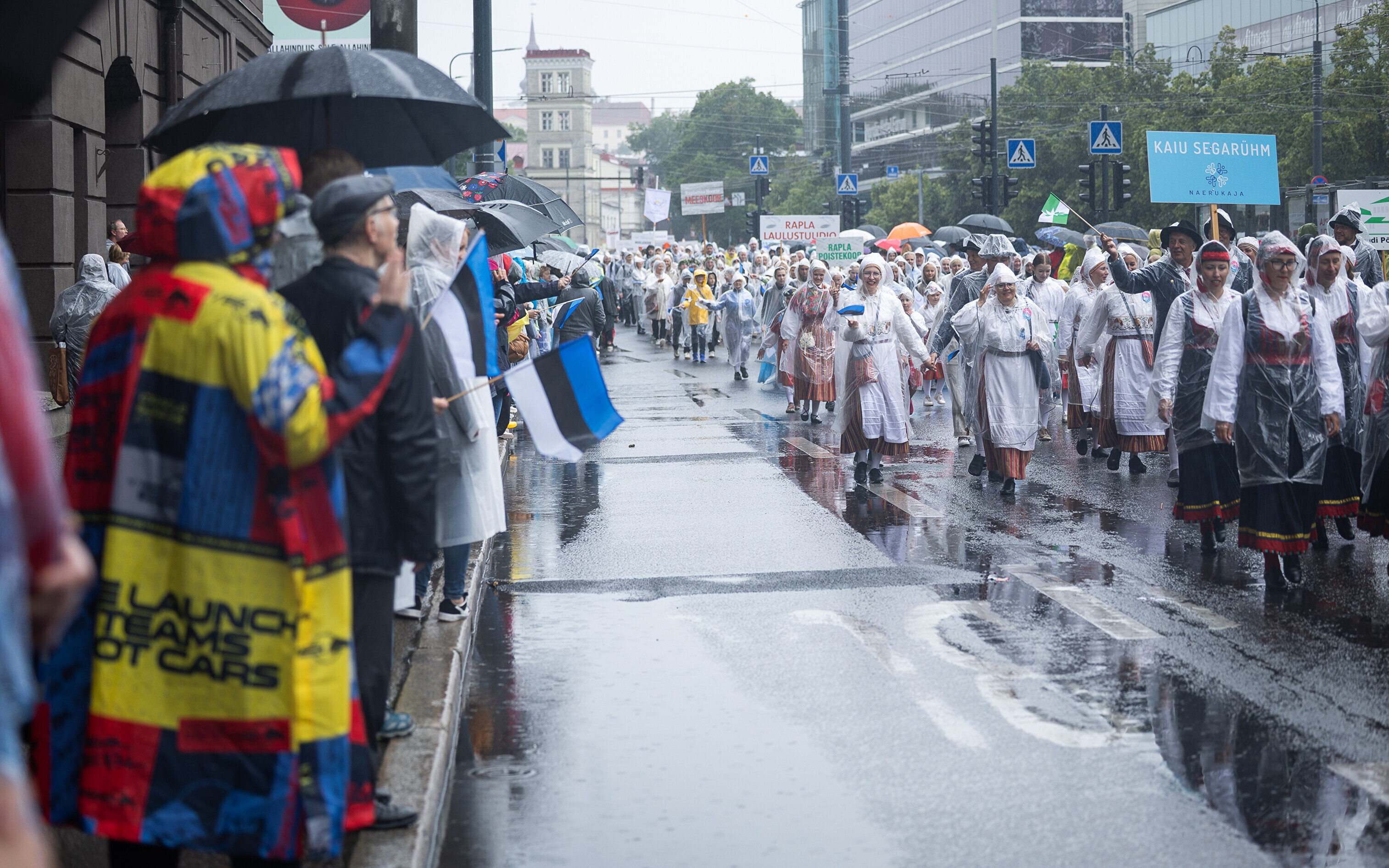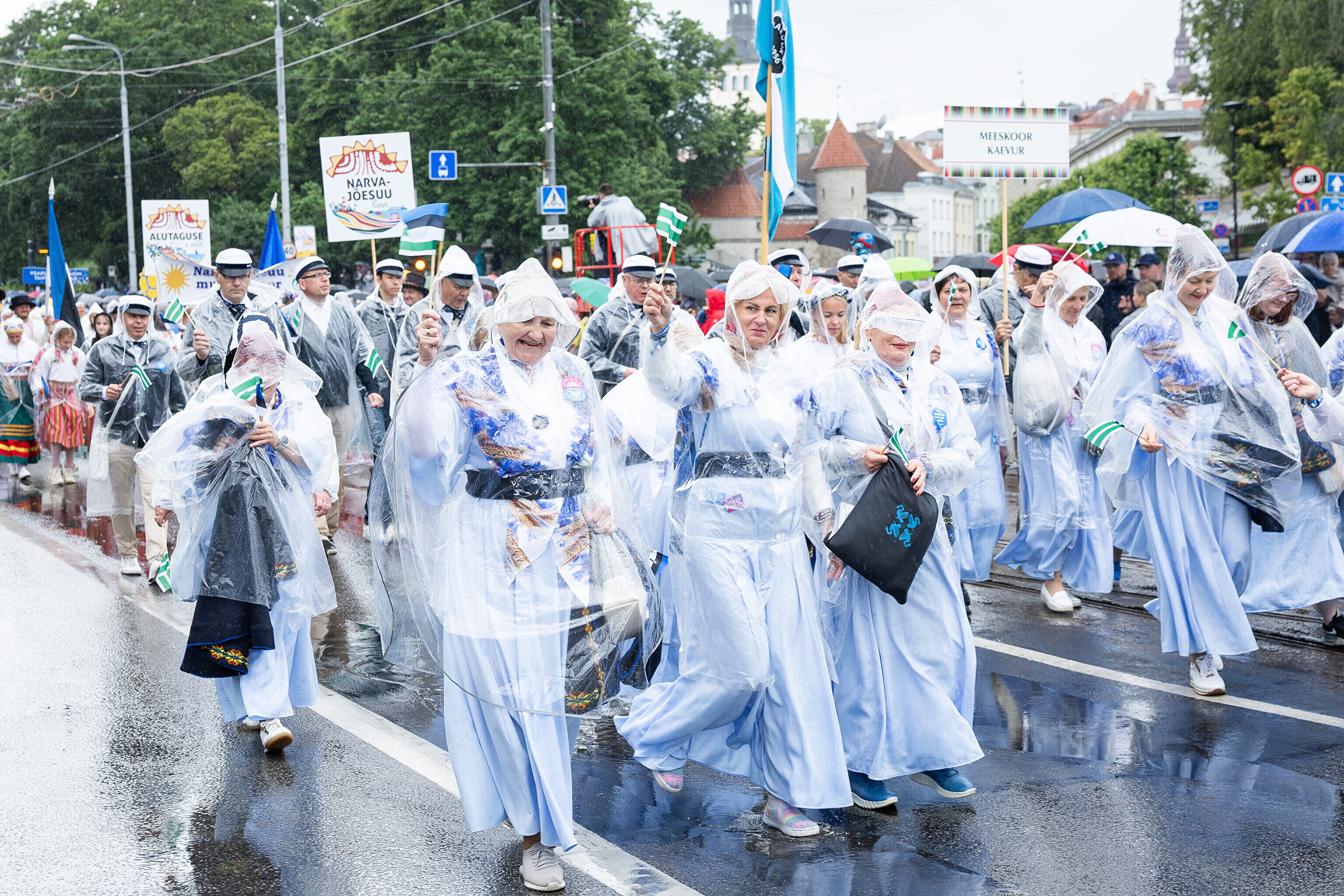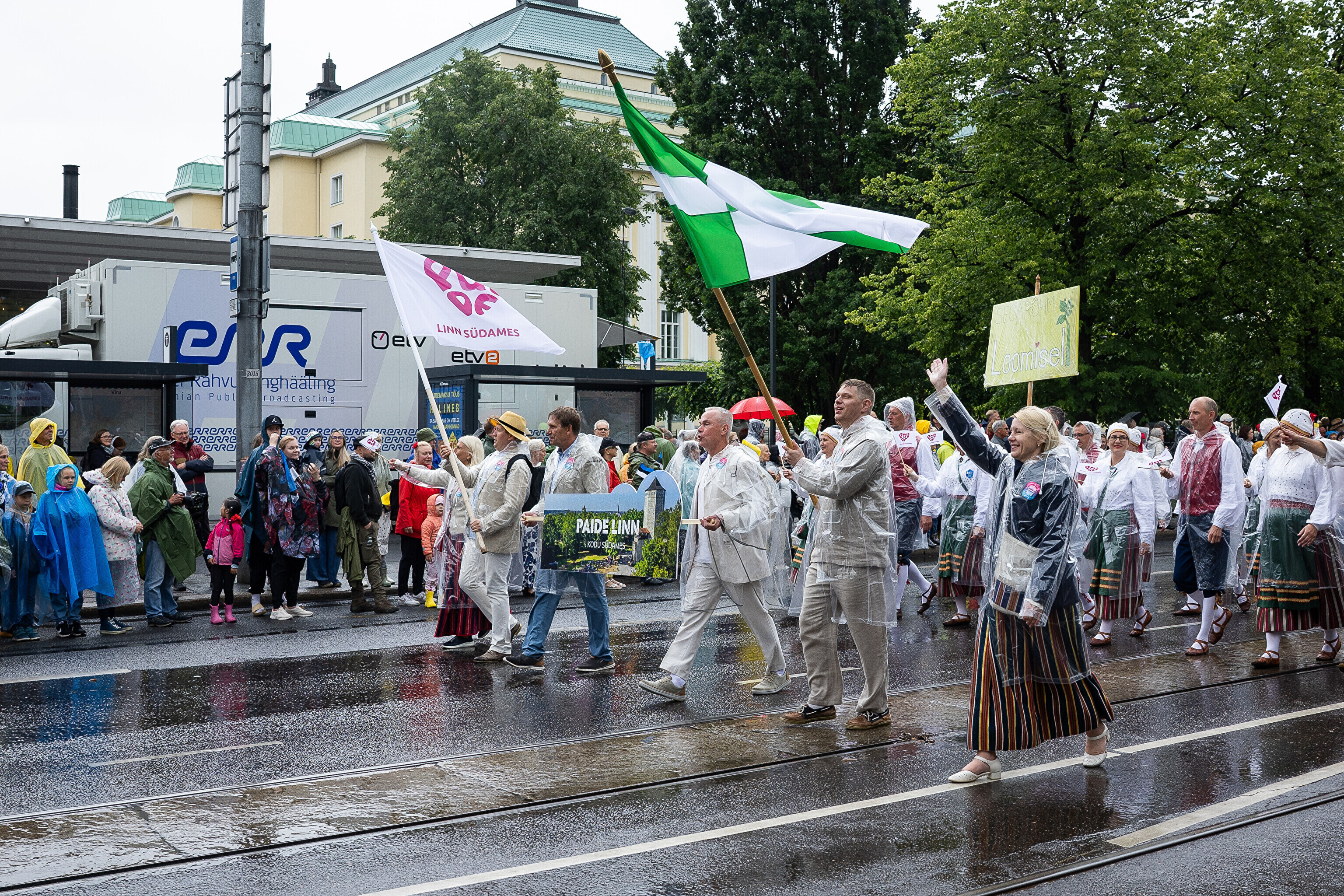 В субботу, 5 июля, состоялось торжественное шествие участников XXVIII Праздника песни и XXI Праздника танца "Iseoma" от площади Вабадузе до Певческого поля. Телеканал ETV+ и портал Rus.ERR показывали шествие с комментариями и интервью с участниками.
