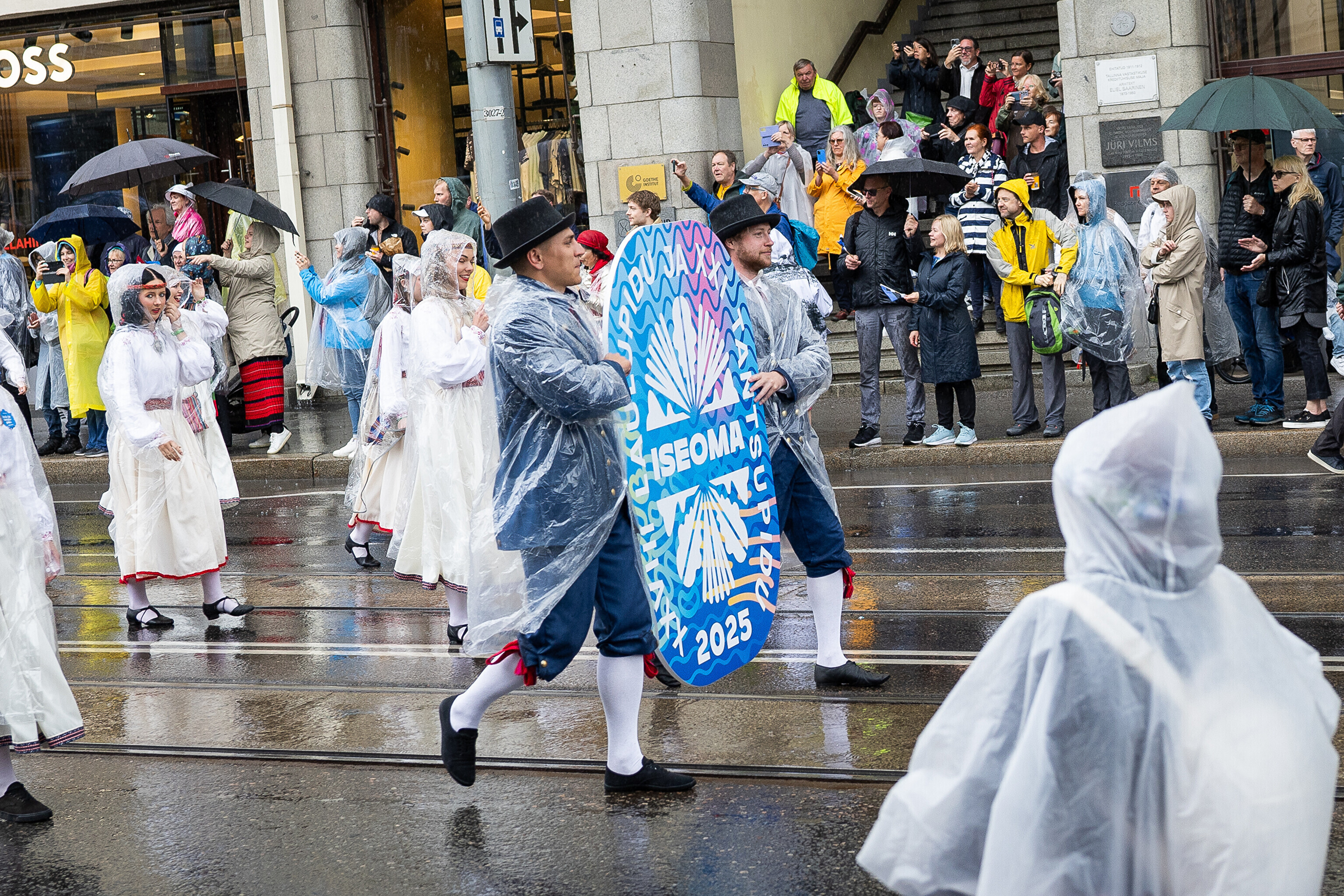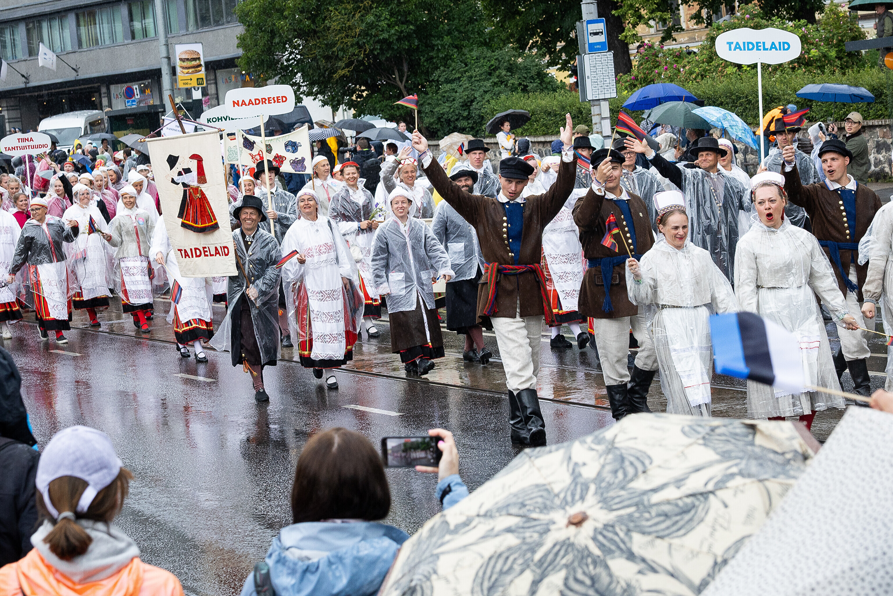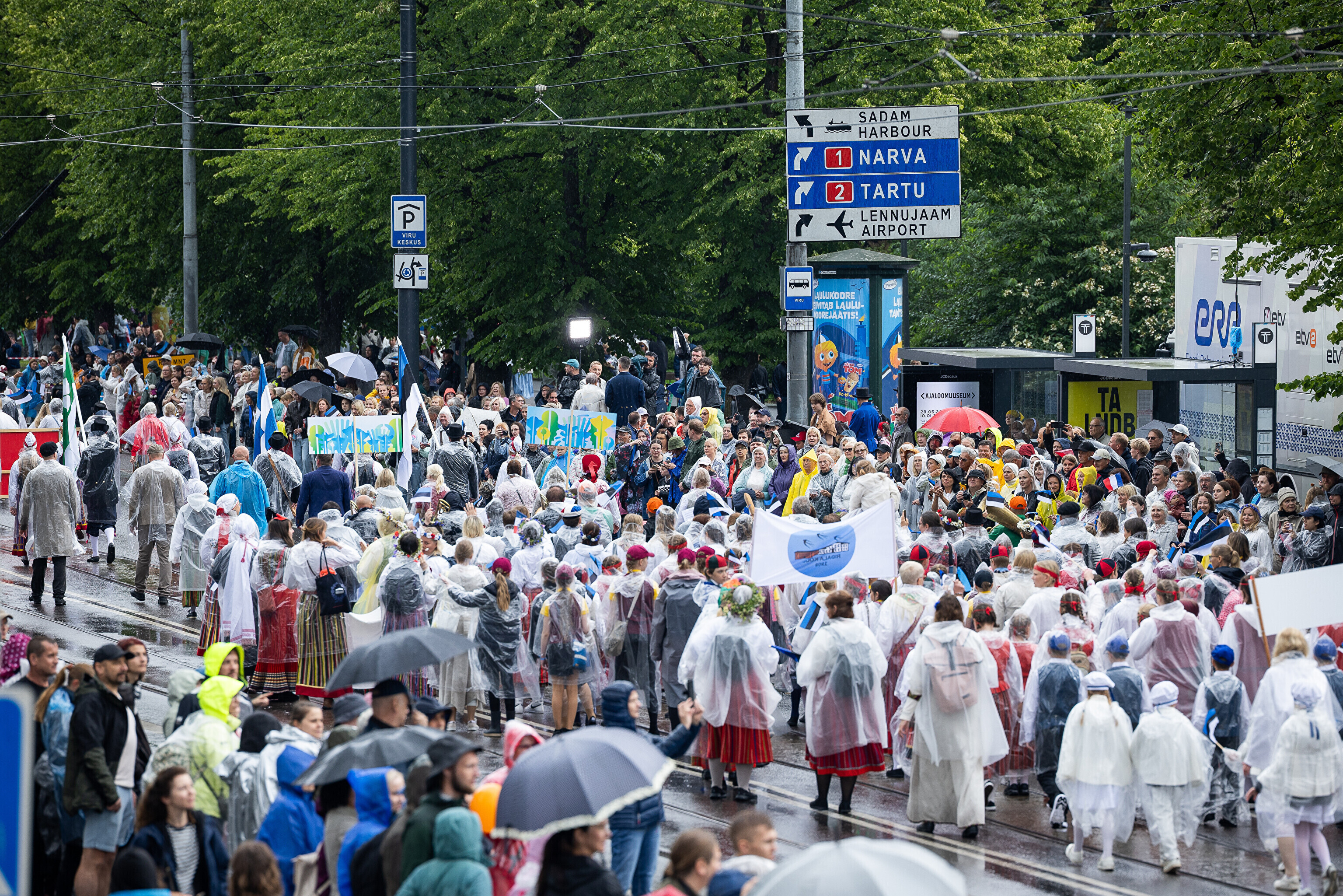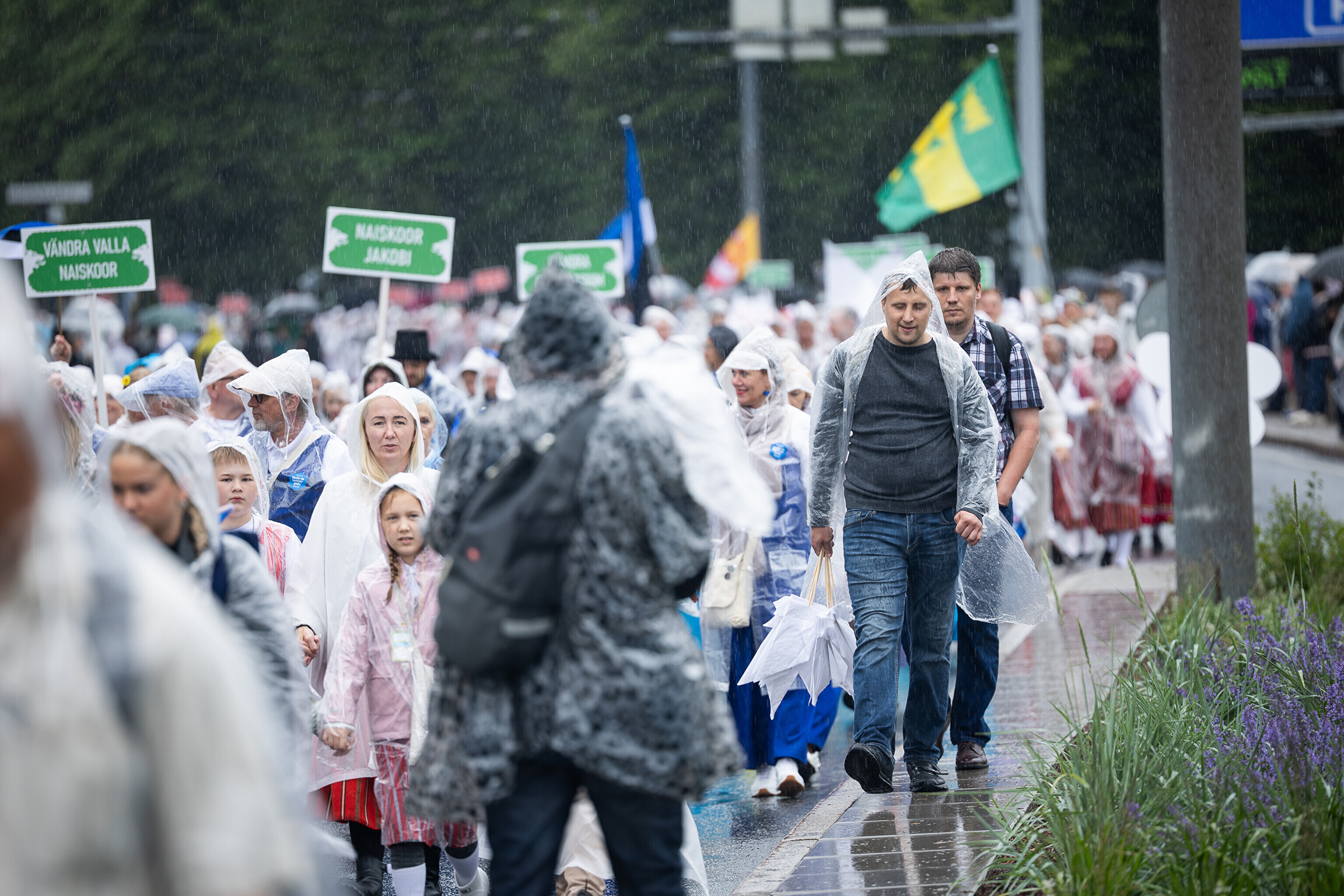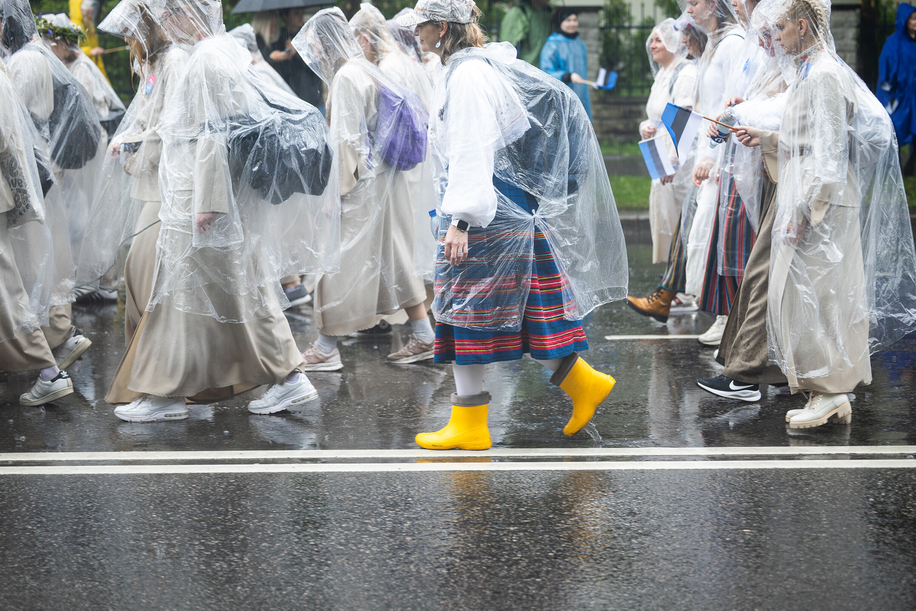В субботу, 5 июля, состоялось торжественное шествие участников XXVIII Праздника песни и XXI Праздника танца "Iseoma" от площади Вабадузе до Певческого поля. Телеканал ETV+ и портал Rus.ERR показывали шествие с комментариями и интервью с участниками.