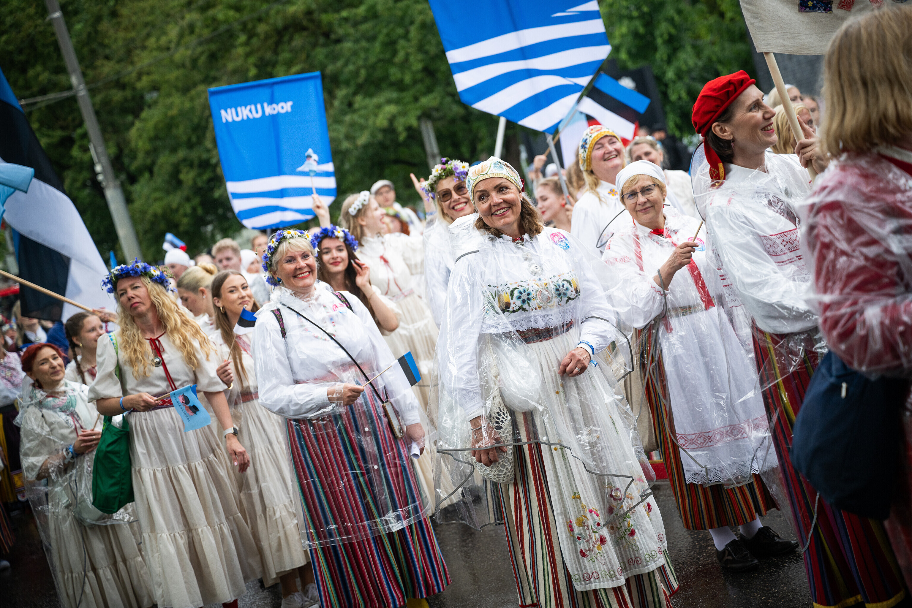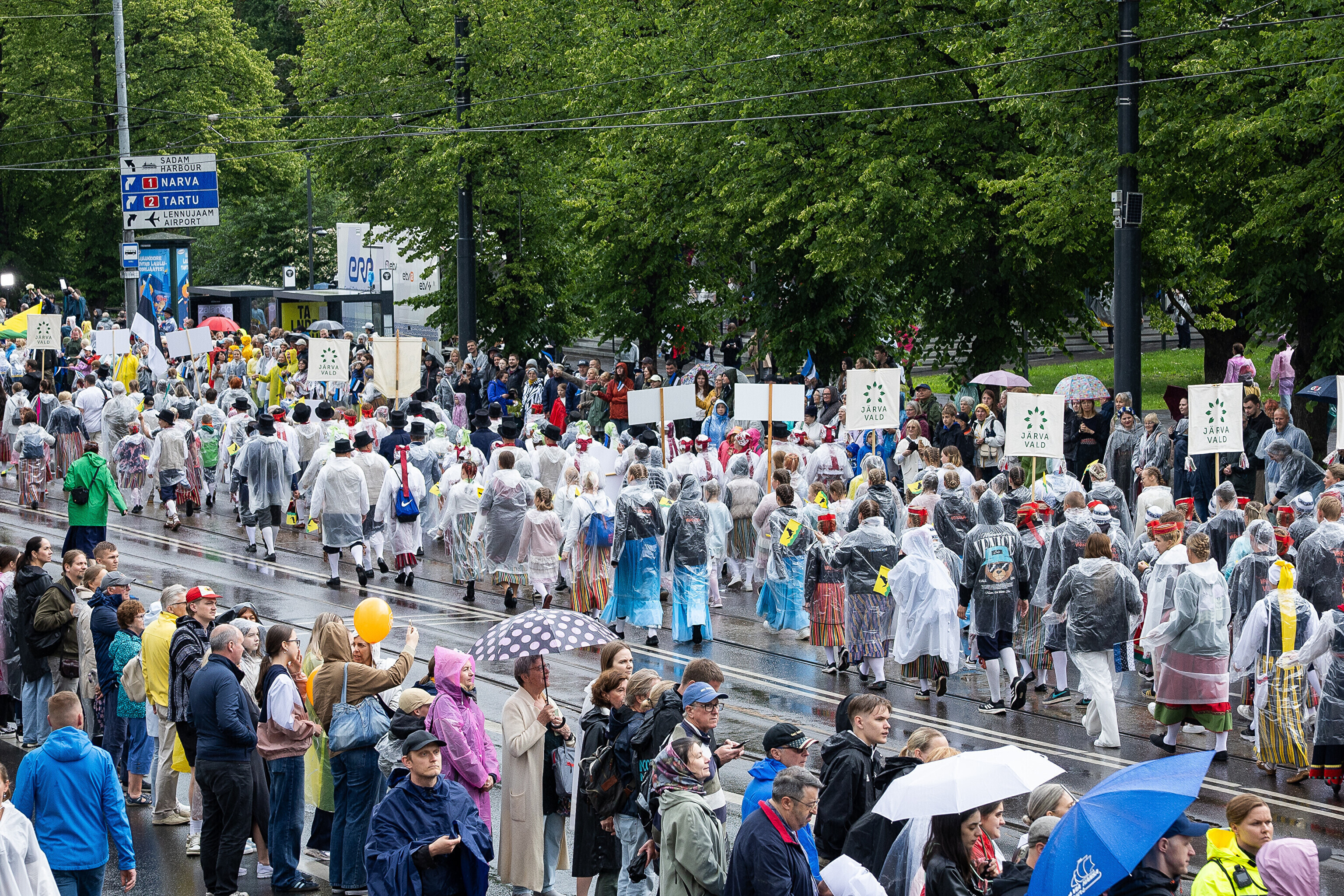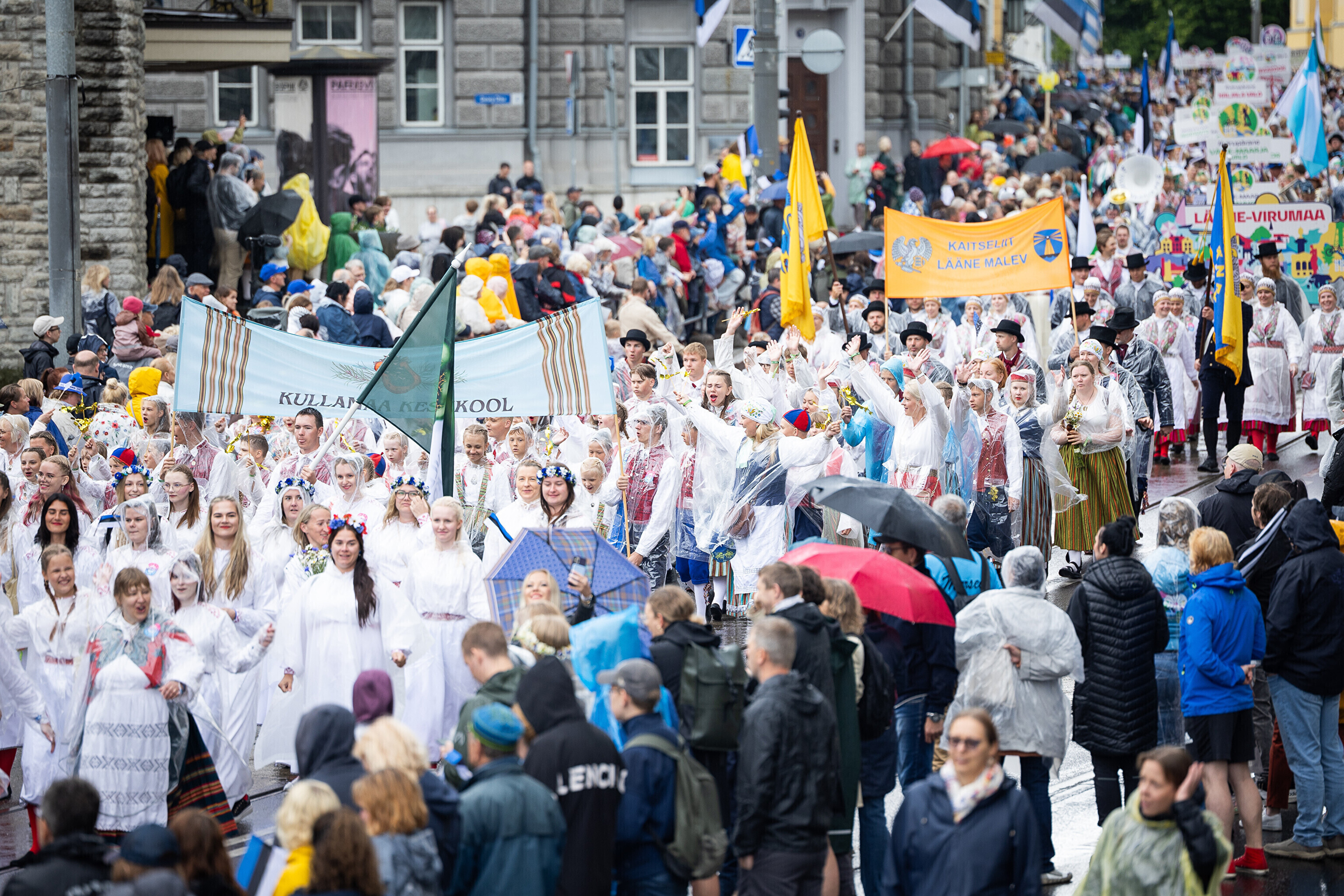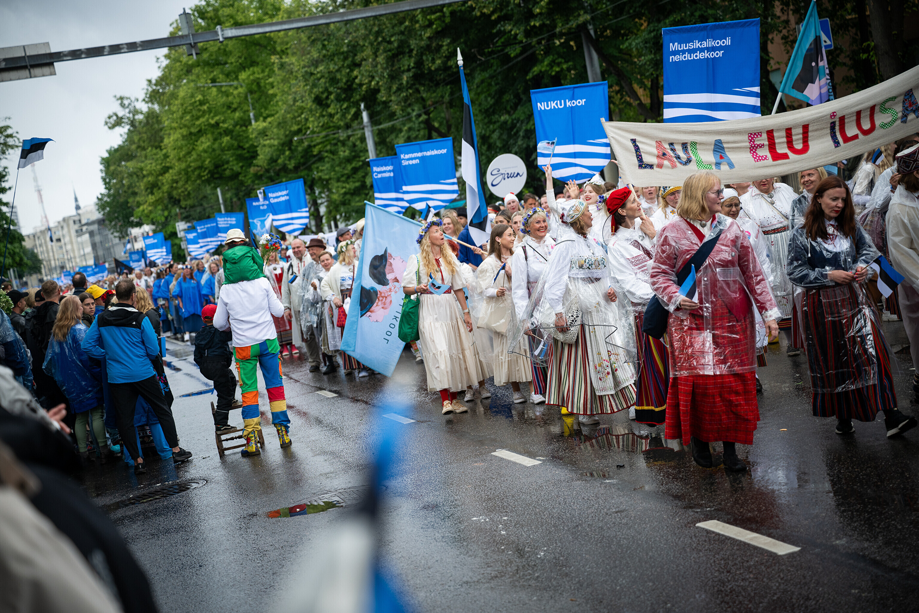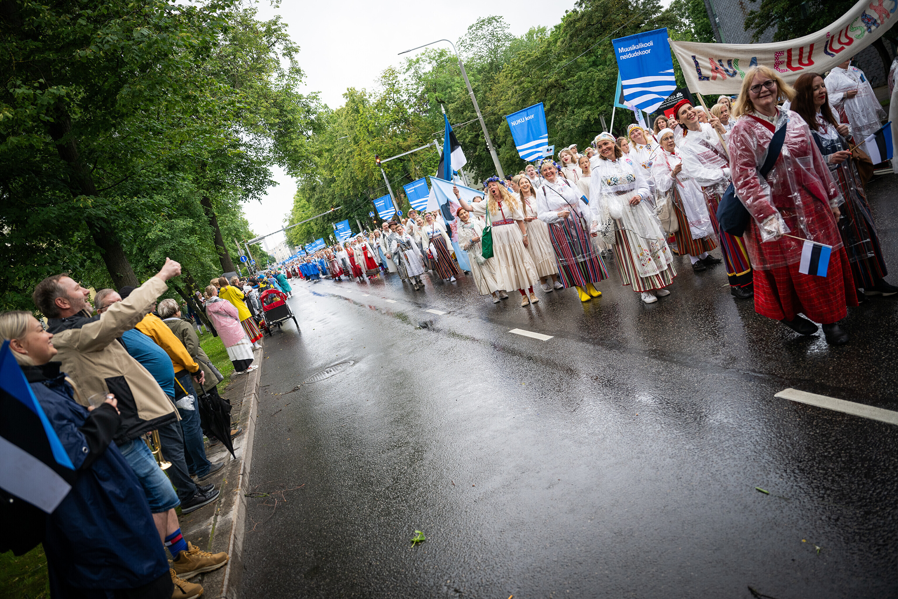 В субботу, 5 июля, состоялось торжественное шествие участников XXVIII Праздника песни и XXI Праздника танца "Iseoma" от площади Вабадузе до Певческого поля. Телеканал ETV+ и портал Rus.ERR показывали шествие с комментариями и интервью с участниками.