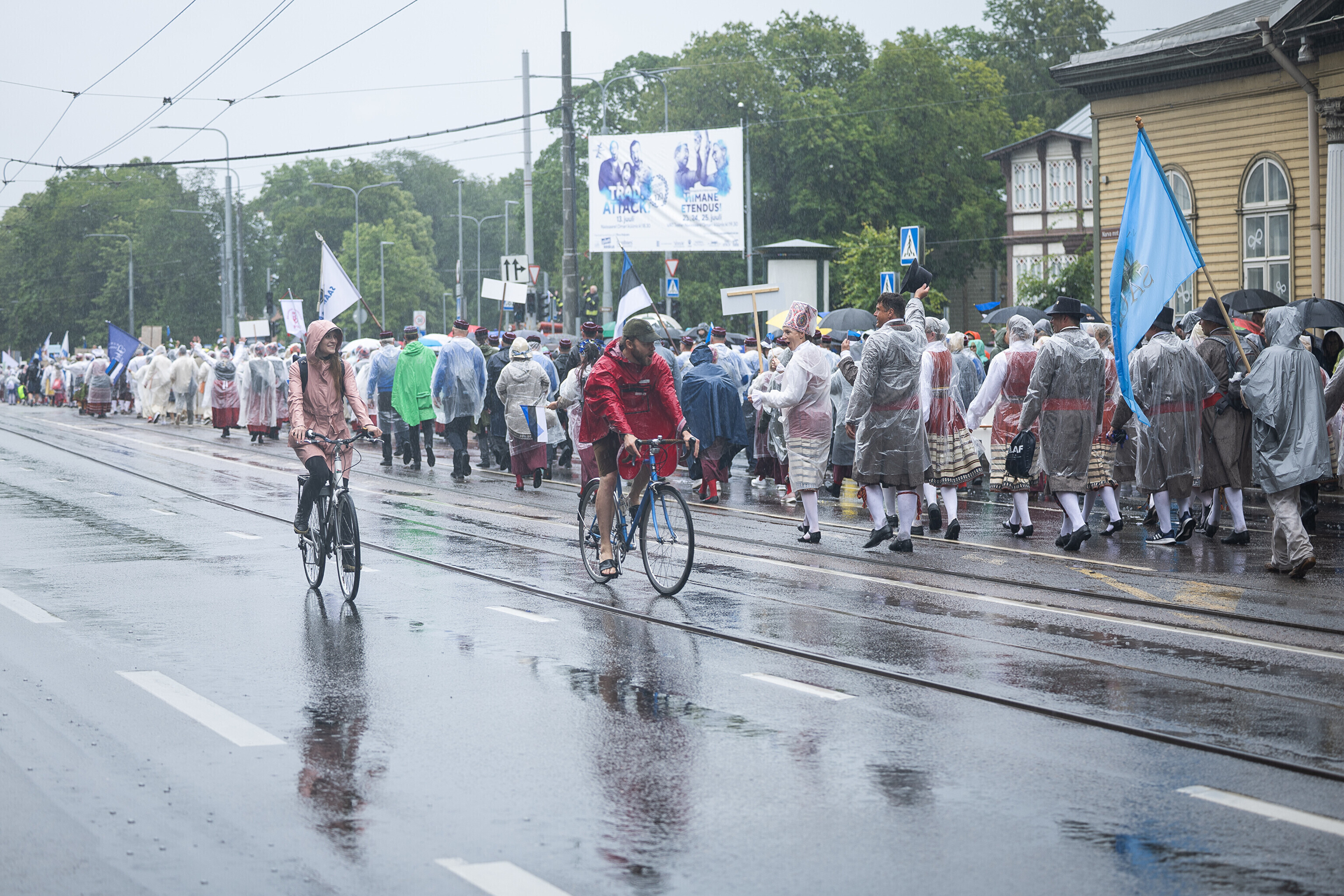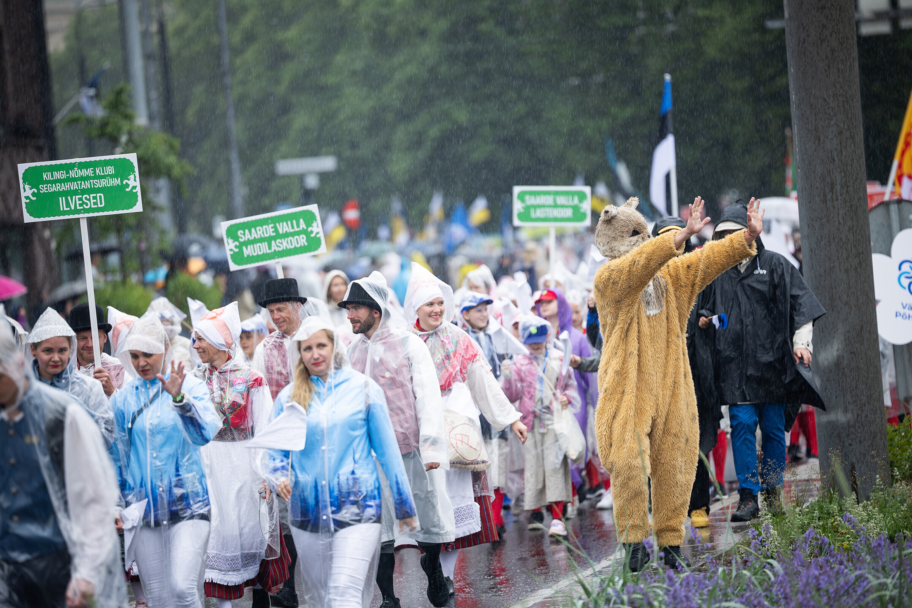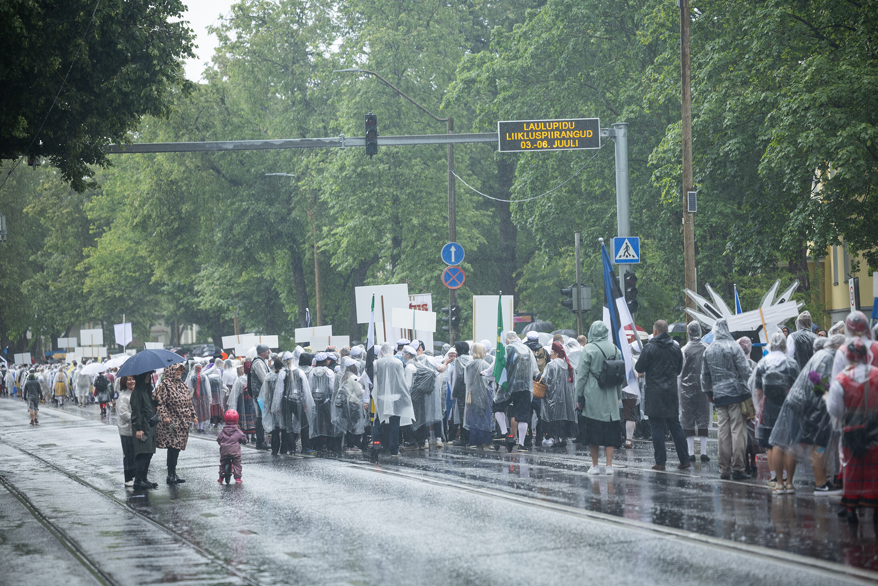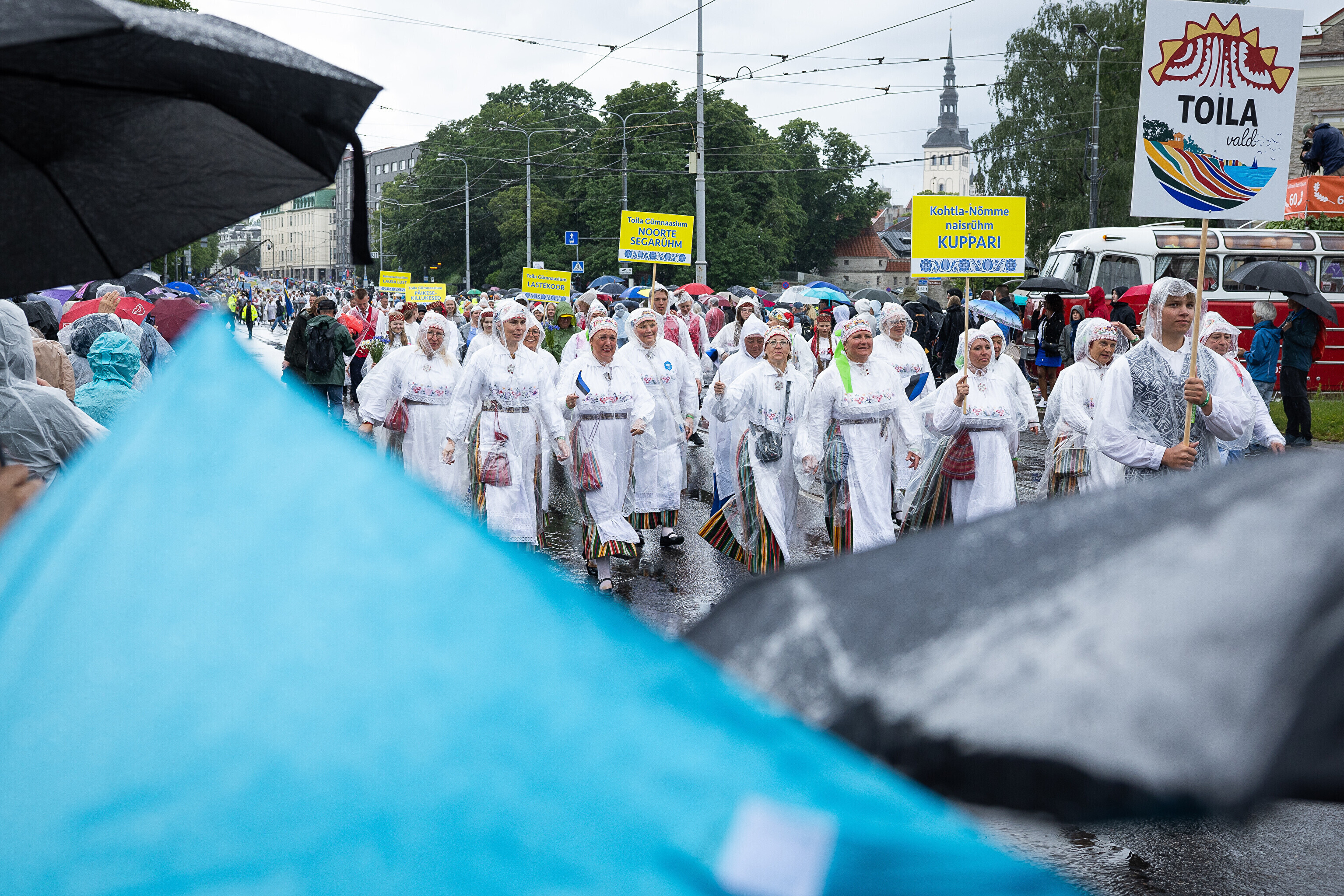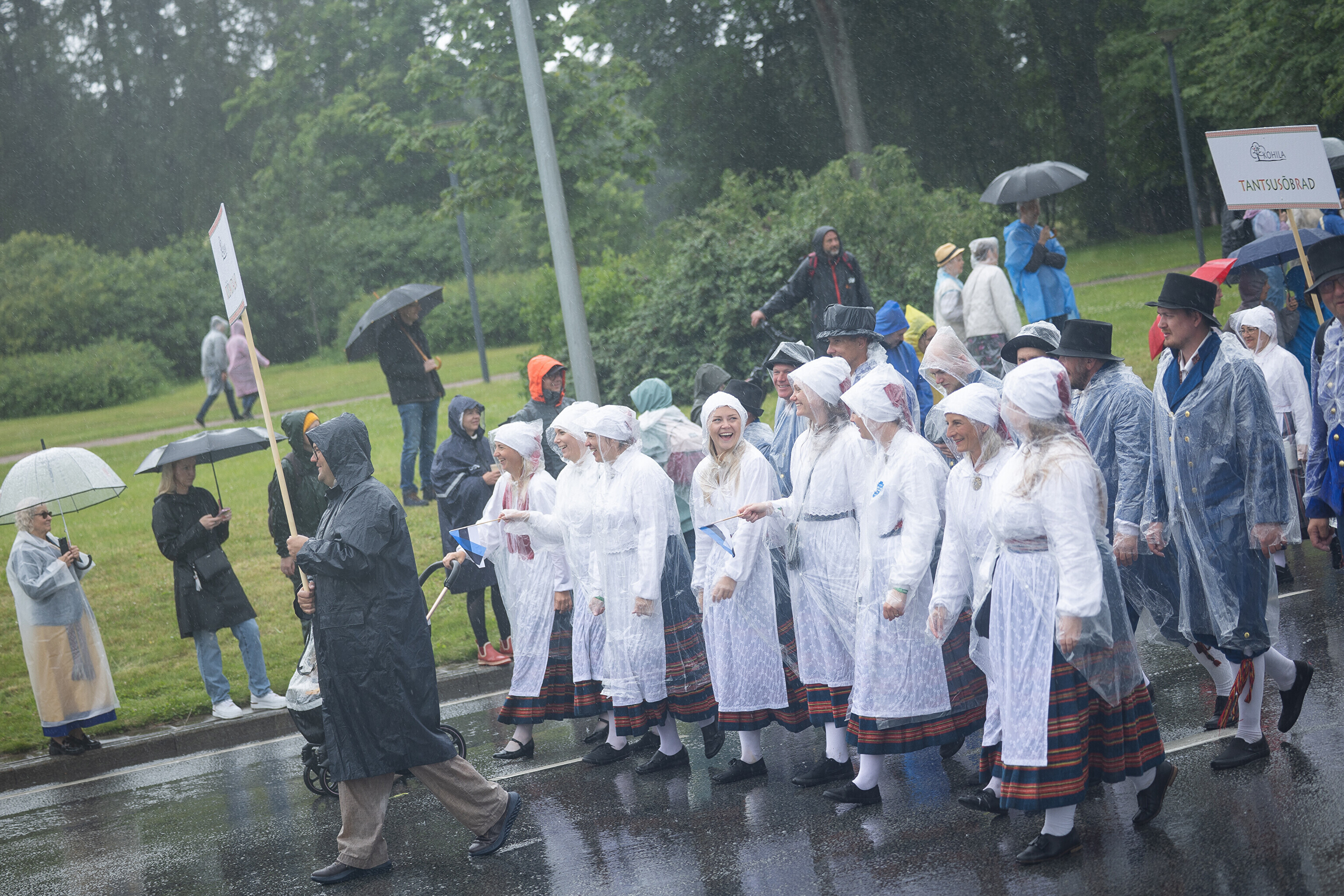 В субботу, 5 июля, состоялось торжественное шествие участников XXVIII Праздника песни и XXI Праздника танца "Iseoma" от площади Вабадузе до Певческого поля. Телеканал ETV+ и портал Rus.ERR показывали шествие с комментариями и интервью с участниками.
