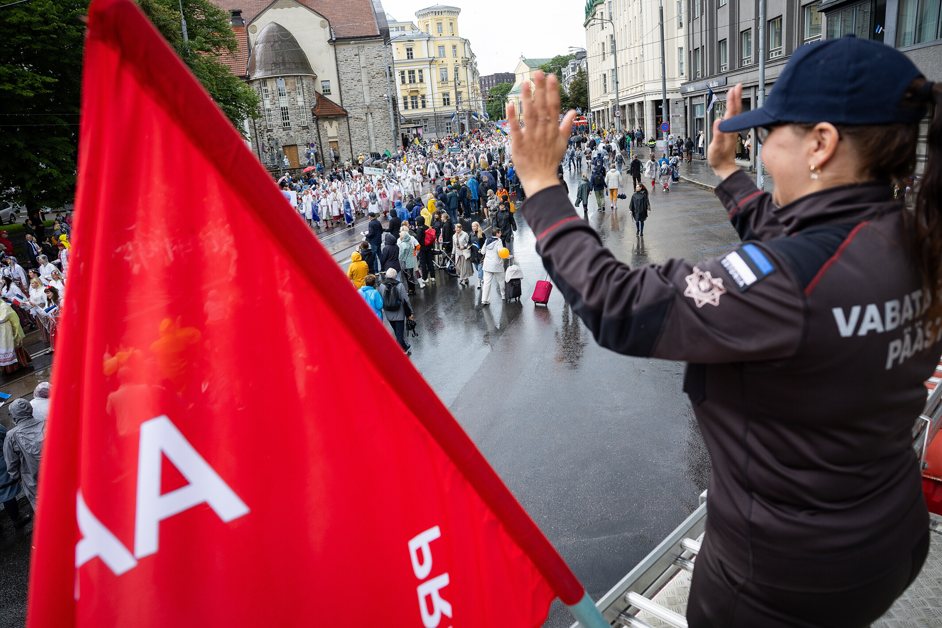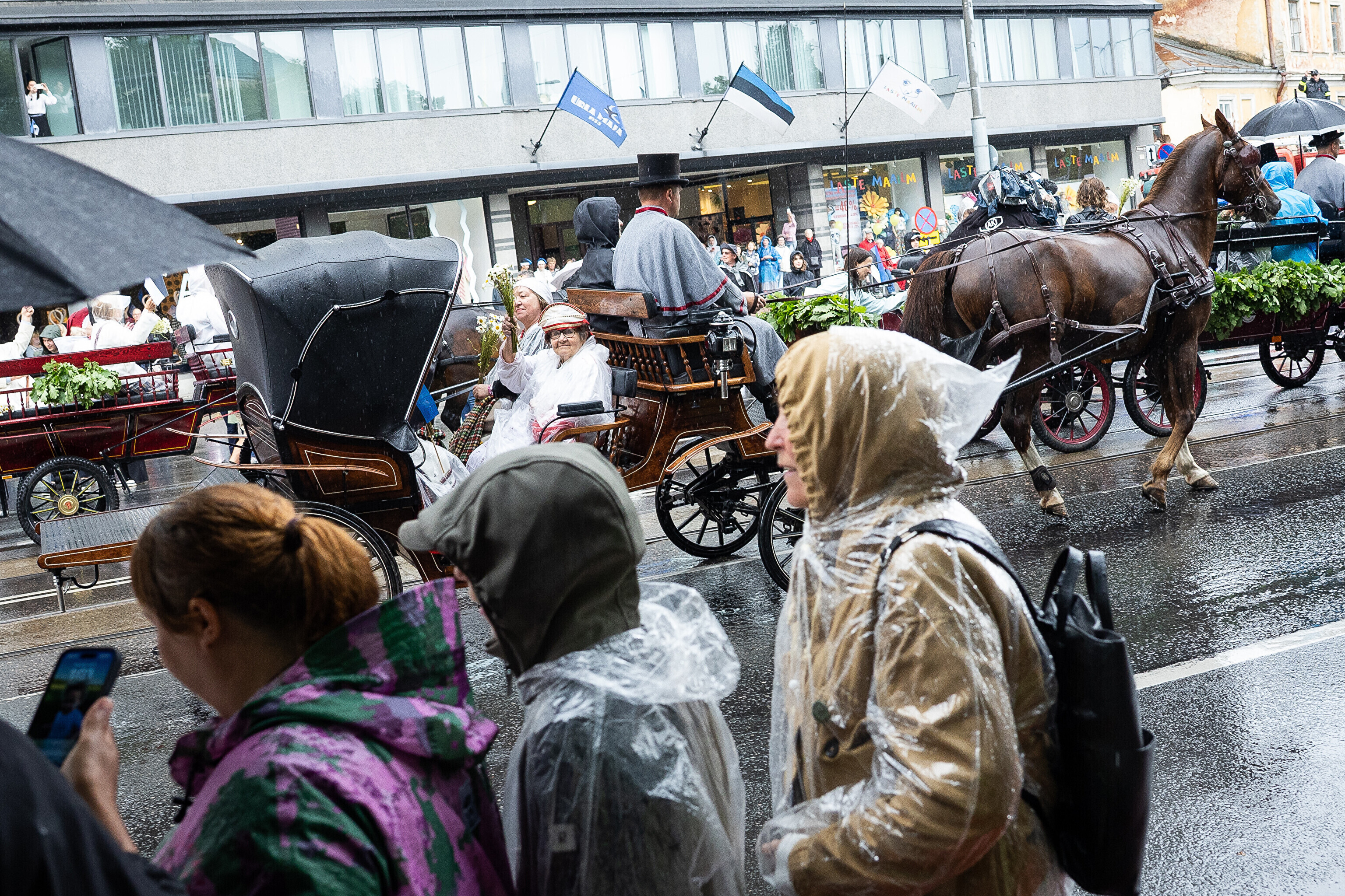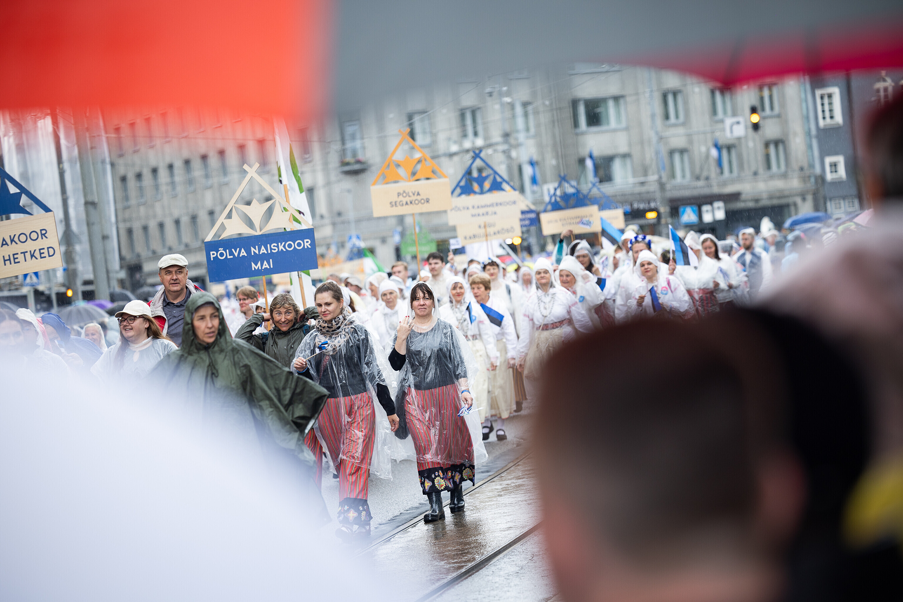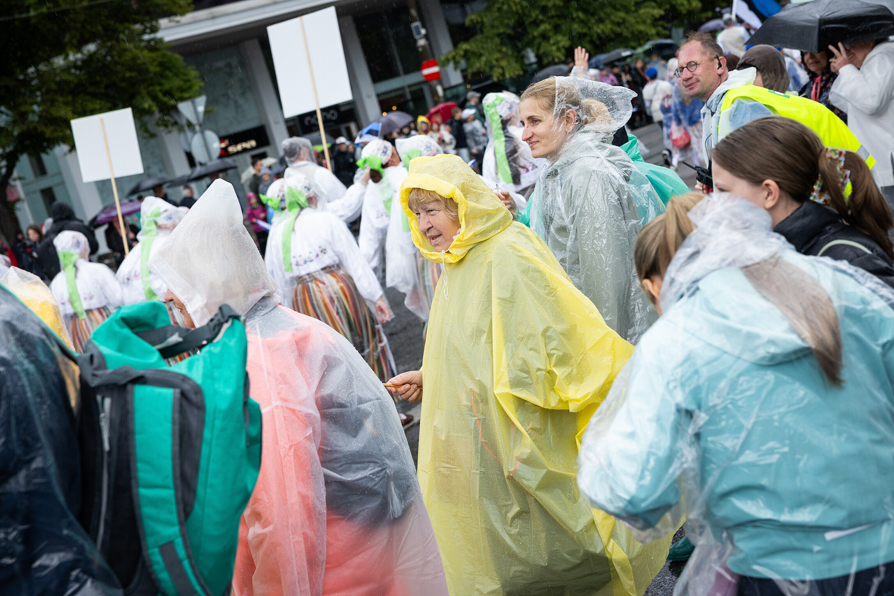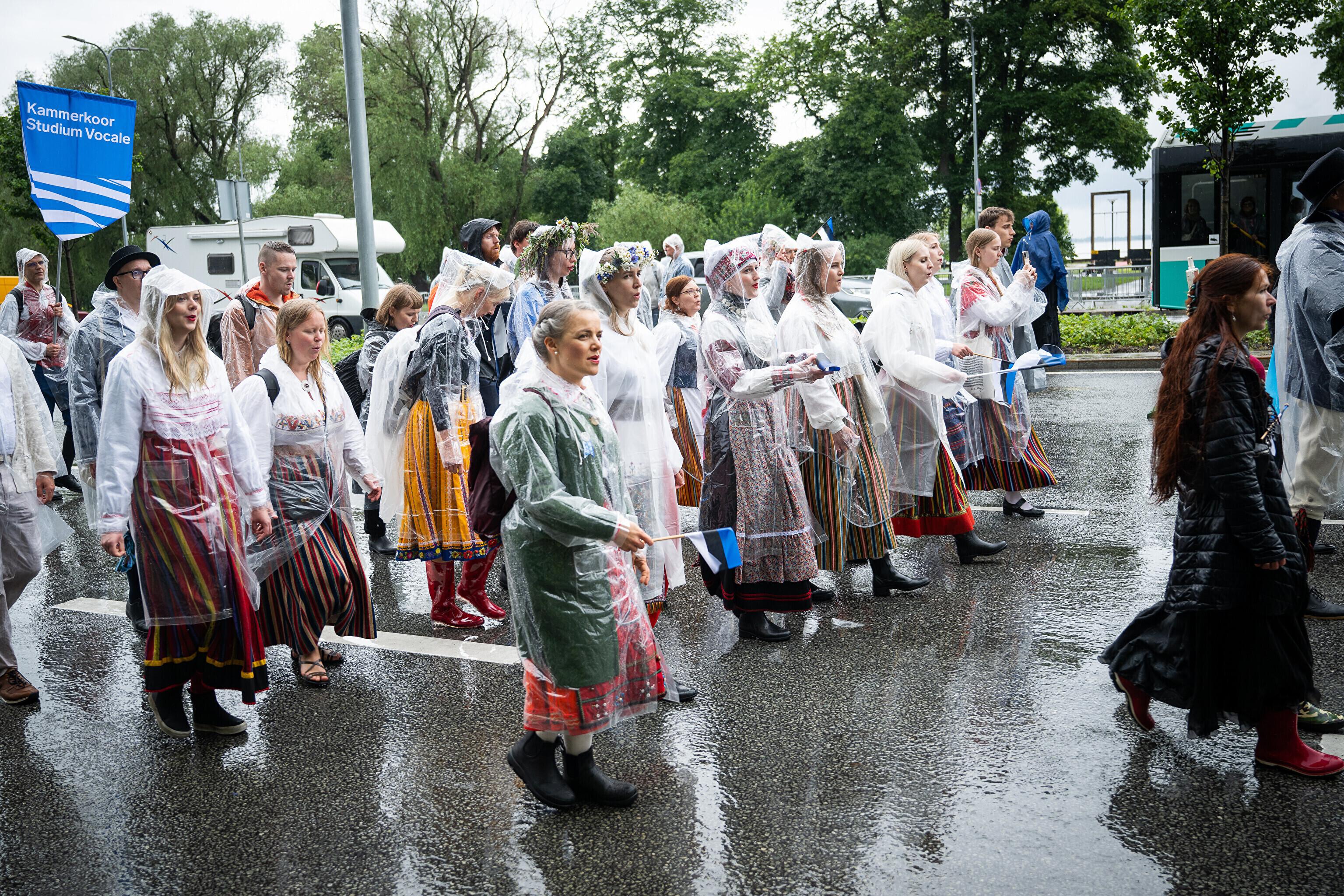 В субботу, 5 июля, состоялось торжественное шествие участников XXVIII Праздника песни и XXI Праздника танца "Iseoma" от площади Вабадузе до Певческого поля. Телеканал ETV+ и портал Rus.ERR показывали шествие с комментариями и интервью с участниками.
