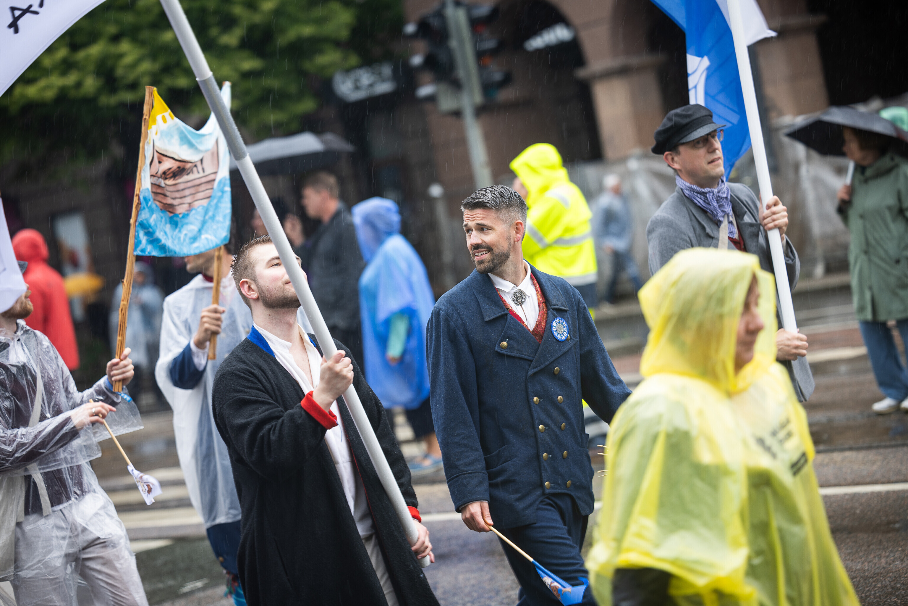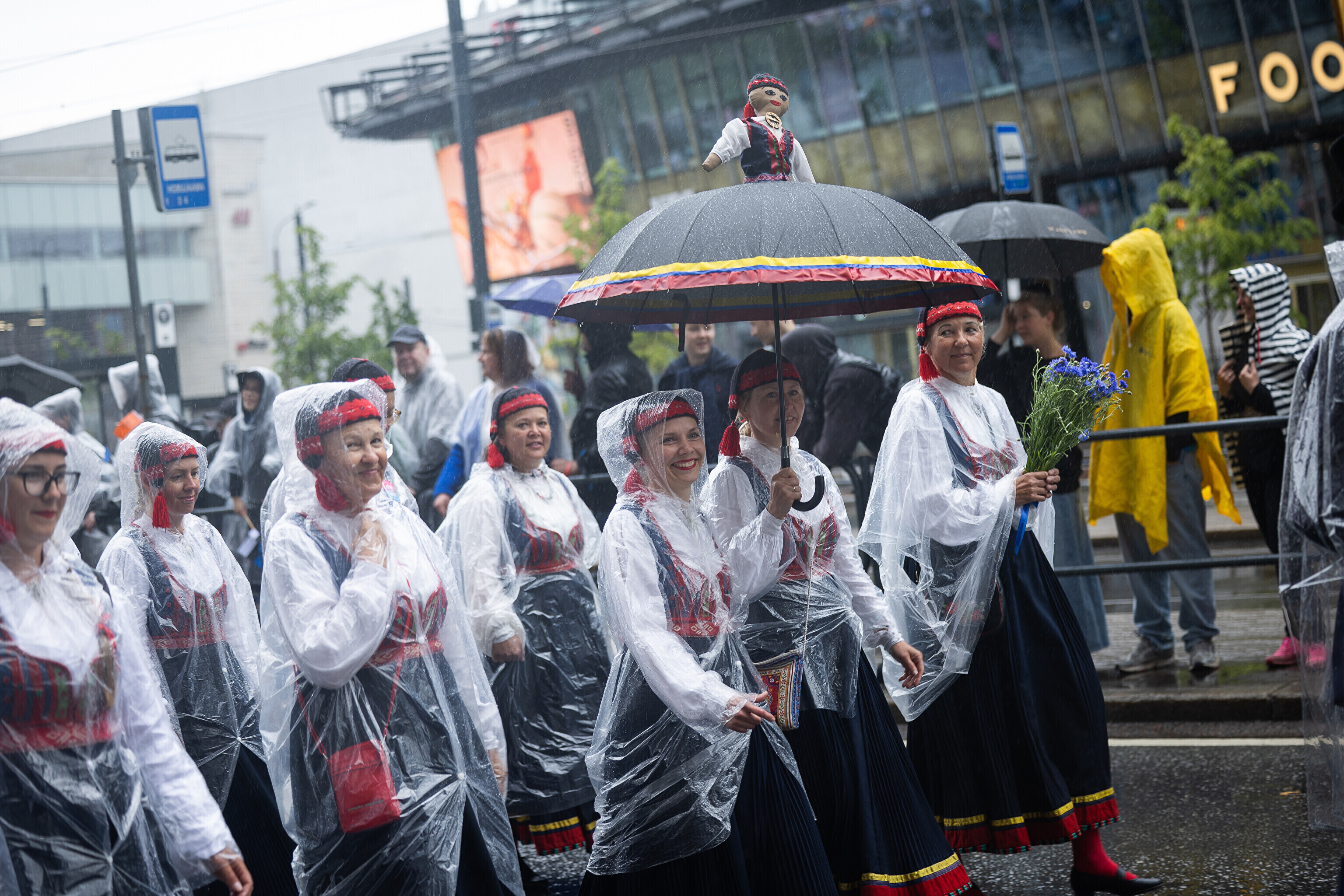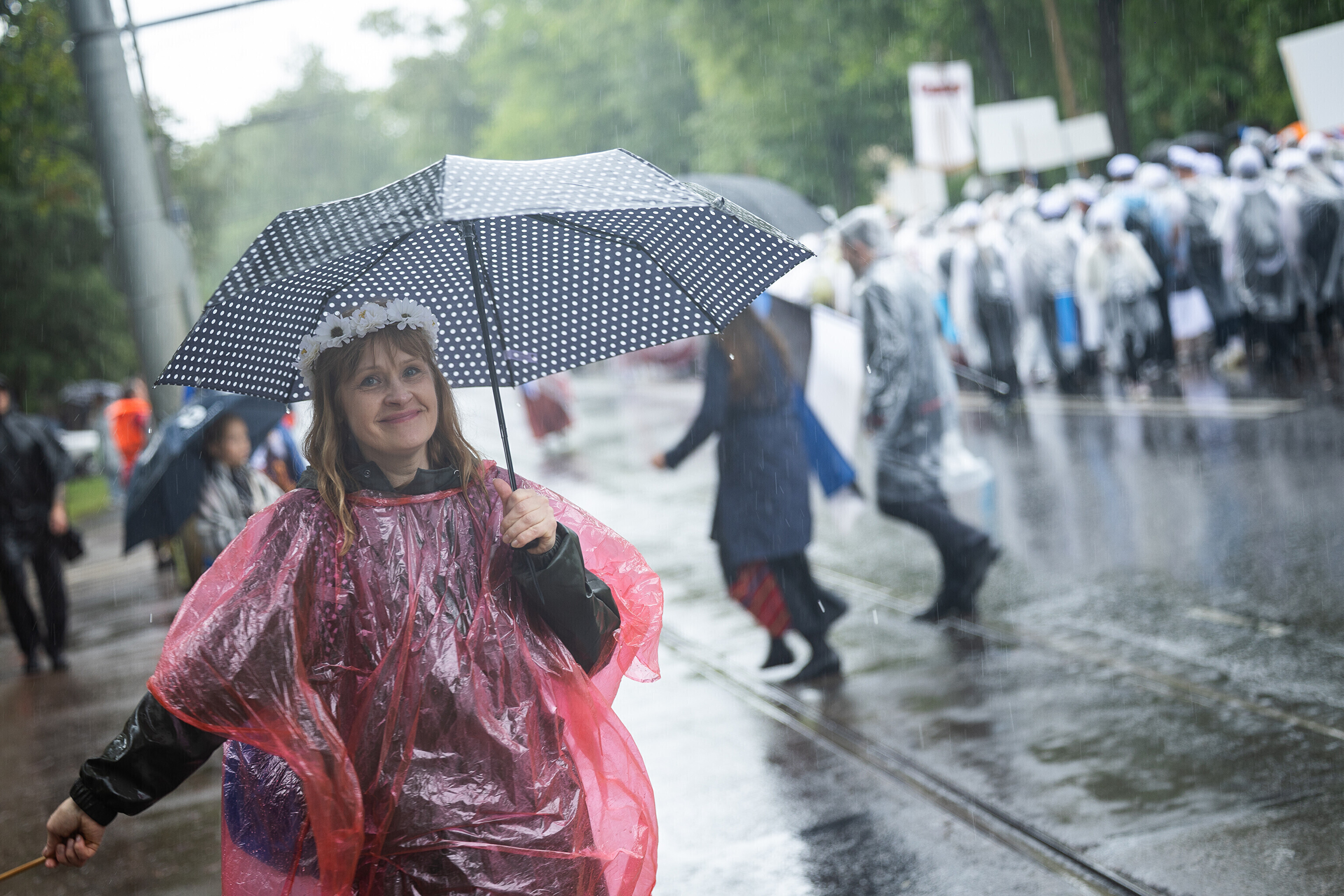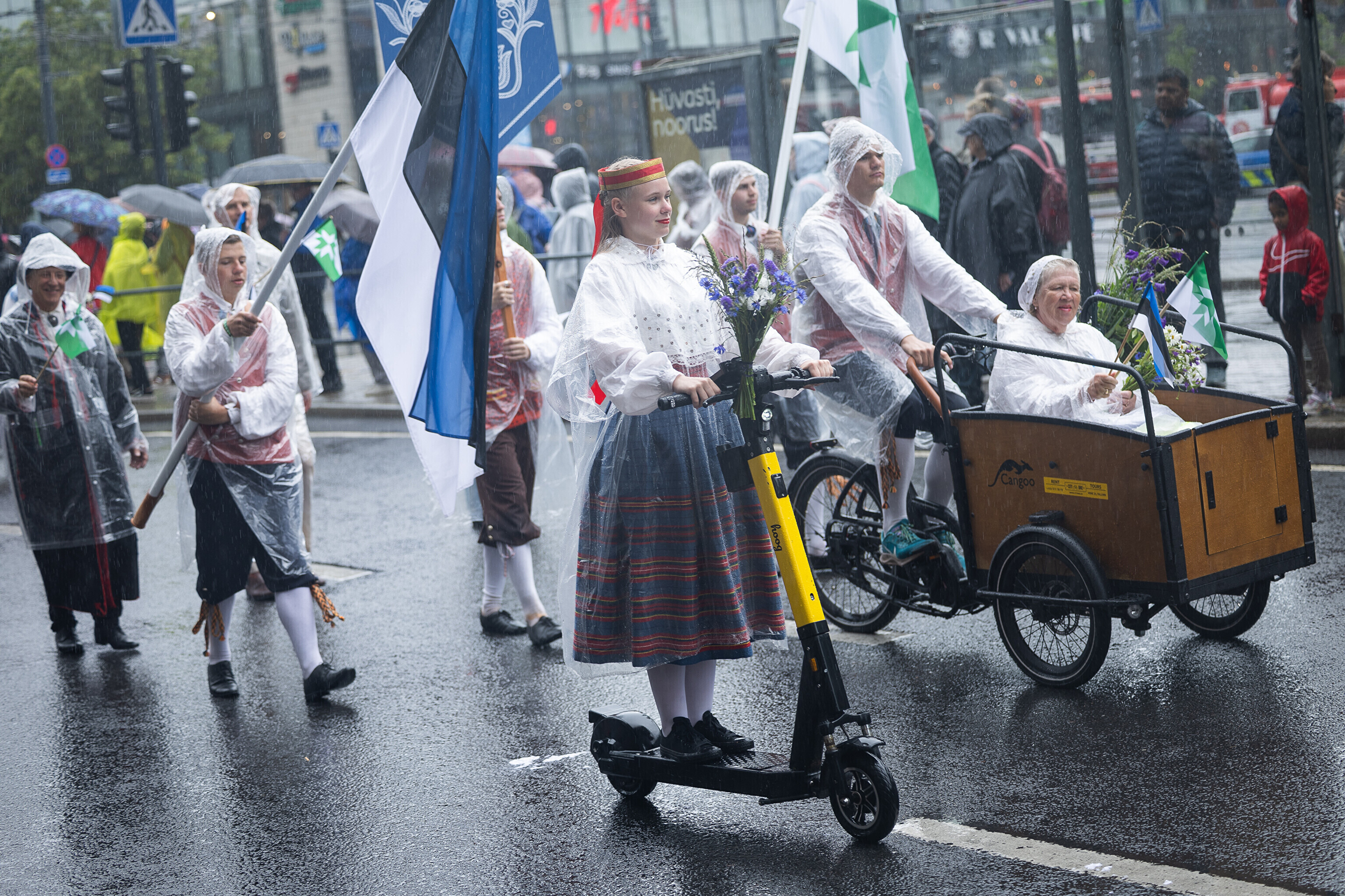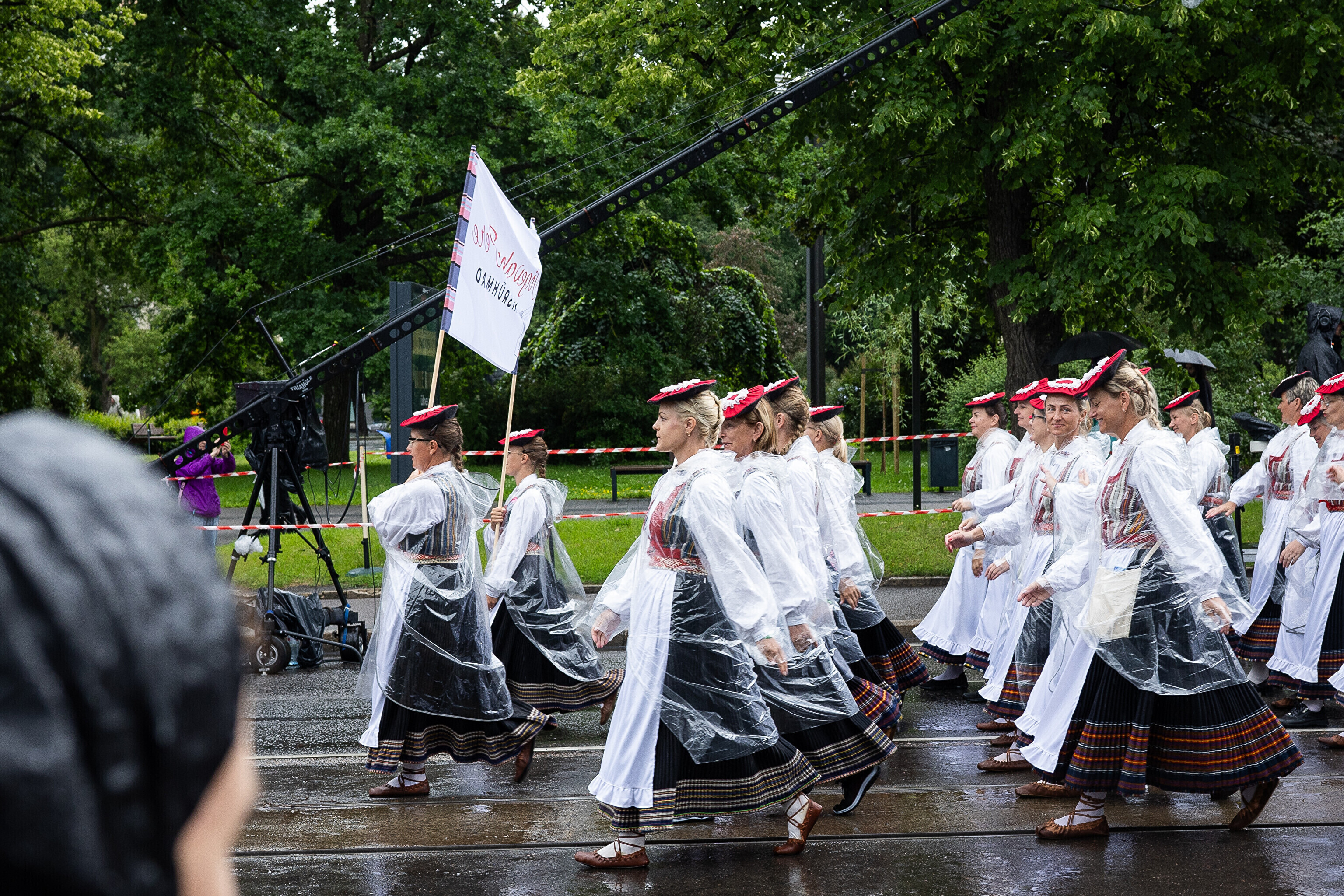 В субботу, 5 июля, состоялось торжественное шествие участников XXVIII Праздника песни и XXI Праздника танца "Iseoma" от площади Вабадузе до Певческого поля. Телеканал ETV+ и портал Rus.ERR показывали шествие с комментариями и интервью с участниками.