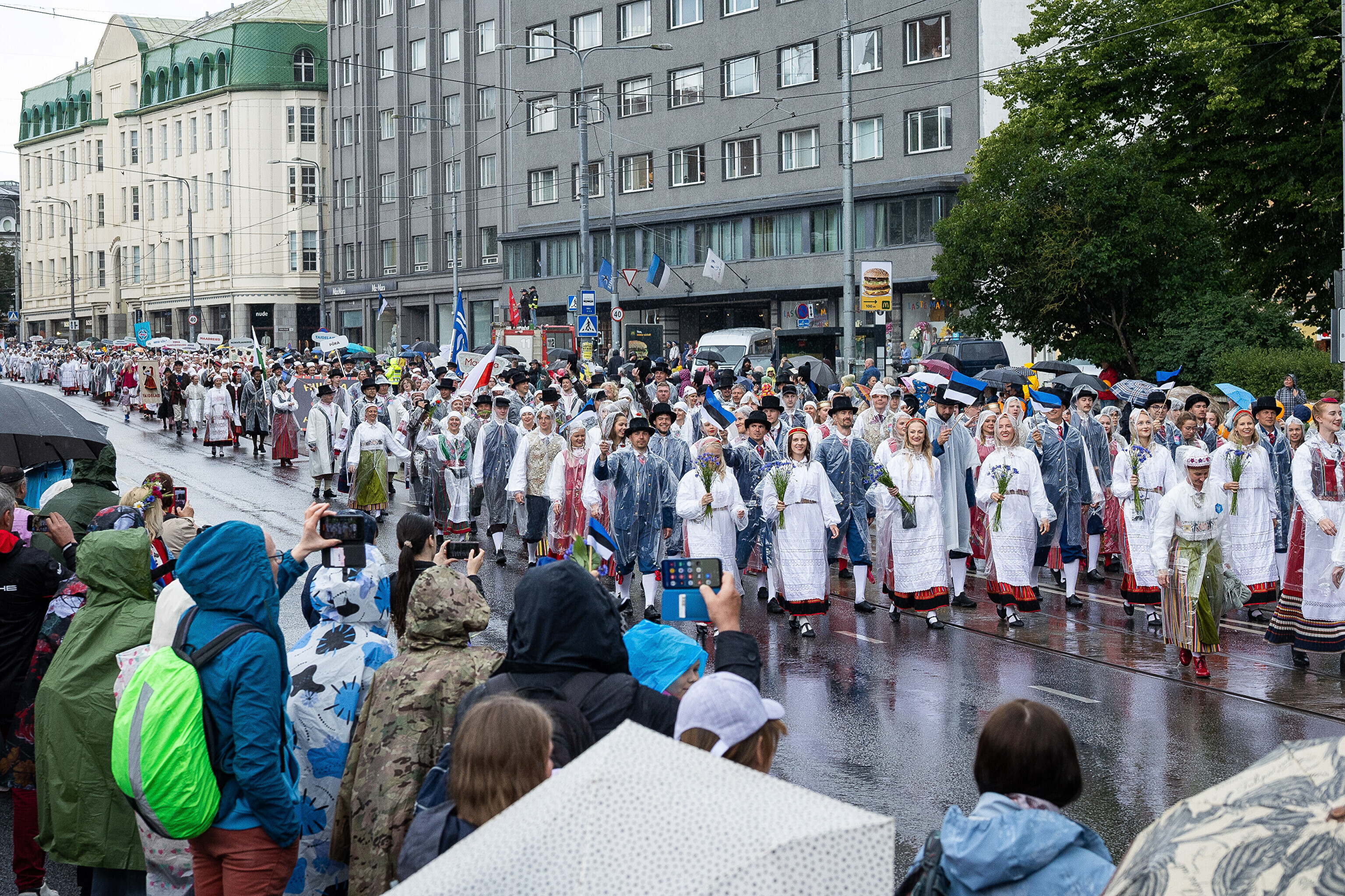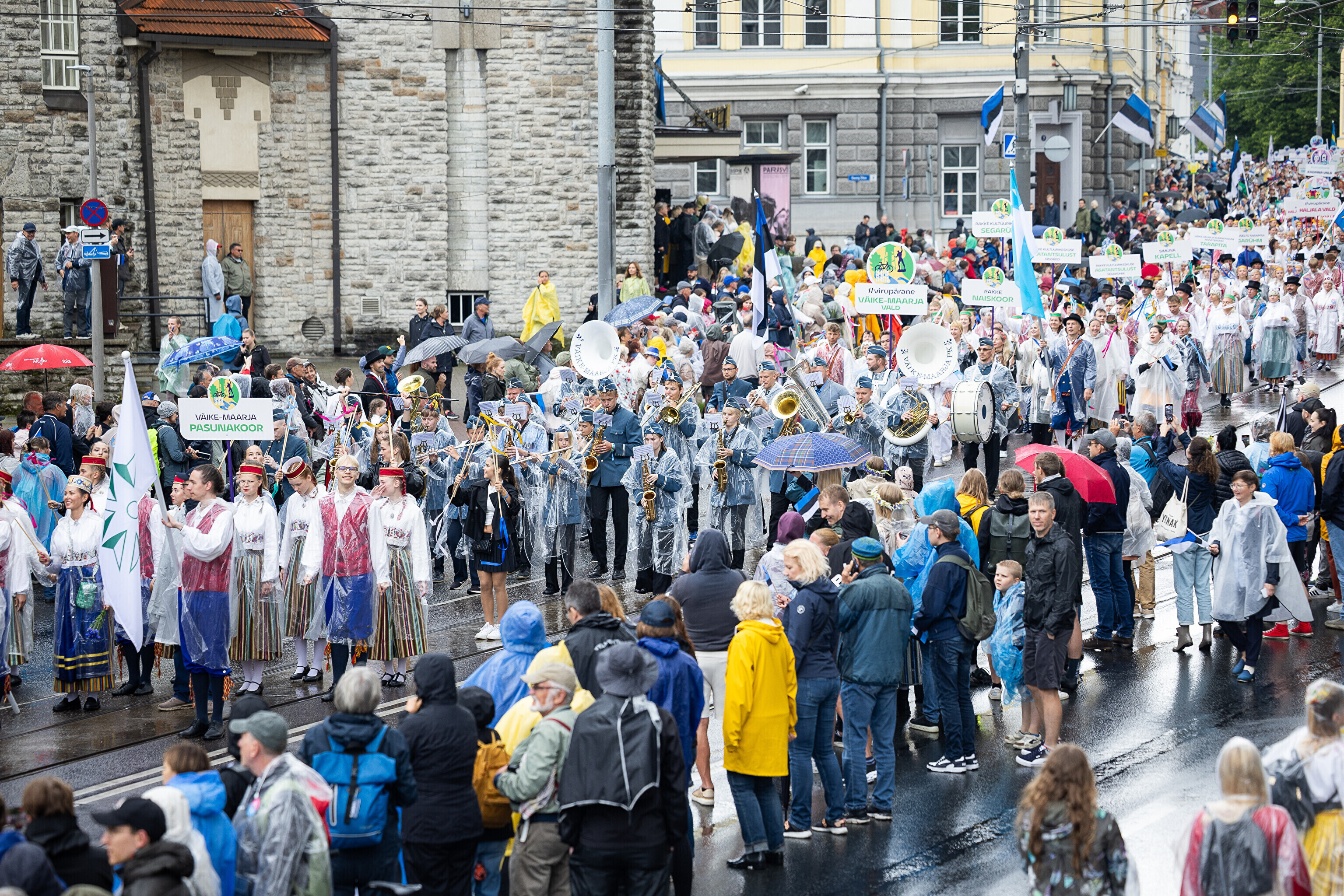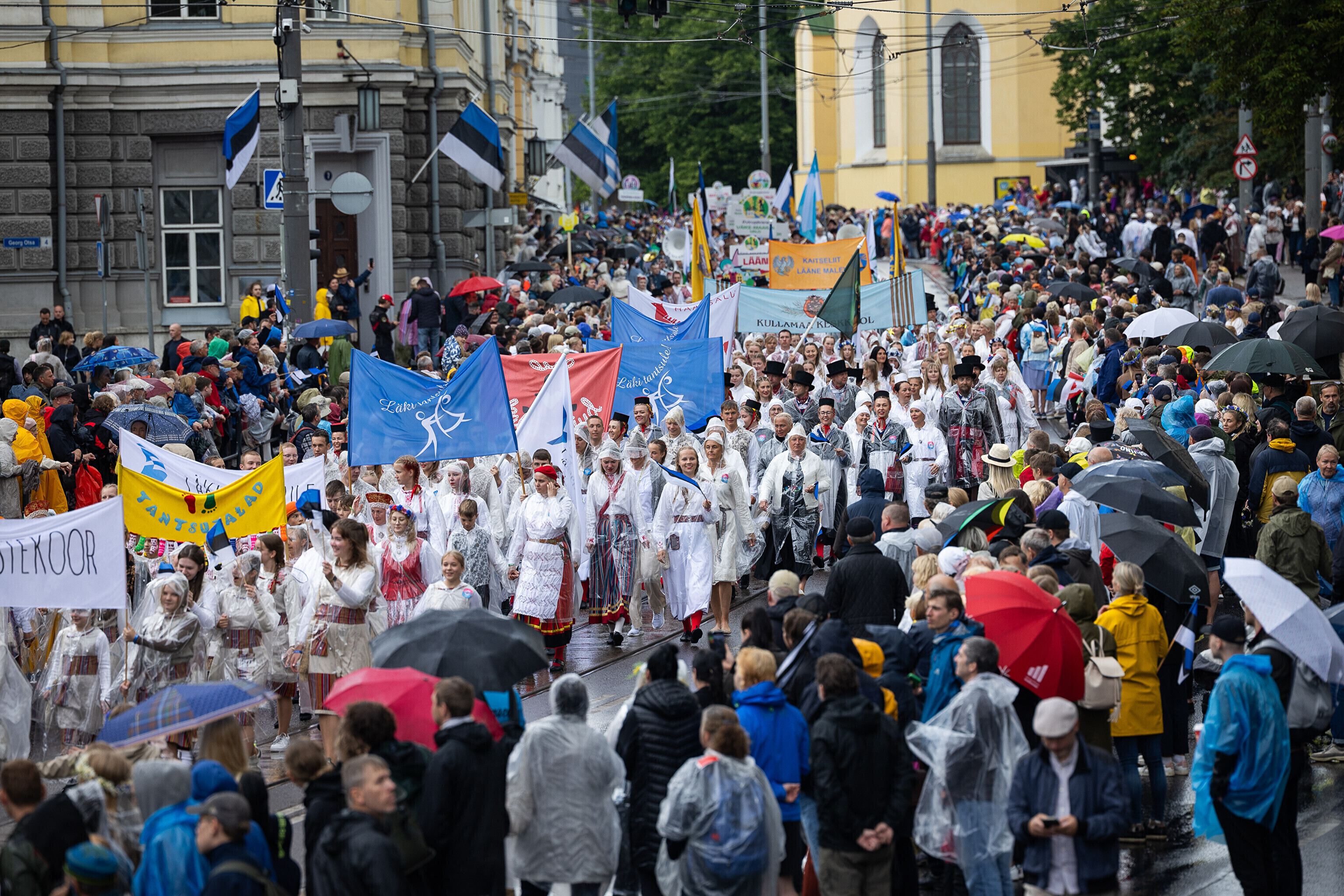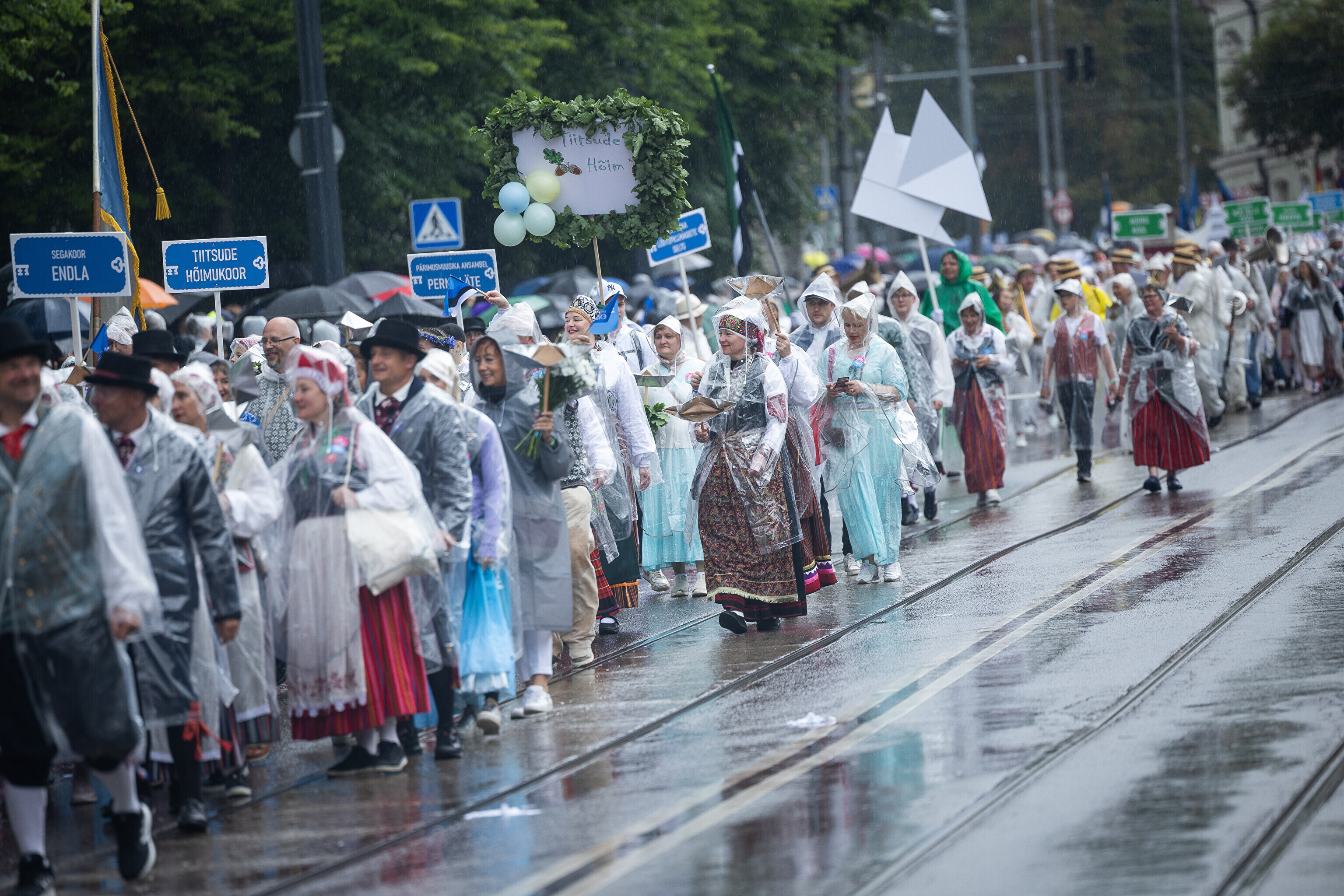 В шествии XXVIII Праздника песни и XXI Праздника танца принимают участие более 41 000 певцов, музыкантов, танцоров и народных исполнителей из 1869 коллективов.