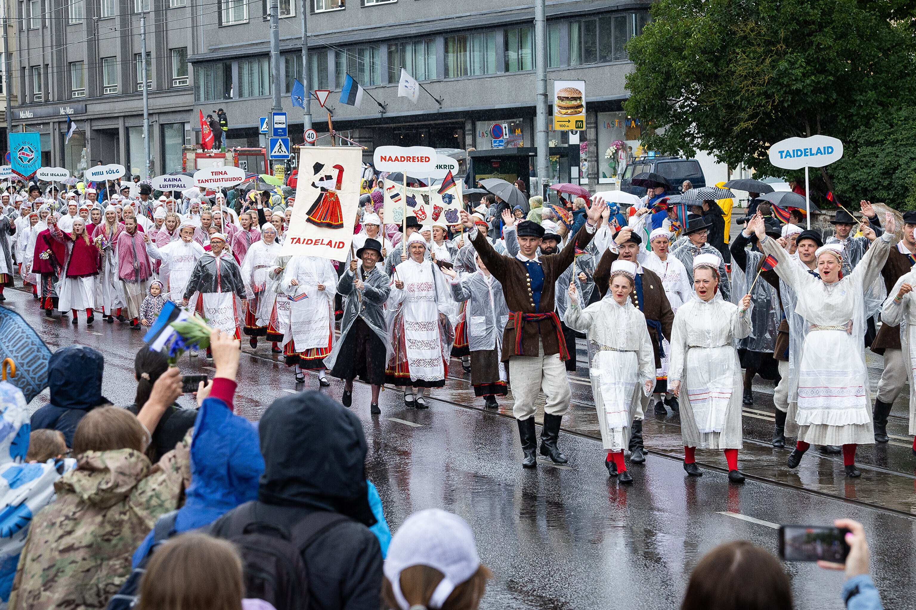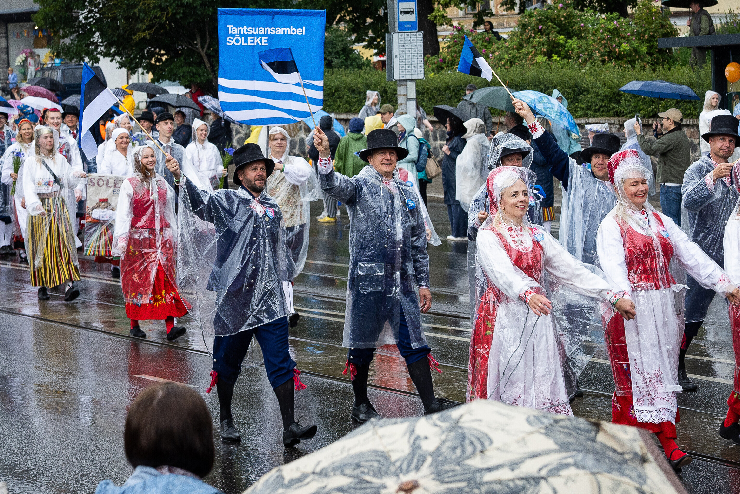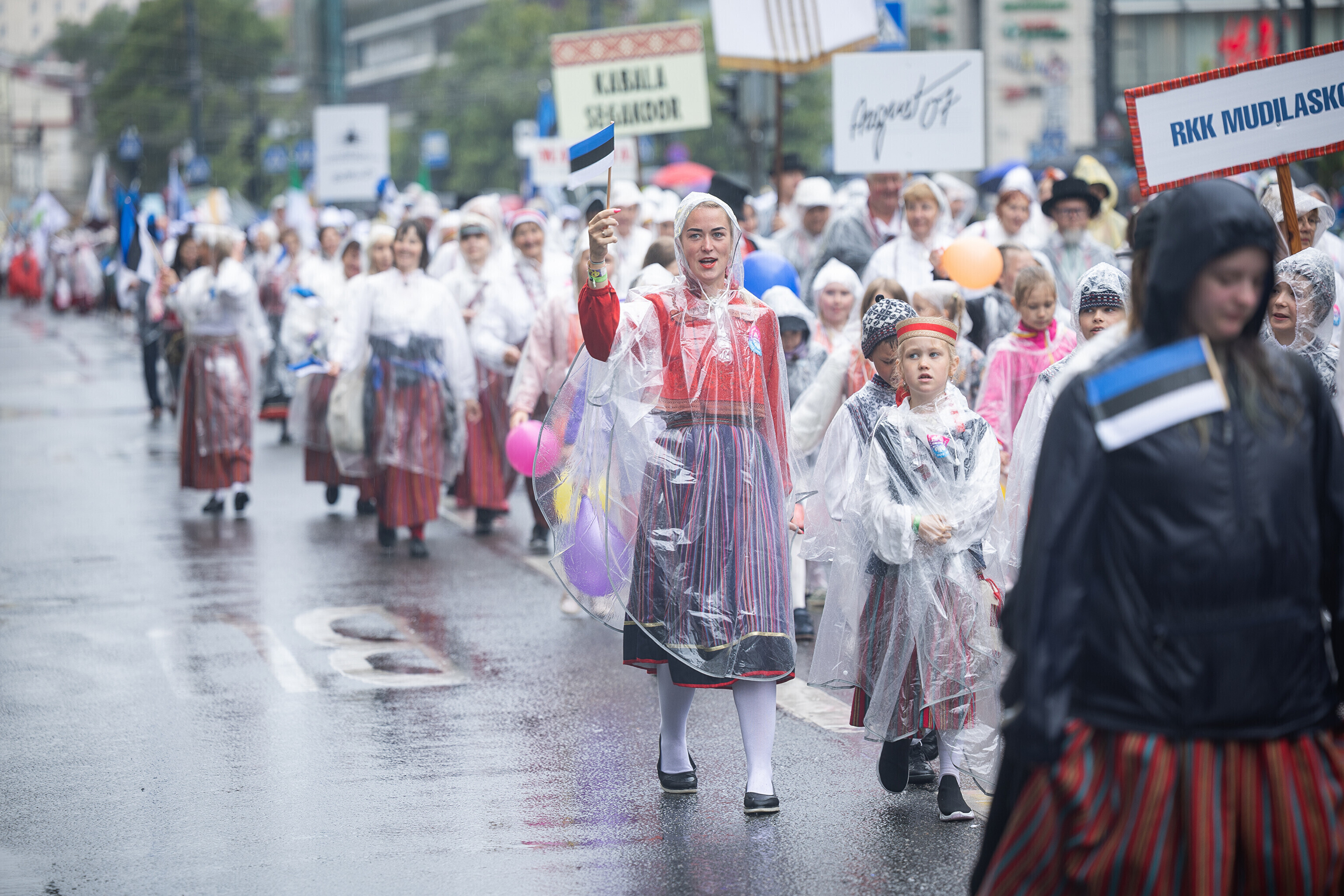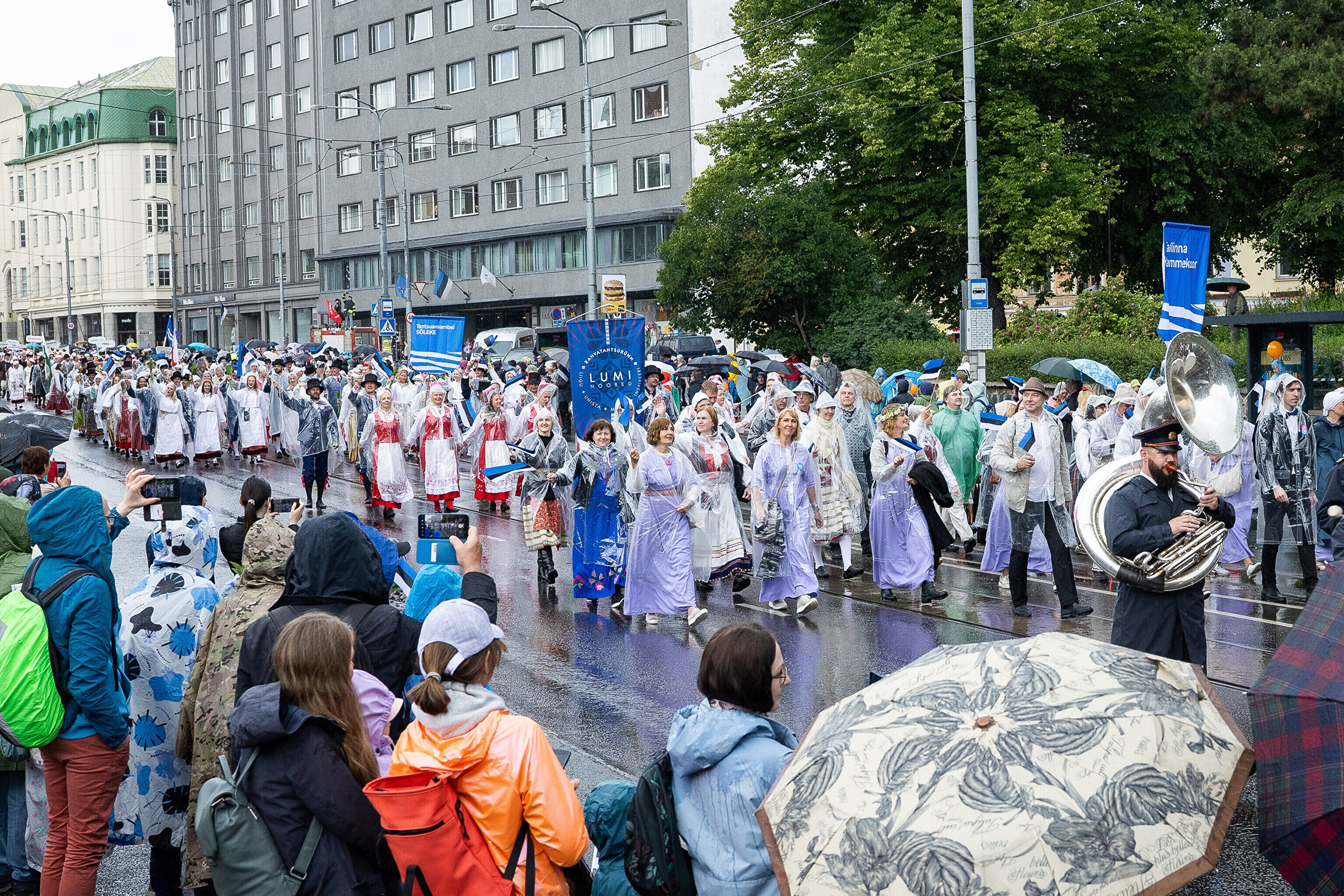 В шествии XXVIII Праздника песни и XXI Праздника танца принимают участие более 41 000 певцов, музыкантов, танцоров и народных исполнителей из 1869 коллективов.