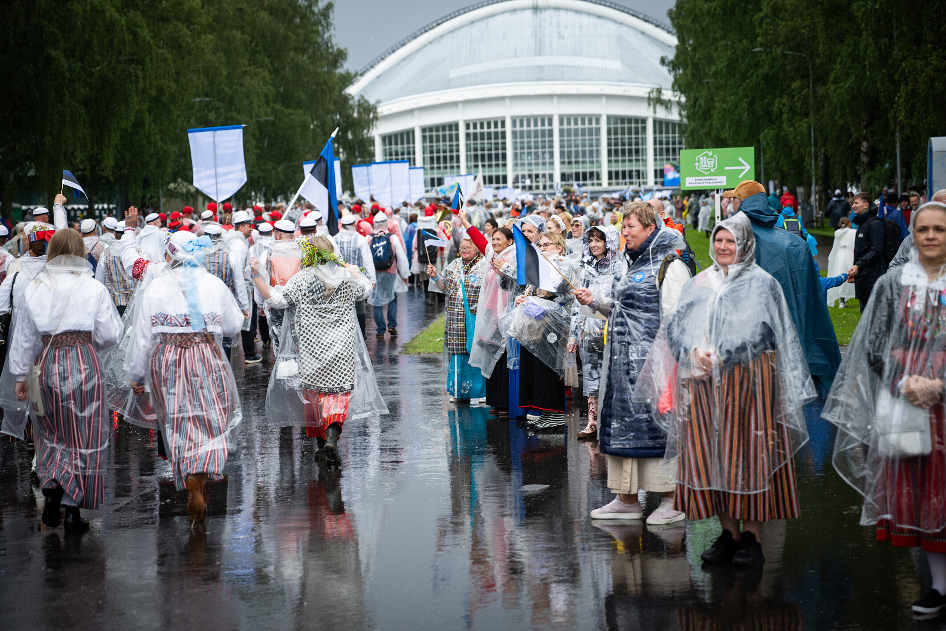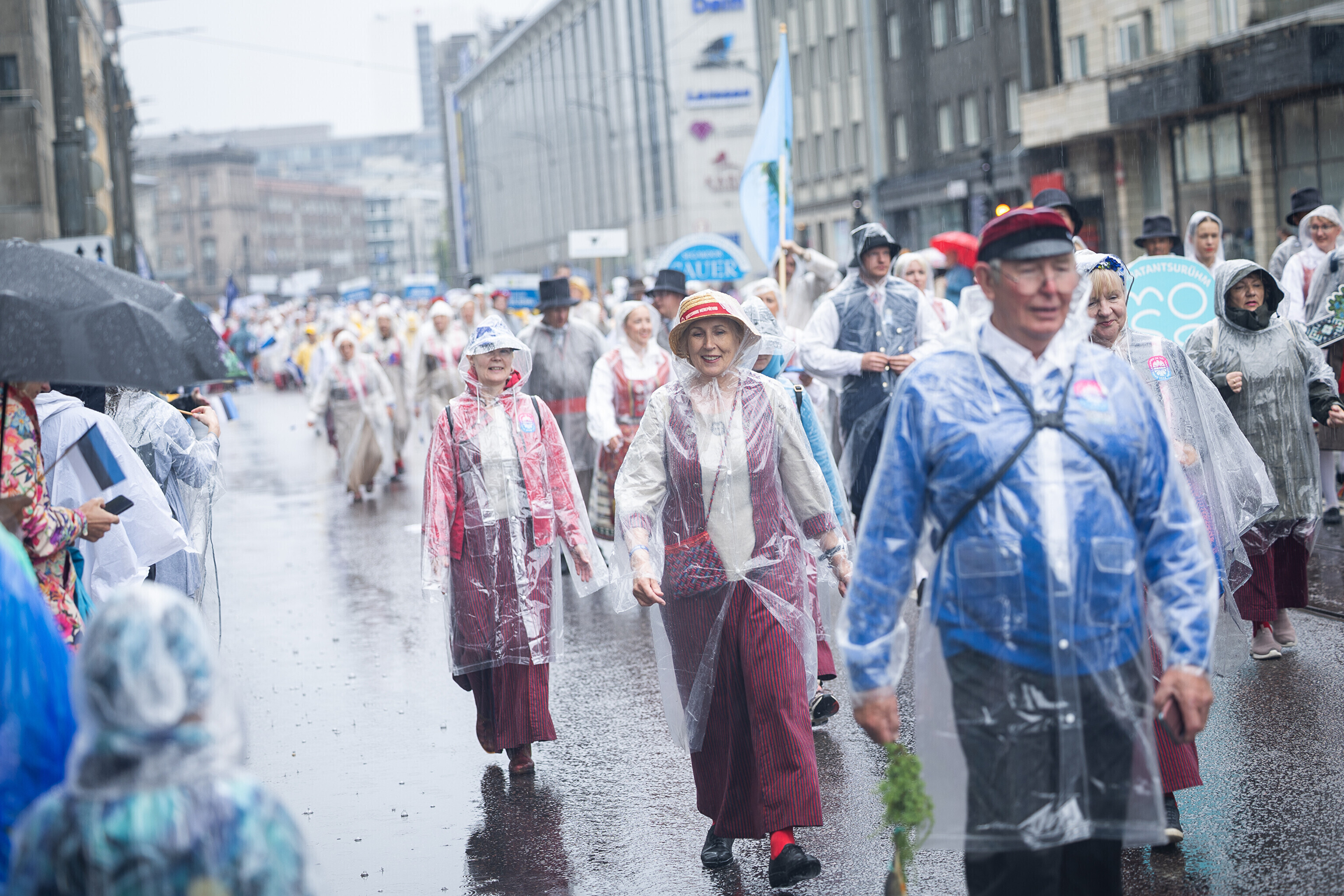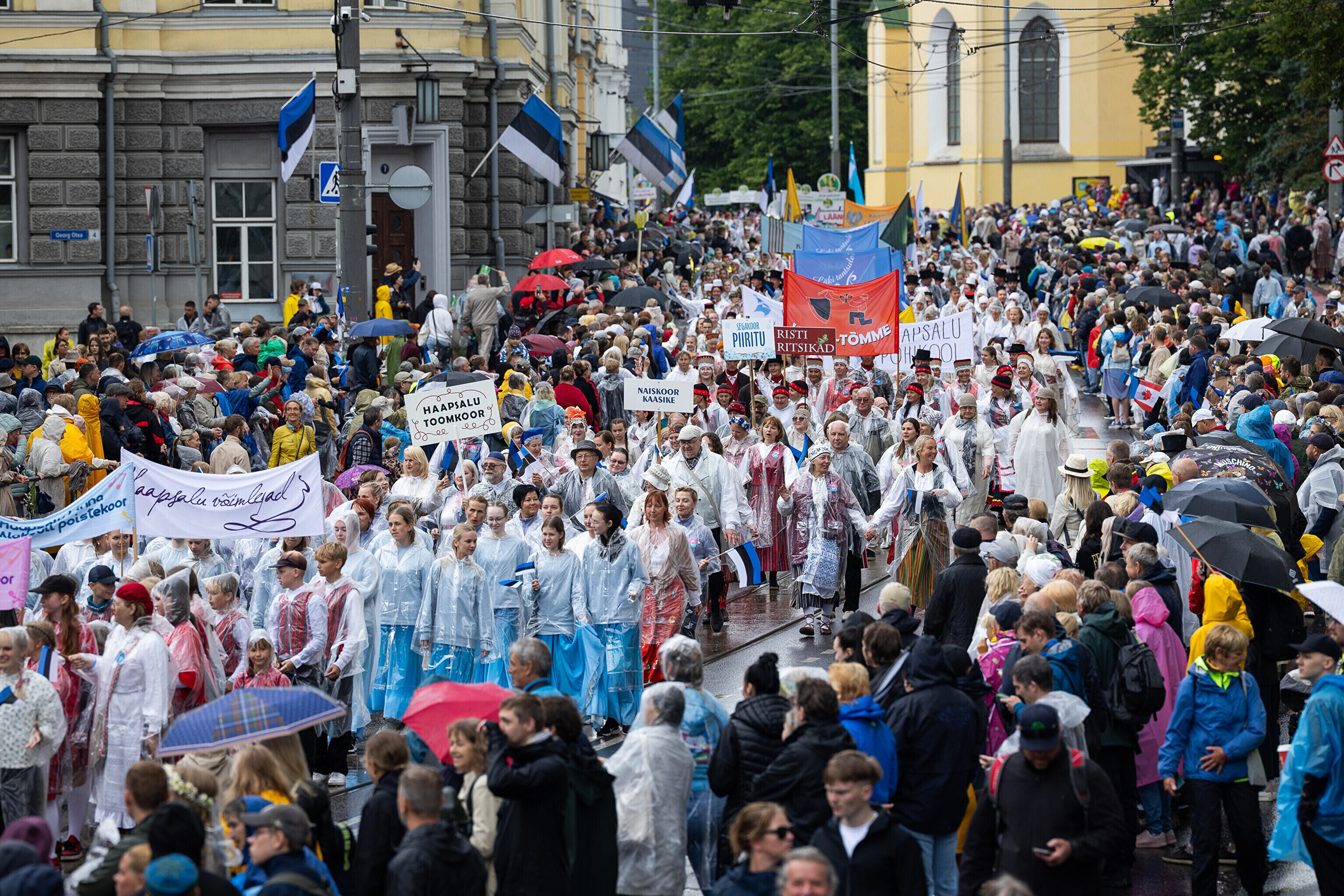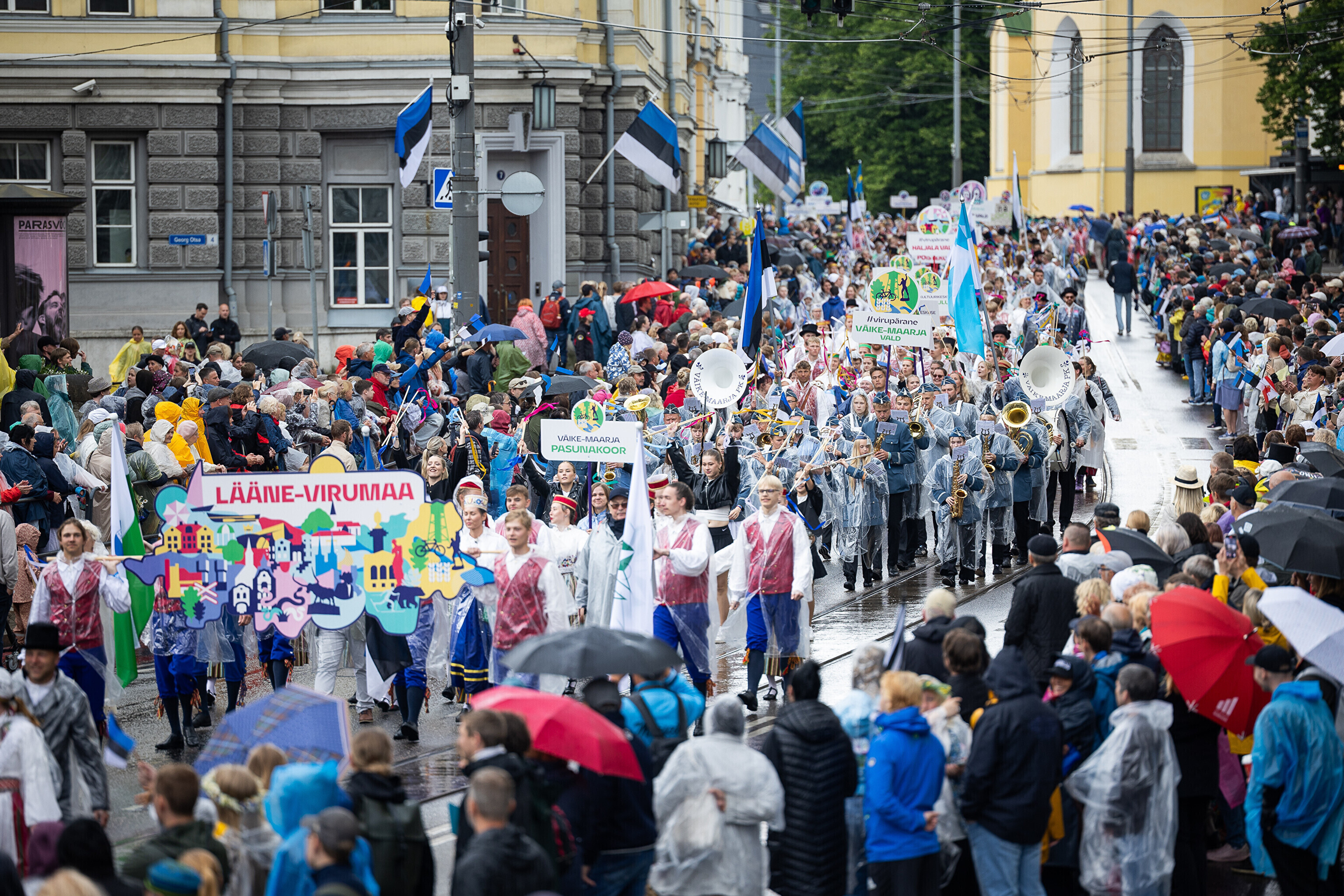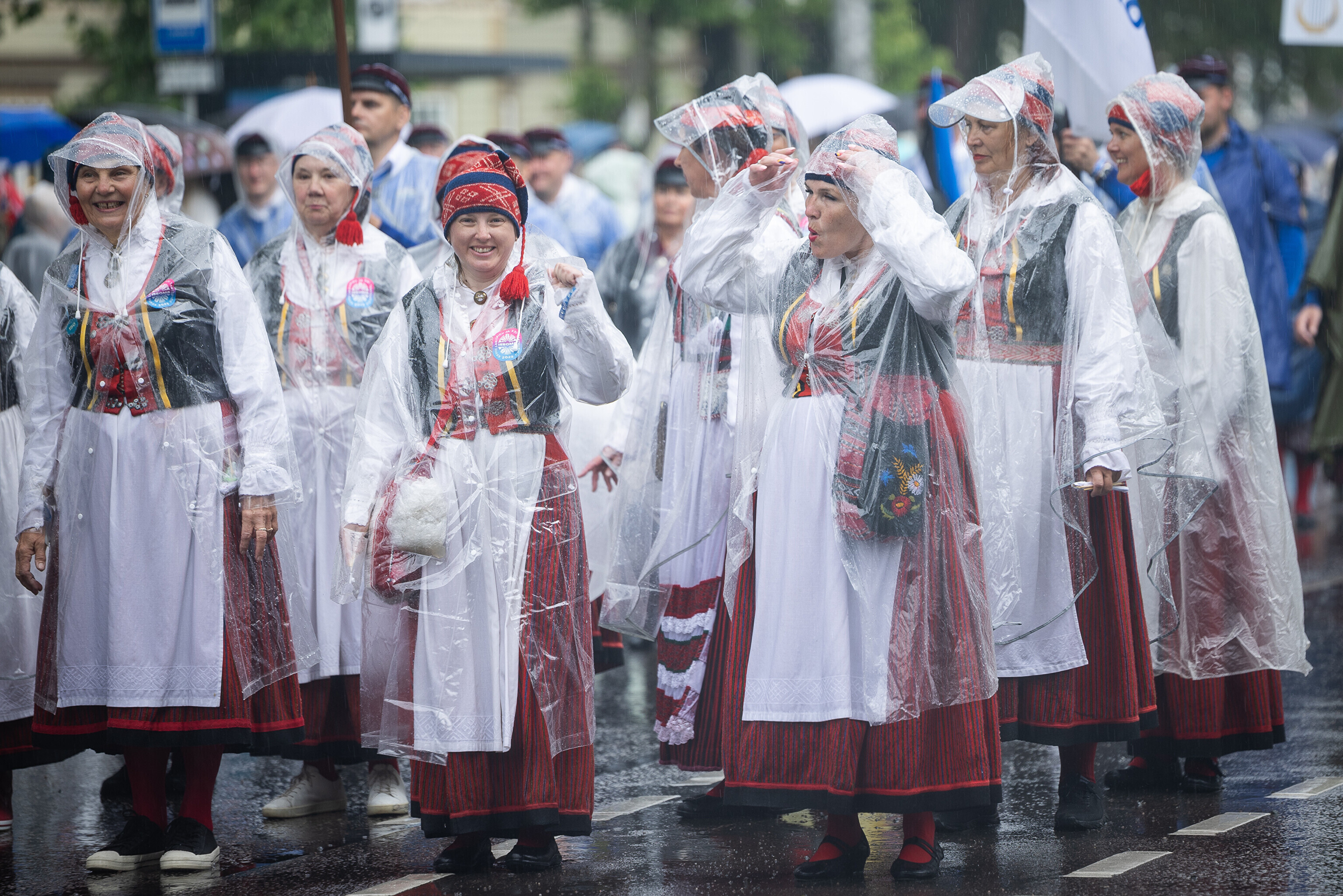 В шествии XXVIII Праздника песни и XXI Праздника танца принимают участие более 41 000 певцов, музыкантов, танцоров и народных исполнителей из 1869 коллективов.