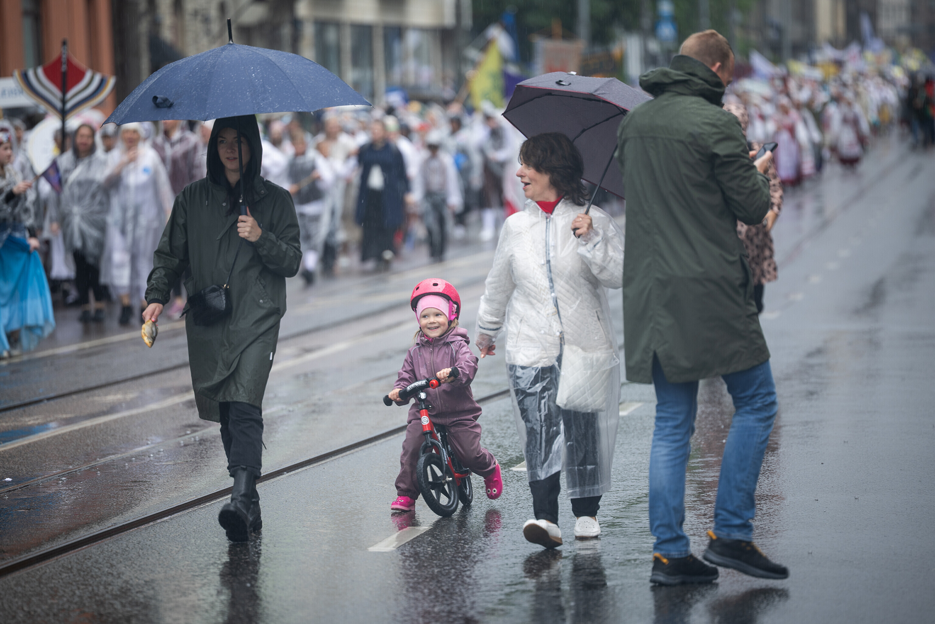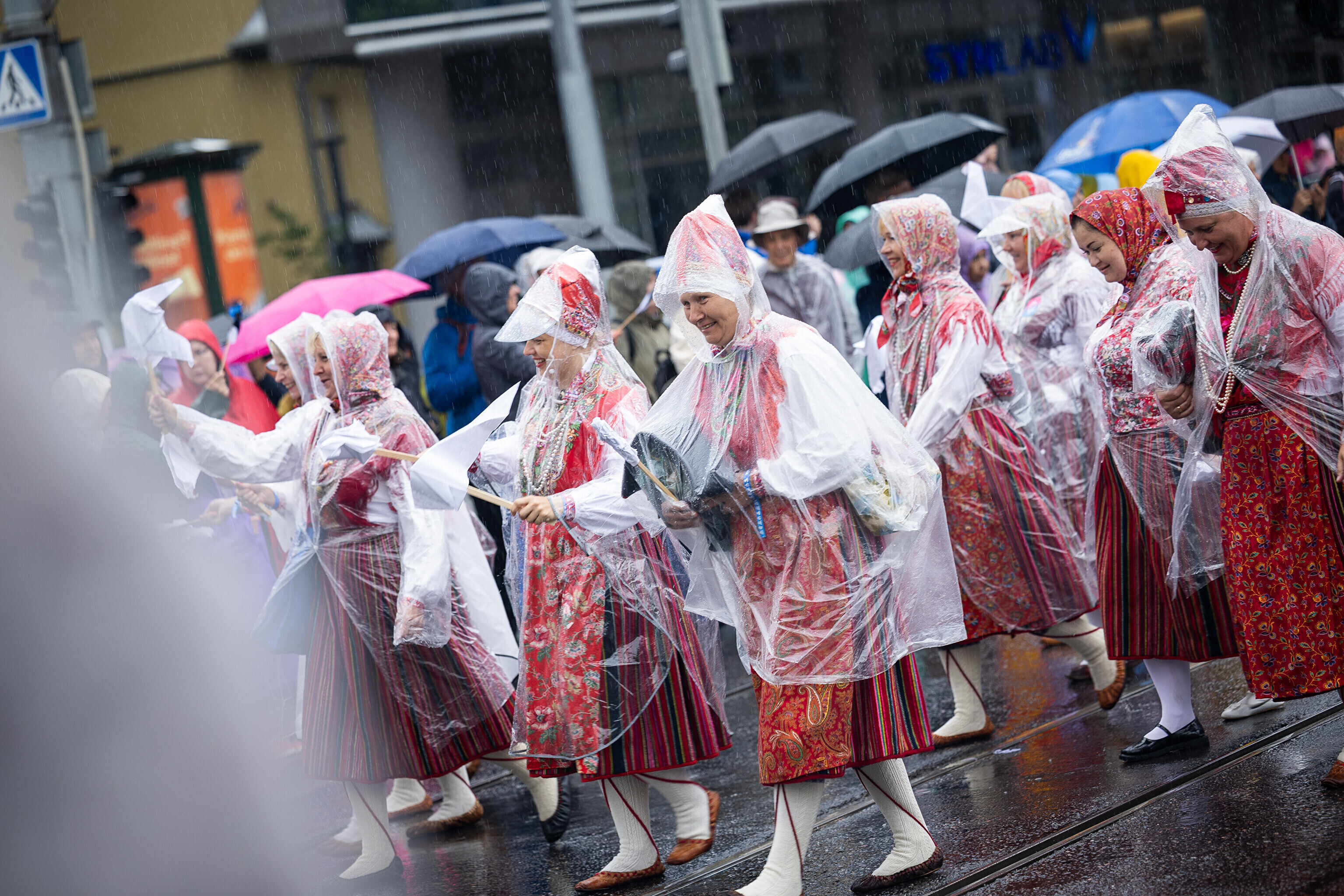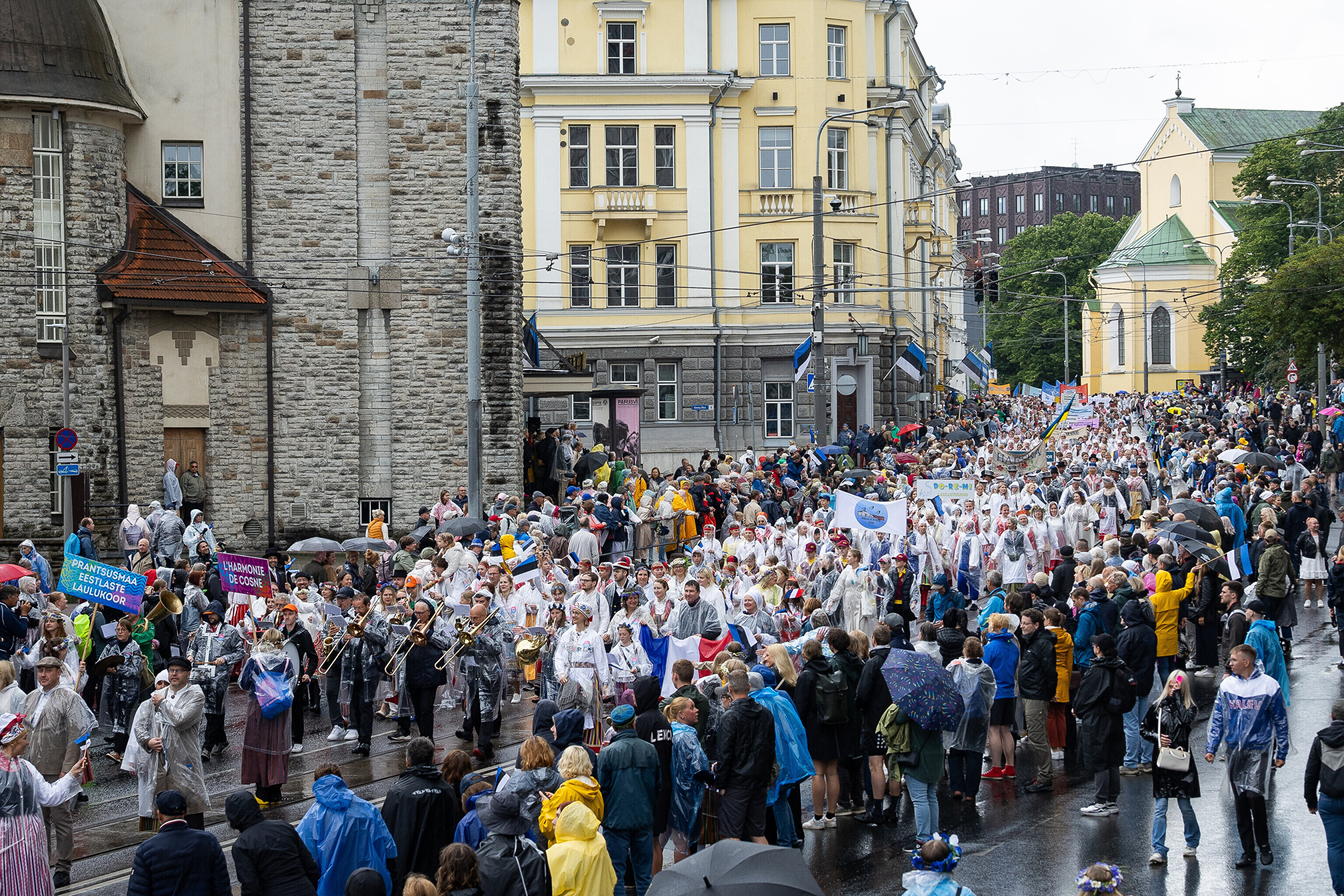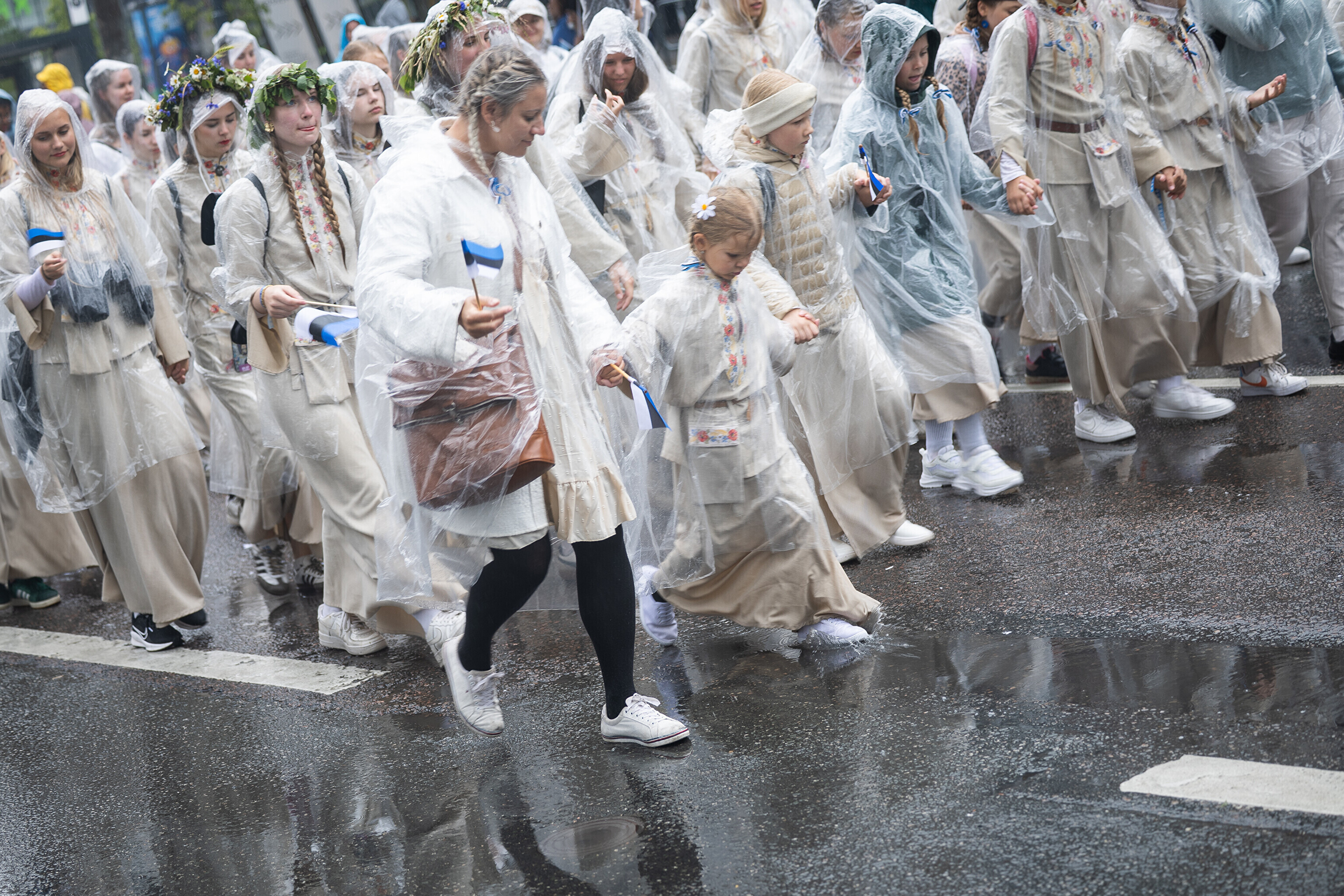 В шествии XXVIII Праздника песни и XXI Праздника танца принимают участие более 41 000 певцов, музыкантов, танцоров и народных исполнителей из 1869 коллективов.