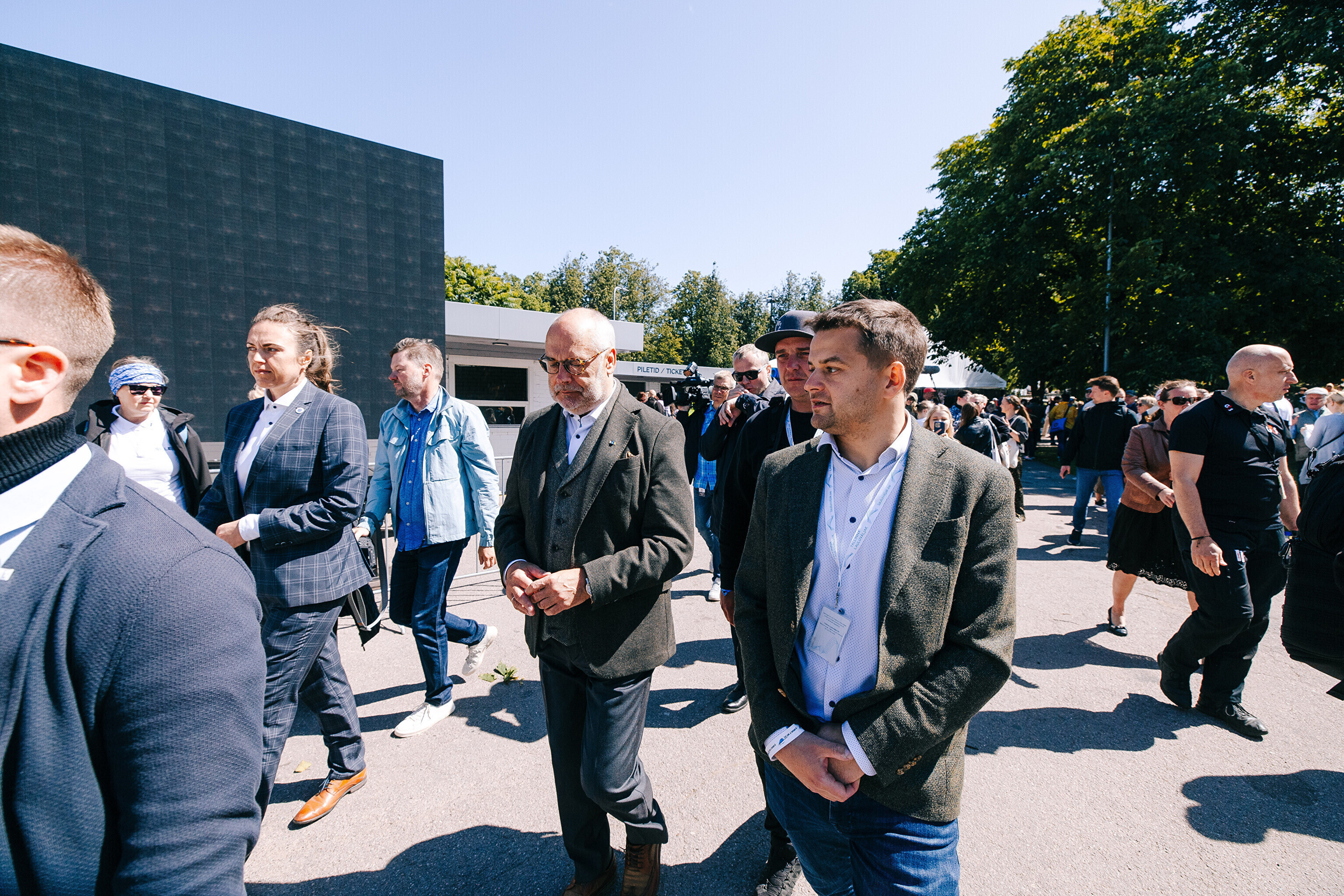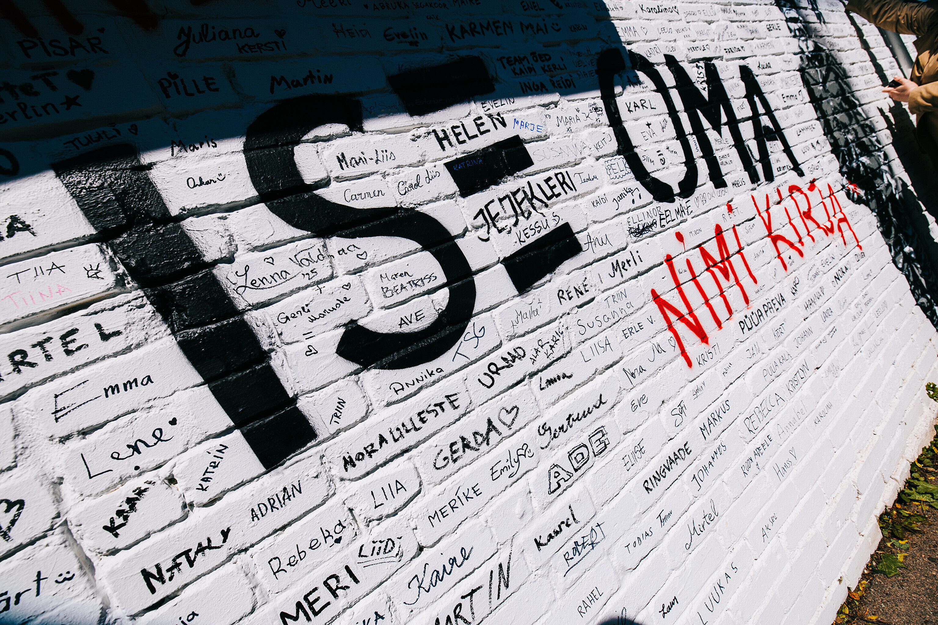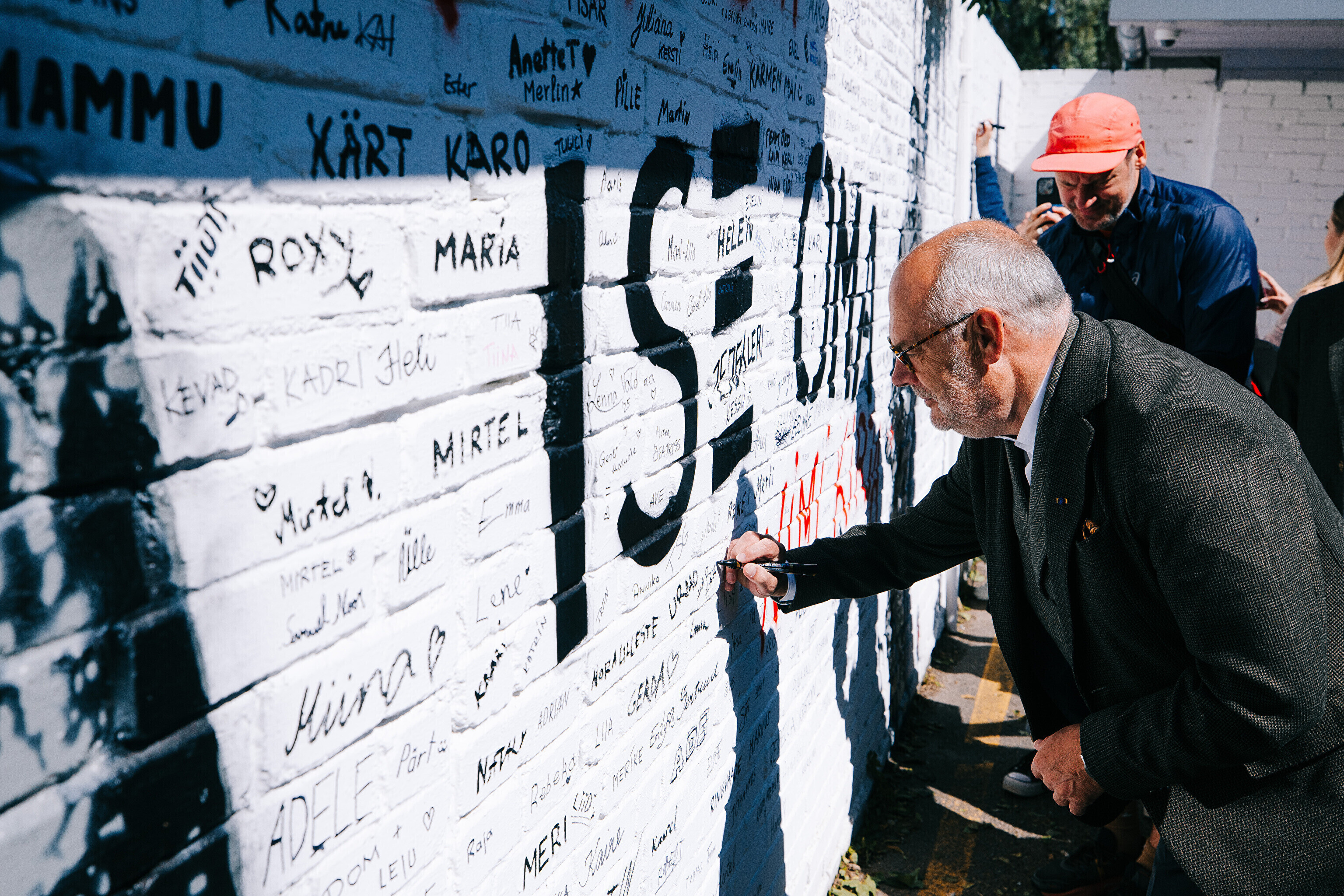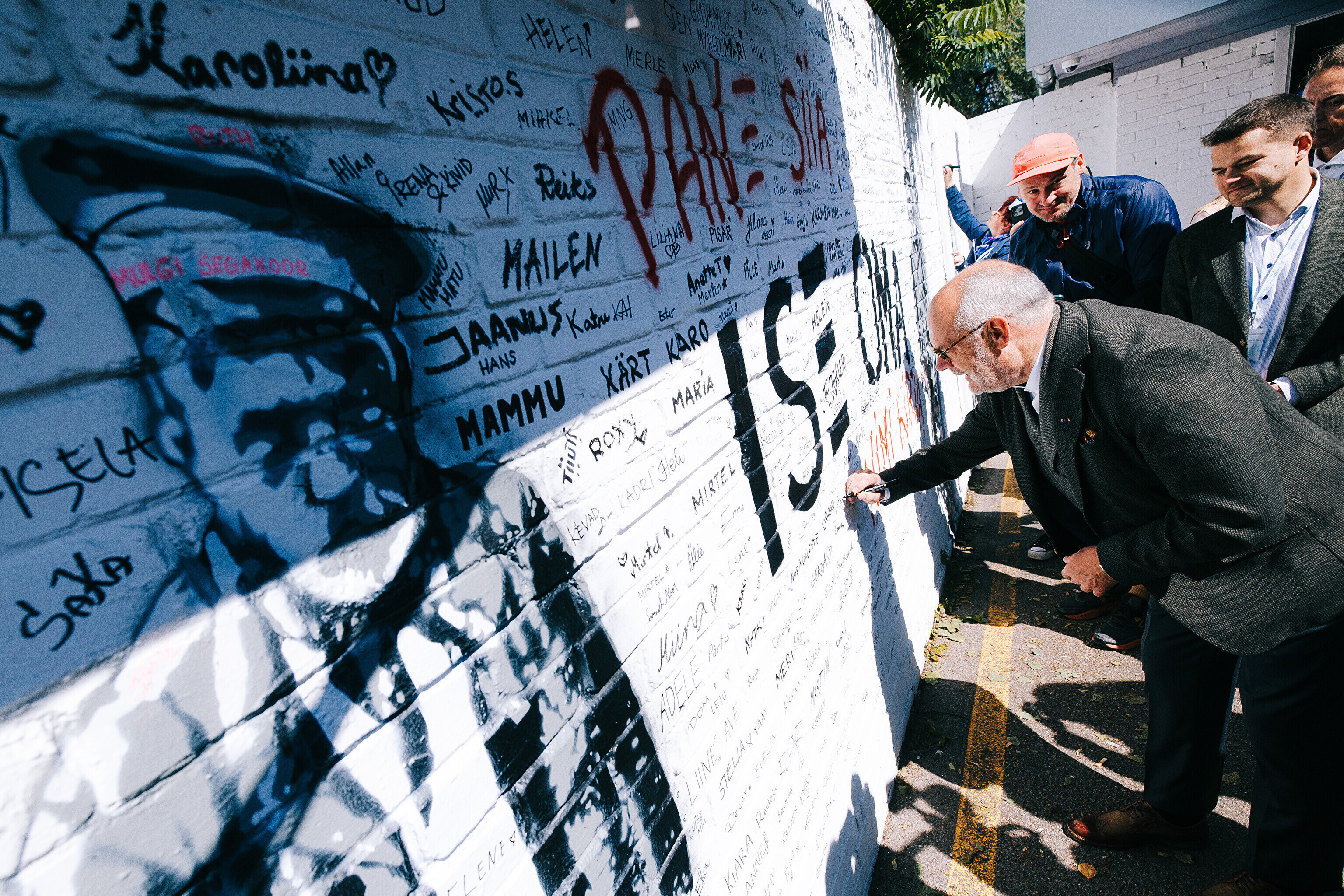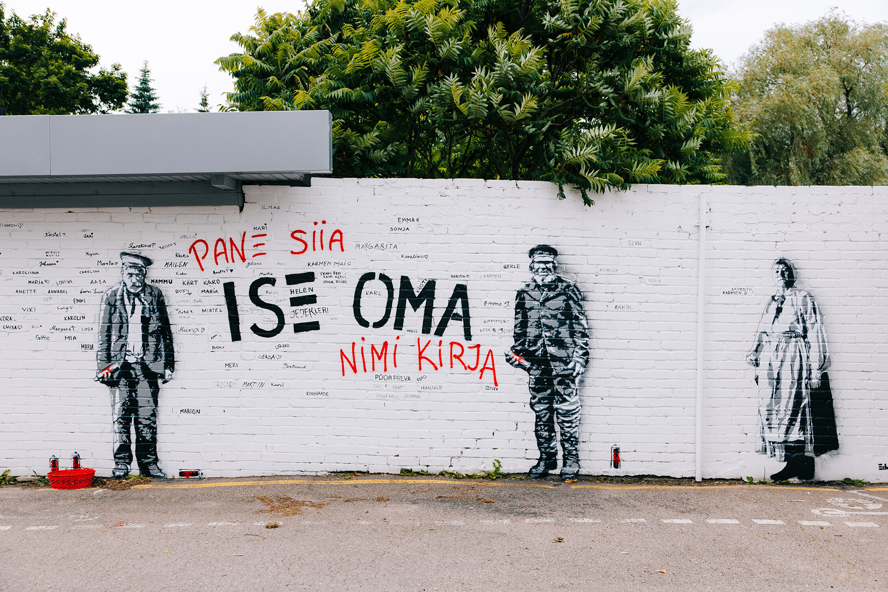 Произведения размещены на кассовых павильонах у ворот Ору на Певческое поле. Одна из работ приглашает и зрителей оставить свои имена на стене. Свою подпись в пятницу оставил президент Эстонии Алар Карис.