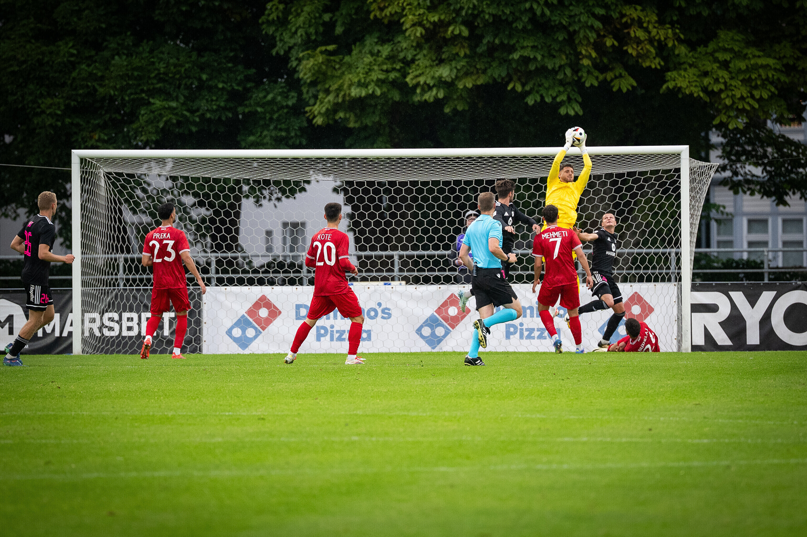 Столичный "Нымме Калью" на стадионе "Кадриорг" сыграл вничью с албанским клубом "Партизани" - 1:1. Маттиас Мяннилаан вывел "Калью" вперед в начале второго тайма, но албанцы быстро сравняли. Ответная игра состоится в Тиране, победитель в следующем раунде встретится с лучшим из пары "Сент-Патрикс" (Ирландия) - "Хегельман" (Литва).