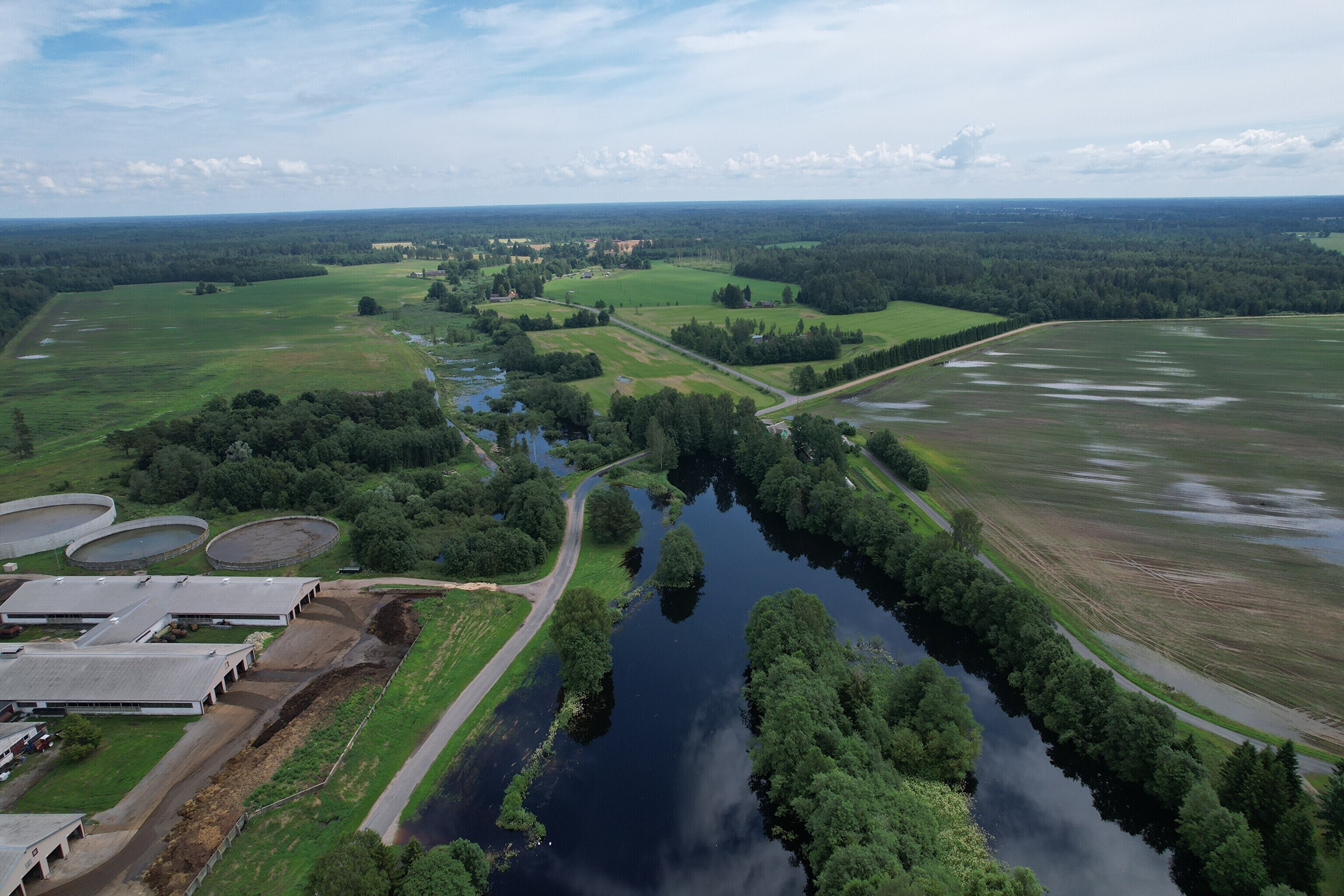 ФОТО: вышедшая из берегов из-за дождей река Рейу затопила деревню Сурью в Пярнумаа