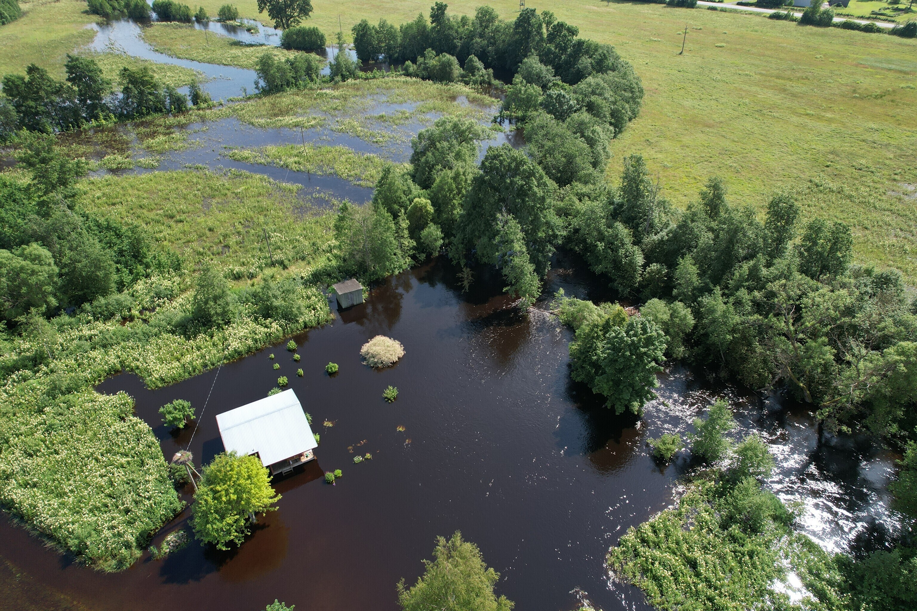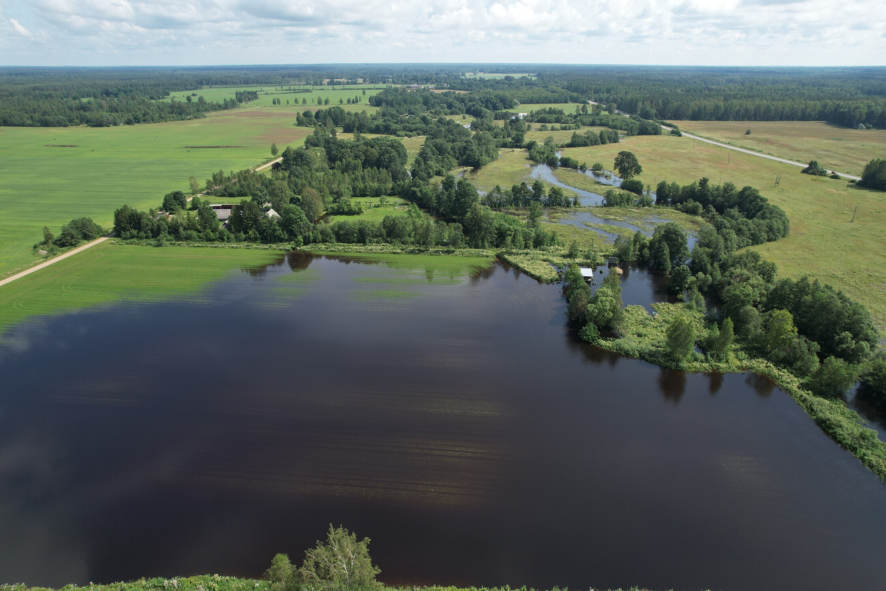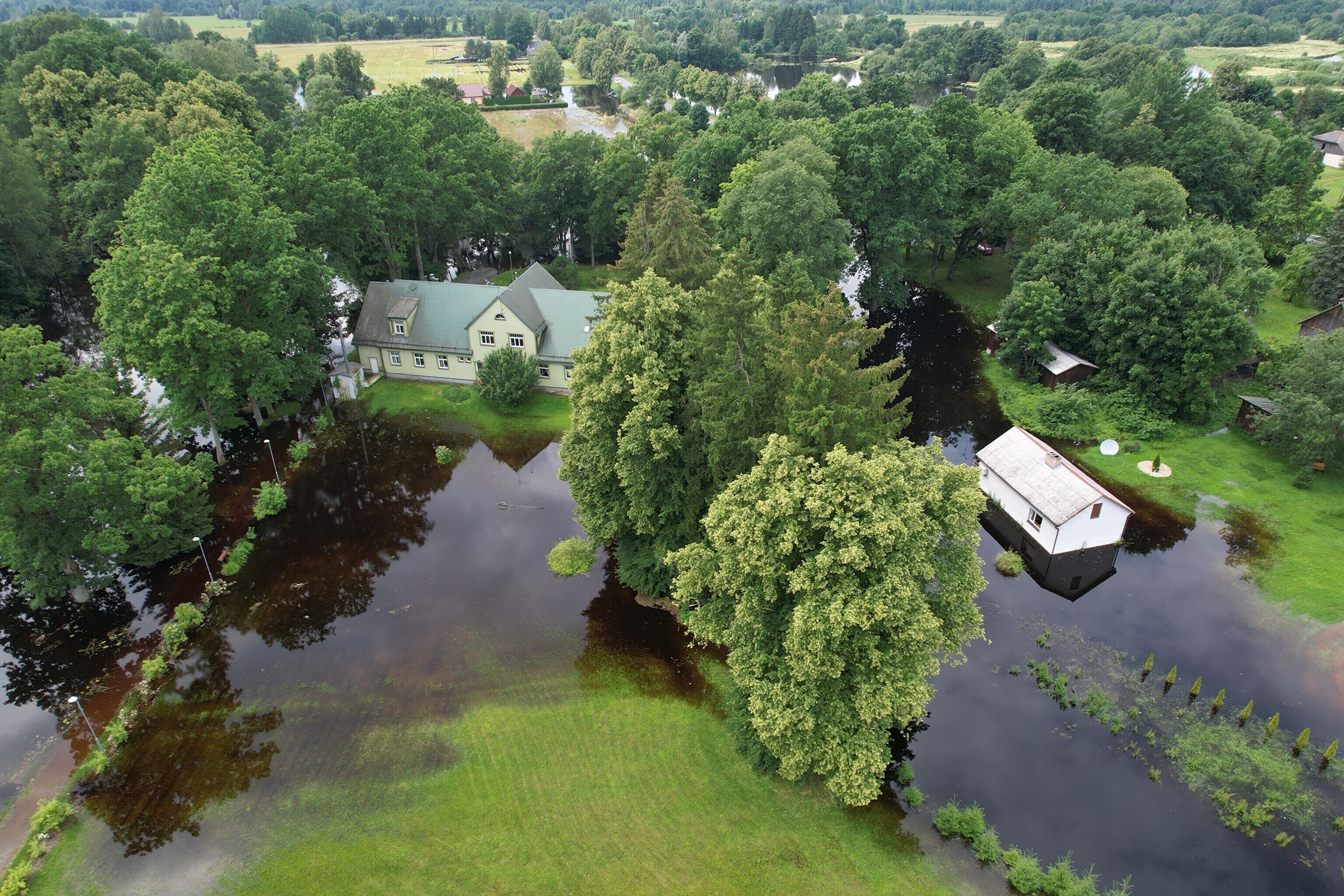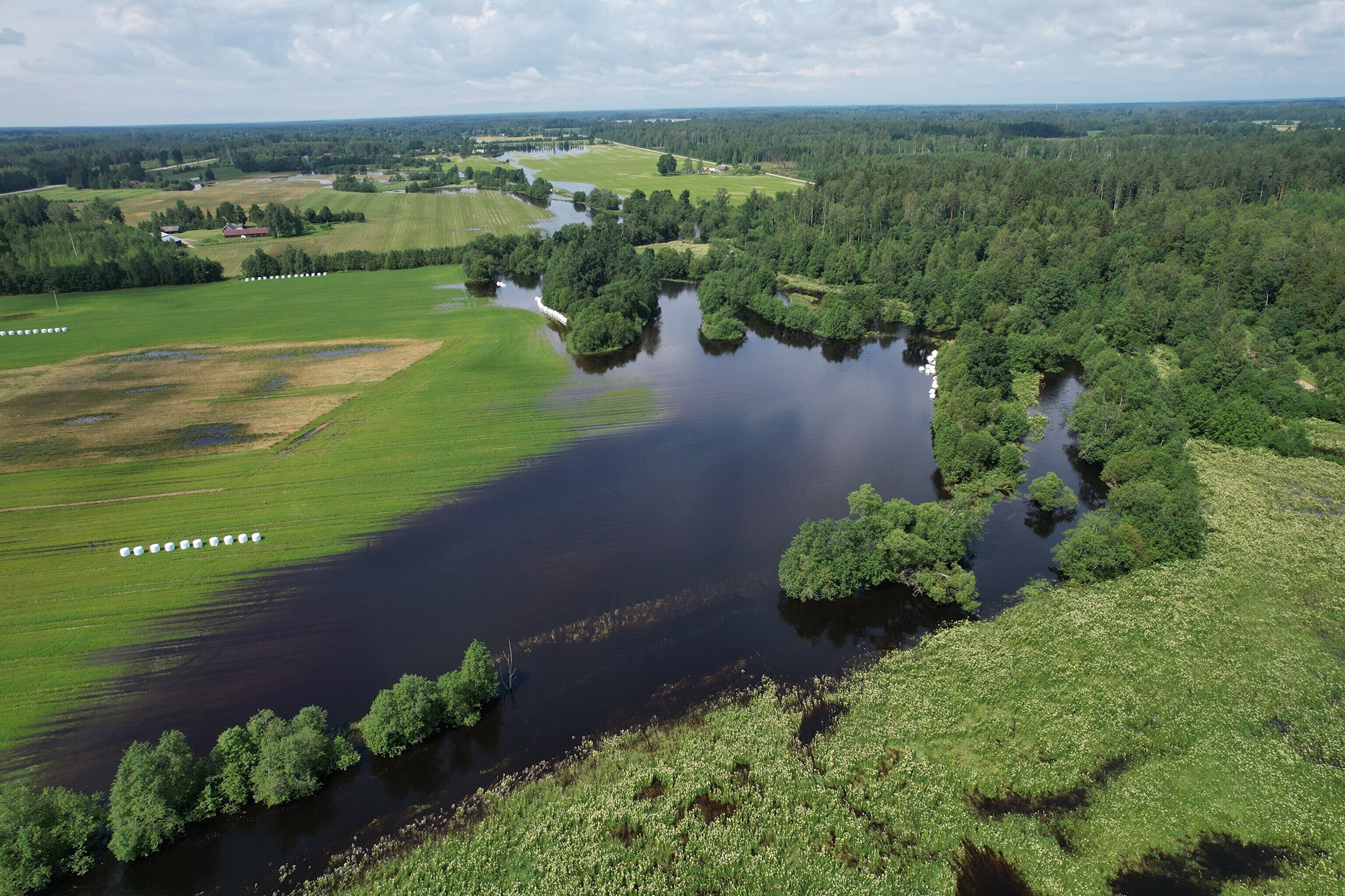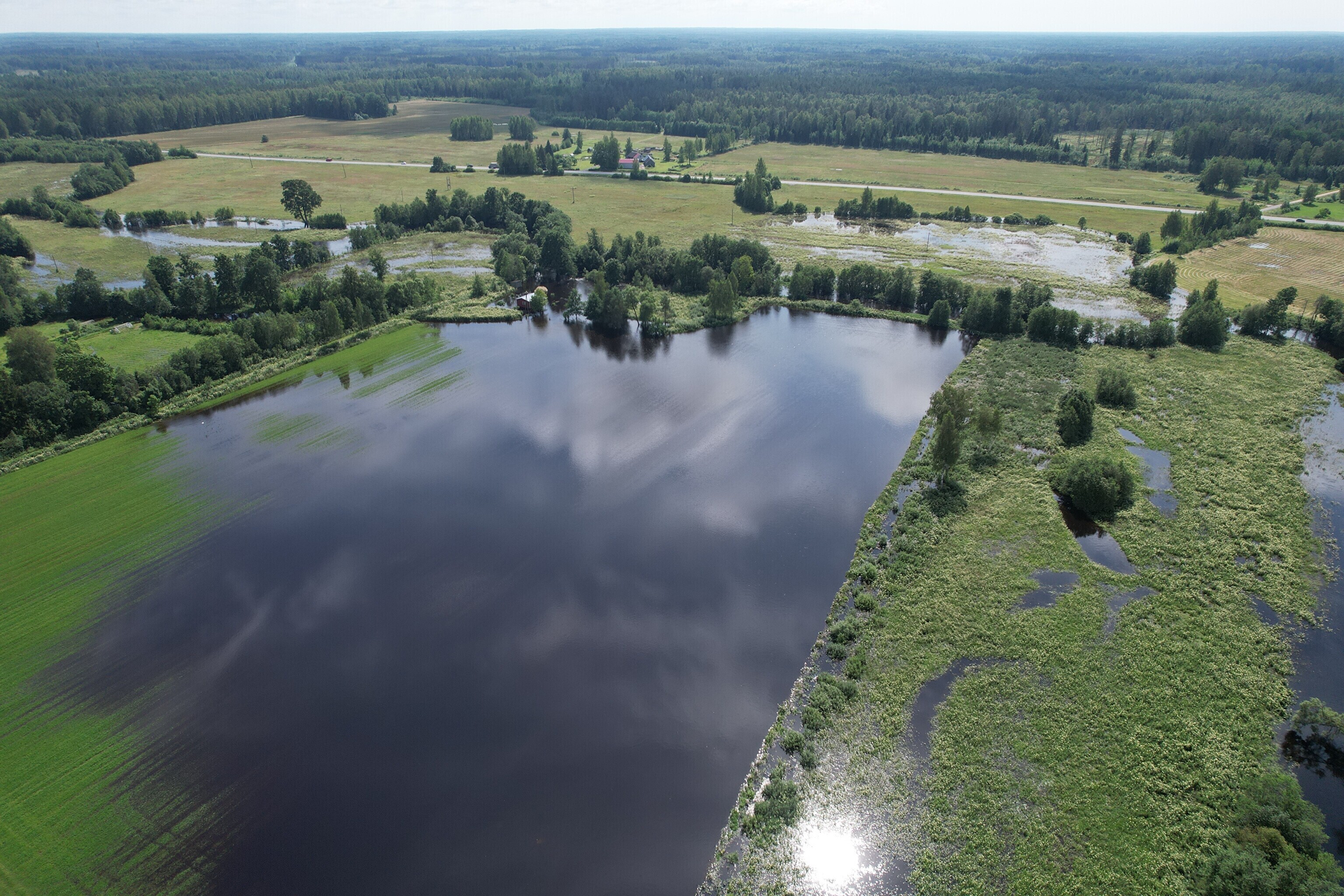 Обильные дожди в середине июля заметно повысили уровень воды в реке Рейу в Пярнуском уезде, которая вышла из берегов и подтопила деревню Сурью в волосте Саарде.