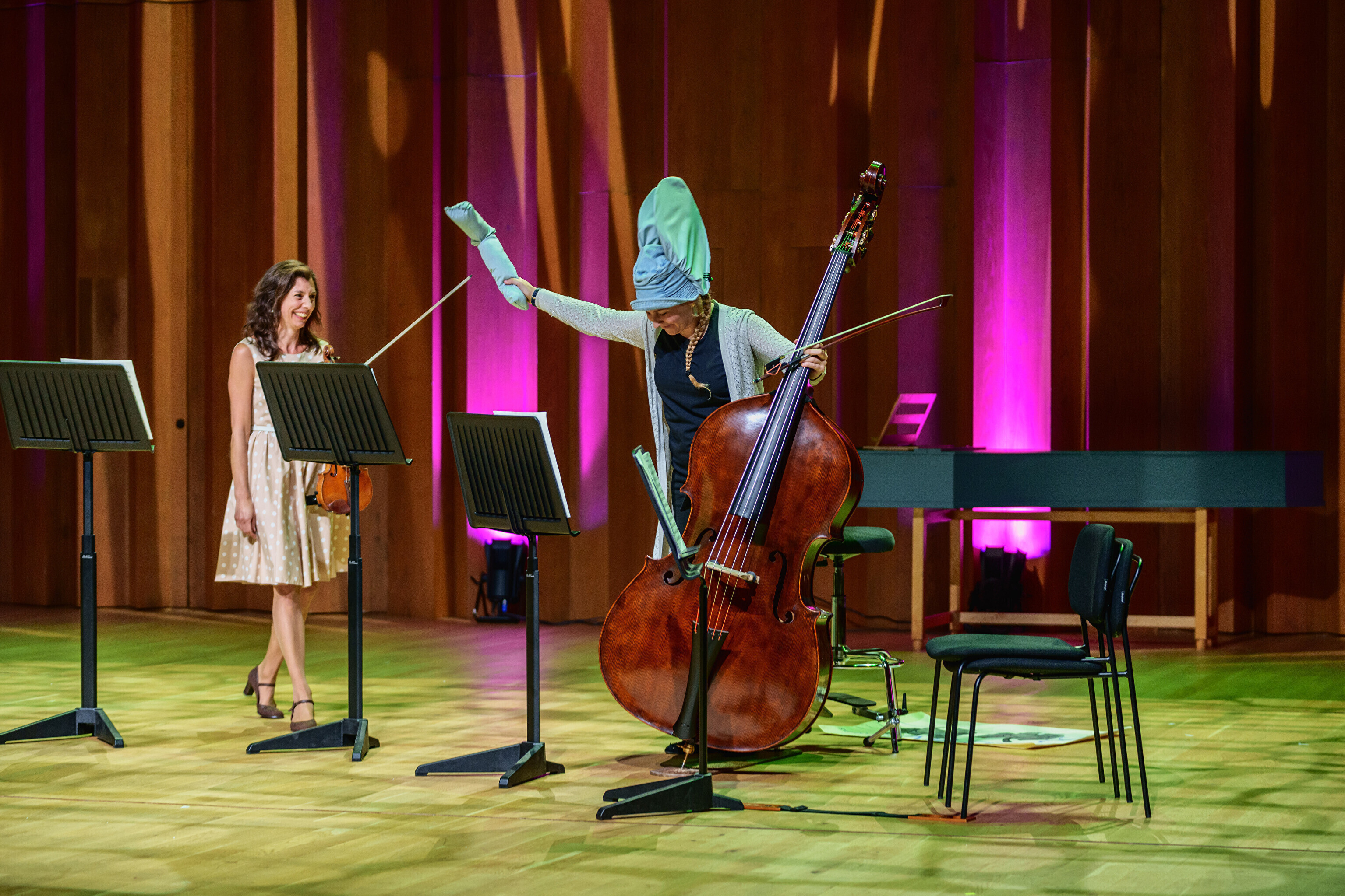 В симфоническом концерте приняли участие солисты: Анна Катарина Тралла (скрипка) и Александра Мария Тралла (виолончель).