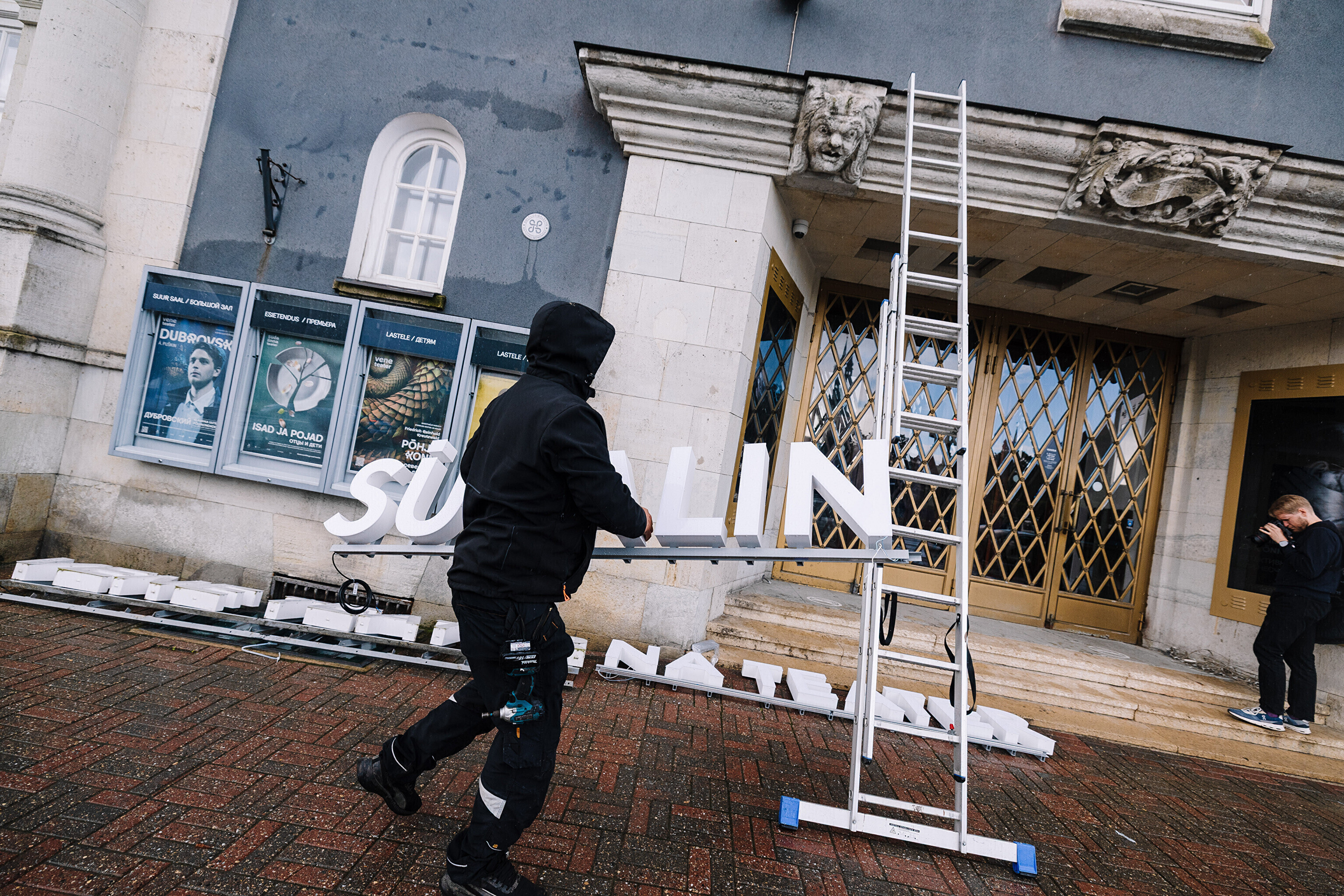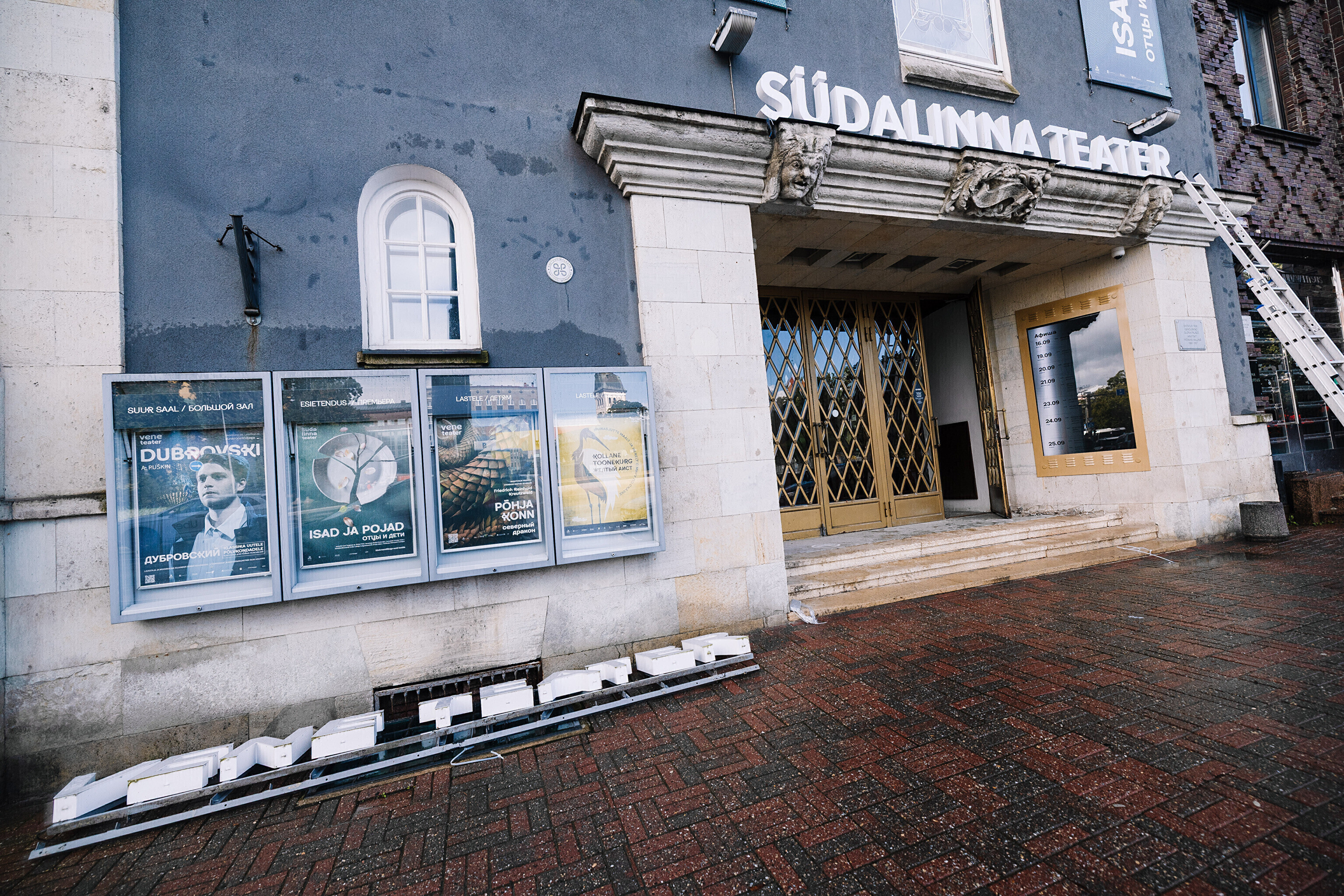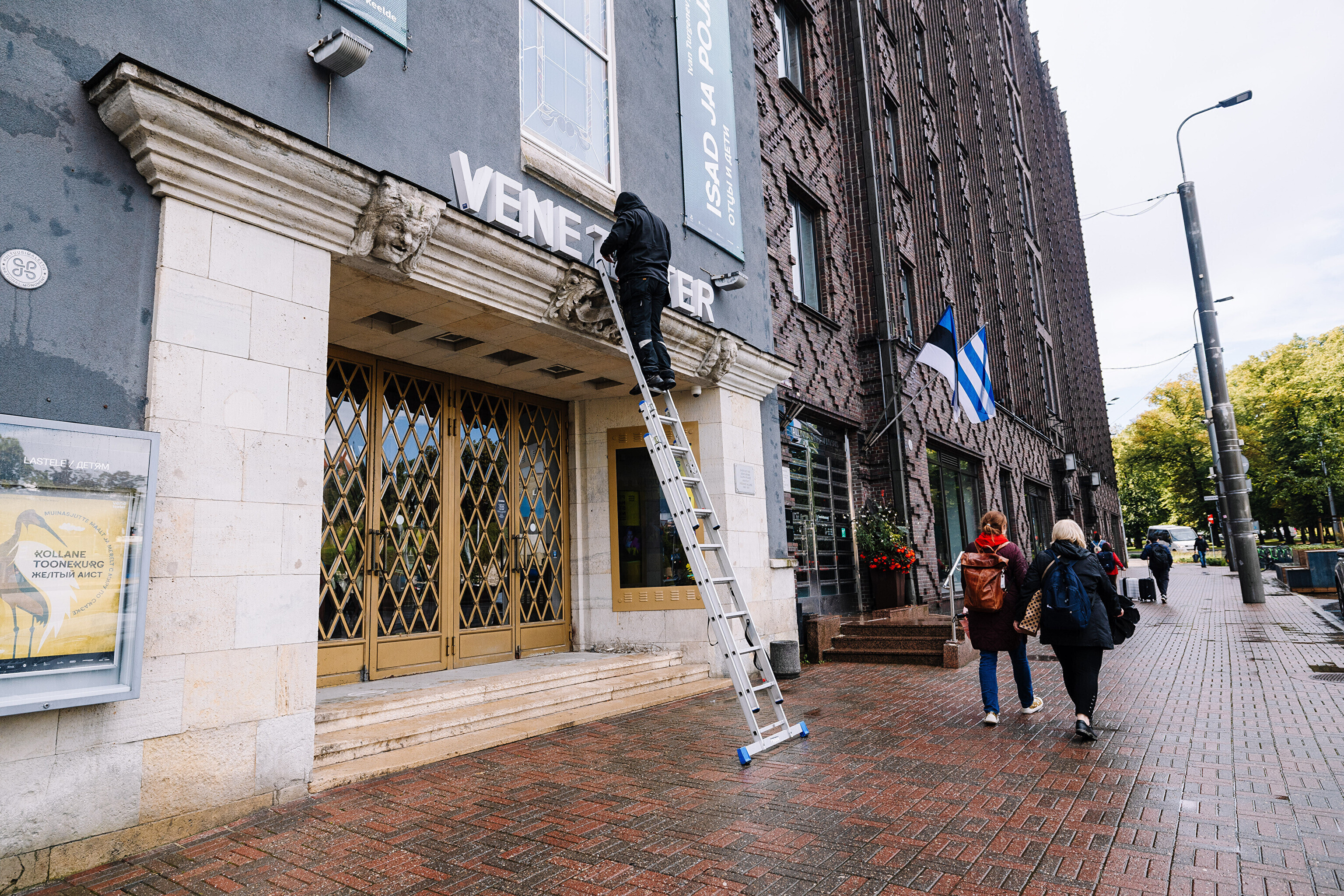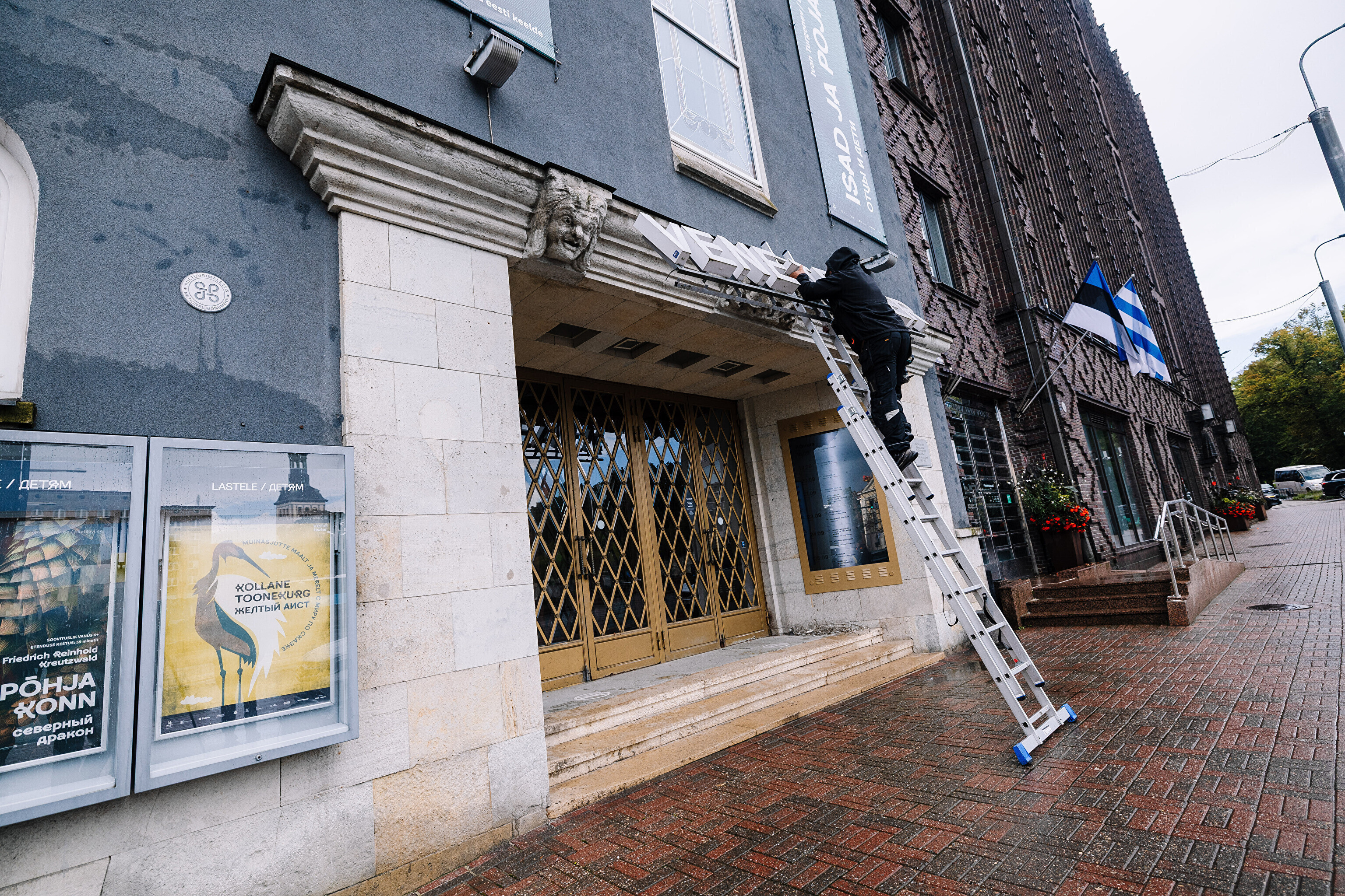 Во вторник, 16 сентября, на фасаде Театра Сюдалинна была демонтирована старая вывеска "Русский театр" и установлена новая вывеска с актуальным названием театра.