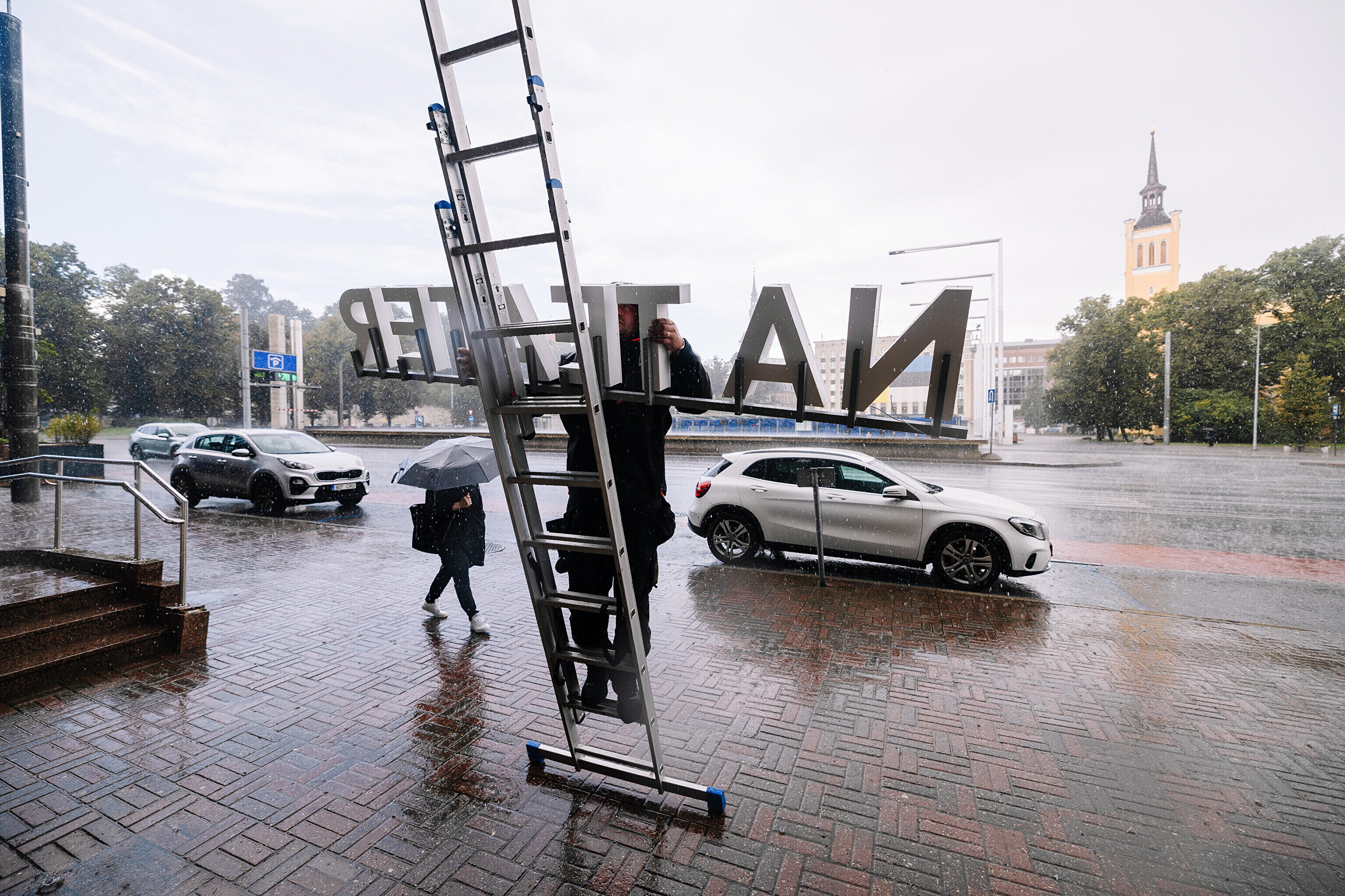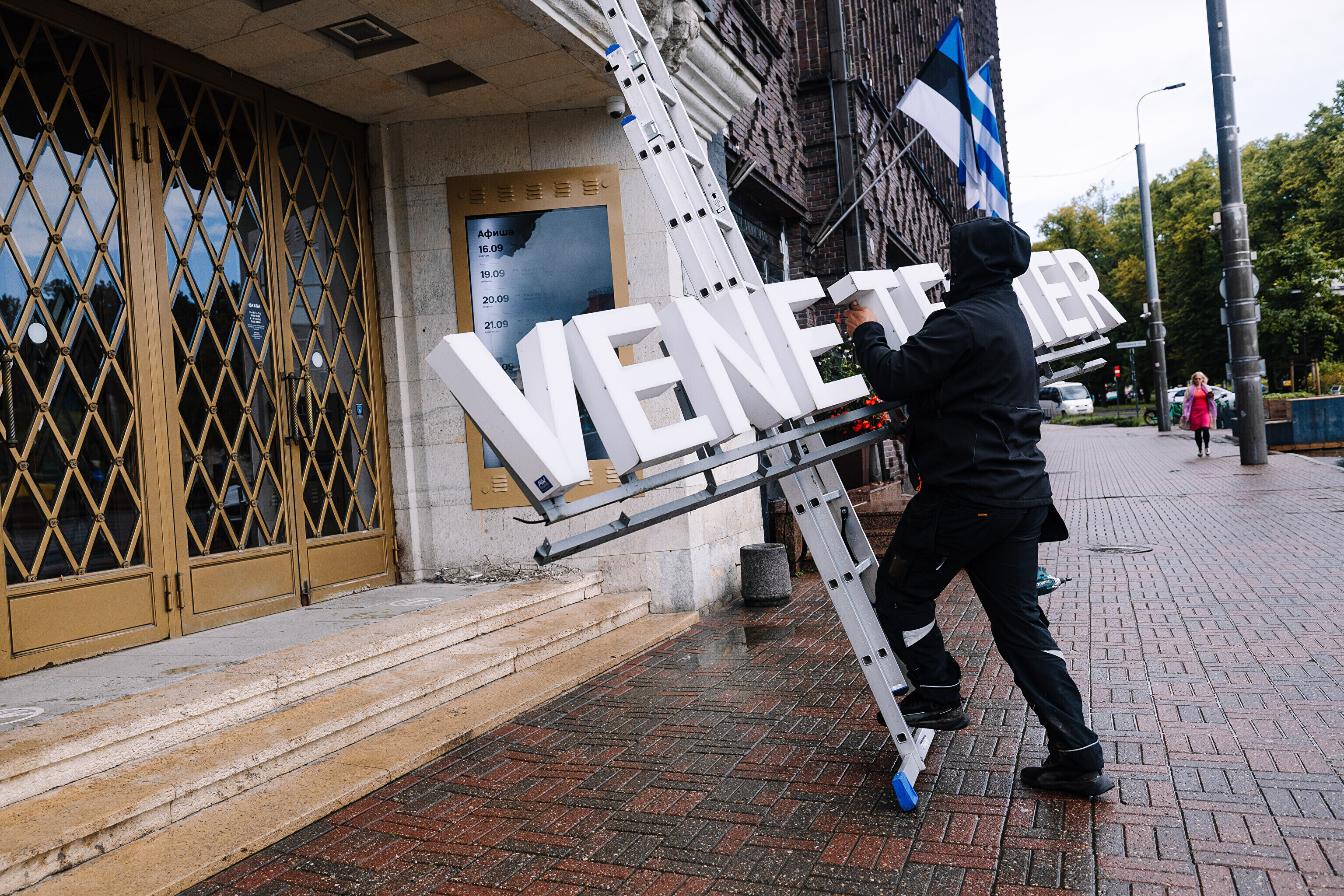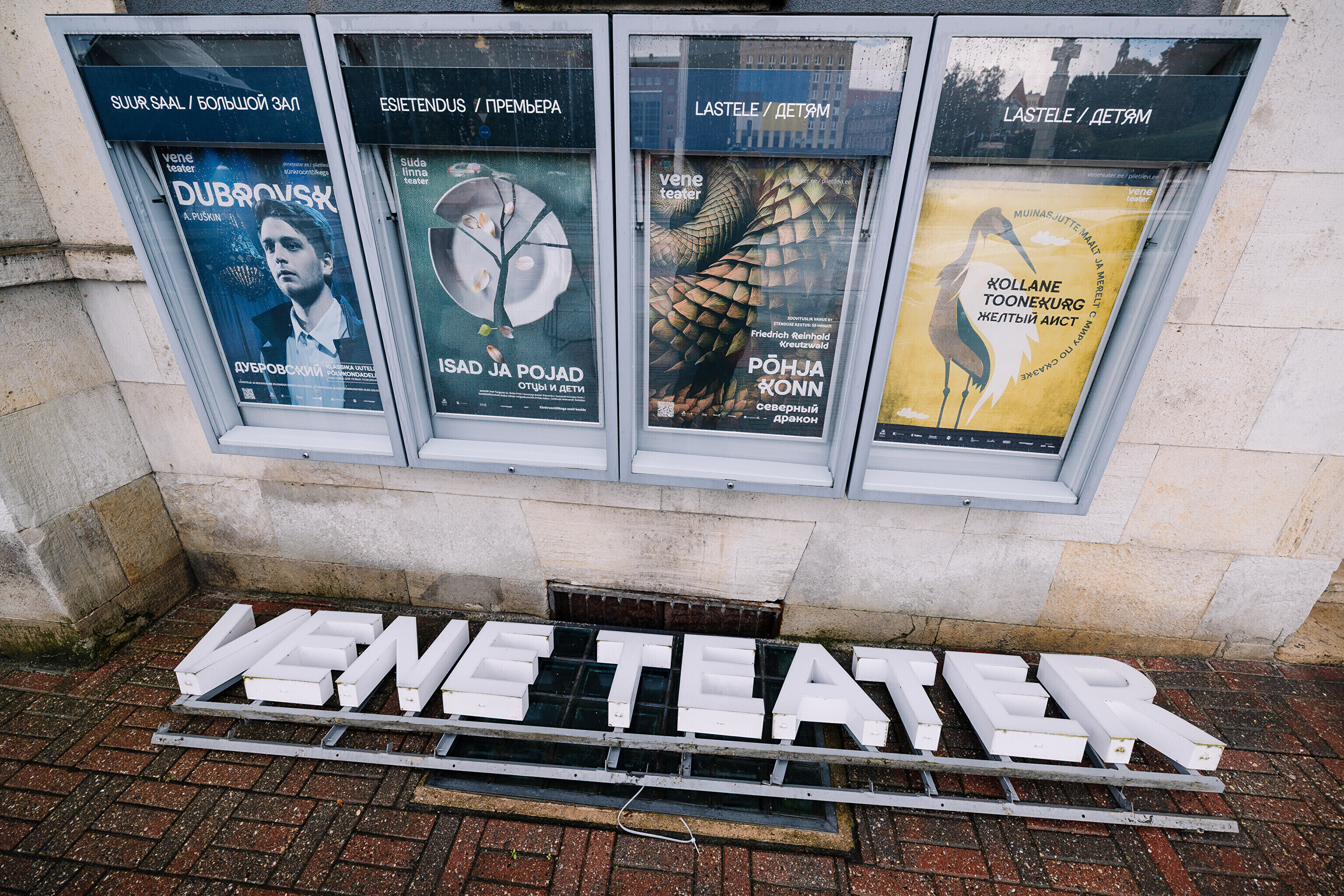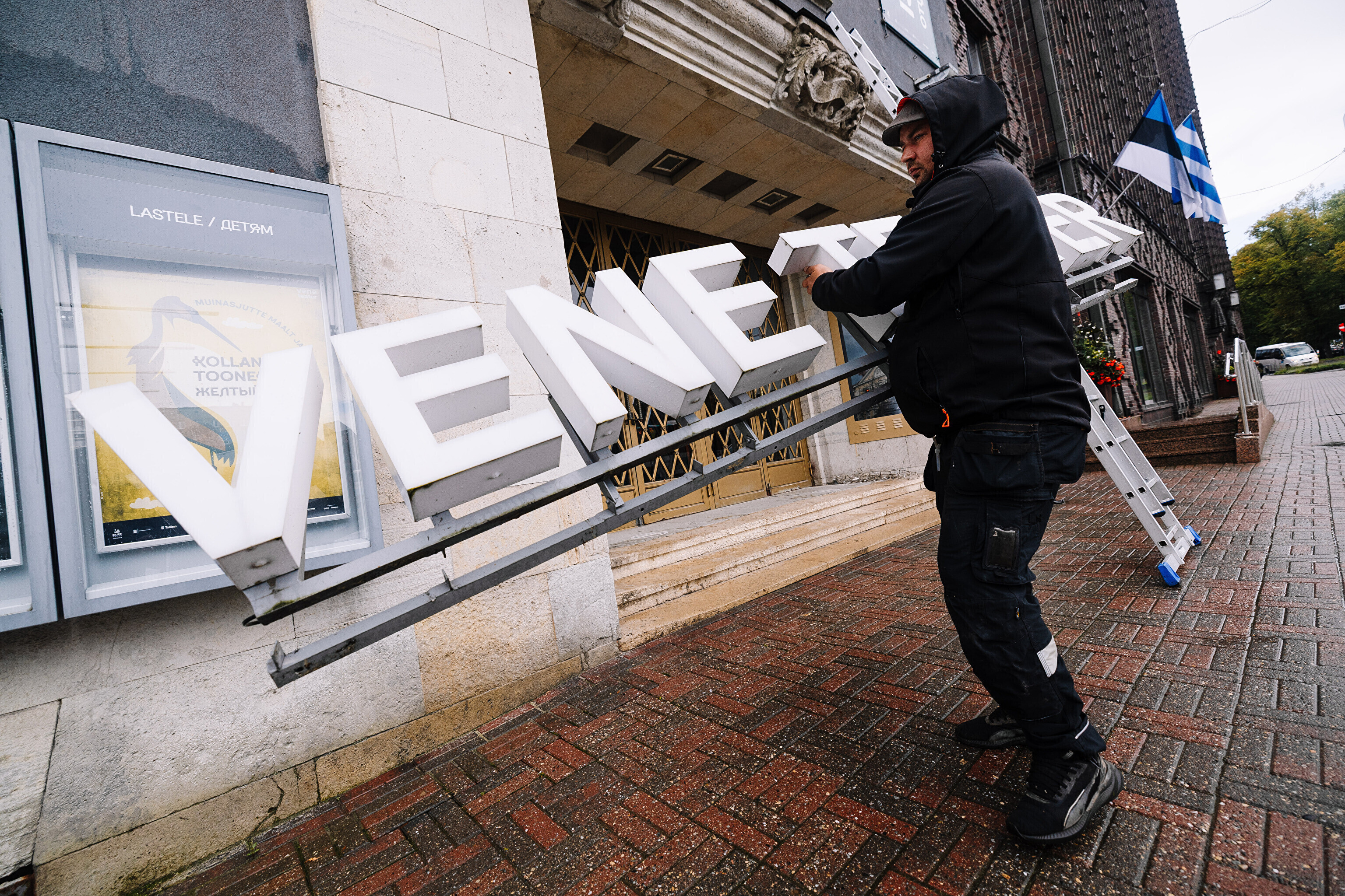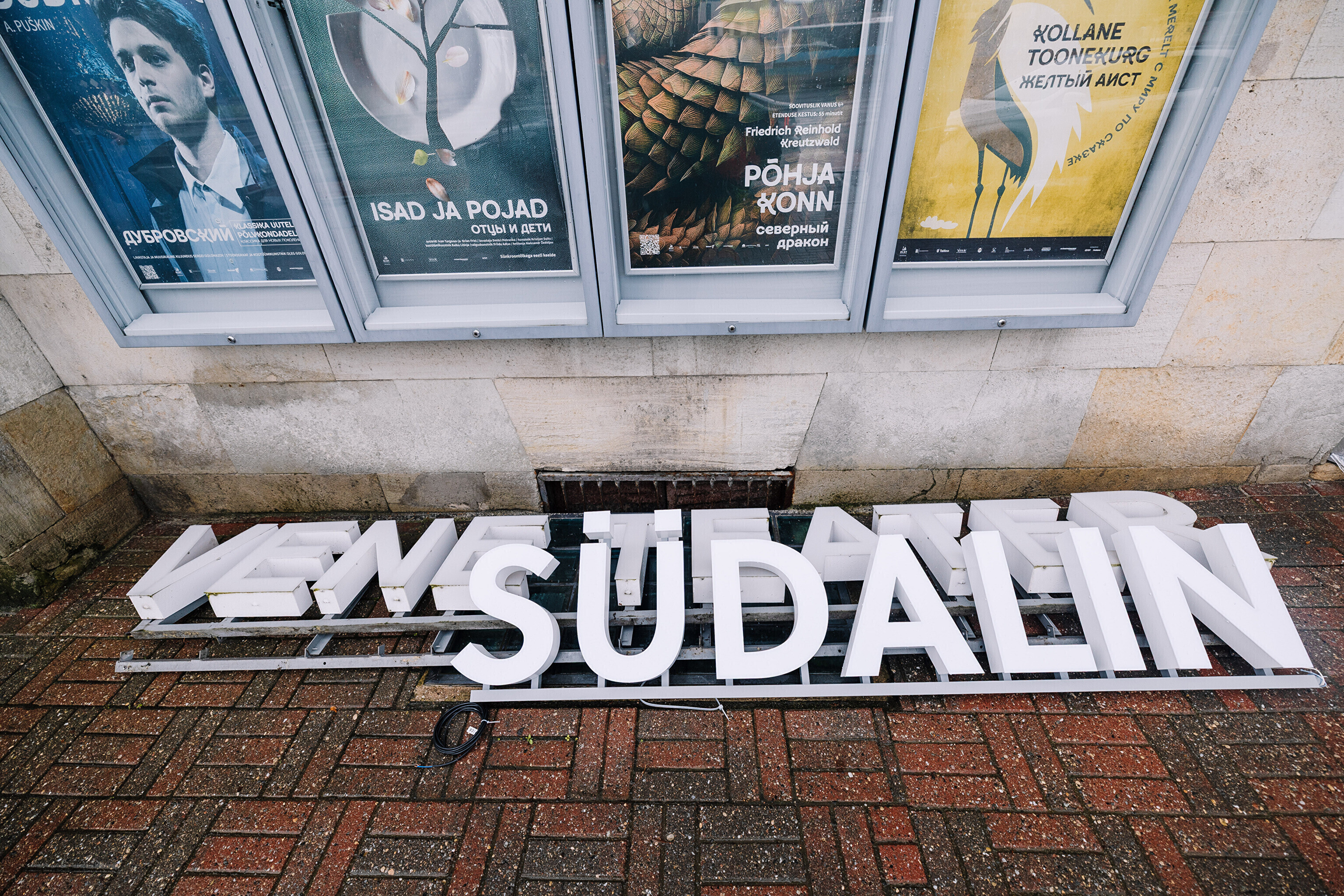 Во вторник, 16 сентября, на фасаде Театра Сюдалинна была демонтирована старая вывеска "Русский театр" и установлена новая вывеска с актуальным названием театра.