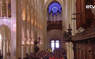 Накануне президент Франции Эмманюэль Макрон первым поднялся на крышу собора, чтобы отпраздновать возобновление работы, передает Euronews.