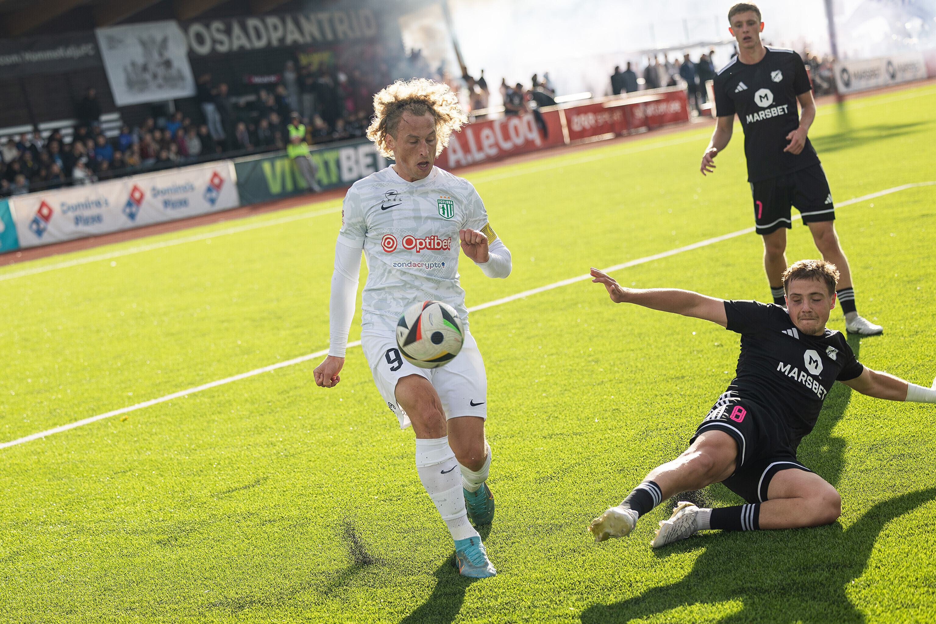 Во втором матче тура ЧЭ таллиннская "Левадия" переиграла столичный "Калев" со счетом 3:1 и догнала "Флору". У обеих команд по 66 очков.