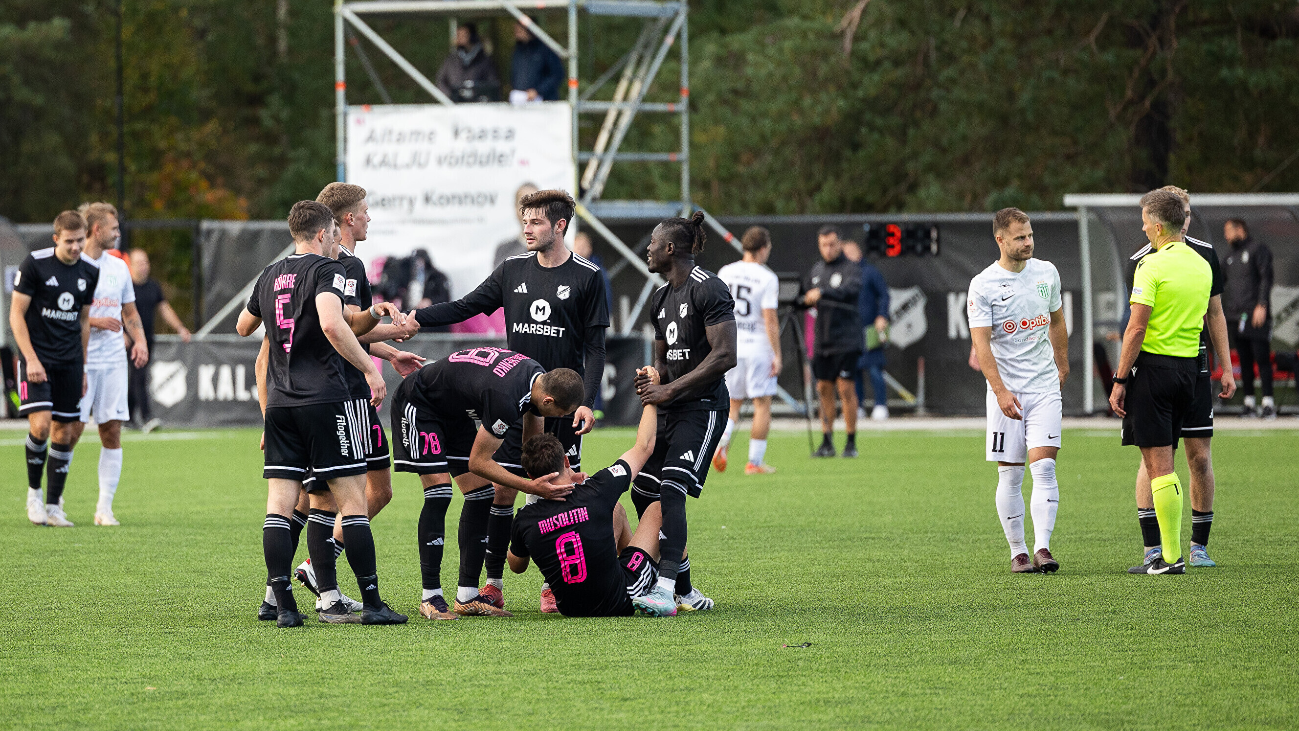 Всего три минуты спустя украинский полузащитник "Калью" Александр Мусолитин сравнял счёт, а затем на 83-й минуте вывел хозяев вперёд точным дальним ударом. Еще один гол на 89-й минуте забил нападающий "Калью" Маттиас Мяннилаан.
