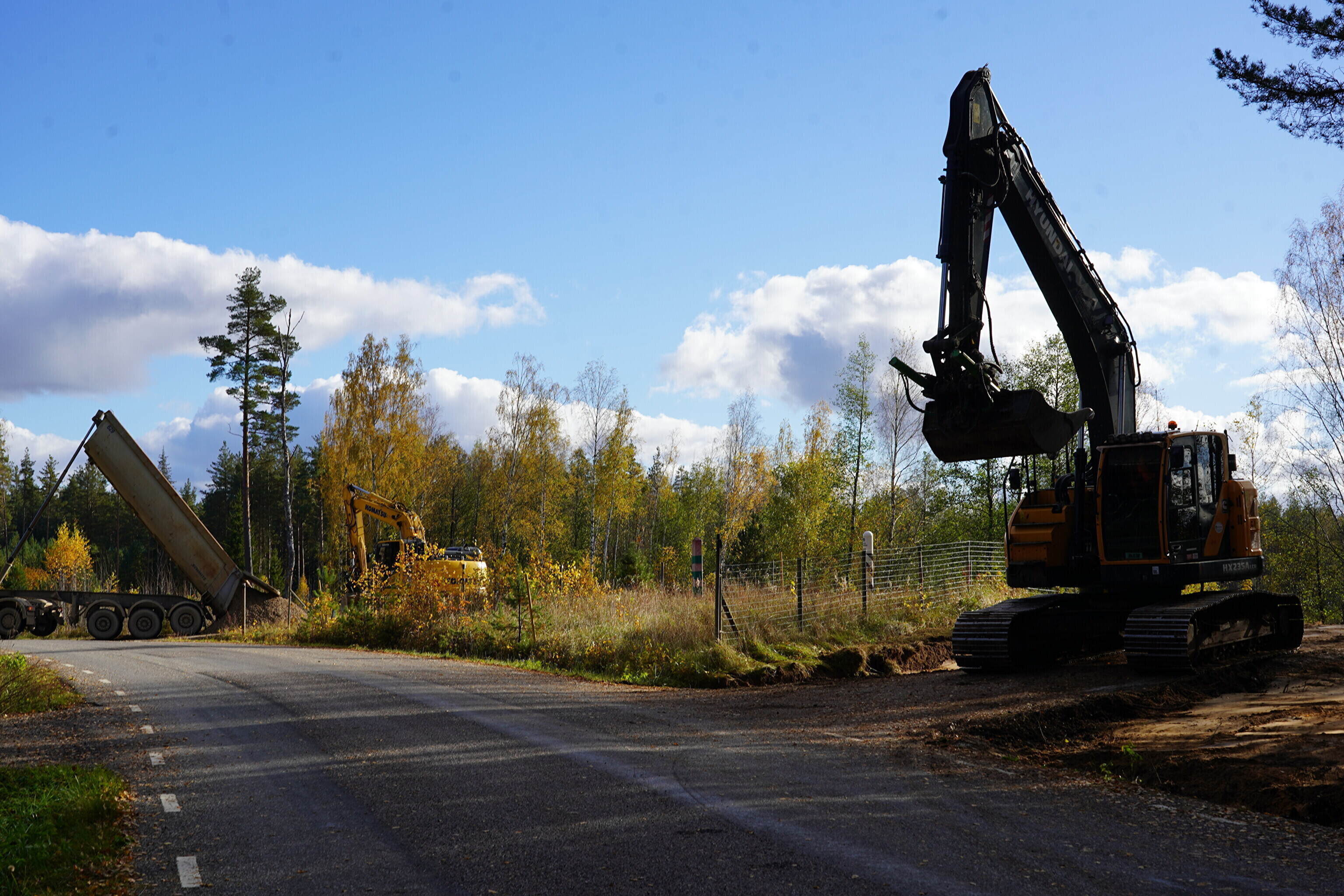 "Сначала мы снимаем существующий слой грунта, затем выравниваем площадку и строим дорогу с гравийным покрытием. Ширина дороги составит 7 метров, толщина гравийного слоя - 30 сантиметров. Работы сложнее, чем обычно внутри страны, но мы предоставили список всех работников в Департамент полиции и погранохраны (PPA) для согласования и проверки их биографий. Кроме того, мы должны строго следить за тем, чтобы строительная техника не пересекала государственную границу", - рассказала руководитель подразделения дорожного обслуживания Транспортного департамента Анника Бирк.