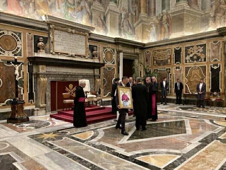 Эстонские паломники подарили Папе Римскому портрет Эдуарда Профиттлиха кисти Аапо Пукка. Эдуард Профиттлих был причислен к лику блаженных в начале сентября.