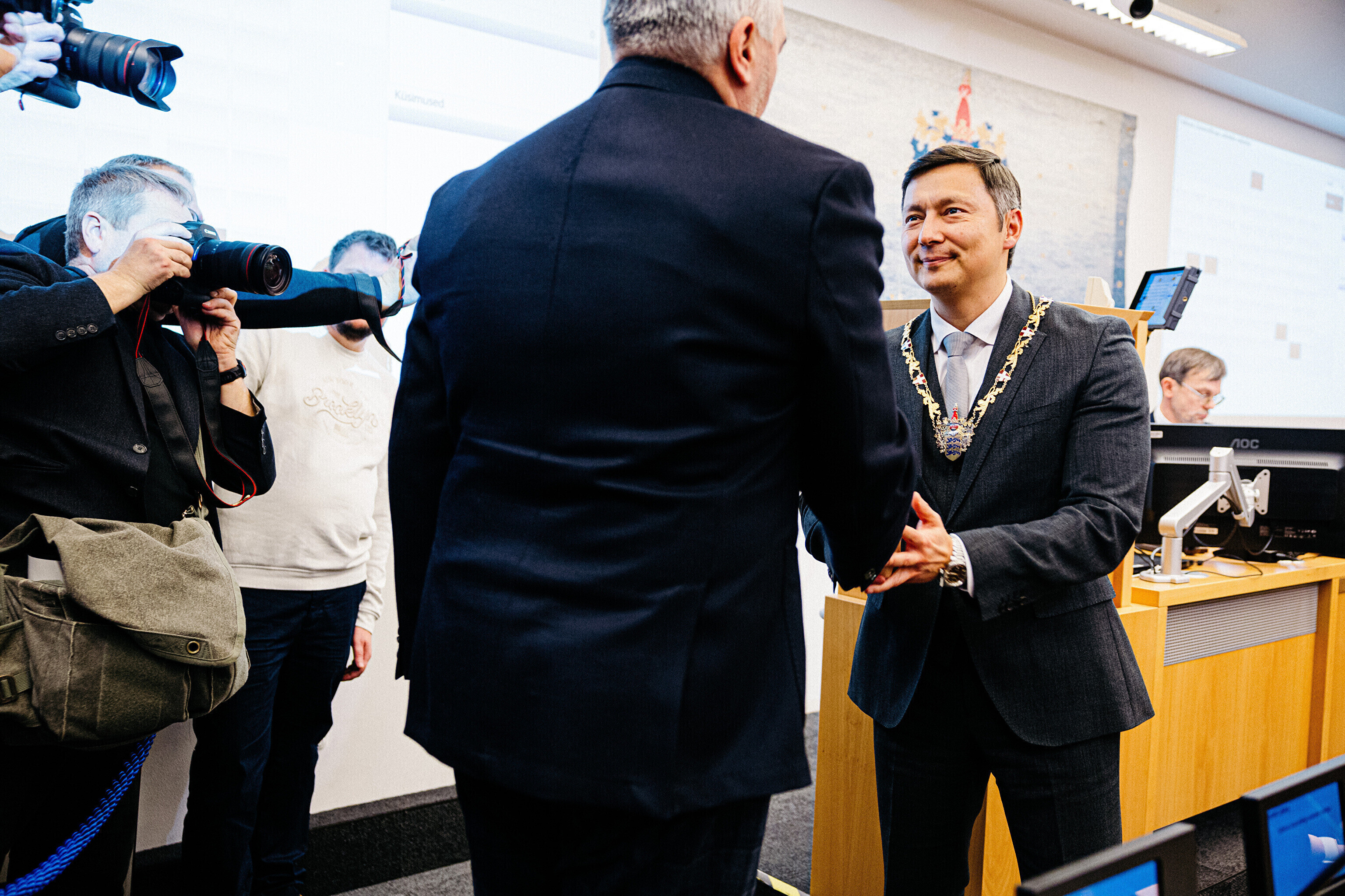 Во вторник, 2 декабря, председателем Таллиннского горсобрания избрали лидера Центристской партии Михаила Кылварта. Зампредом стал Свен Сестер (Isamaa).