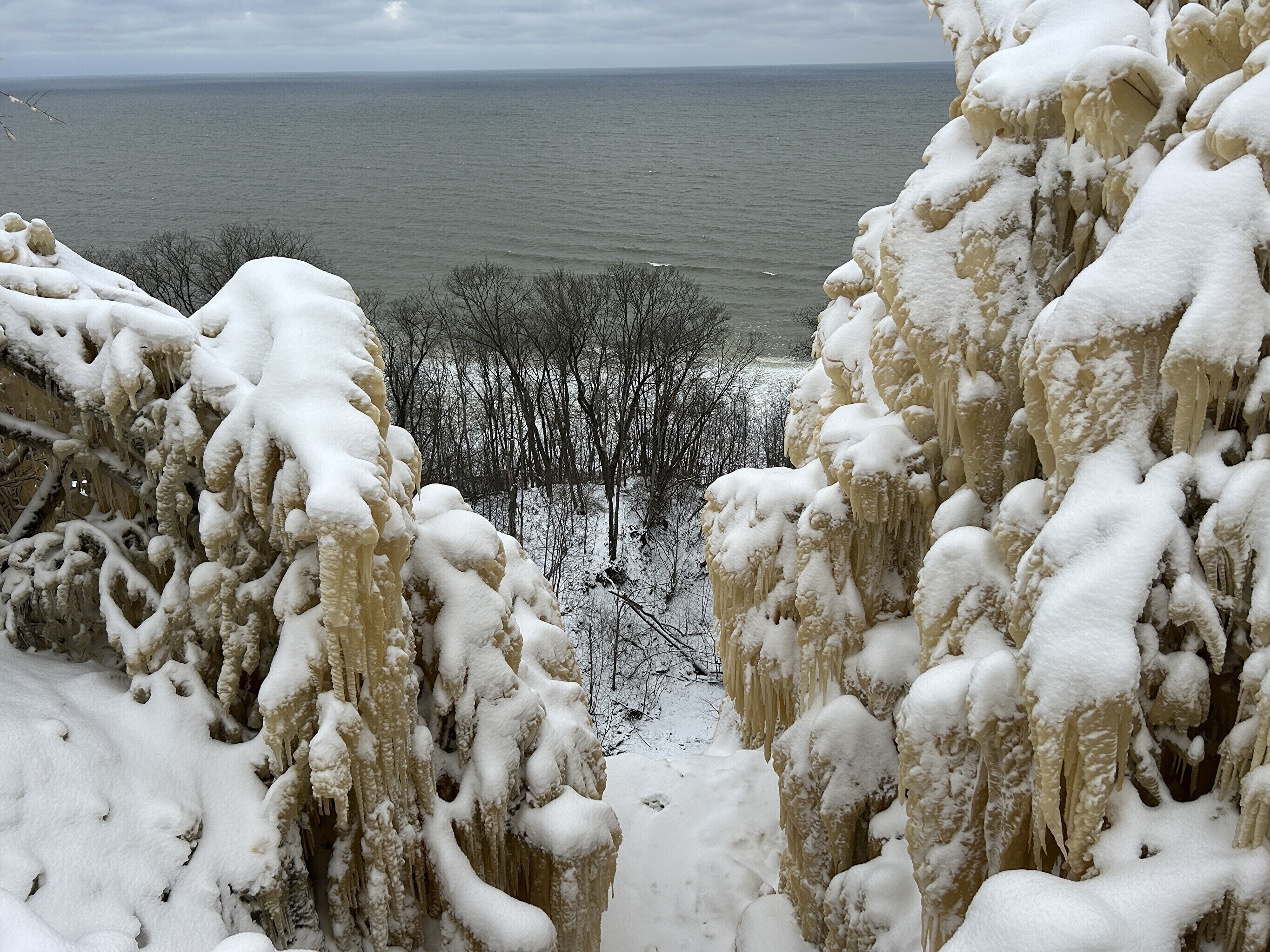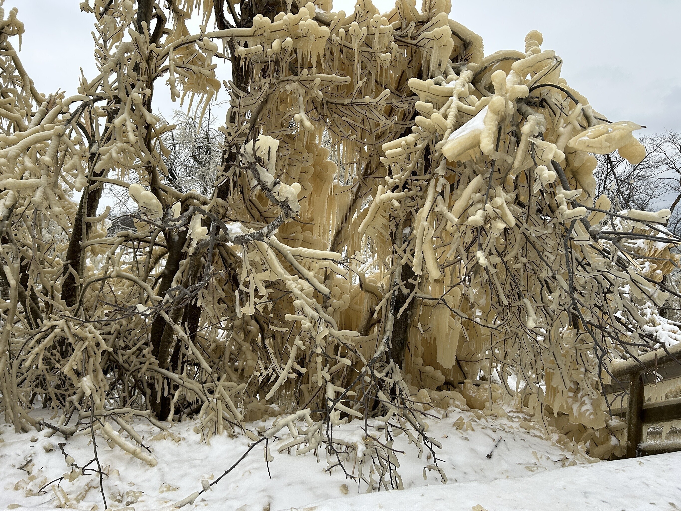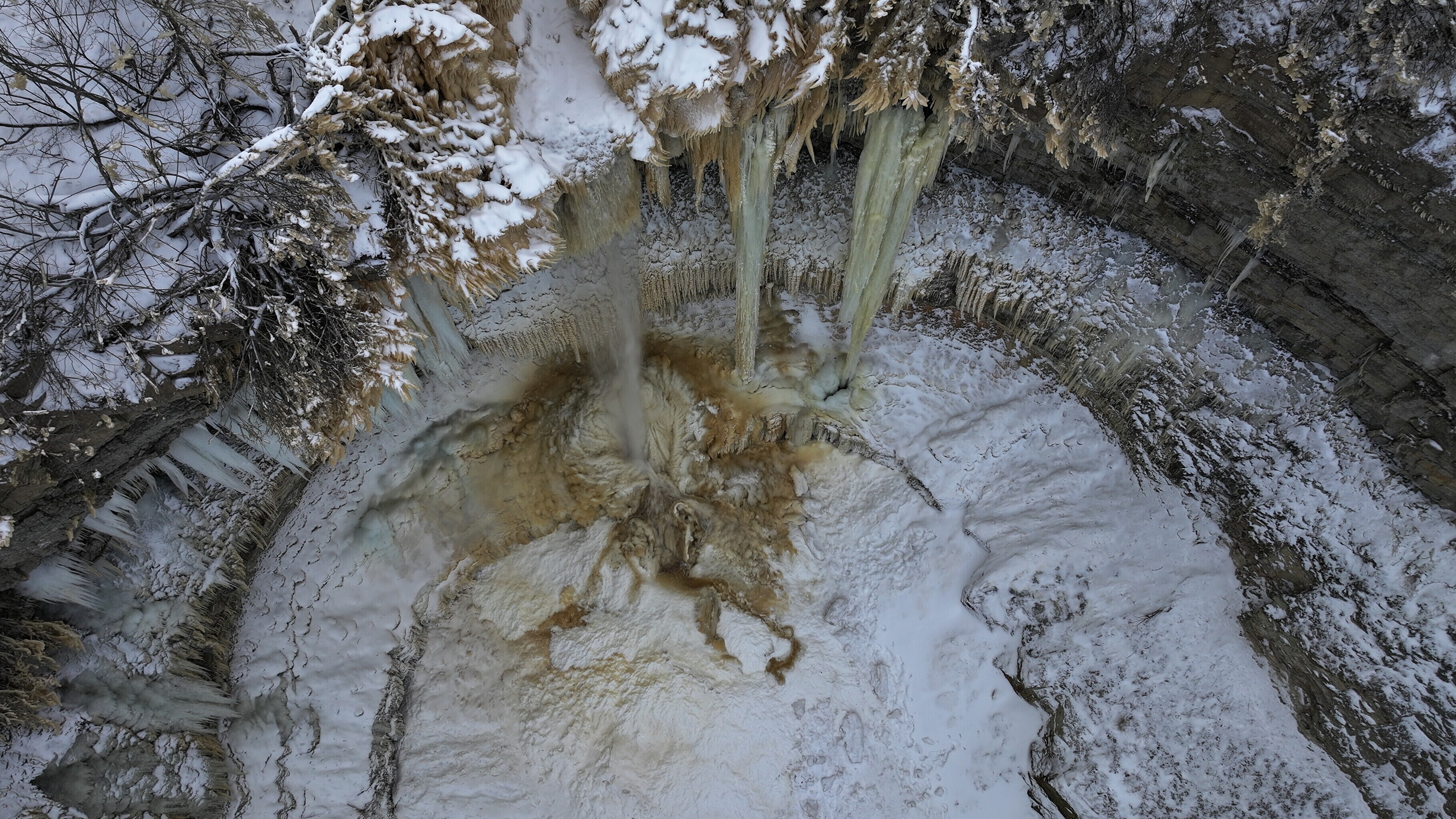 В эти выходные около десяти человек подошли слишком близко к водопаду в тот момент, когда откололась ледяная масса. По счастливой случайности никто не пострадал.