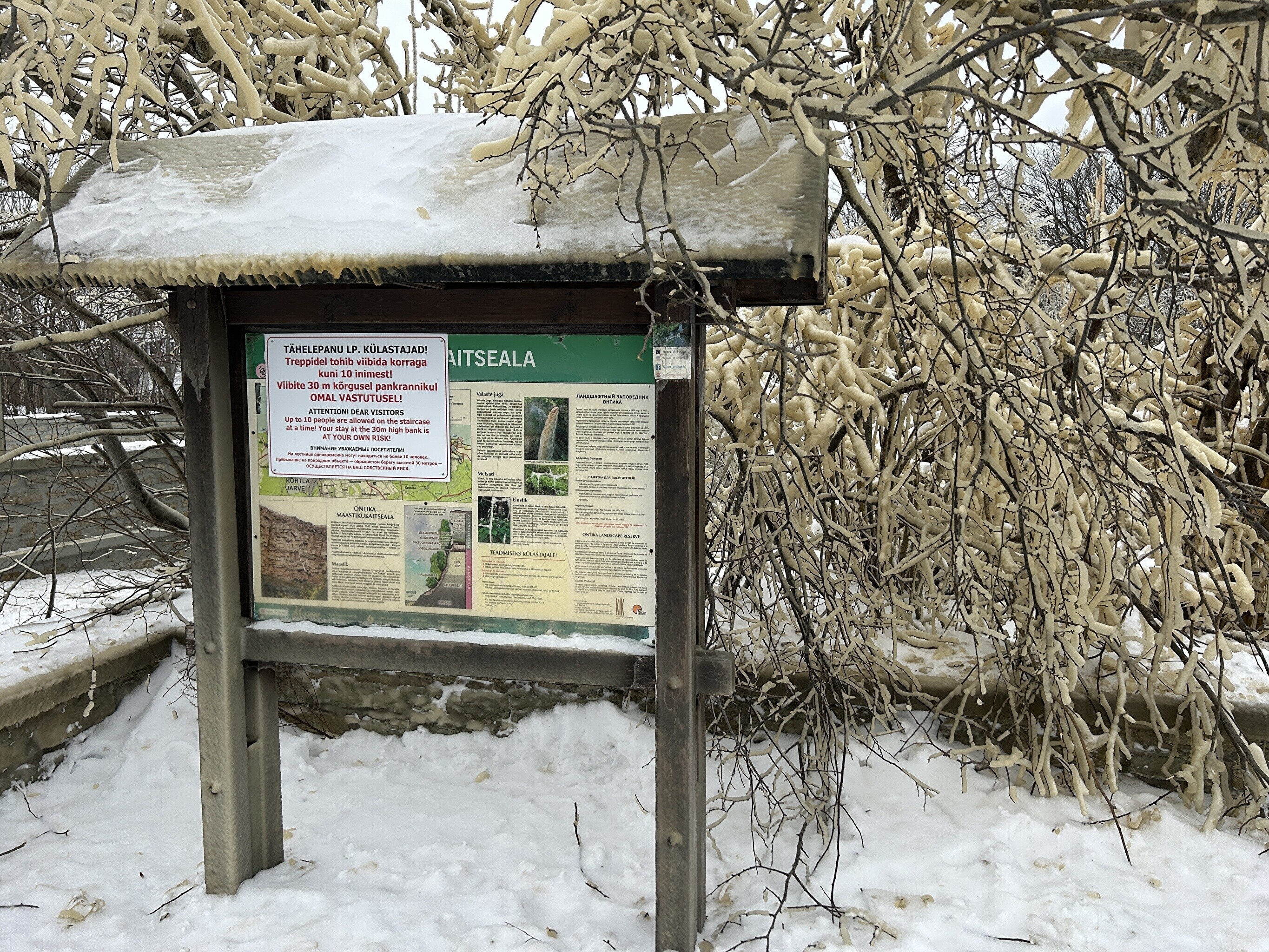 С приходом морозов водопад Валасте покрылся льдом. Это уникальное природное явление каждый год привлекает в регион сотни туристов. Некоторые посетители, рискуя своей жизнью, игнорируют предупреждающие знаки и перелезают через ограждения, чтобы сделать фотографии.