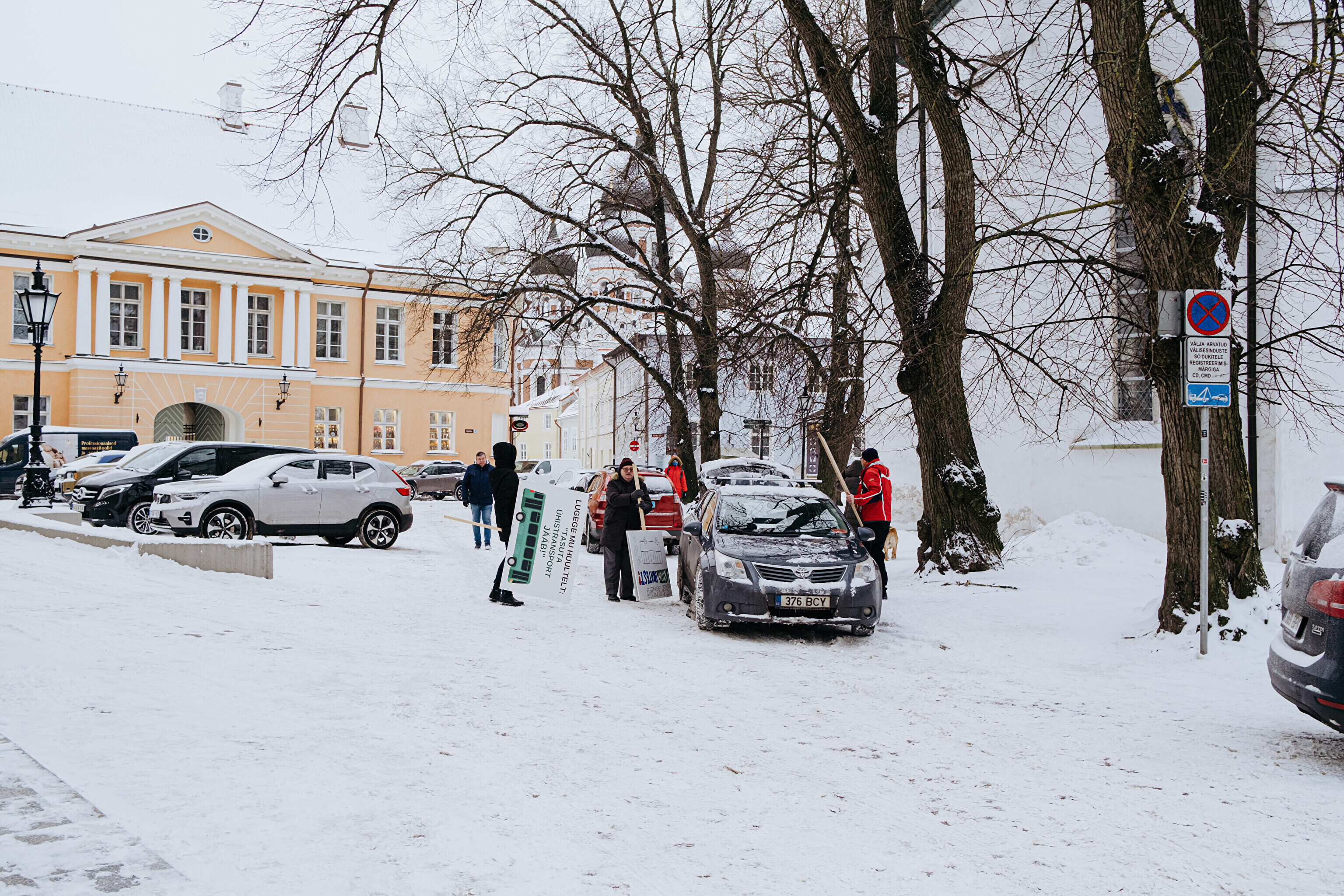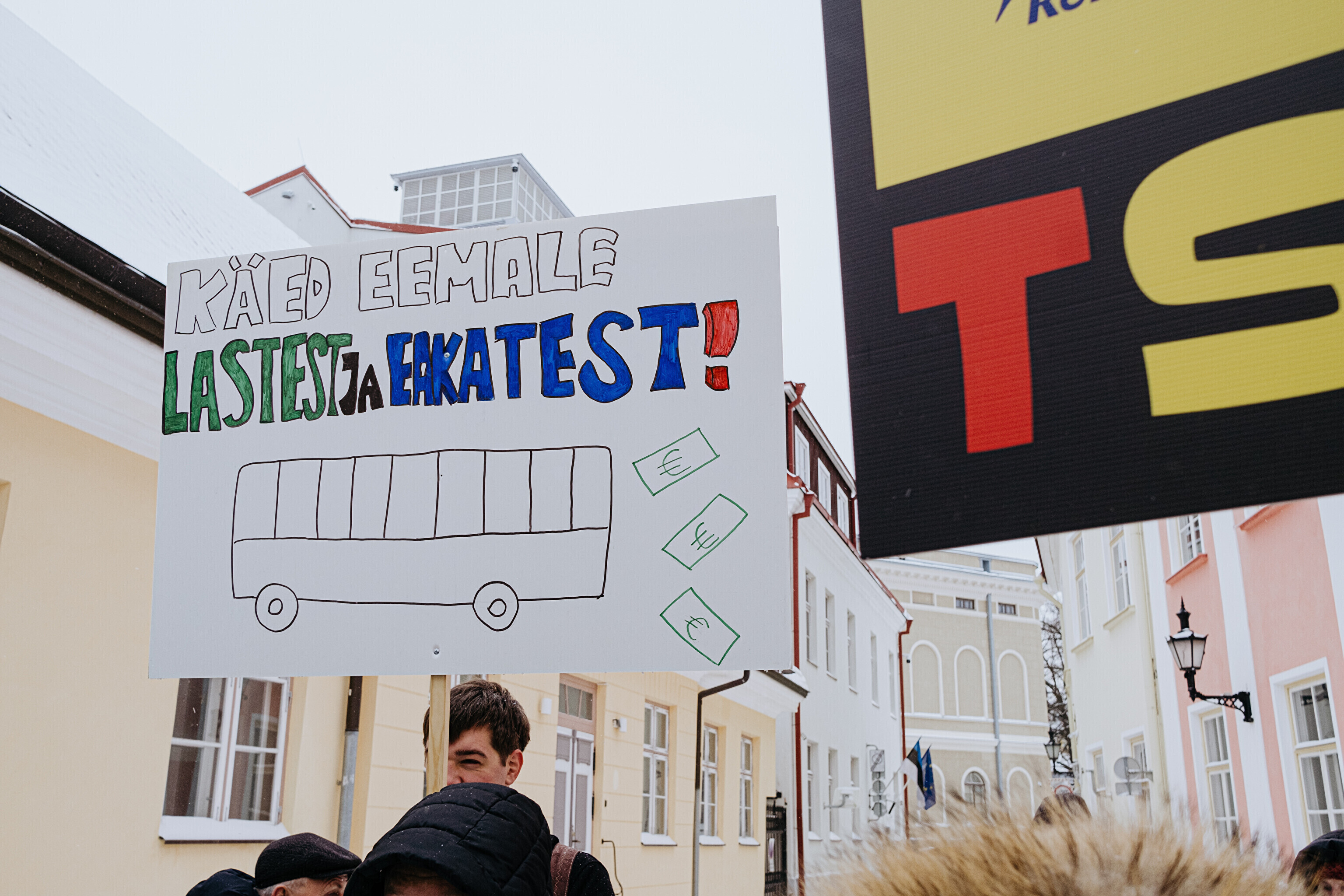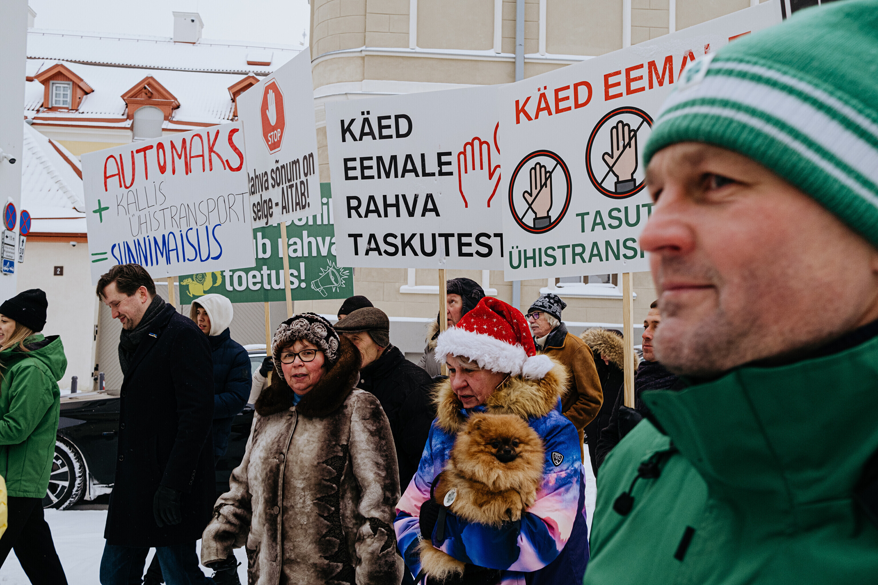 ФОТО: в Таллинне прошел пикет против плана лишить детей и пенсионеров права бесплатного проезда