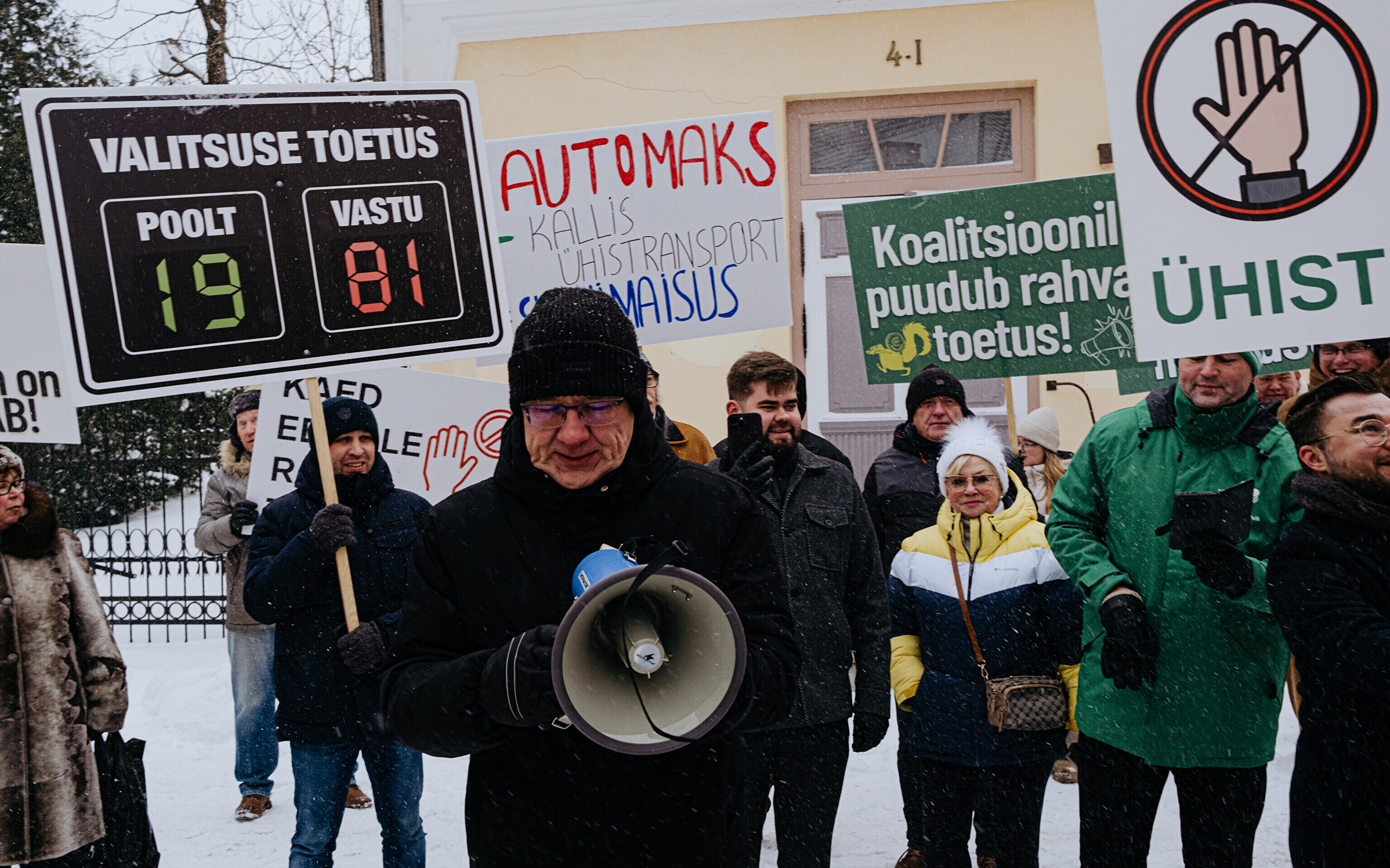 В четверг, 15 января, перед Домом Стенбока в Таллинне прошел пикет, организованный Центристской партией, против планов входящей в коалицию партии Eesti 200 ввести плату за проезд на уездных автобусных линиях для детей и пенсионеров.