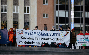 Декабрь 2024 года - родители воспитанников таллиннского футбольного клуба "Арарат" проводят пикет на площади Вабадузе у здания Таллиннской городской управы.