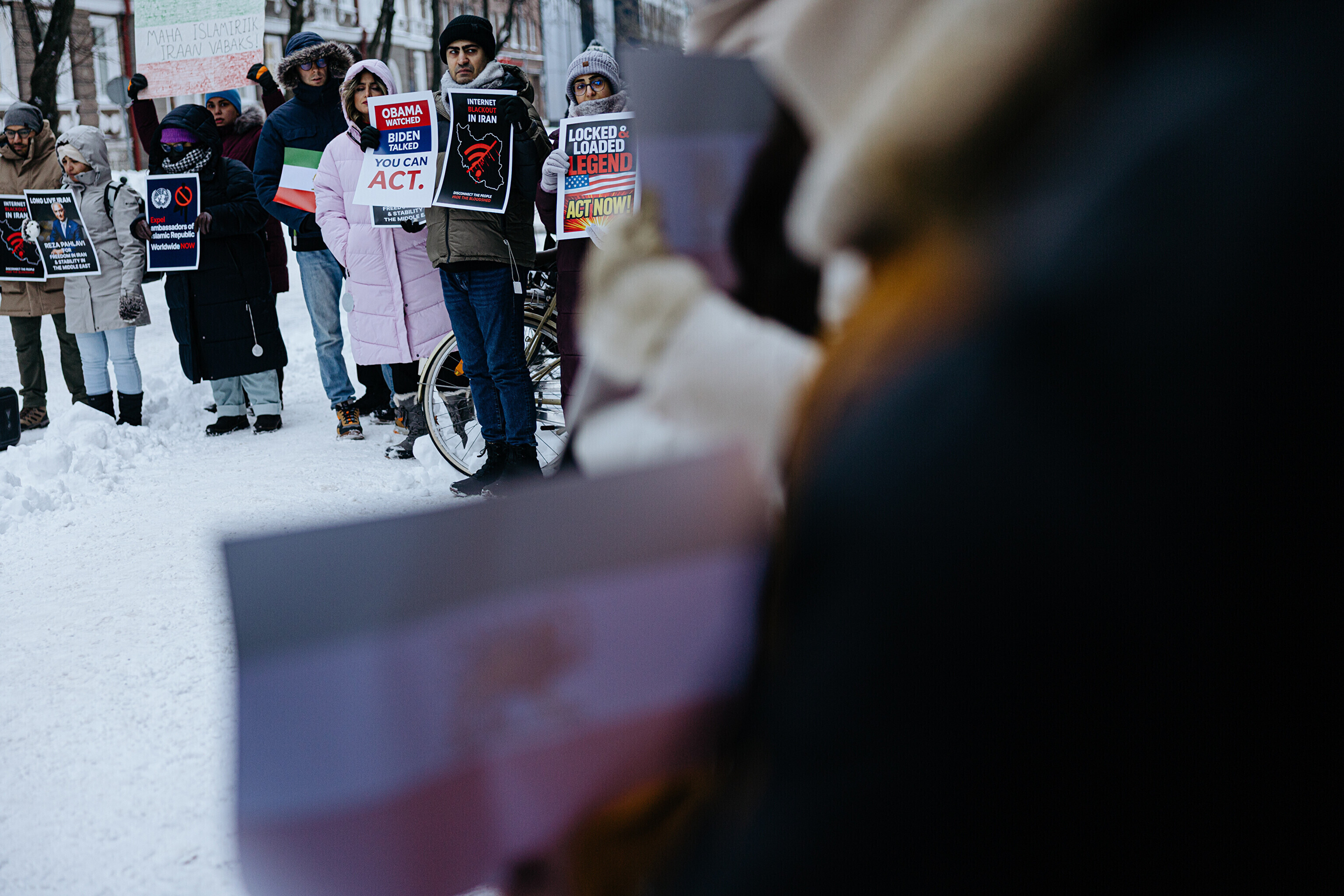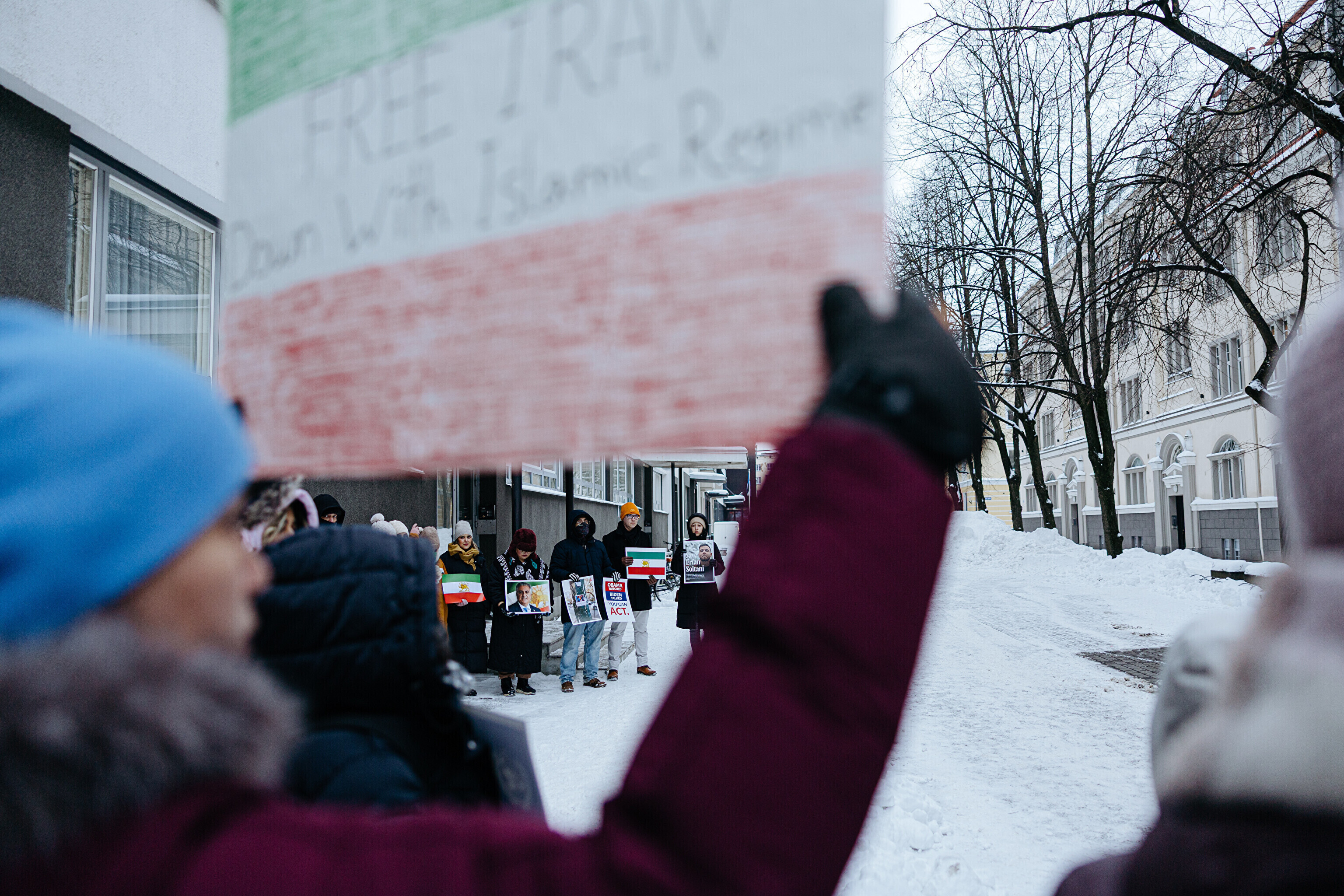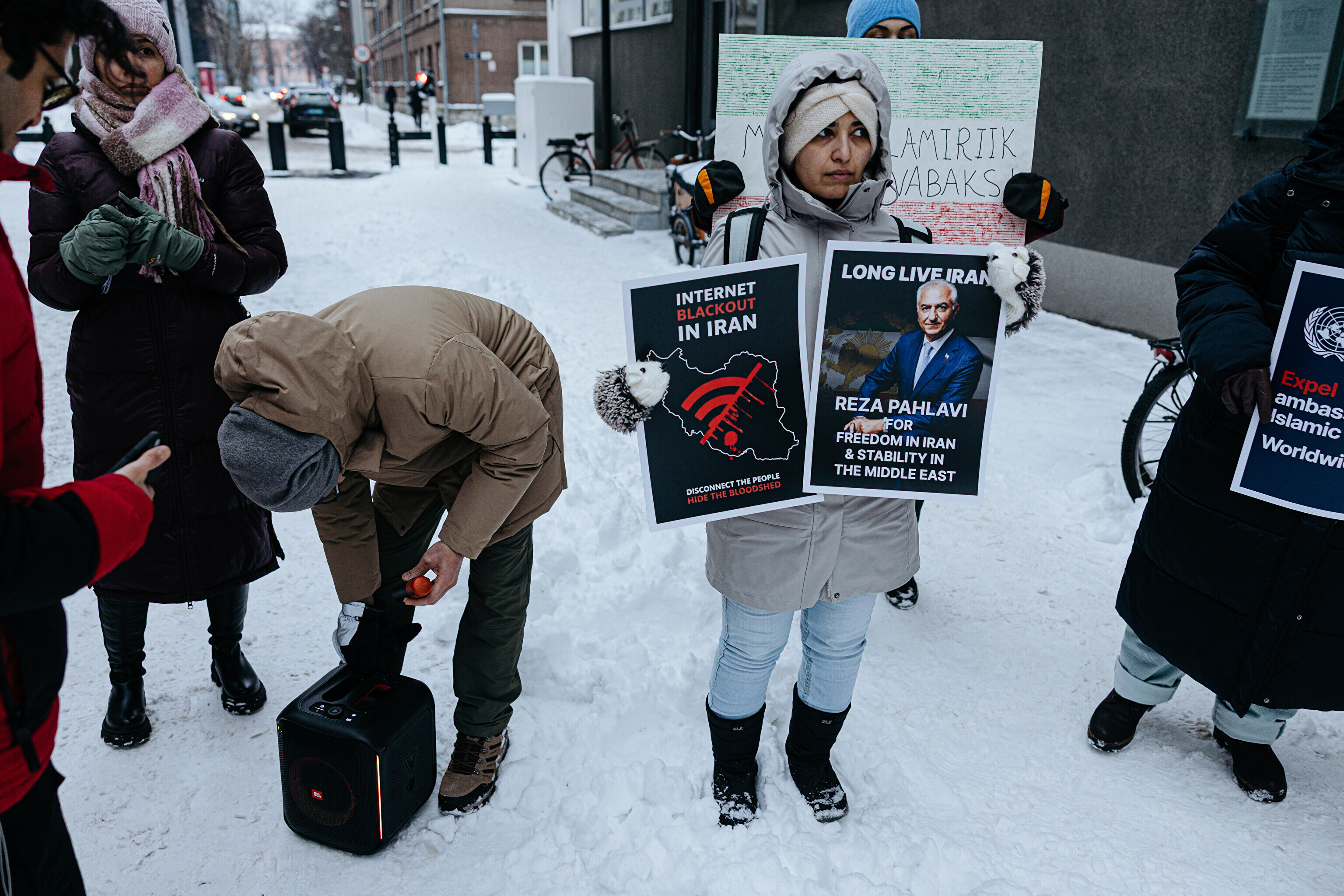 ФОТО: проживающие в Эстонии иранцы перед посольством США поддержали протестующих в Иране