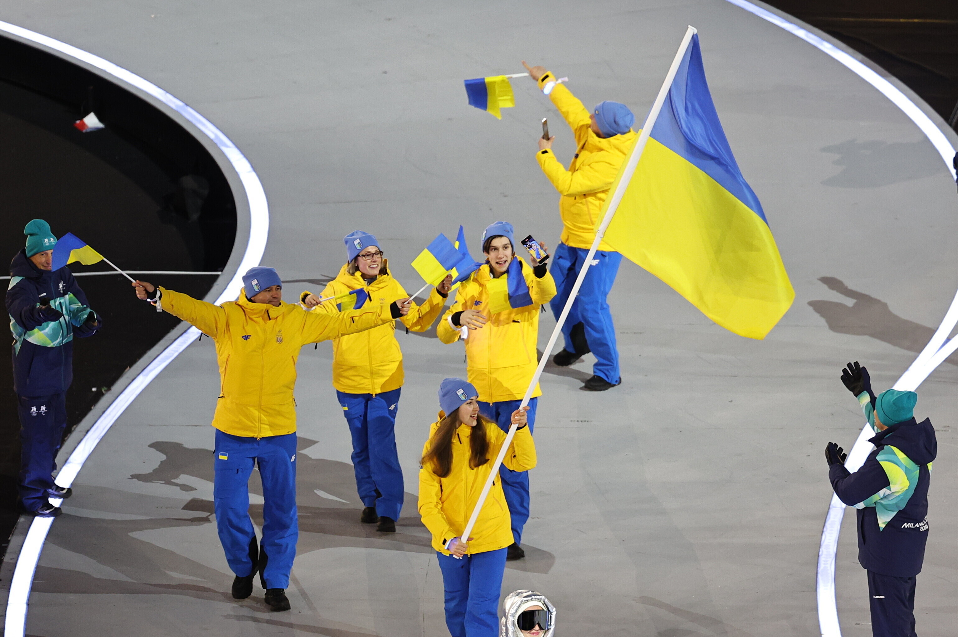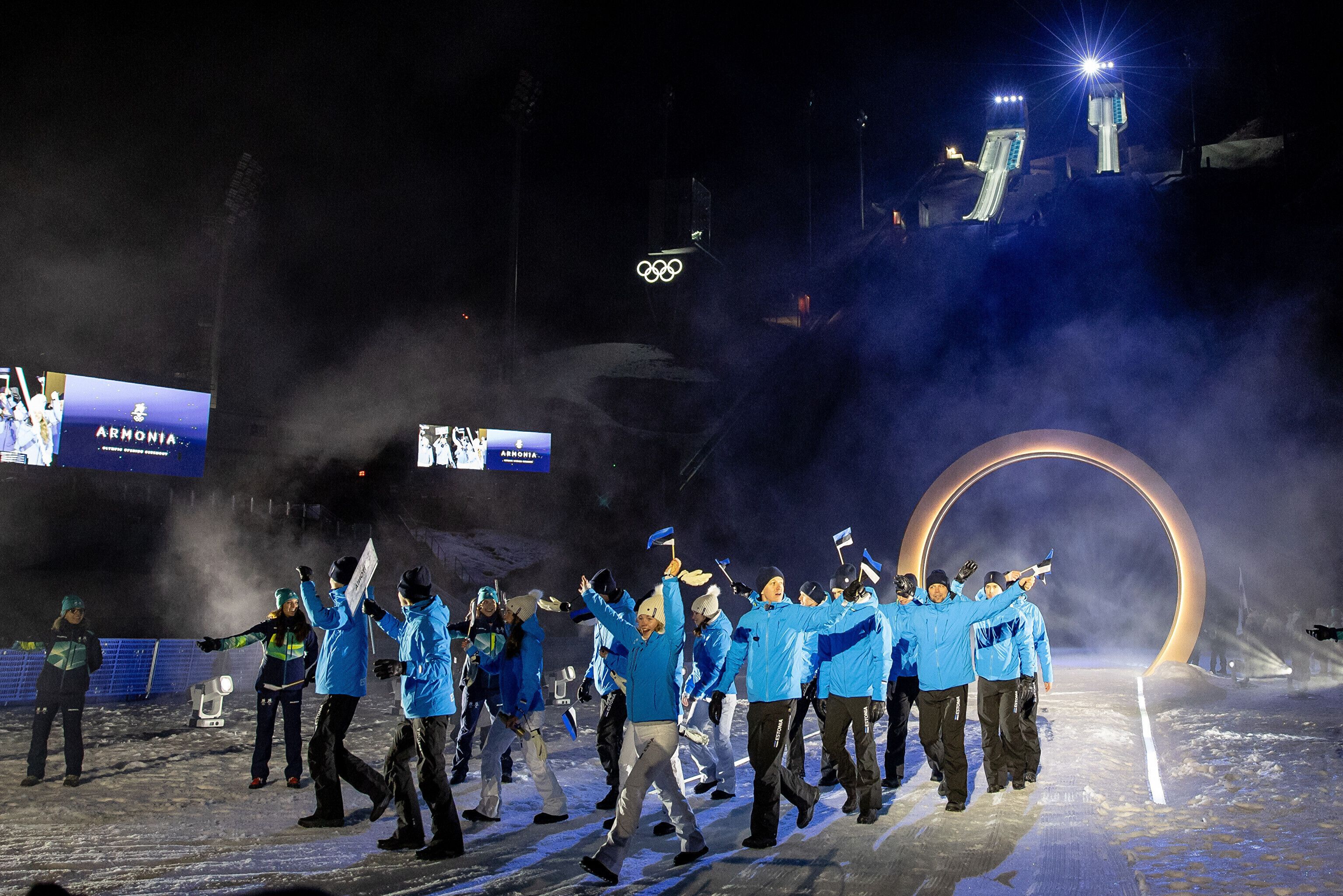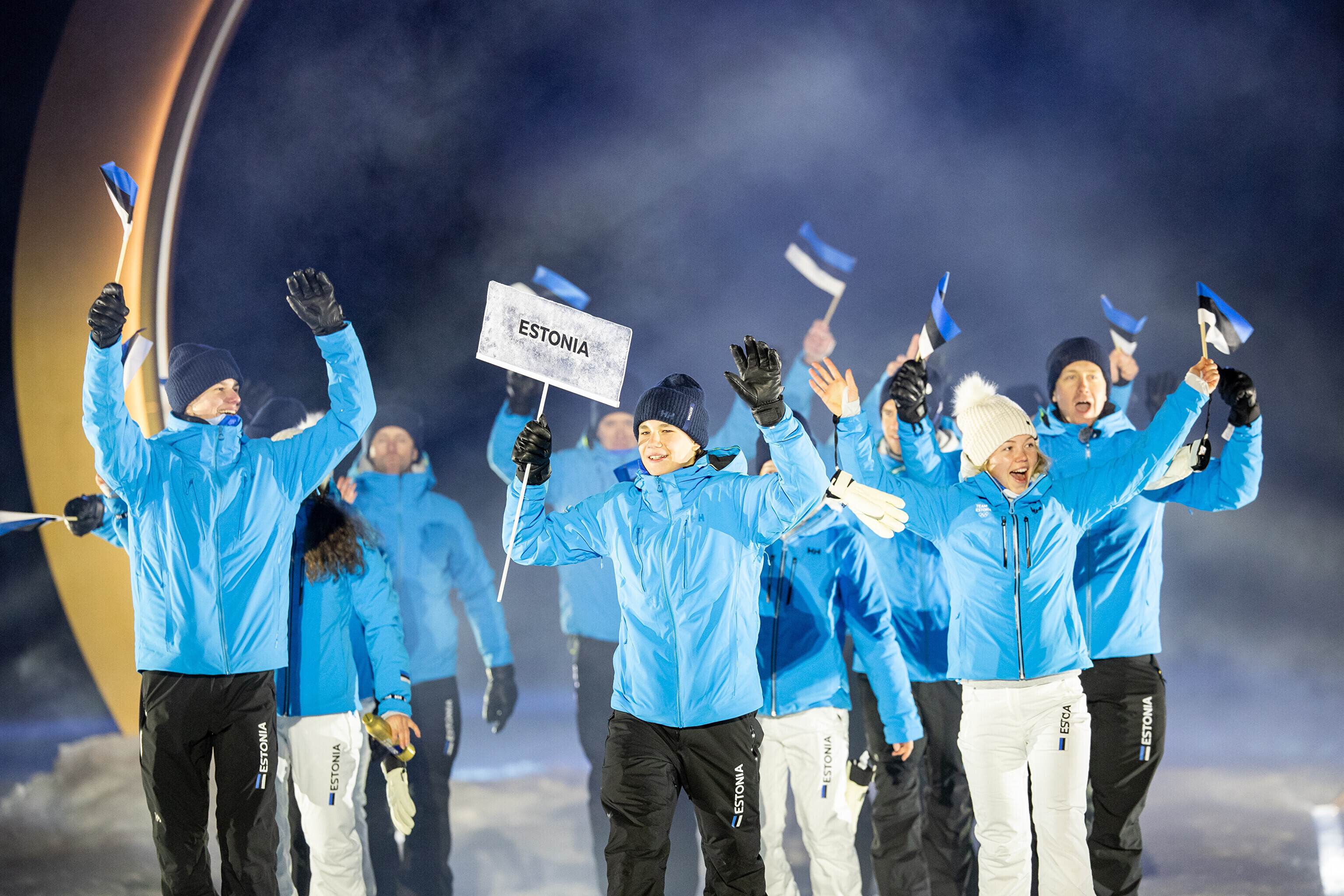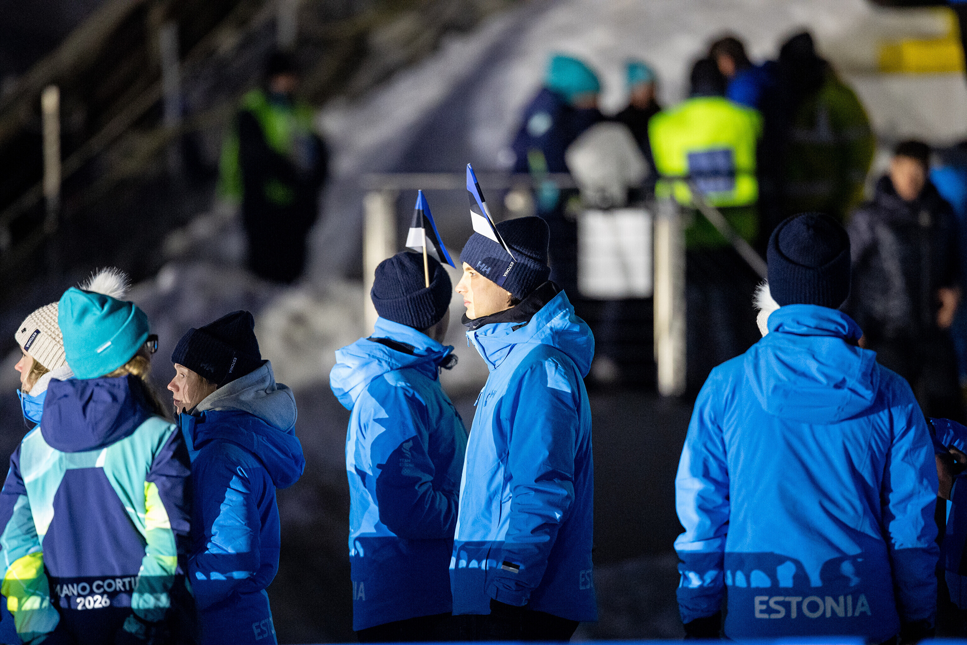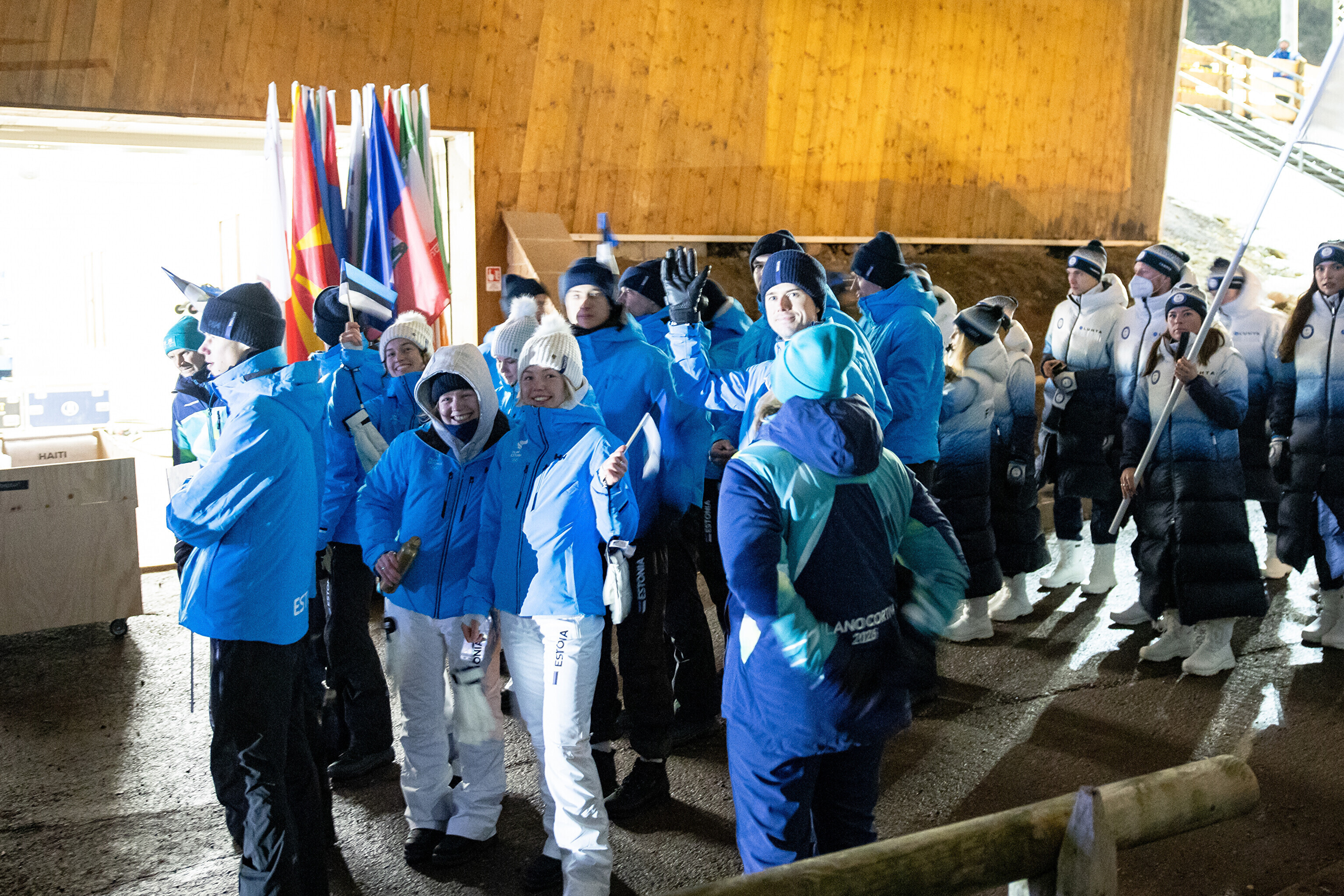 Однако спортсмены не шли рядом: церемония открытия состоялась одновременно в четырех локациях - в Милане, Кортина-д'Ампеццо, Ливиньо и Предаццо. Лийв вынес флаг на стадионе "Сан-Сиро" в Милане, а Талихярм - в олимпийской деревне Кортина-д'Ампеццо.