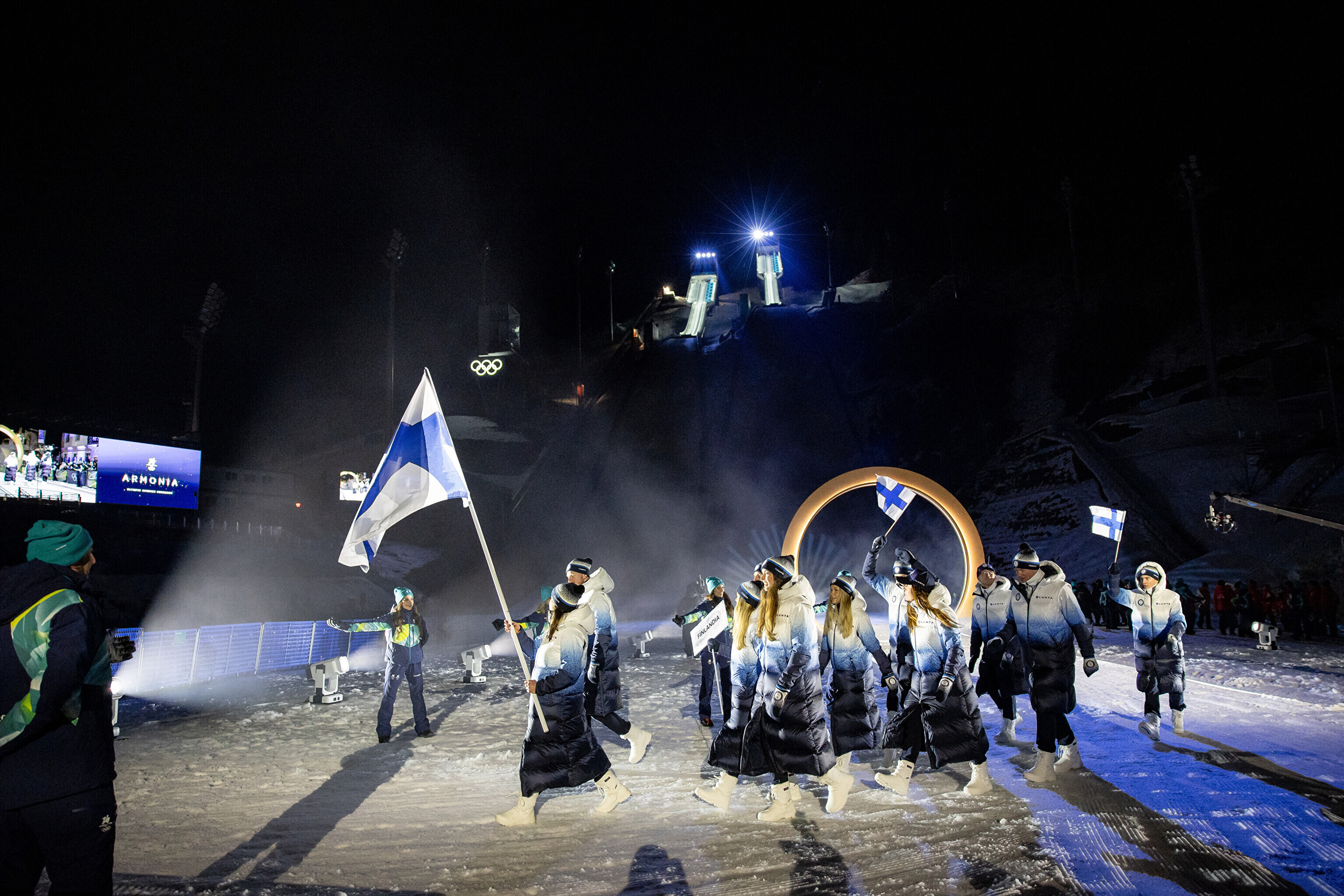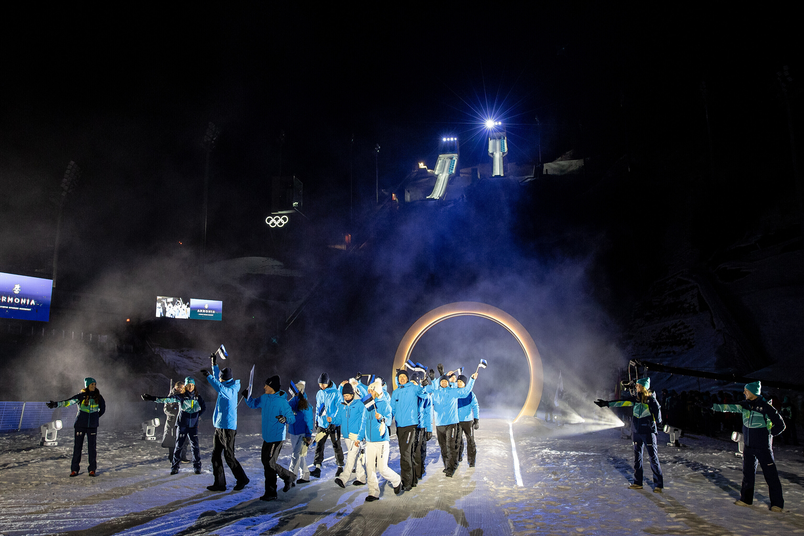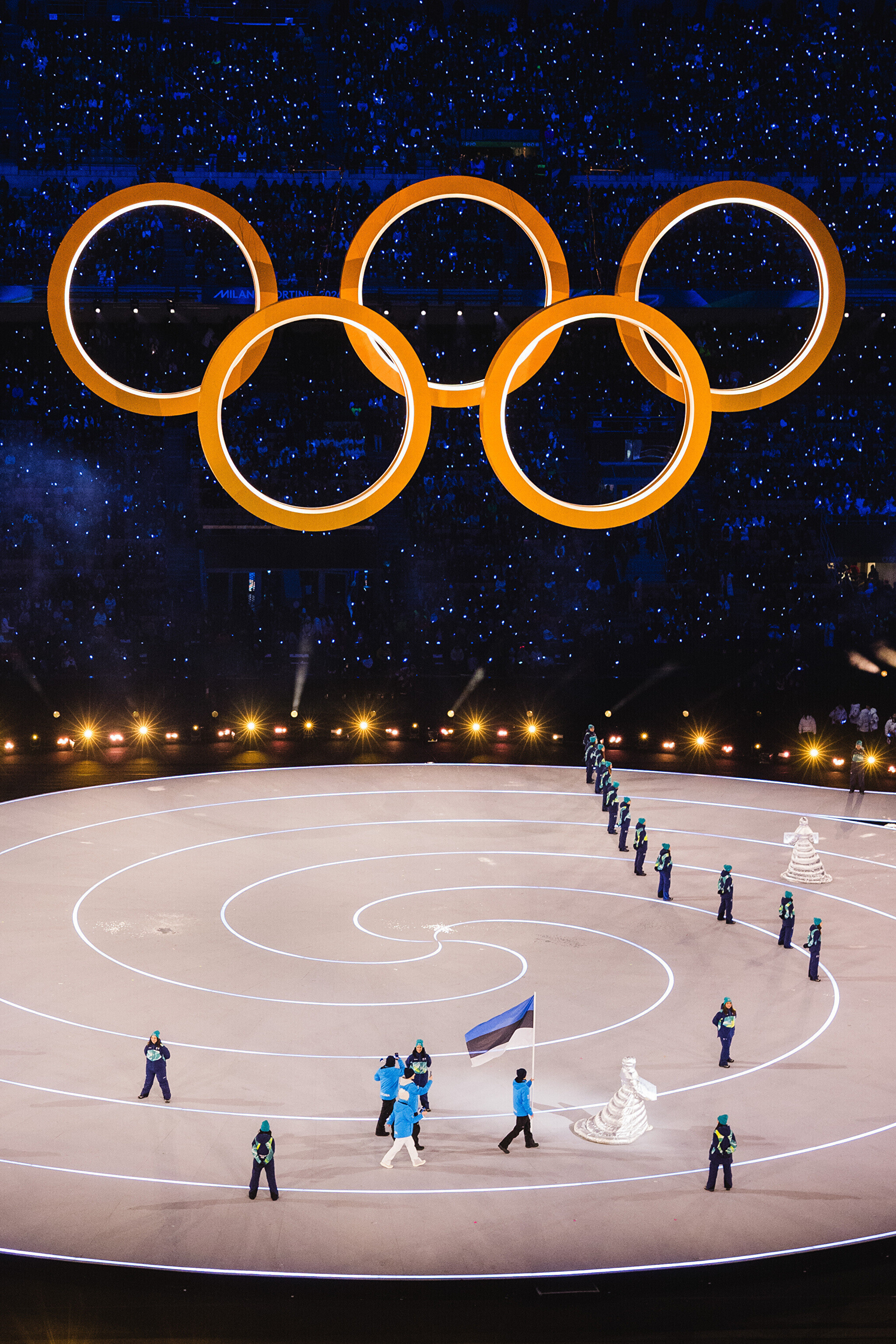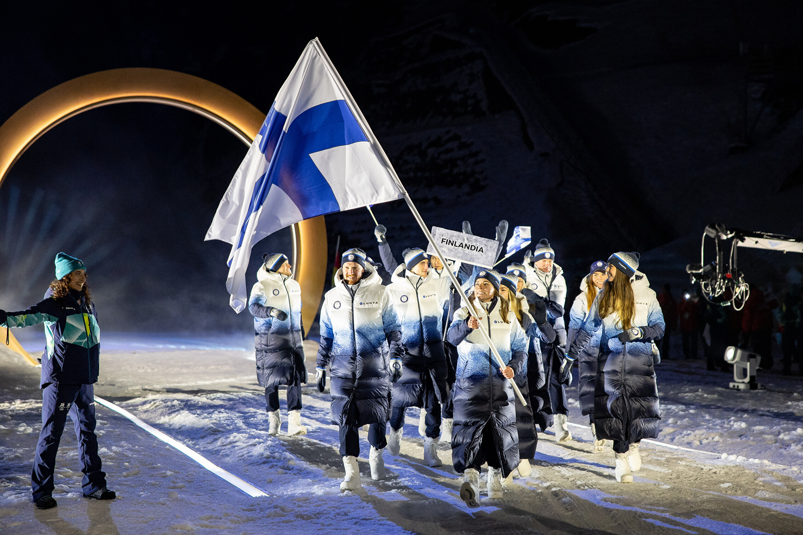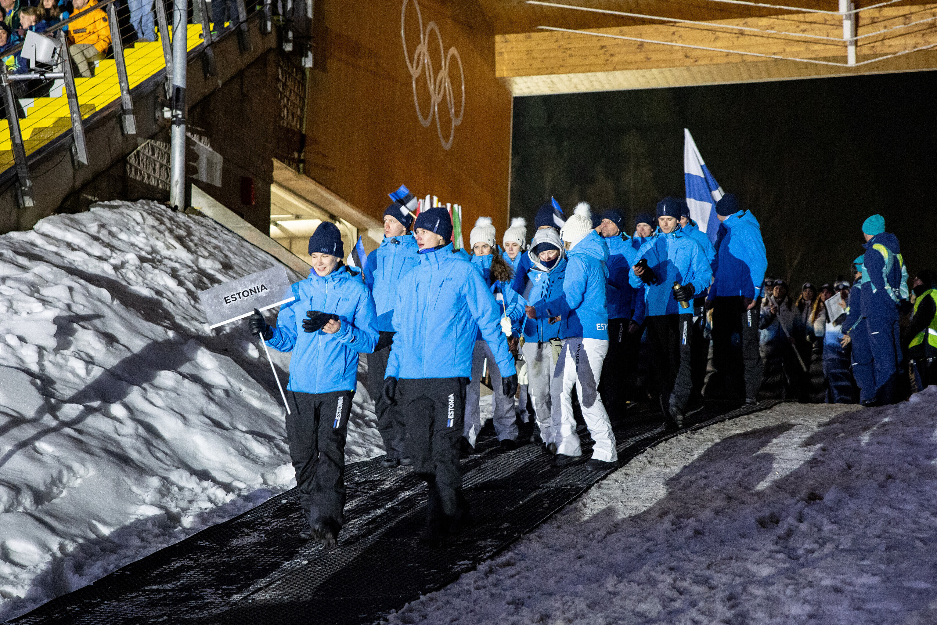Однако спортсмены не шли рядом: церемония открытия состоялась одновременно в четырех локациях - в Милане, Кортина-д'Ампеццо, Ливиньо и Предаццо. Лийв вынес флаг на стадионе "Сан-Сиро" в Милане, а Талихярм - в олимпийской деревне Кортина-д'Ампеццо.